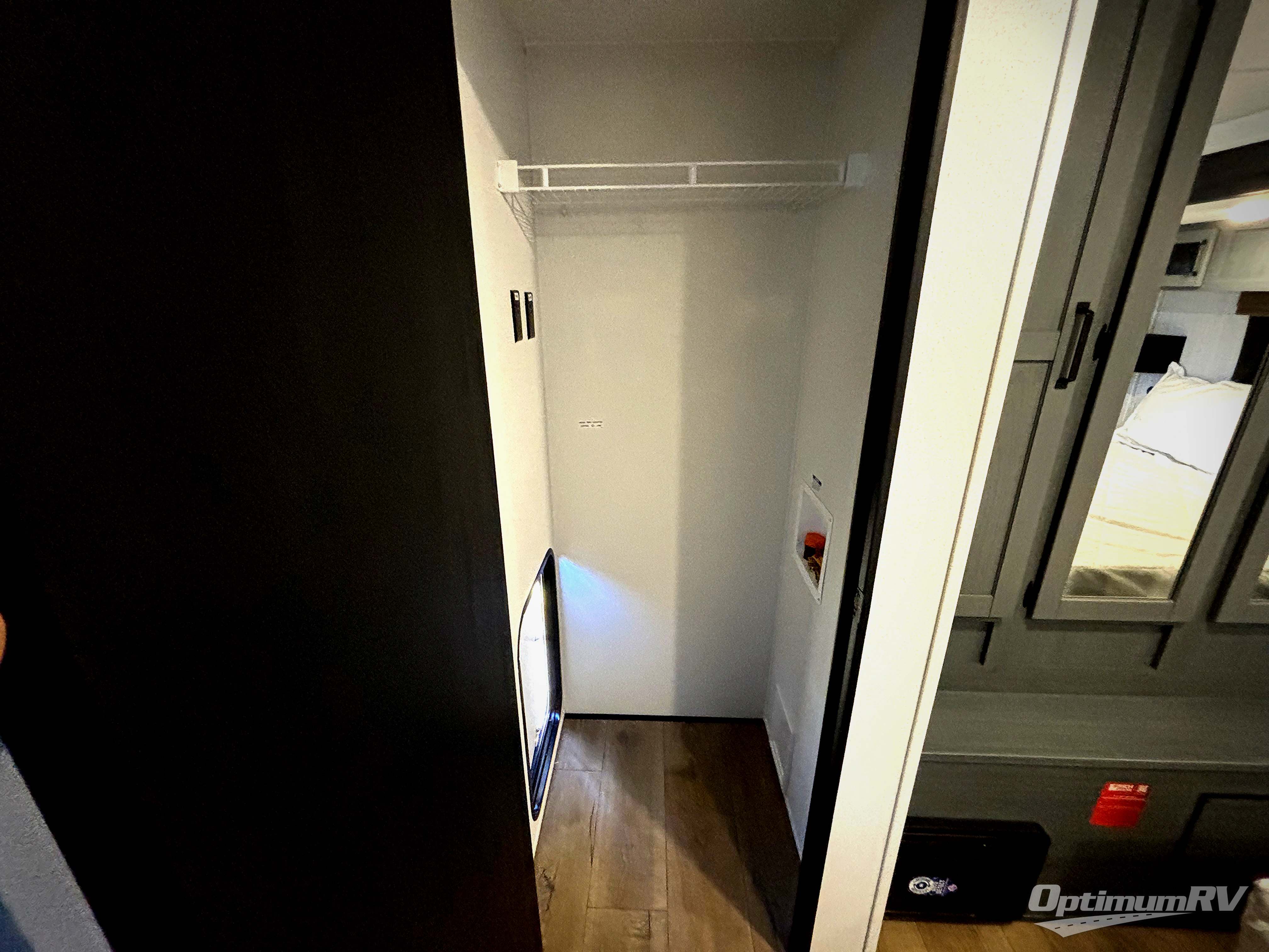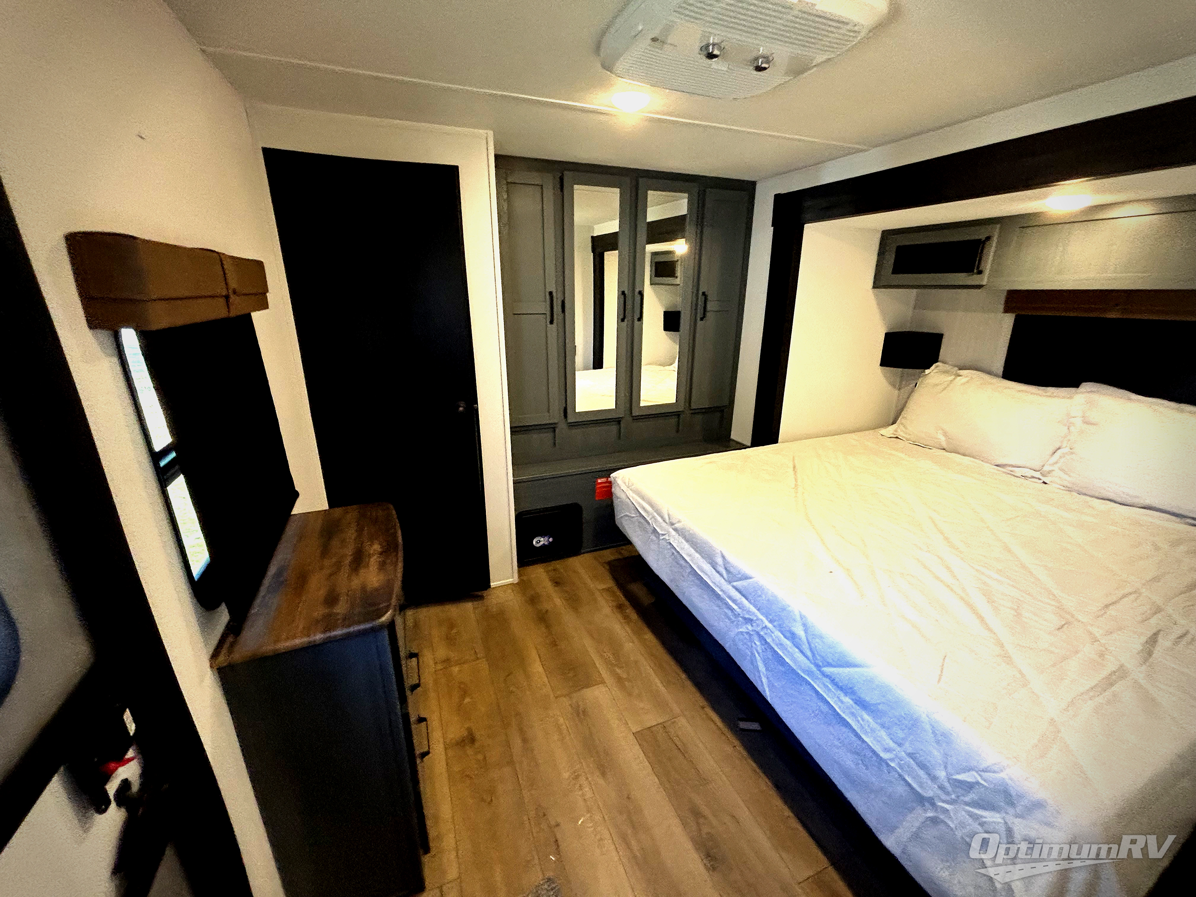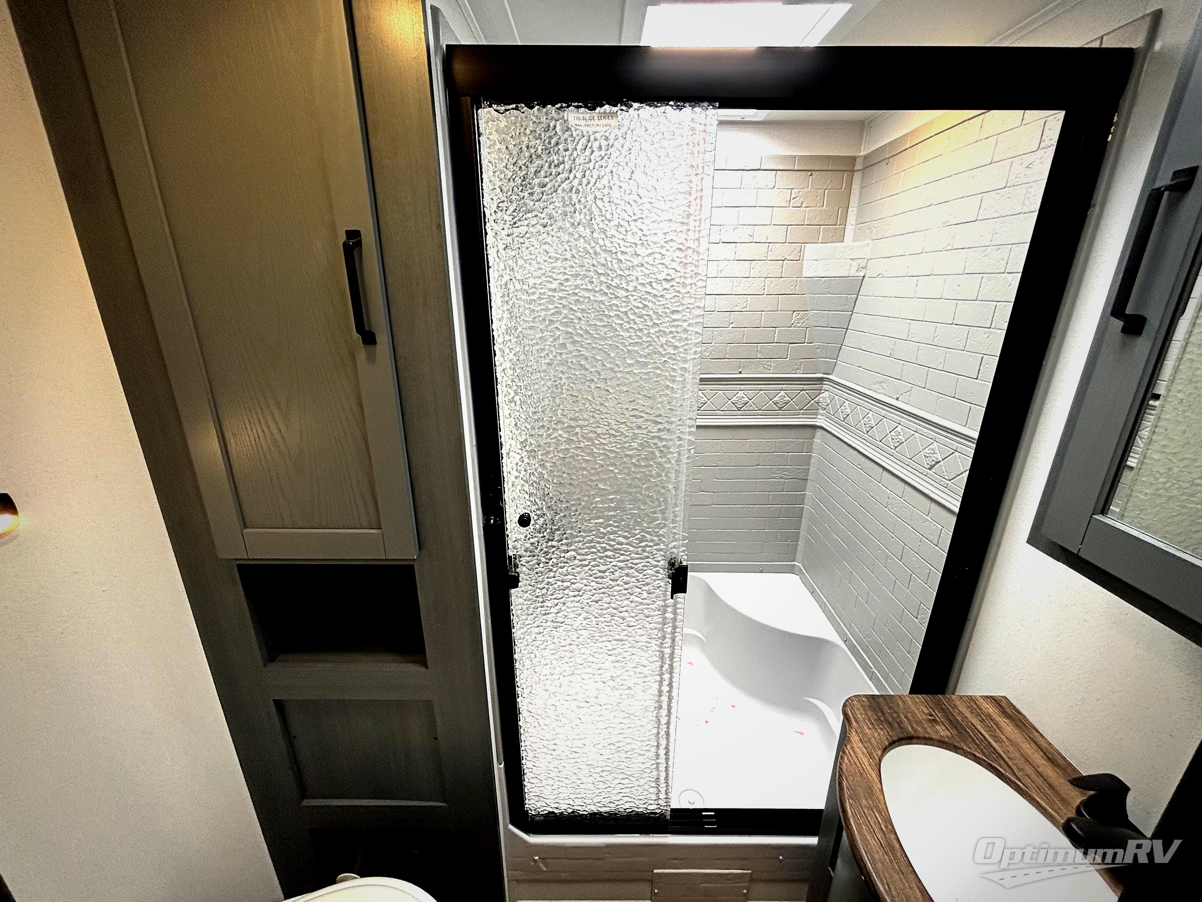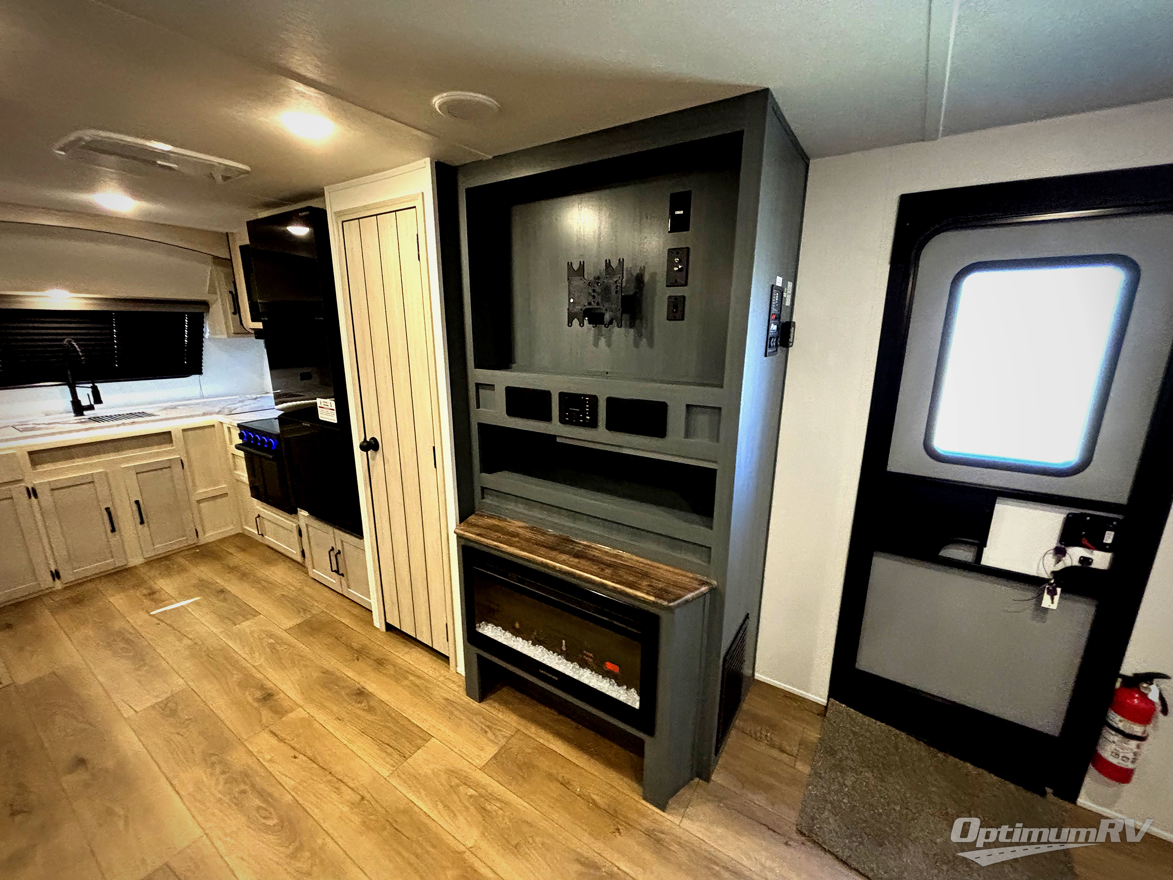 Experience a home away from home with this travel trailer! The front kitchen has everything you will need to prepare your best meals, and you can enjoy them at the booth dinette. The rear private bedroom has a 72" x 80" king bed slide across from a dresser, a wardrobe, and a closet with washer and dryer prep. Freshen up in the full bathroom with the 32" x 40" shower and then enjoy a cup of coffee relaxing on the theater seating or on the sofa! Choose the optional outside micro kitchen with a griddle for even more convenience!
