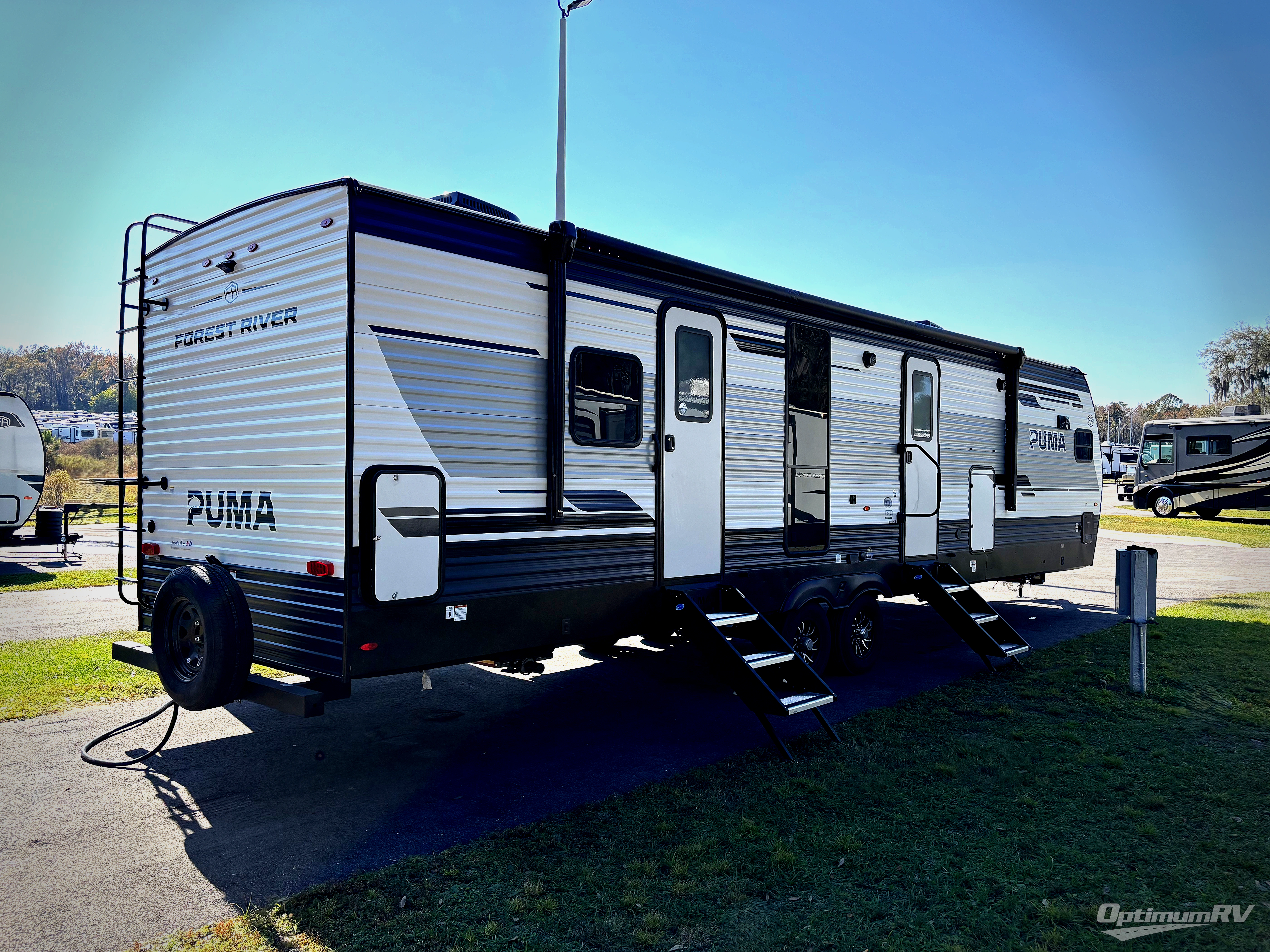 If you're looking for family-fun adventures, then you need one of these Forest River Puma travel trailers! They are built rugged, easy to tow, and jam packed with features. The Darco wrapped underbelly will help protect your unit, and the roof and side mount solar prep gives you the option to add off-grid power. Inside, the Congoleum linoleum will be easy to keep clean, and the night roller shades will provide privacy when it's time to turn in. You'll also enjoy an electric awning with an LED light strip plus an AM/FM/Bluetooth stereo and two outside speakers to keep the party going!