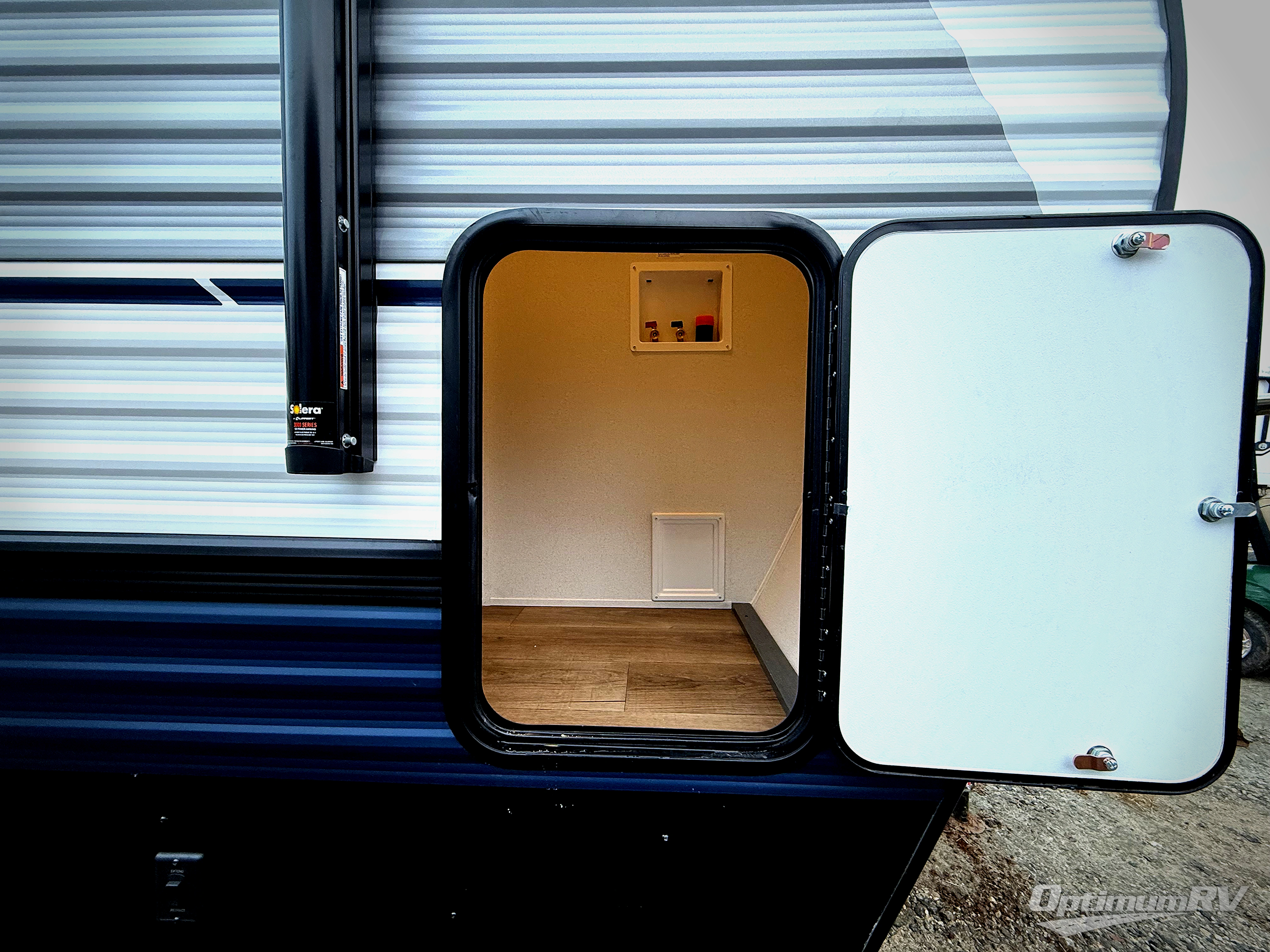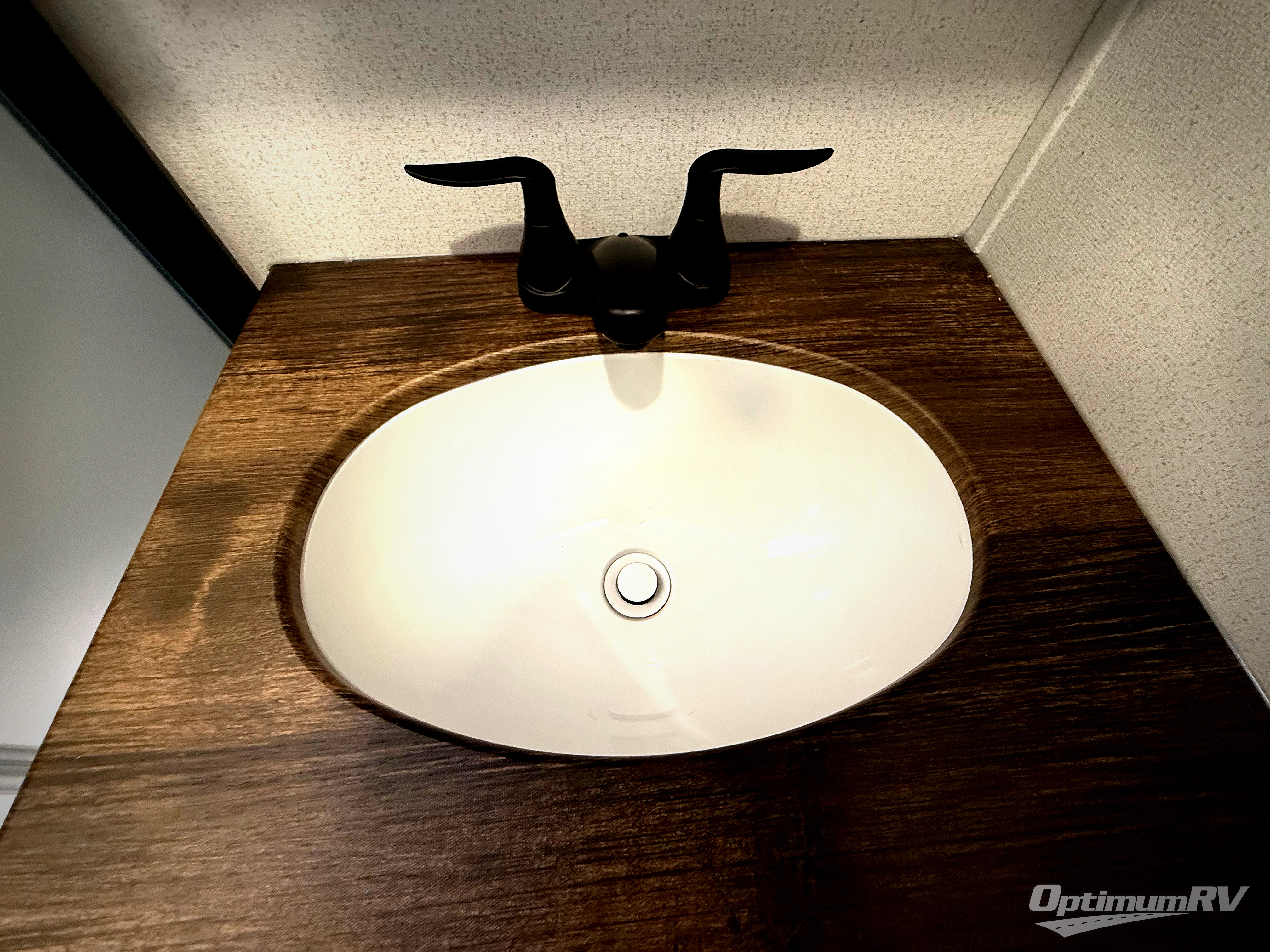 You will be the talk of the campground with this travel trailer! The front private bedroom has a queen bed slide across from a dresser and a front closet plus a second closet with washer and dryer prep. Freshen up each morning in the full bathroom with the 34" x 34" radius shower then head to the kitchen to fry up some eggs with the stainless-steel oven and range. You can enjoy your meals at the booth dinette, and the kitchen island will make your clean up easier with the sink that has a high-rise faucet and sprayer. The rear private bunkhouse has a 32" x 69" bunk above a jiffy sofa slide, a 36" x 69" bunk above a 36" x 71" bunk and a linen closet. Choose one of the outside kitchen options for even more convenience!