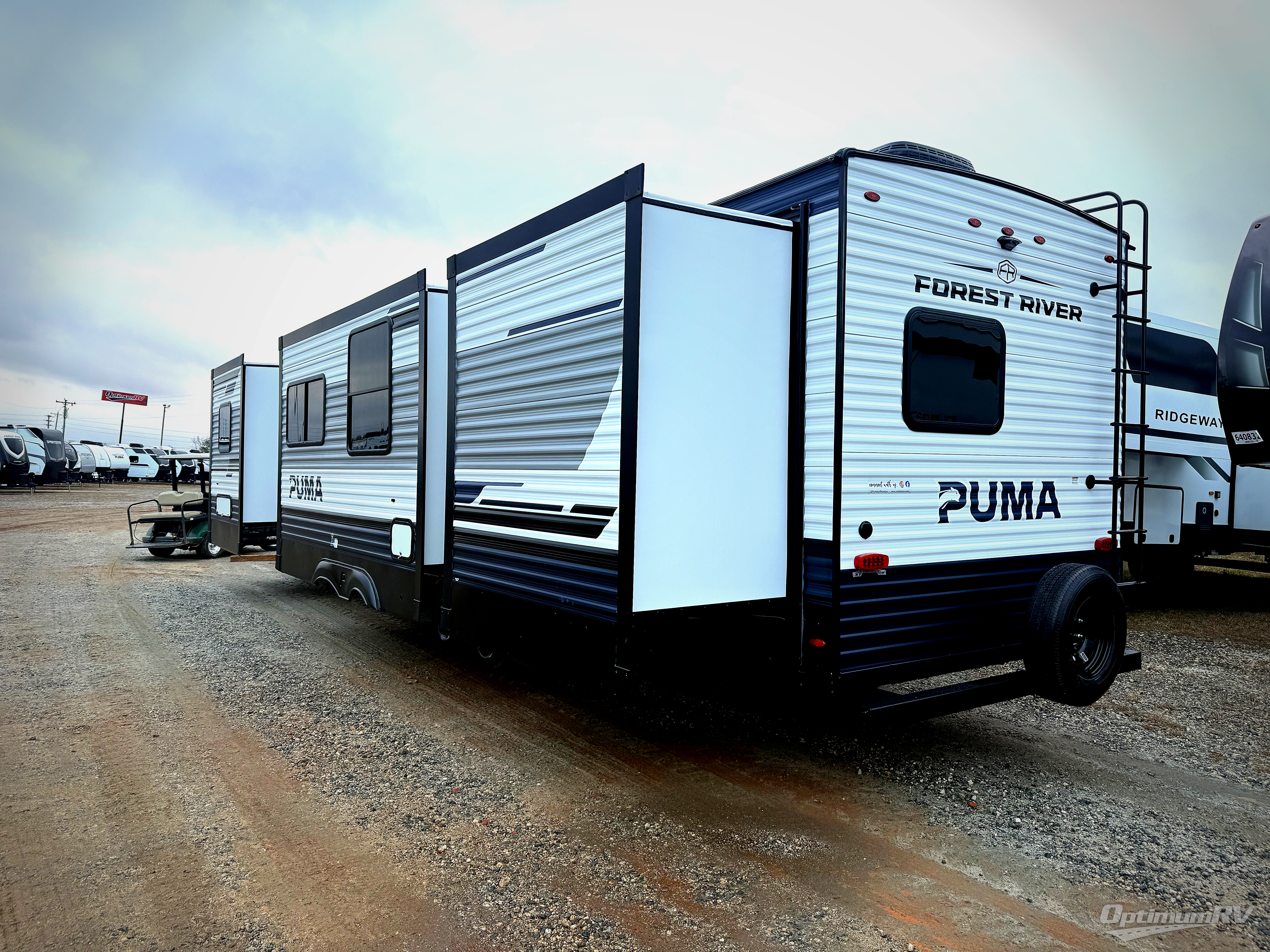 If you're looking for family-fun adventures, then you need one of these Forest River Puma travel trailers! They are built rugged, easy to tow, and jam packed with features. The Darco wrapped underbelly will help protect your unit, and the roof and side mount solar prep gives you the option to add off-grid power. Inside, the Congoleum linoleum will be easy to keep clean, and the night roller shades will provide privacy when it's time to turn in. You'll also enjoy an electric awning with an LED light strip plus an AM/FM/Bluetooth stereo and two outside speakers to keep the party going!