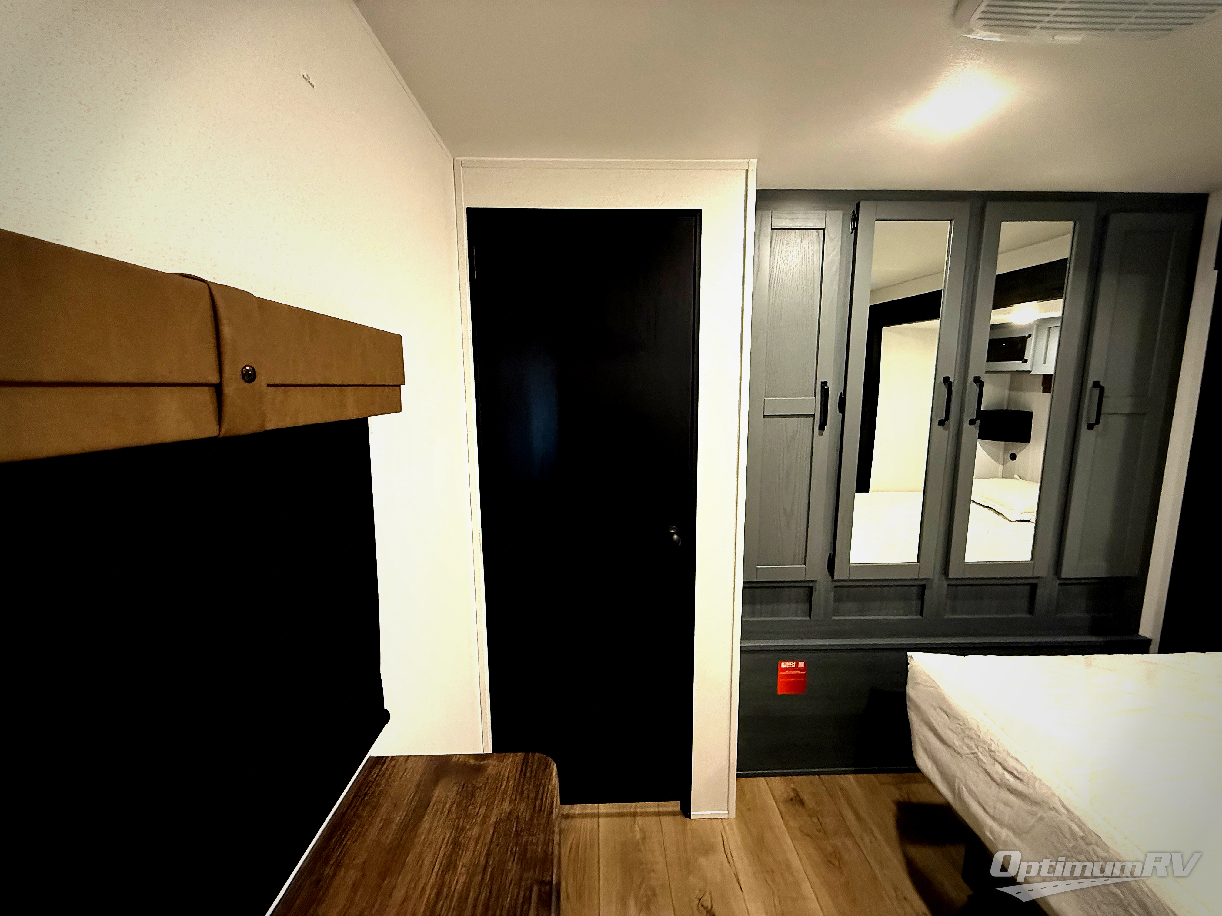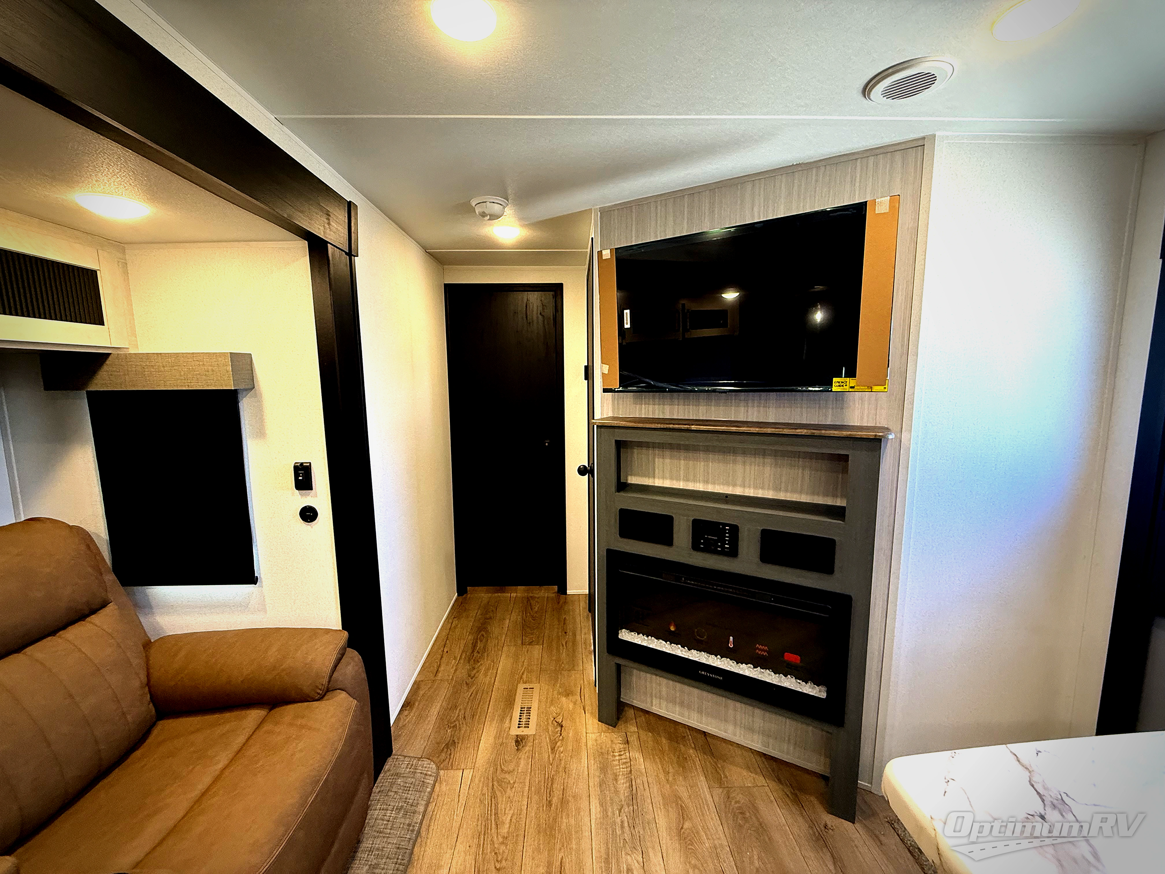 With dual entry doors and a bath and a half, you will have the ultimate in convenience with this travel trailer! The bedroom also has a front closet to keep your clothes looking their best and a queen bed slide for you to sleep your best. Everyone can freshen up in the full bathroom with the 34" x 34" radius shower and fill their bellies with scrambled eggs cooked with the stainless steel oven and range. Enjoy your meals, play games, and even sleep at the booth dinette or relax on the sofa while watching a movie with the entertainment center and fireplace. And your guests will love the rear private bunkhouse with three bunks, a jiffy sofa, and a slide out for more space! This model also includes an optional outside mini kitchen with a griddle!