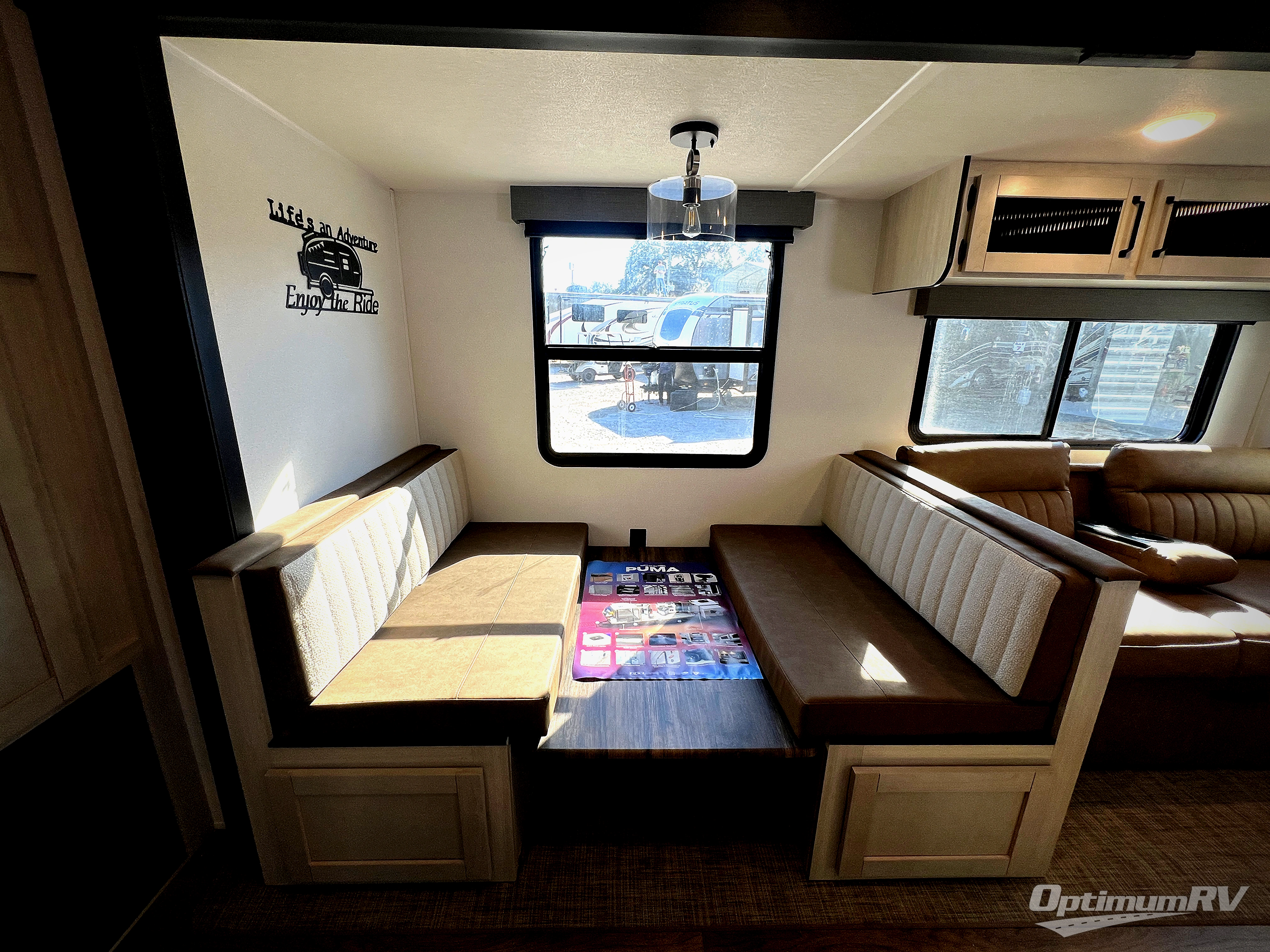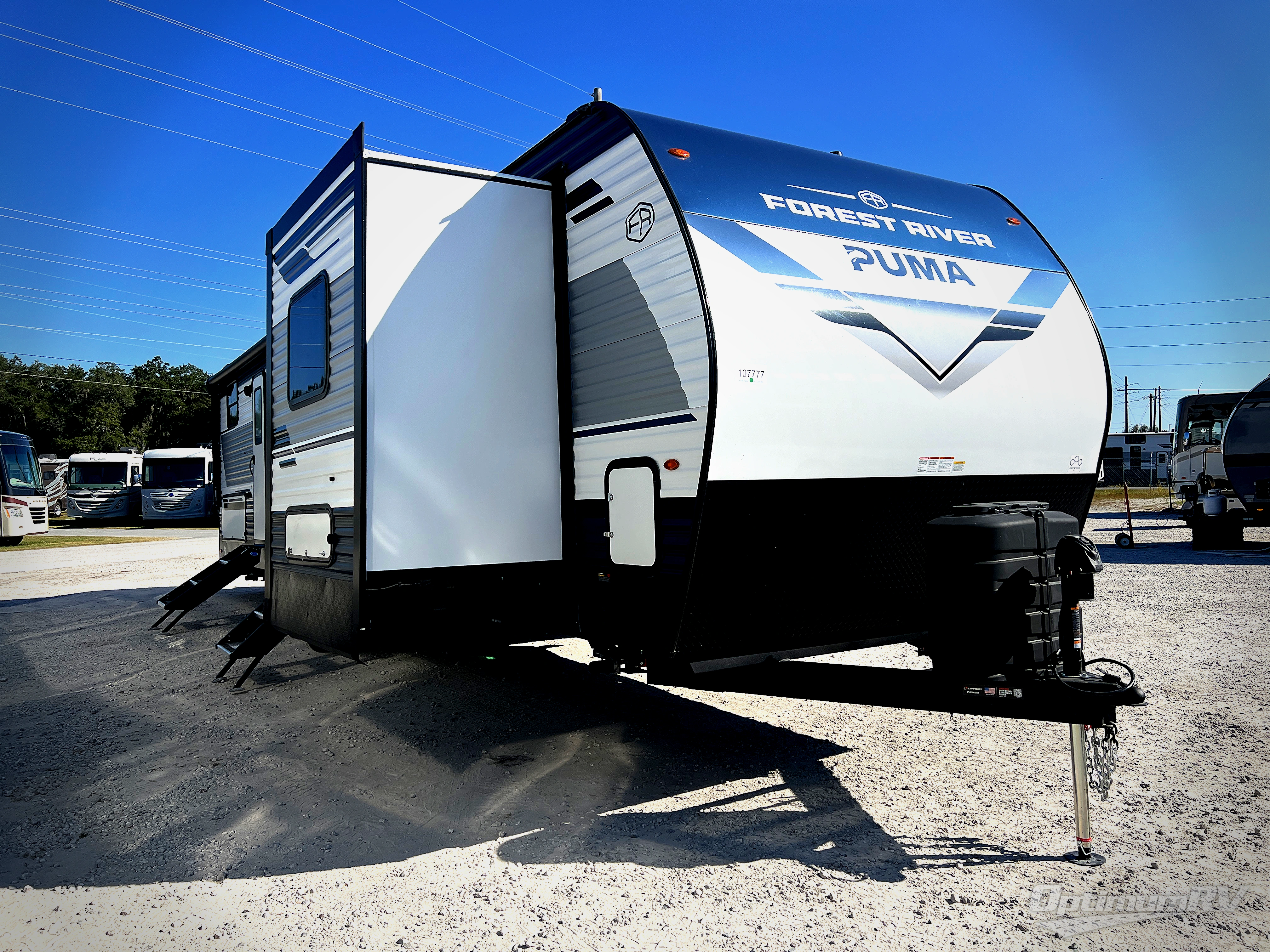 If you're looking for family-fun adventures, then you need one of these Forest River Puma travel trailers! They are built rugged, easy to tow, and jam packed with features. The Darco wrapped underbelly will help protect your unit, and the roof and side mount solar prep gives you the option to add off-grid power. Inside, the Congoleum linoleum will be easy to keep clean, and the night roller shades will provide privacy when it's time to turn in. You'll also enjoy an electric awning with an LED light strip plus an AM/FM/Bluetooth stereo and two outside speakers to keep the party going!
