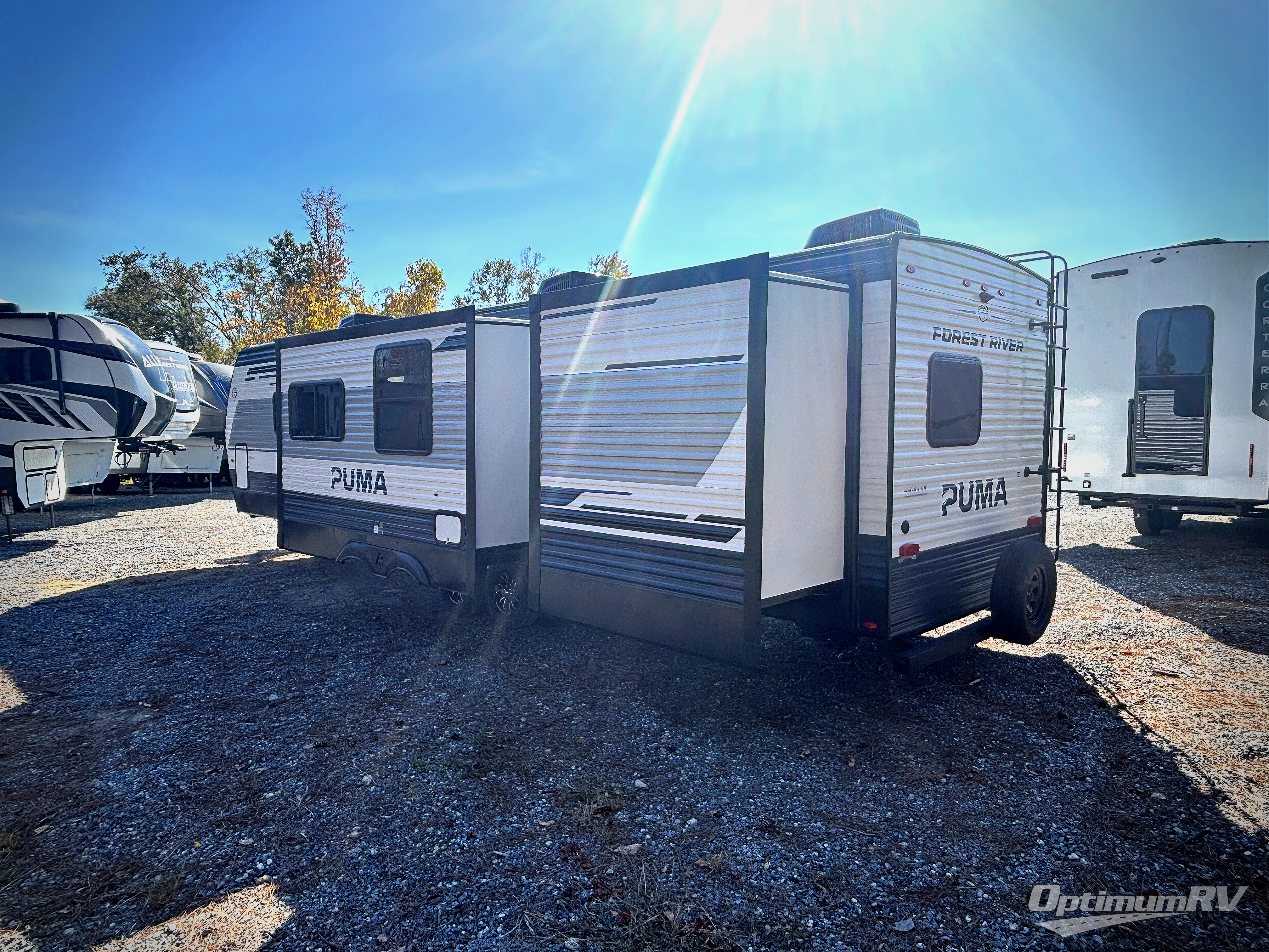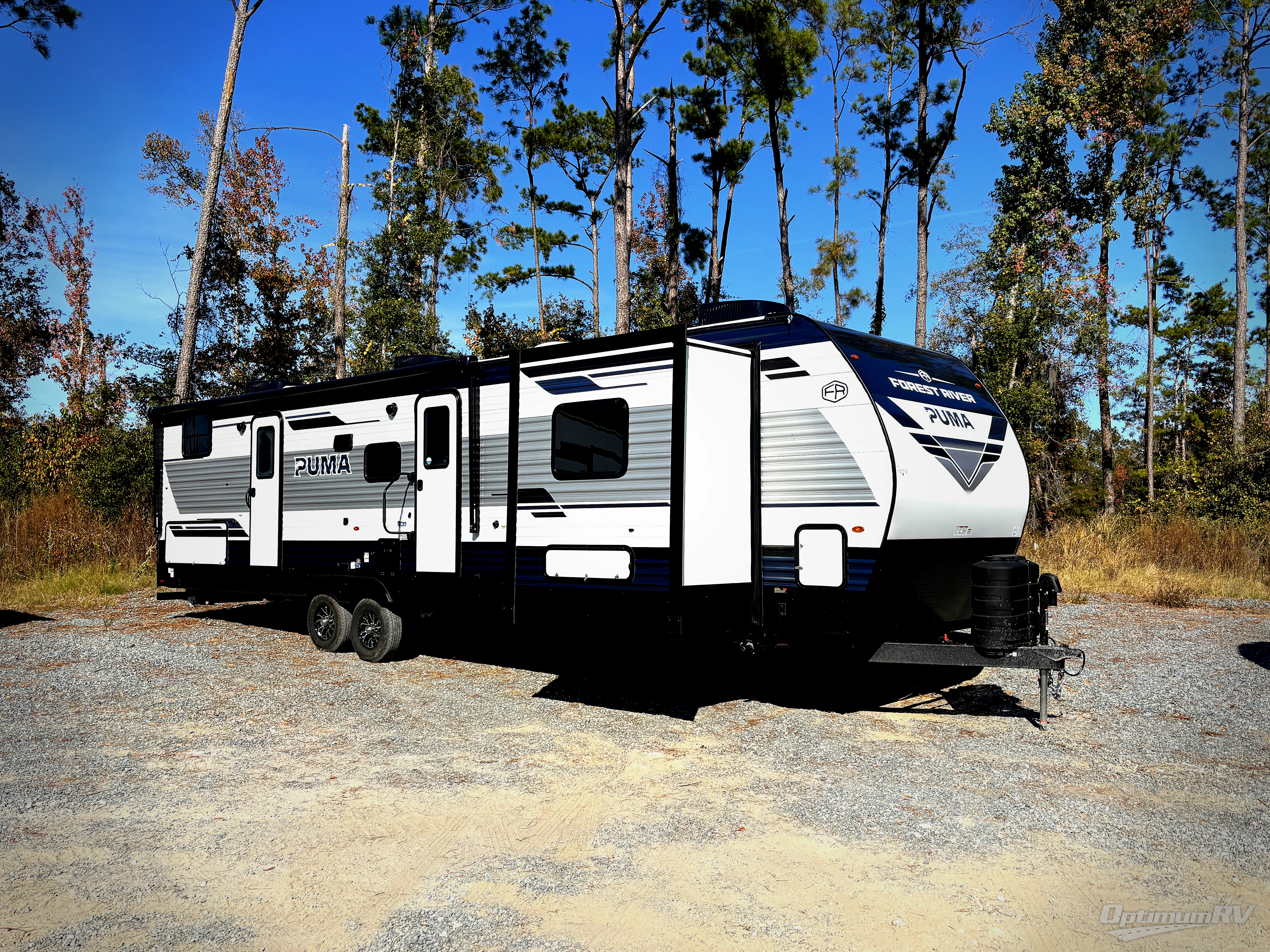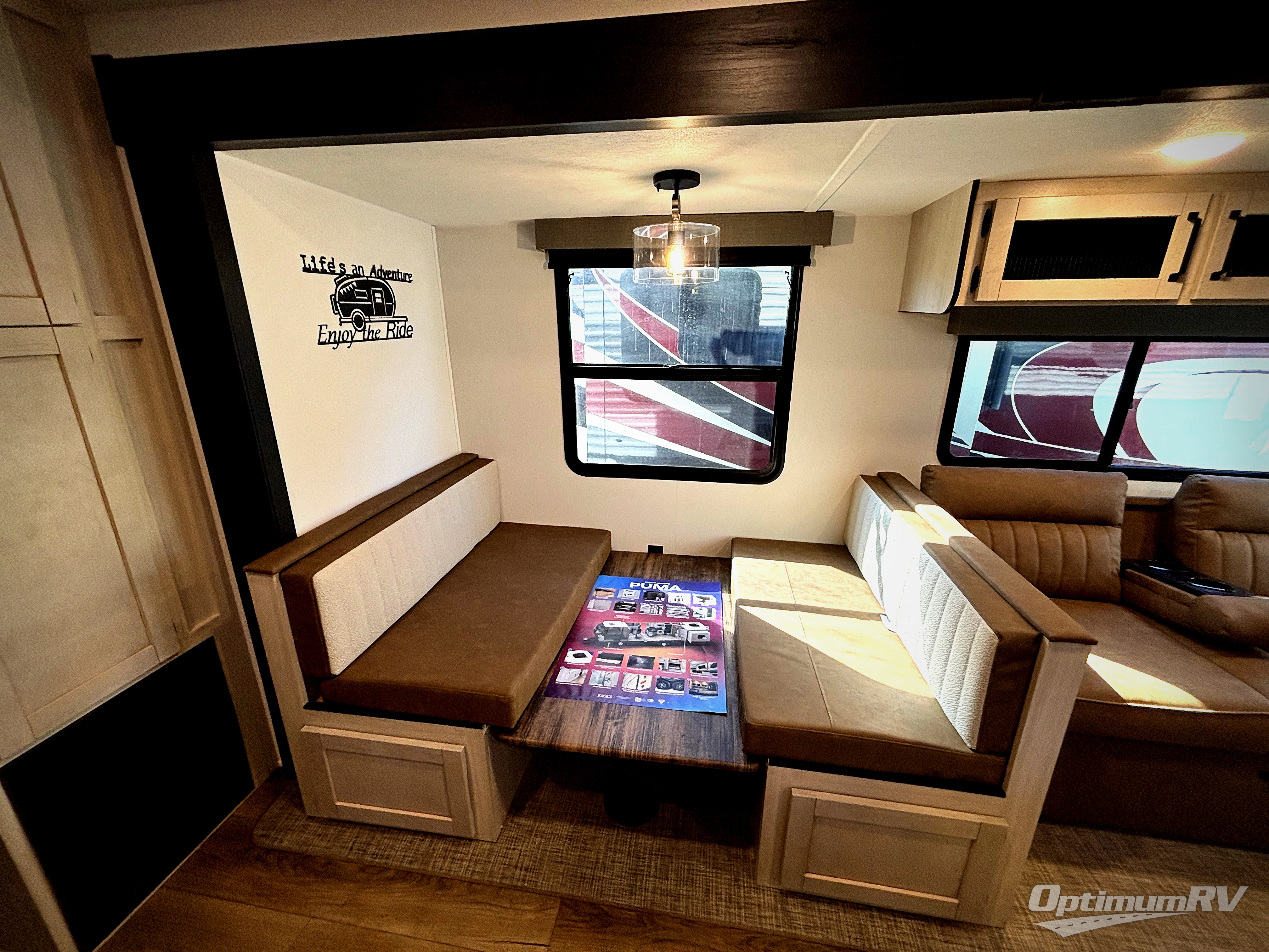 If you're looking for family-fun adventures, then you need one of these Forest River Puma travel trailers! They are built rugged, easy to tow, and jam packed with features. The Darco wrapped underbelly will help protect your unit, and the roof and side mount solar prep gives you the option to add off-grid power. Inside, the Congoleum linoleum will be easy to keep clean, and the night roller shades will provide privacy when it's time to turn in. You'll also enjoy an electric awning with an LED light strip plus an AM/FM/Bluetooth stereo and two outside speakers to keep the party going!