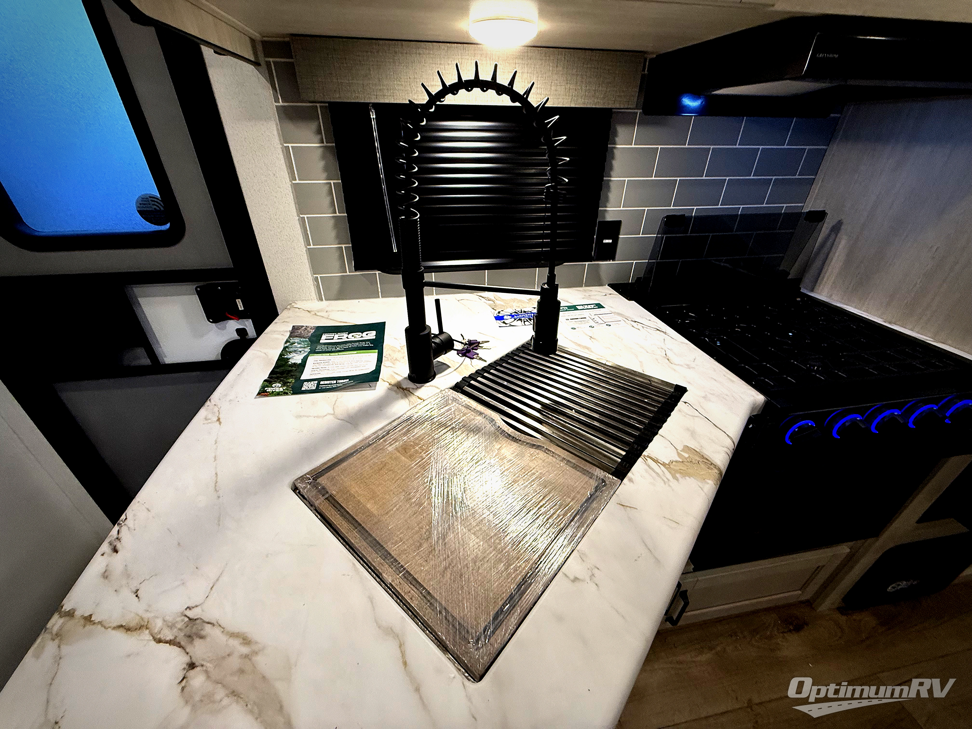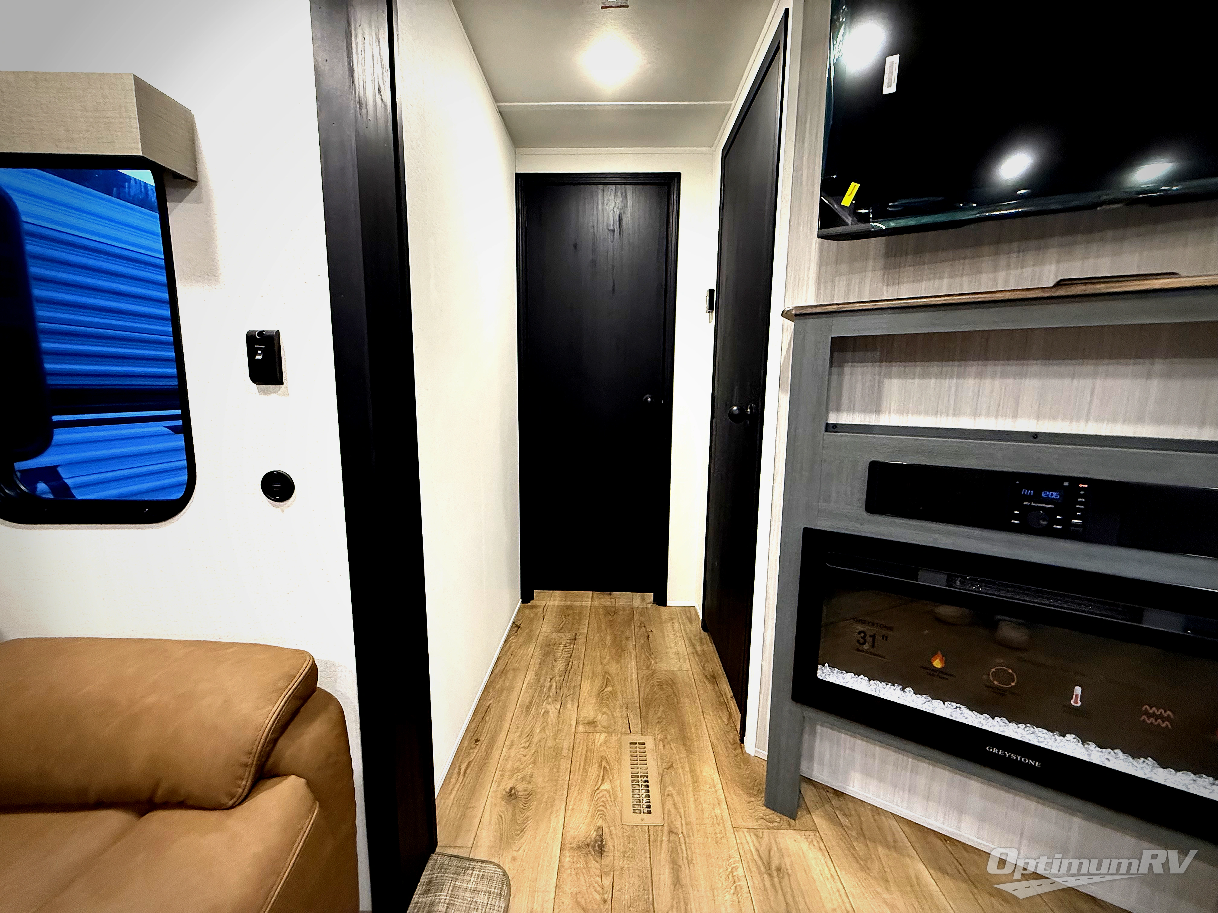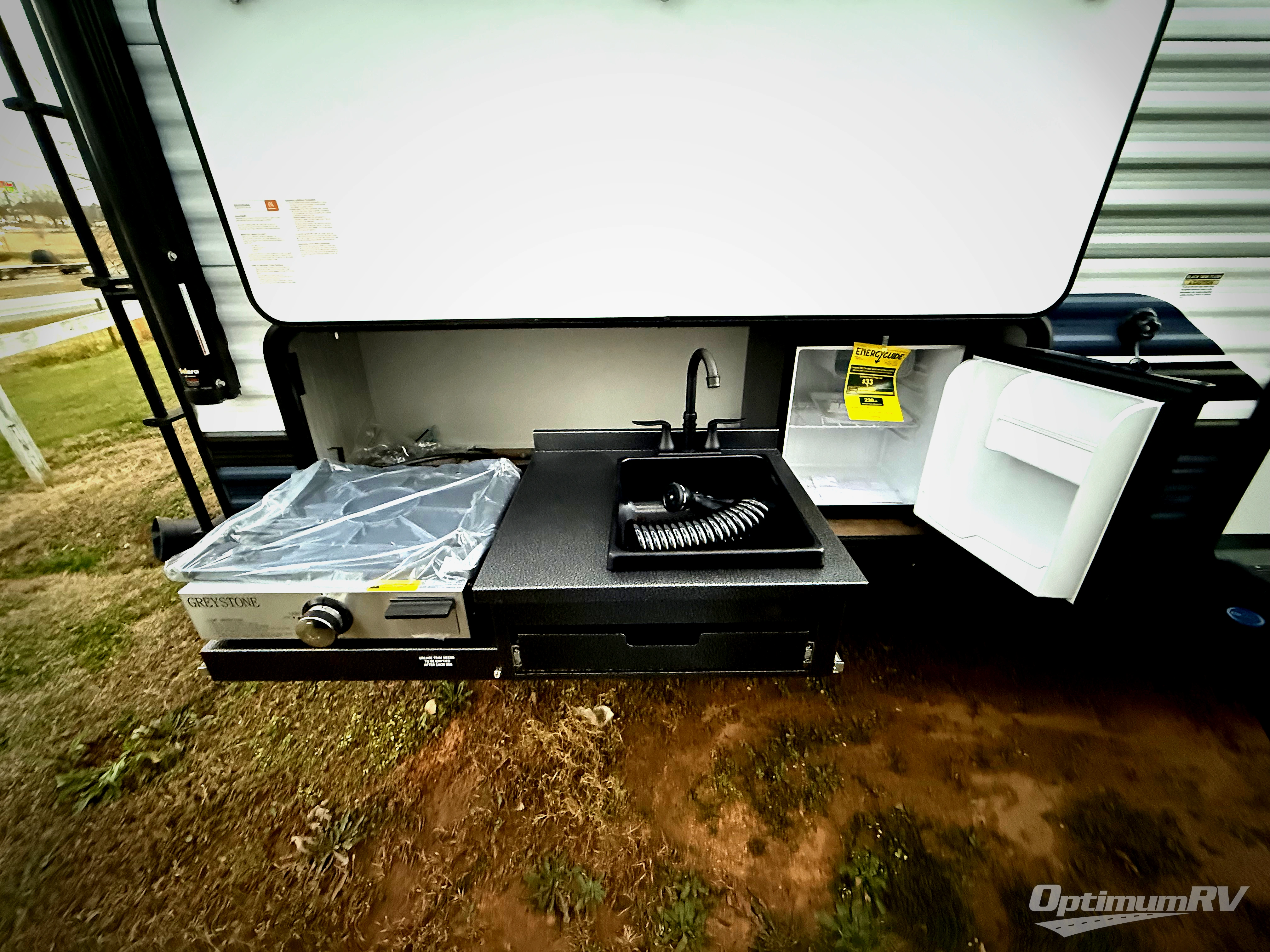 With dual entry doors and a bath and a half, you will have the ultimate in convenience with this travel trailer! The bedroom also has a front closet to keep your clothes looking their best and a queen bed slide for you to sleep your best. Everyone can freshen up in the full bathroom with the 34" x 34" radius shower and fill their bellies with scrambled eggs cooked with the stainless steel oven and range. Enjoy your meals, play games, and even sleep at the booth dinette or relax on the sofa while watching a movie with the entertainment center and fireplace. And your guests will love the rear private bunkhouse with three bunks, a jiffy sofa, and a slide out for more space! This model also includes an optional outside mini kitchen with a griddle!