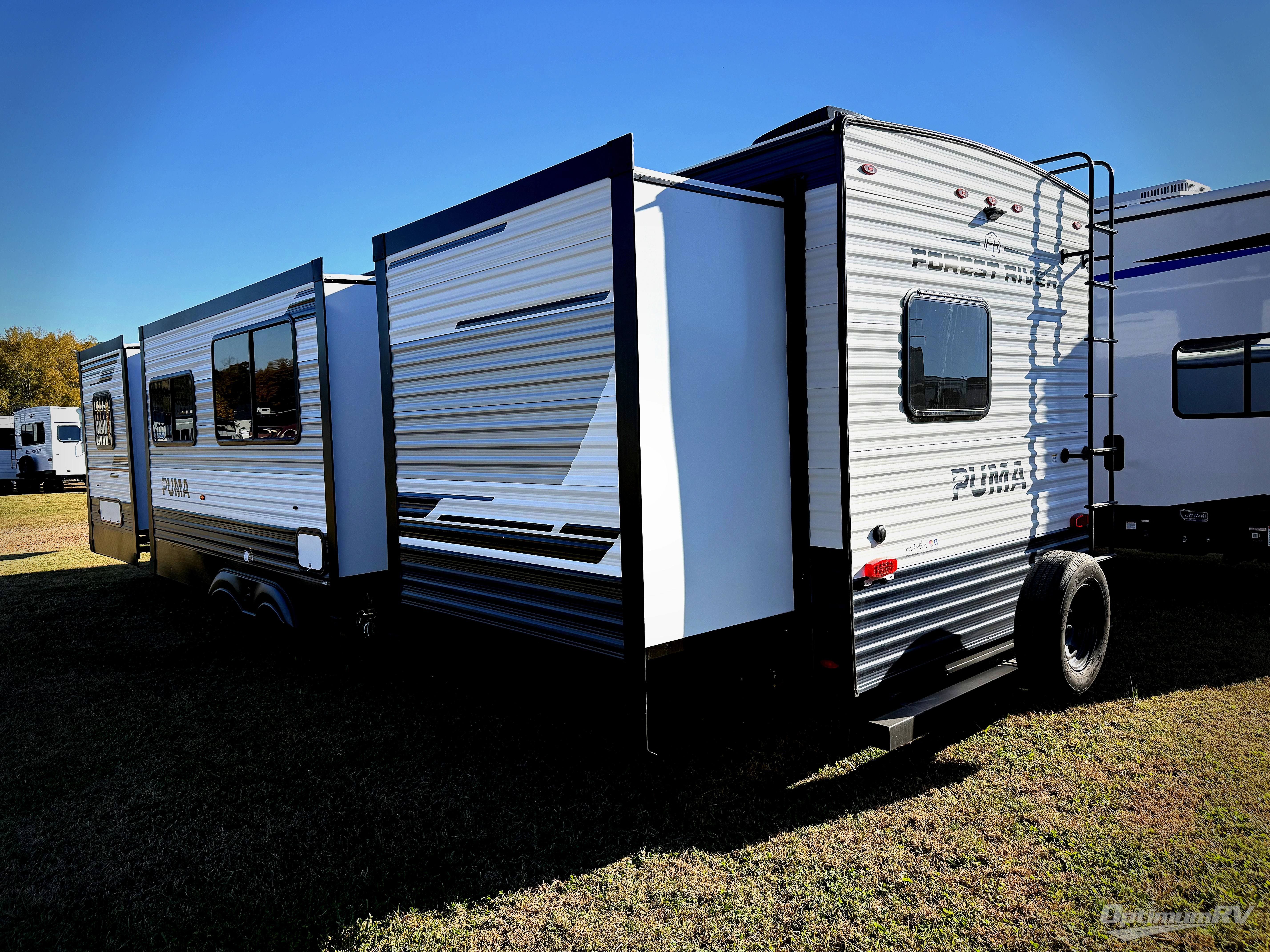 If you're looking for family-fun adventures then you need one of these Palomino Puma fifth wheels or travel trailers! They are built rugged, easy to tow, and jam packed with features. The Darco wrapped underbelly will protect your units vitals and the AlphaPly roofing membrane covers it. They also have new aluminum wheels and a powder coated steel I-beam frame. Inside, the Congoleum linoleum will be easy to keep clean, and the night roller shades will provide privacy when it's time to turn in. You'll also enjoy an electric awning with an LED light strip plus an AM/FM/Bluetooth stereo and two outside speakers to keep the party going!