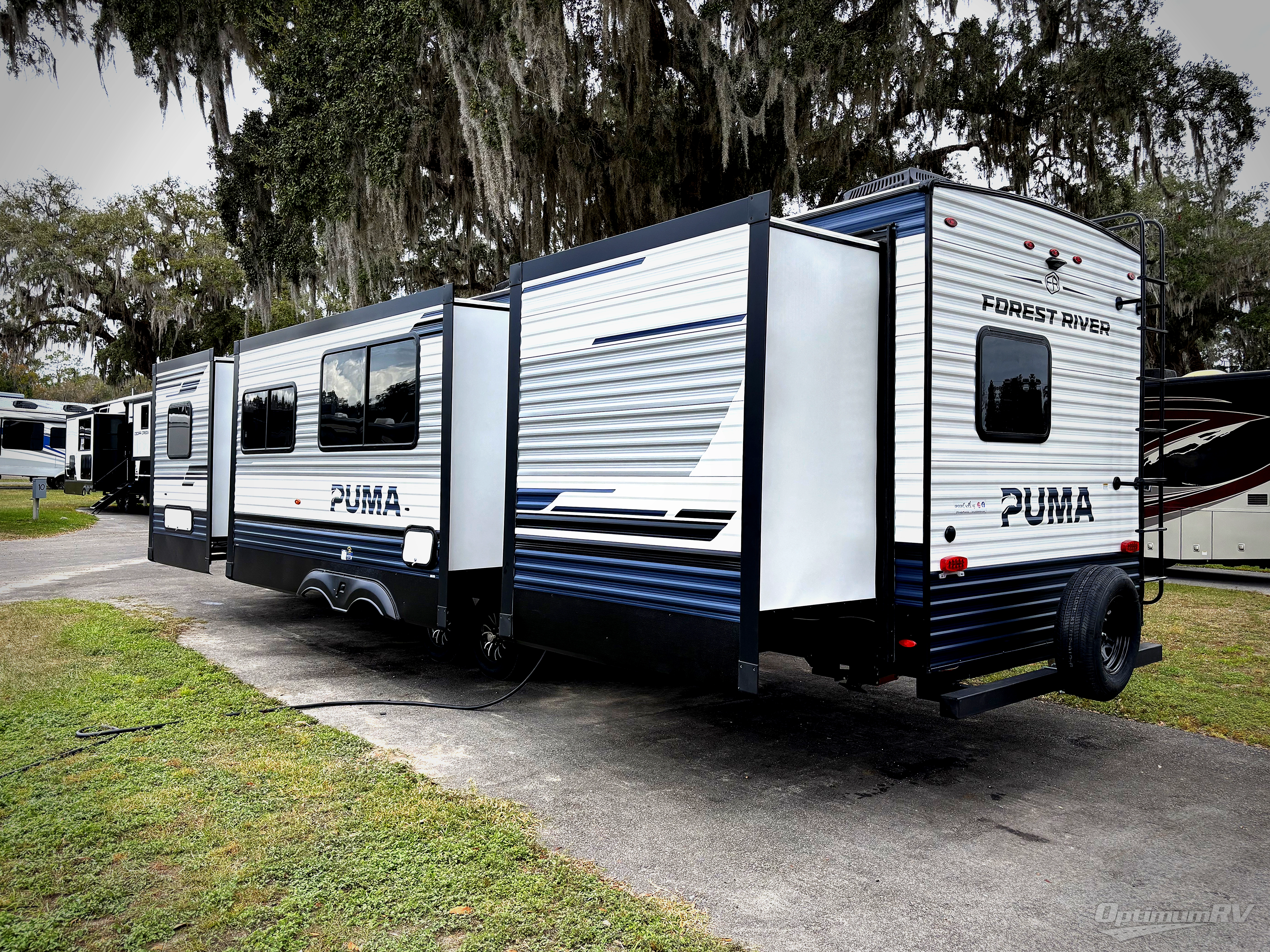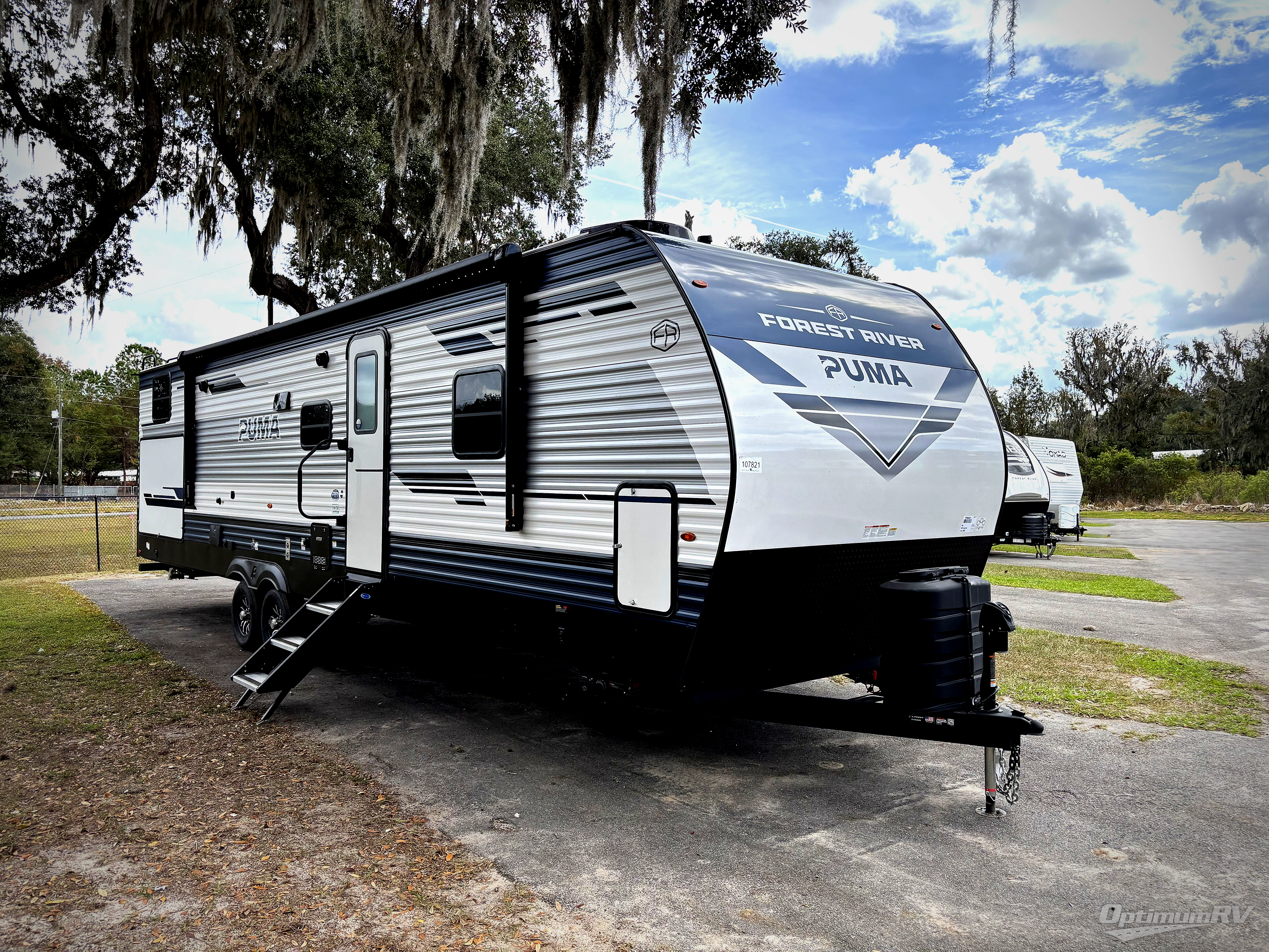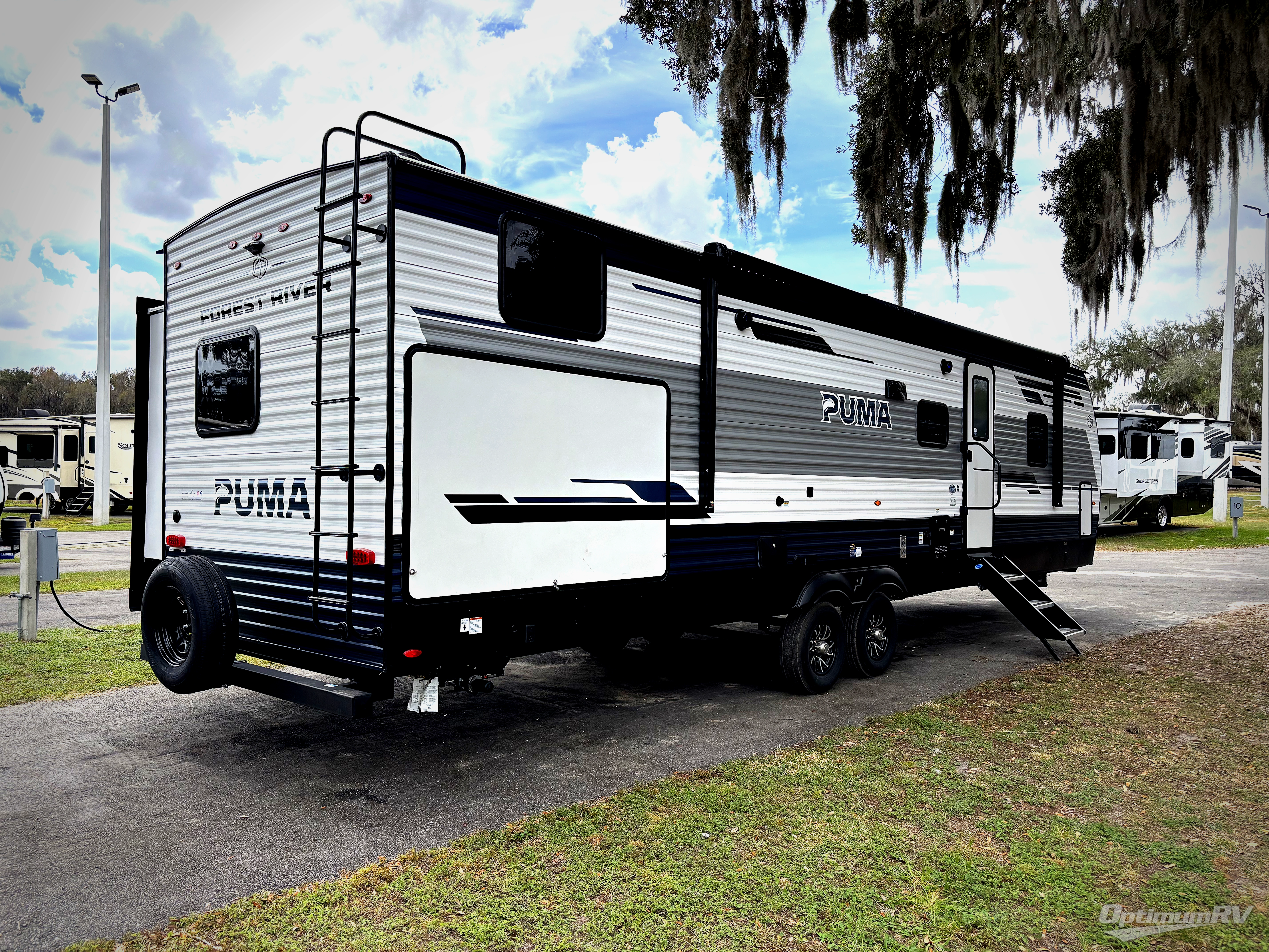 If you're looking for family-fun adventures, then you need one of these Forest River Puma travel trailers! They are built rugged, easy to tow, and jam packed with features. The Darco wrapped underbelly will help protect your unit, and the roof and side mount solar prep gives you the option to add off-grid power. Inside, the Congoleum linoleum will be easy to keep clean, and the night roller shades will provide privacy when it's time to turn in. You'll also enjoy an electric awning with an LED light strip plus an AM/FM/Bluetooth stereo and two outside speakers to keep the party going!