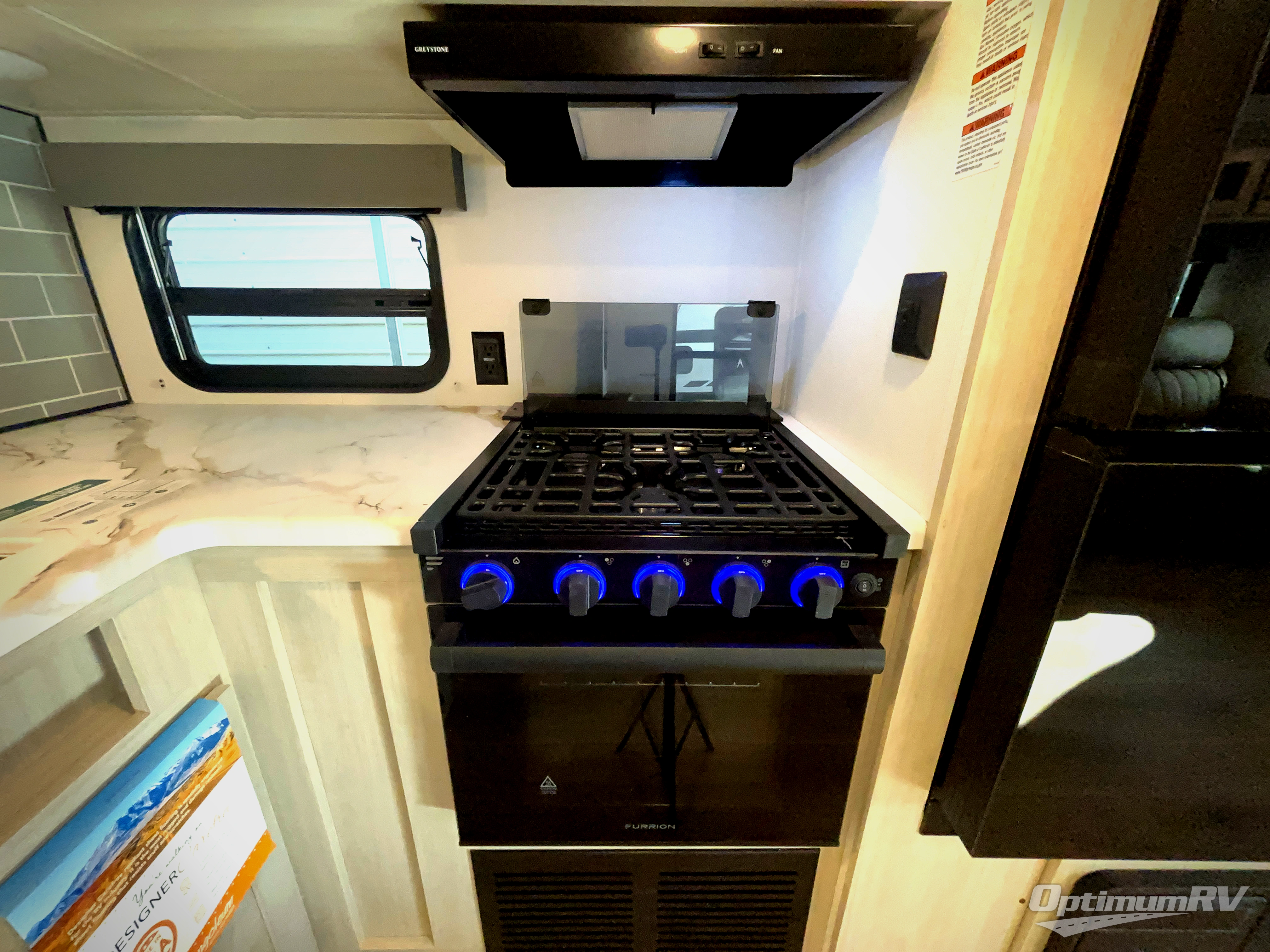 This travel trailer is perfect for camping with a larger group of friends or if you have older kids since there are two private bunkrooms! Each room includes a bunk bed and storage space for clothes, shoes, and more. You'll enjoy your own space up front in the master bedroom that includes a queen bed, dual shirt closets, and one of the dual entry doors to the unit for added convenience. Everyone can come together in the combined living area and kitchen that includes a large slide out with a sofa and booth dinette, plus there is a fireplace to make this space feel more like home. A full kitchen inside lets you create home-cooked meals each day, and you can choose to add the optional micro kitchen with a griddle for a pancake breakfast outdoors!