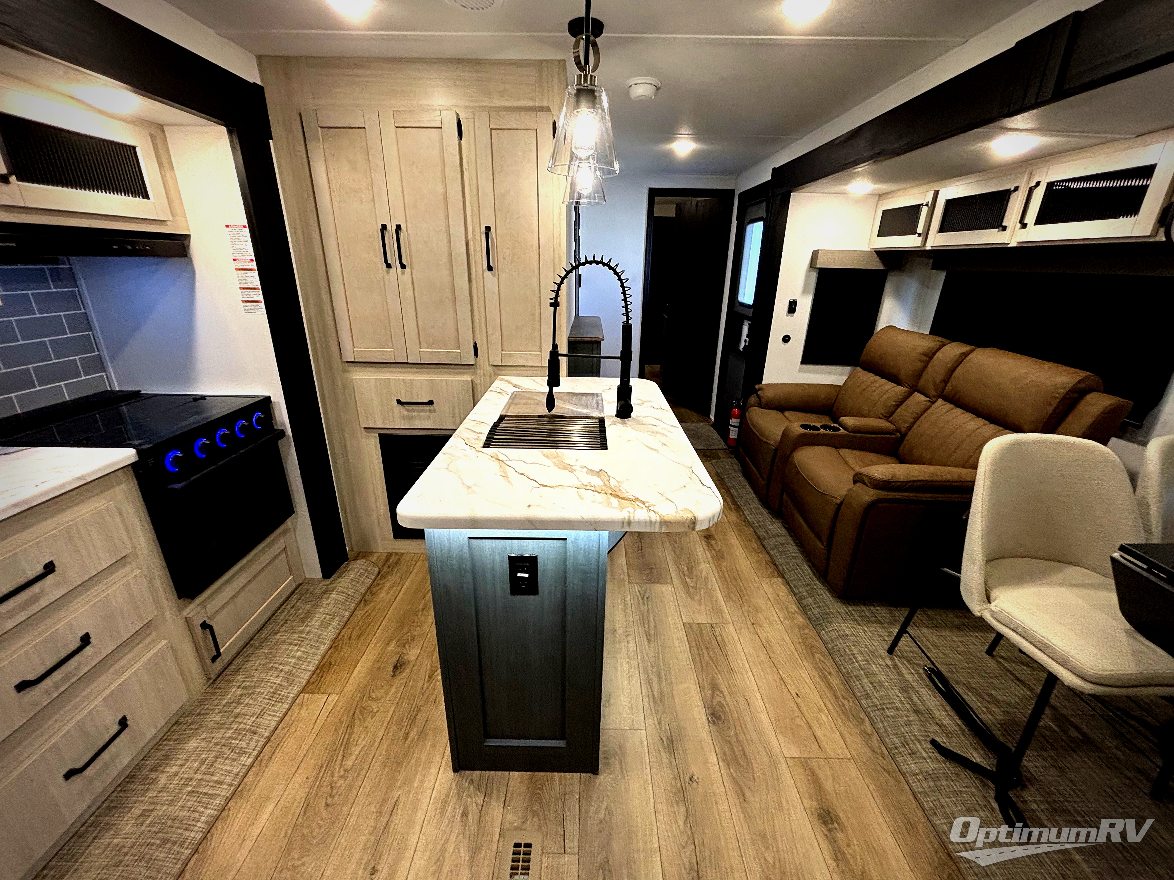 If you enjoy camping with friends or family, this travel trailer will be perfect for you! There are two bedrooms with queen bed slide outs and storage space, plus the rear bedroom includes its own full bath for added comfort. A bunkhouse suite option is also available if you choose the jiffy sofa with a bunk in place of the queen bed in the rear bedroom. Everyone can meet in the combined kitchen and living area that includes a counter peninsula, a spacious pantry, all the kitchen appliances to cook meals, plus a table with chairs and bench seating. There is also a sofa with overhead storage for more seating and sleeping space. Don't let this impressive travel trailer slip away!