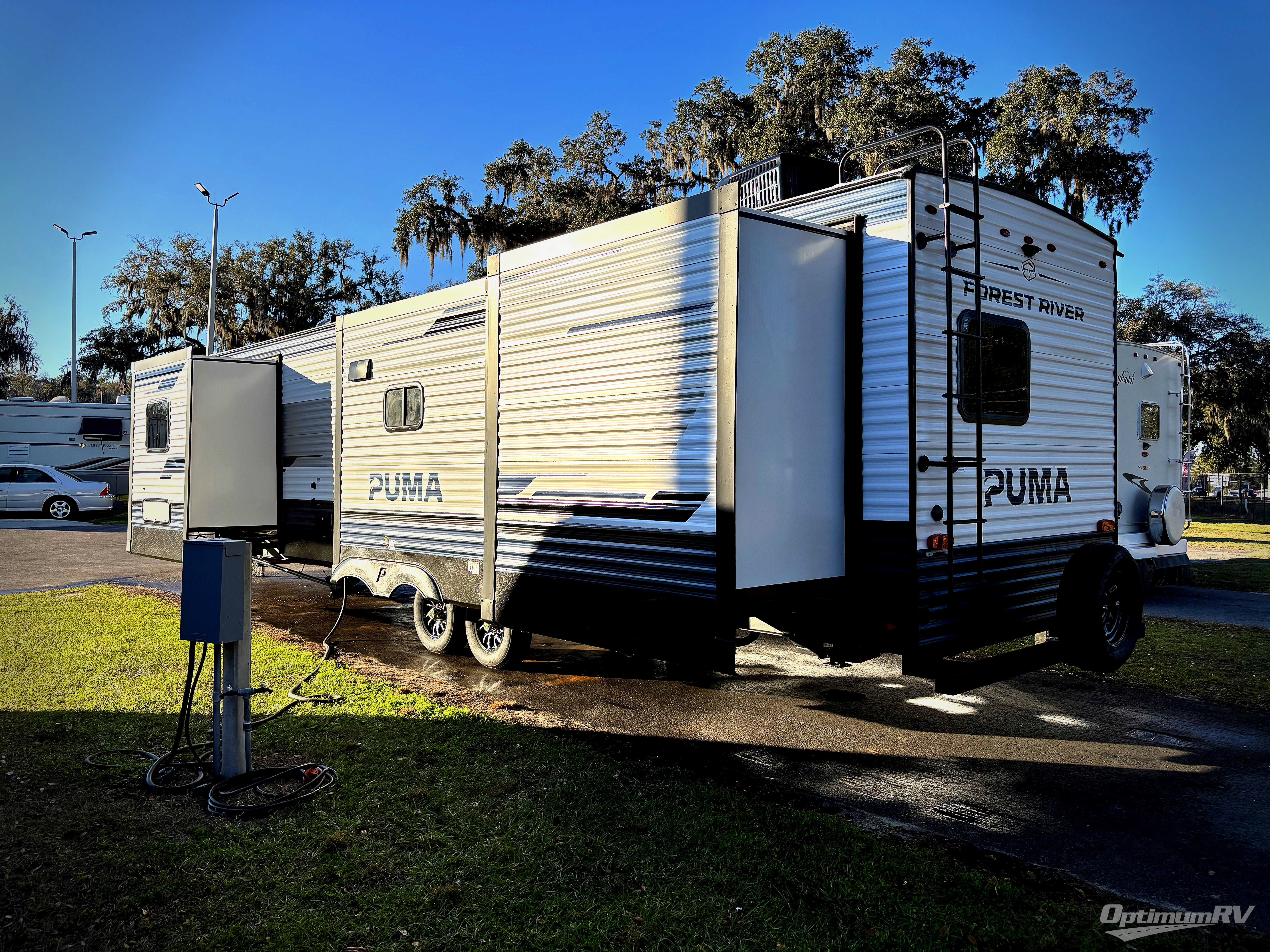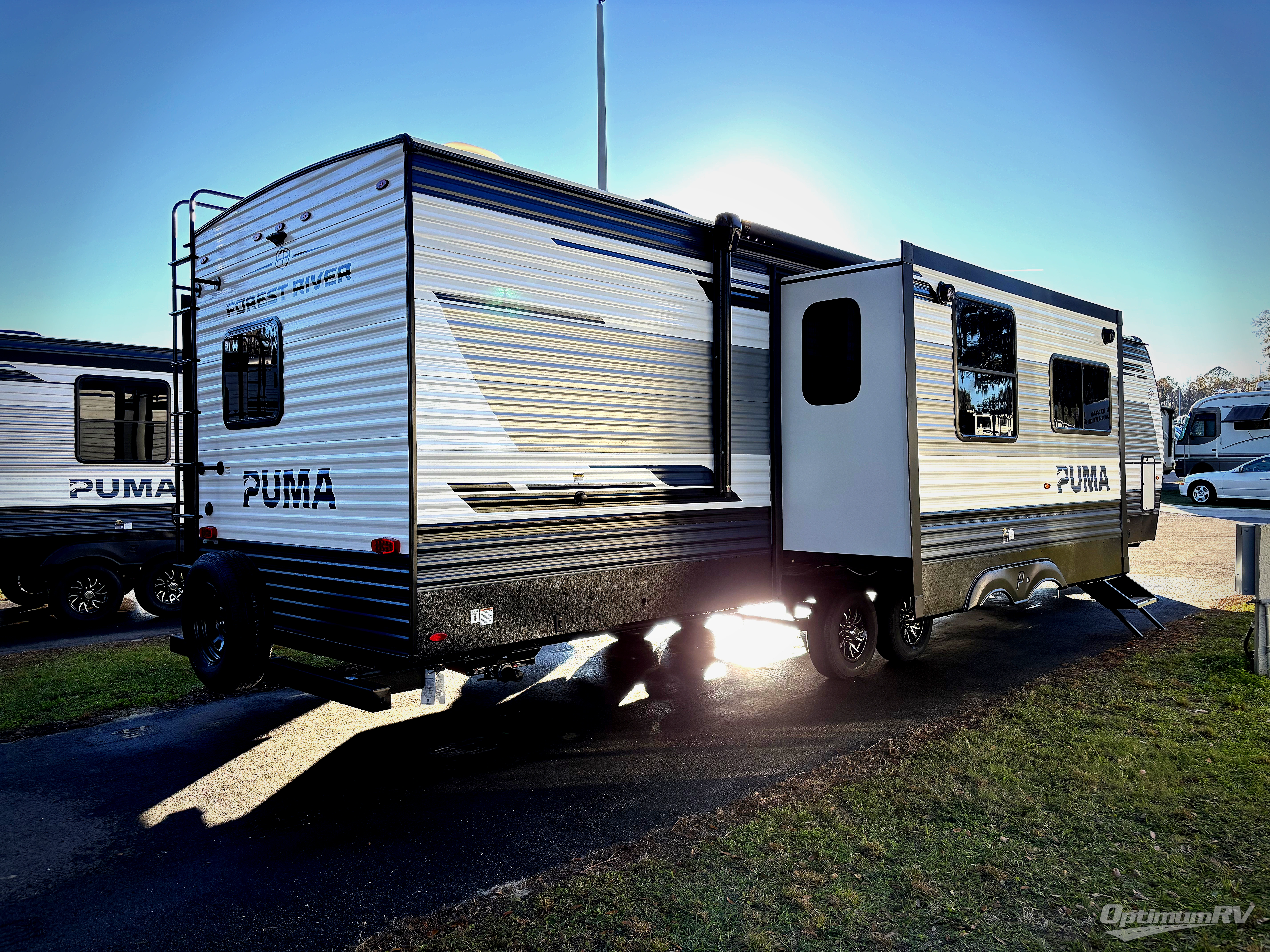 If you're looking for family-fun adventures, then you need one of these Forest River Puma travel trailers! They are built rugged, easy to tow, and jam packed with features. The Darco wrapped underbelly will help protect your unit, and the roof and side mount solar prep gives you the option to add off-grid power. Inside, the Congoleum linoleum will be easy to keep clean, and the night roller shades will provide privacy when it's time to turn in. You'll also enjoy an electric awning with an LED light strip plus an AM/FM/Bluetooth stereo and two outside speakers to keep the party going!