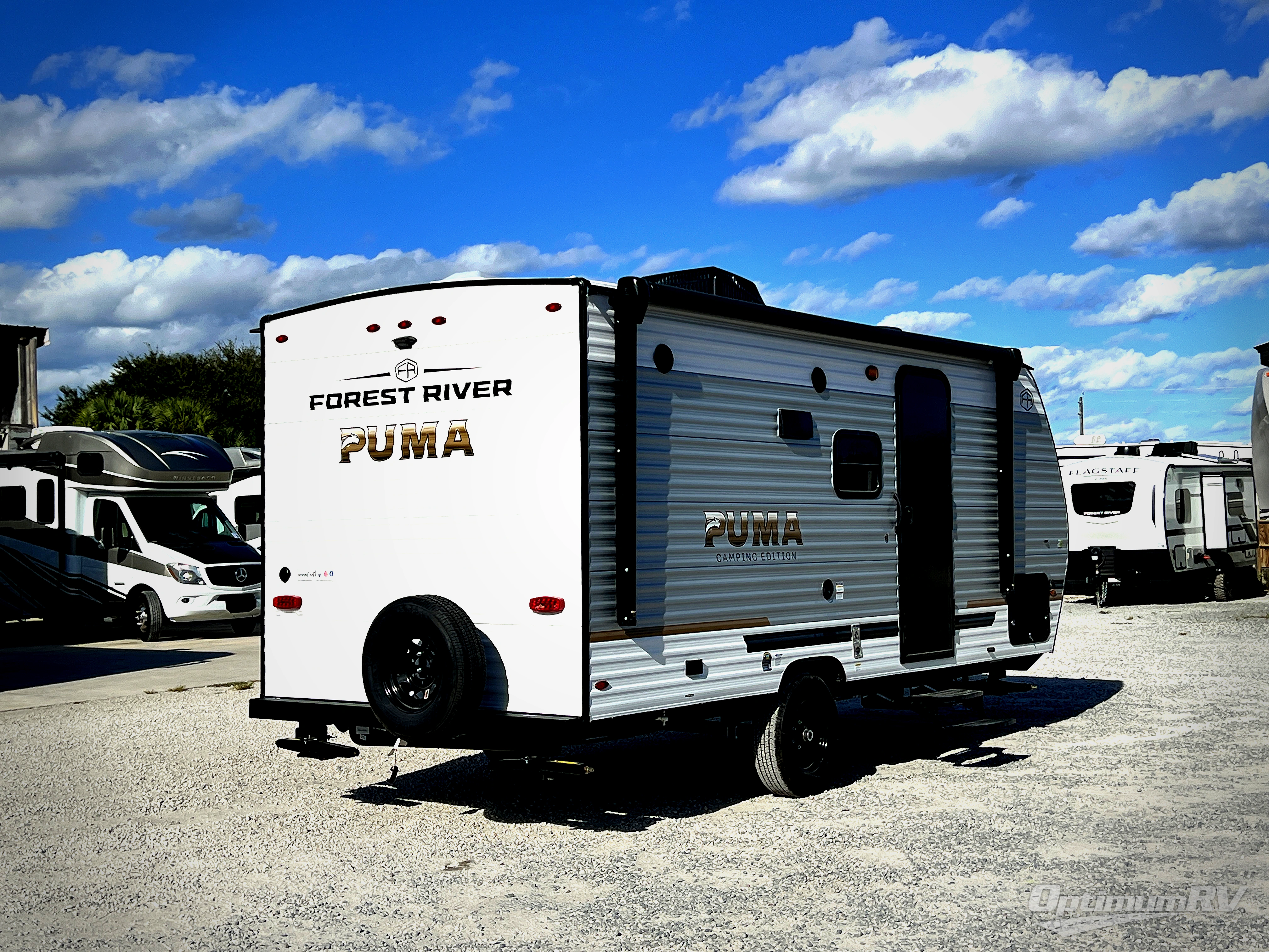 The Puma Camping Edition by Palomino offer an affordable travel trailer for rookie campers or seasoned RVers! They are built with 5/8" tongue and groove plywood flooring and a front diamond plate for added protection. There are also exterior clamp style door latches, back up camera prep, and 20 lb. LP bottles. Head inside to find Thermofoil countertops with a smooth drop edge, bedroom USB ports and outlets, and a GE appliance and kitchen package.
