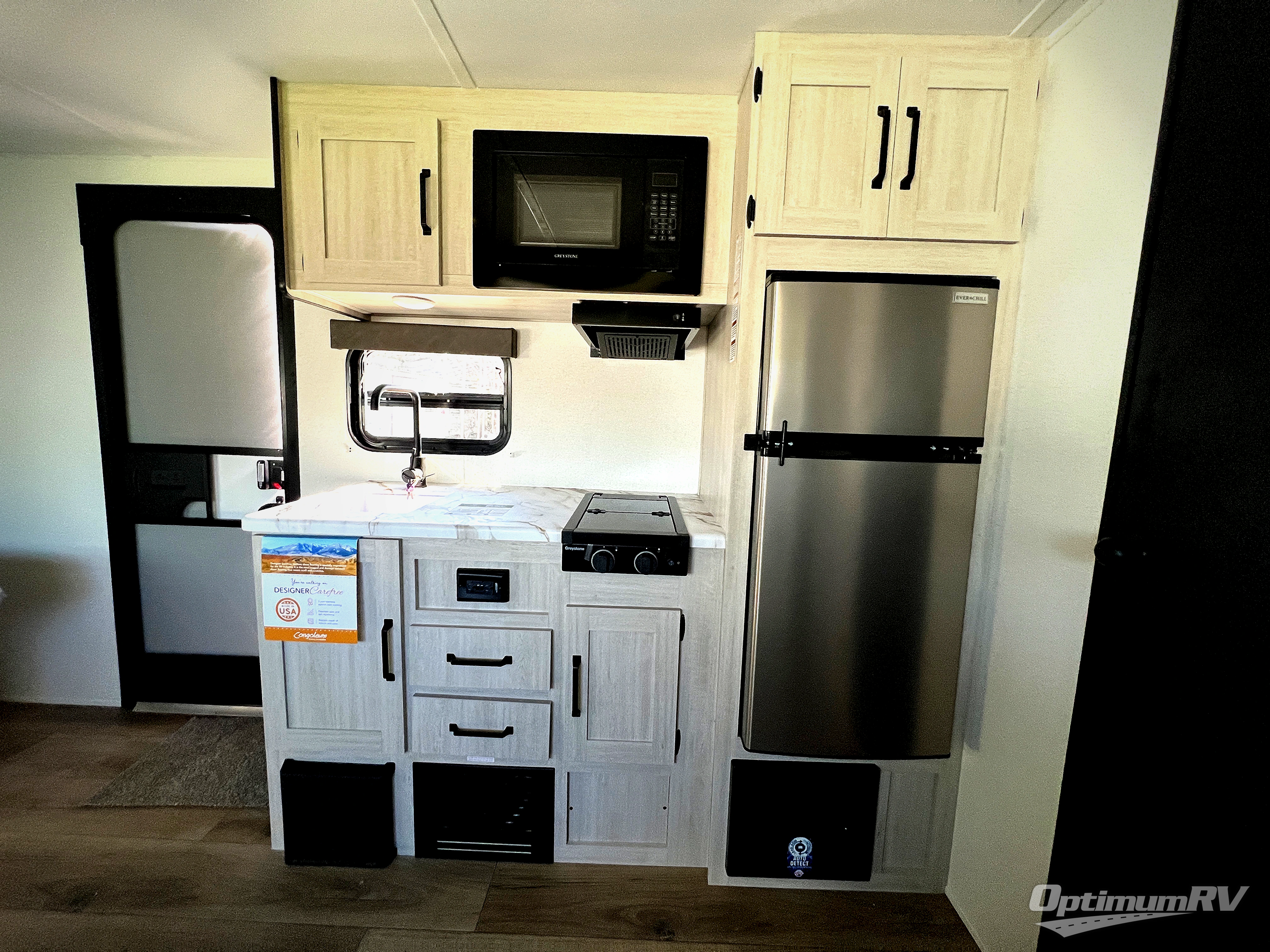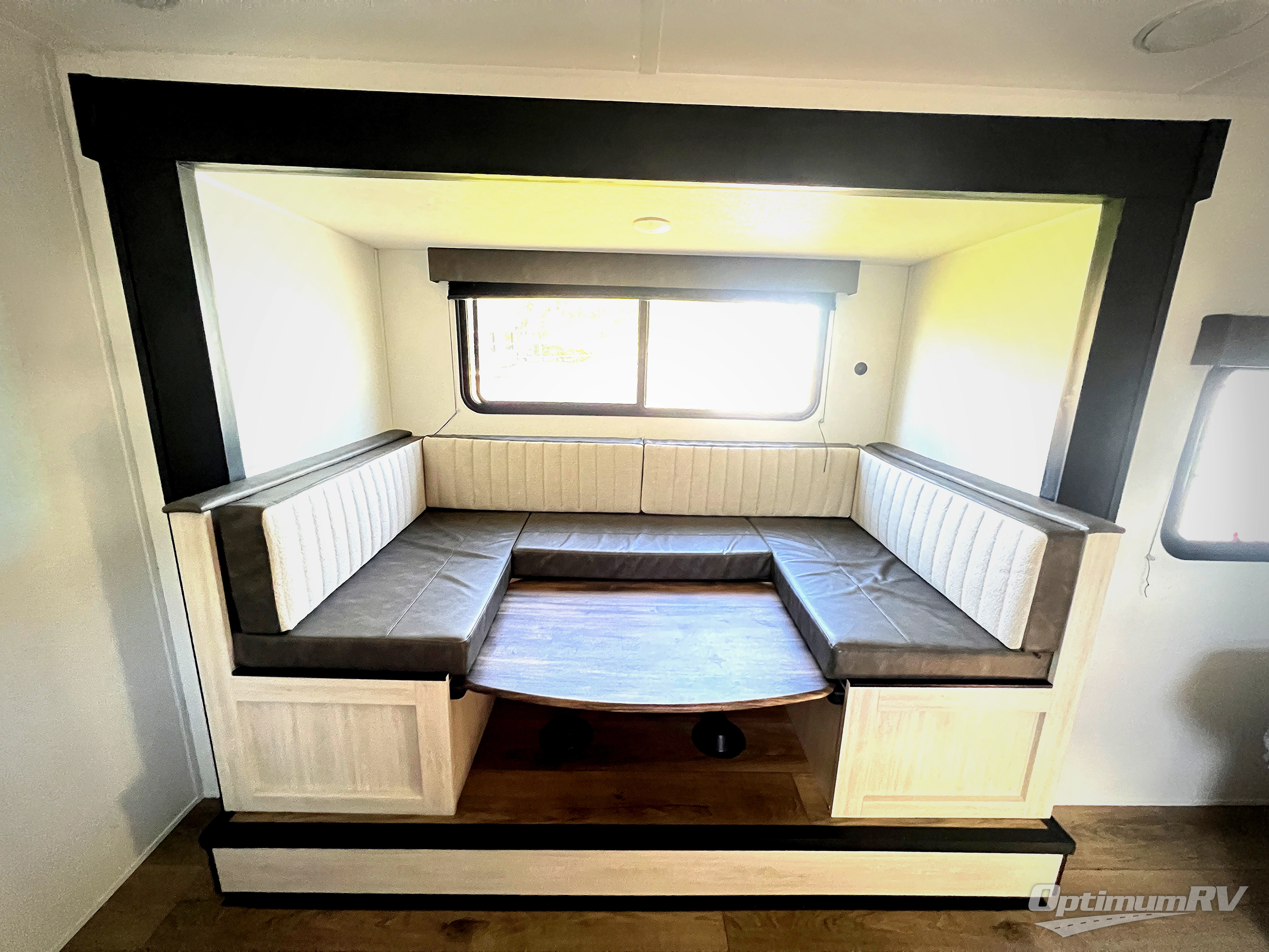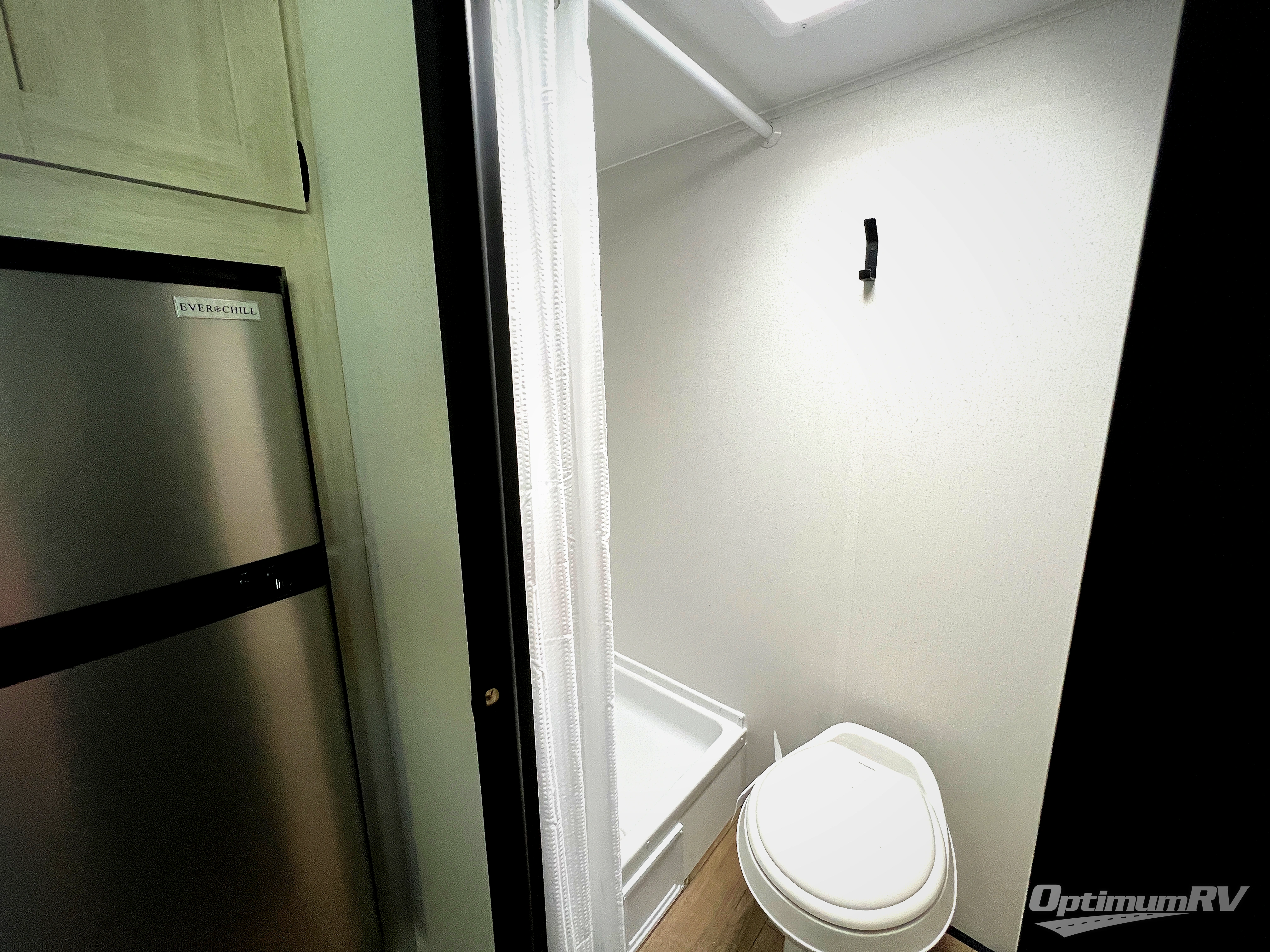 This travel trailer includes everything you need for camping trips at the lake. You'll sleep great each night on the front RV queen bed, or you can choose the optional Murphy bed with a sofa if you need more seating space during the day. The chef of your group can make meals on the two burner cooktop or in the microwave oven, then you can dine around the U-shaped dinette slide. A full rear bath includes a 36" x 30" shower, a toilet, vanity, plus a medicine cabinet to keep your things organized.