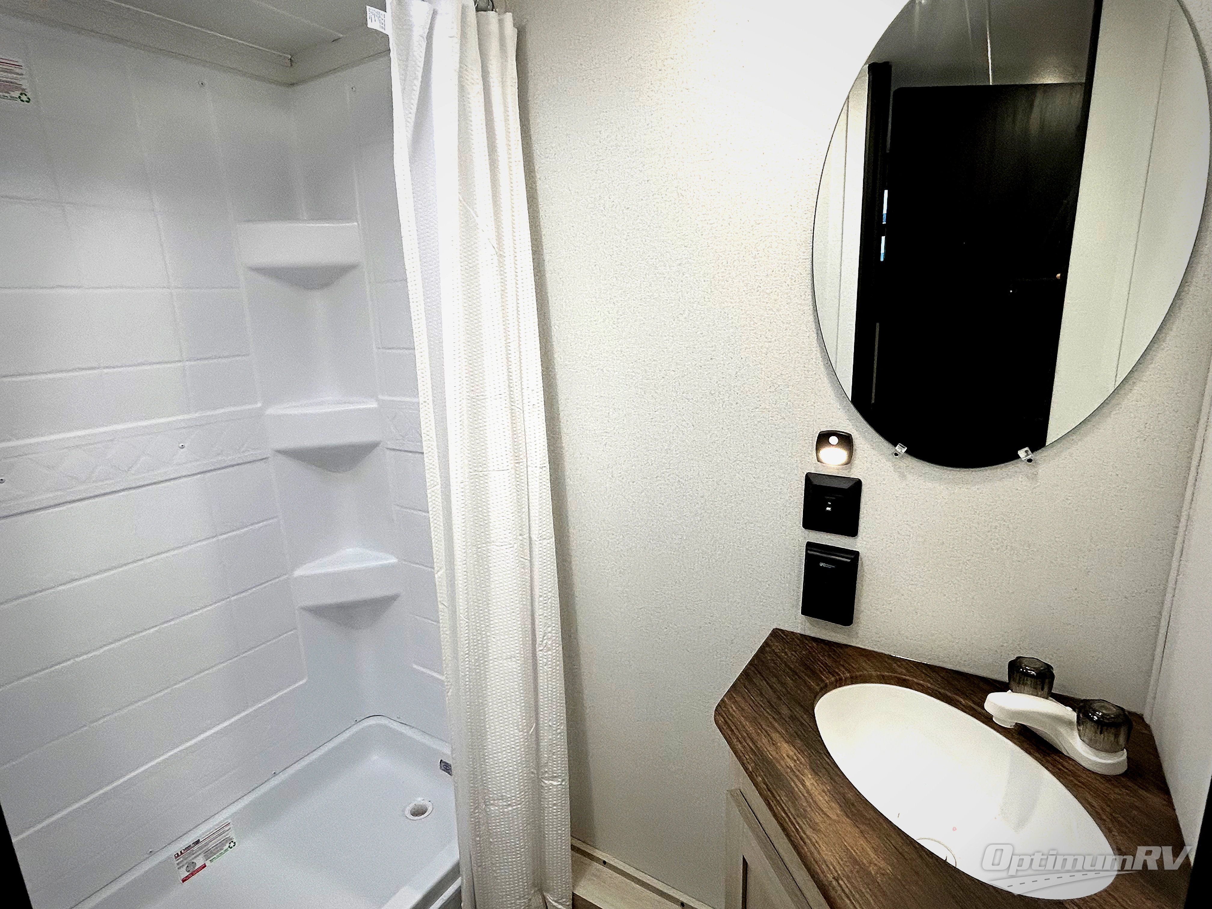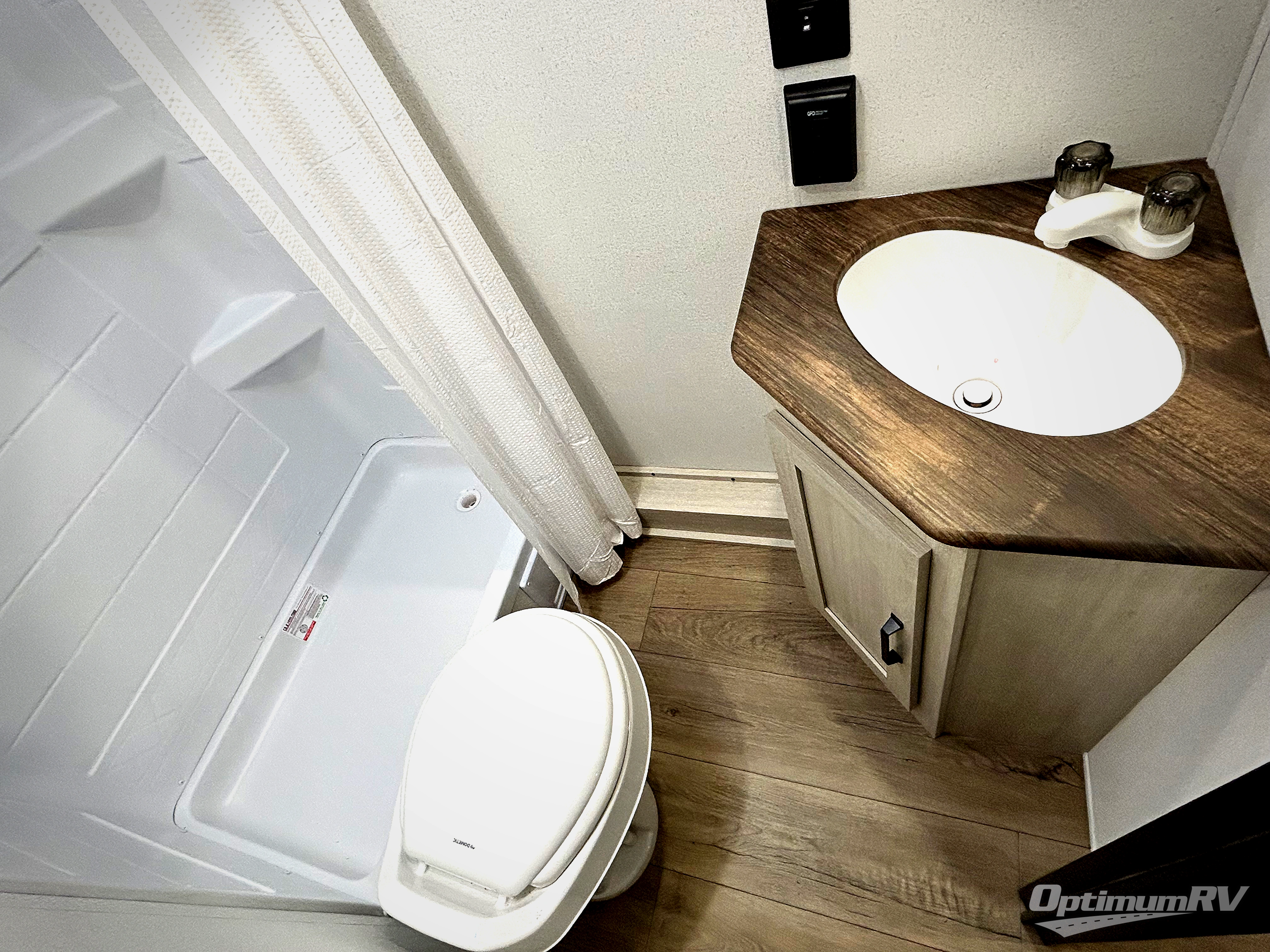 The whole gang will love camping in this travel trailer since there are double-size bunks for compact sleeping spaces and a slide out for more space to relax! The front RV queen bed is sure to provide a great night's rest, and you can choose the optional Murphy bed if you're needing more seating space during the day. Once you've made dinner on the two burner cooktop, you can dine around the U-shaped dinette. And an optional mini kitchen with a griddle is available if you'd rather cook outdoors! This unit includes ample storage space for your things, including exterior storage and storage under the bunks!
