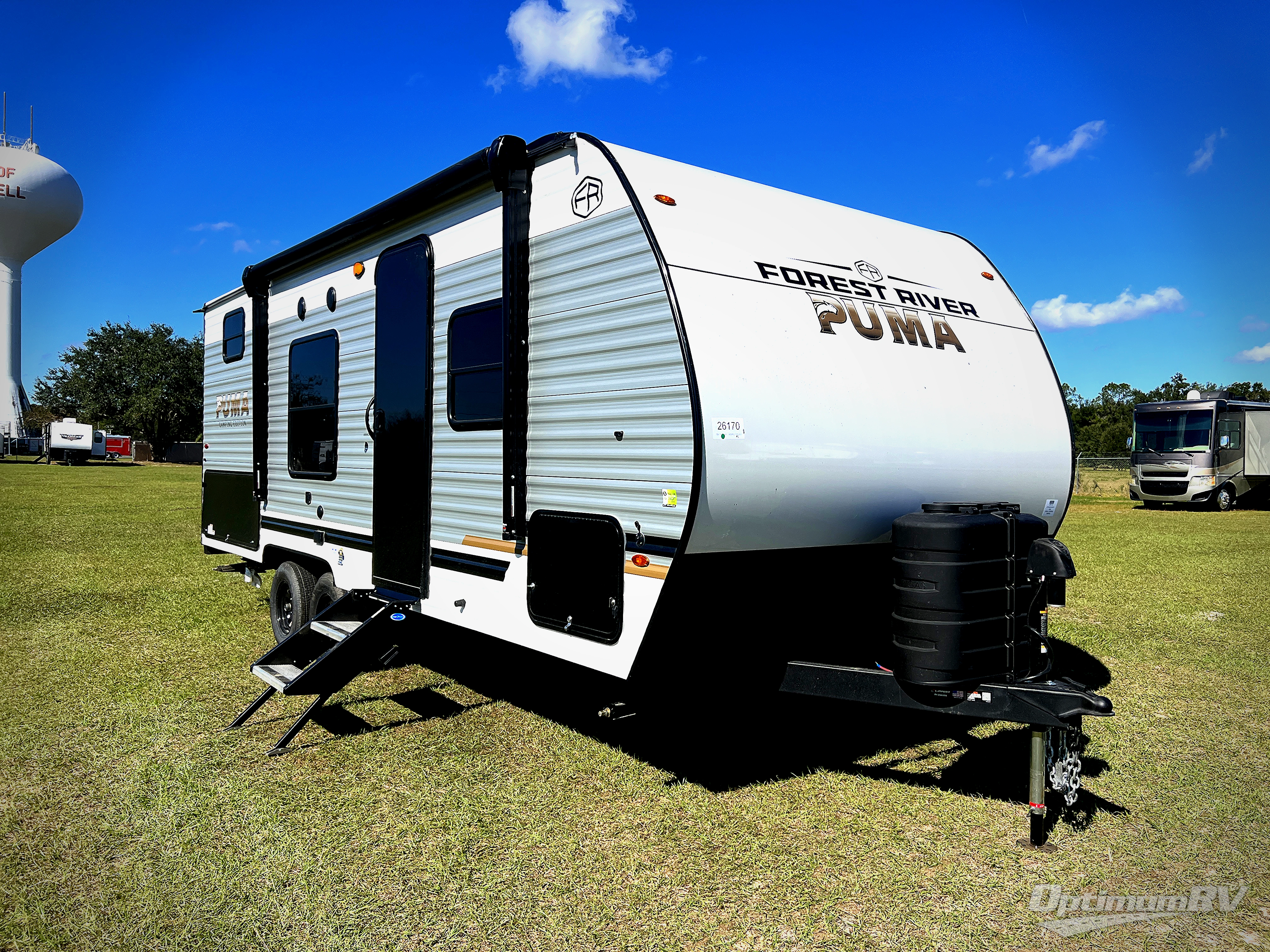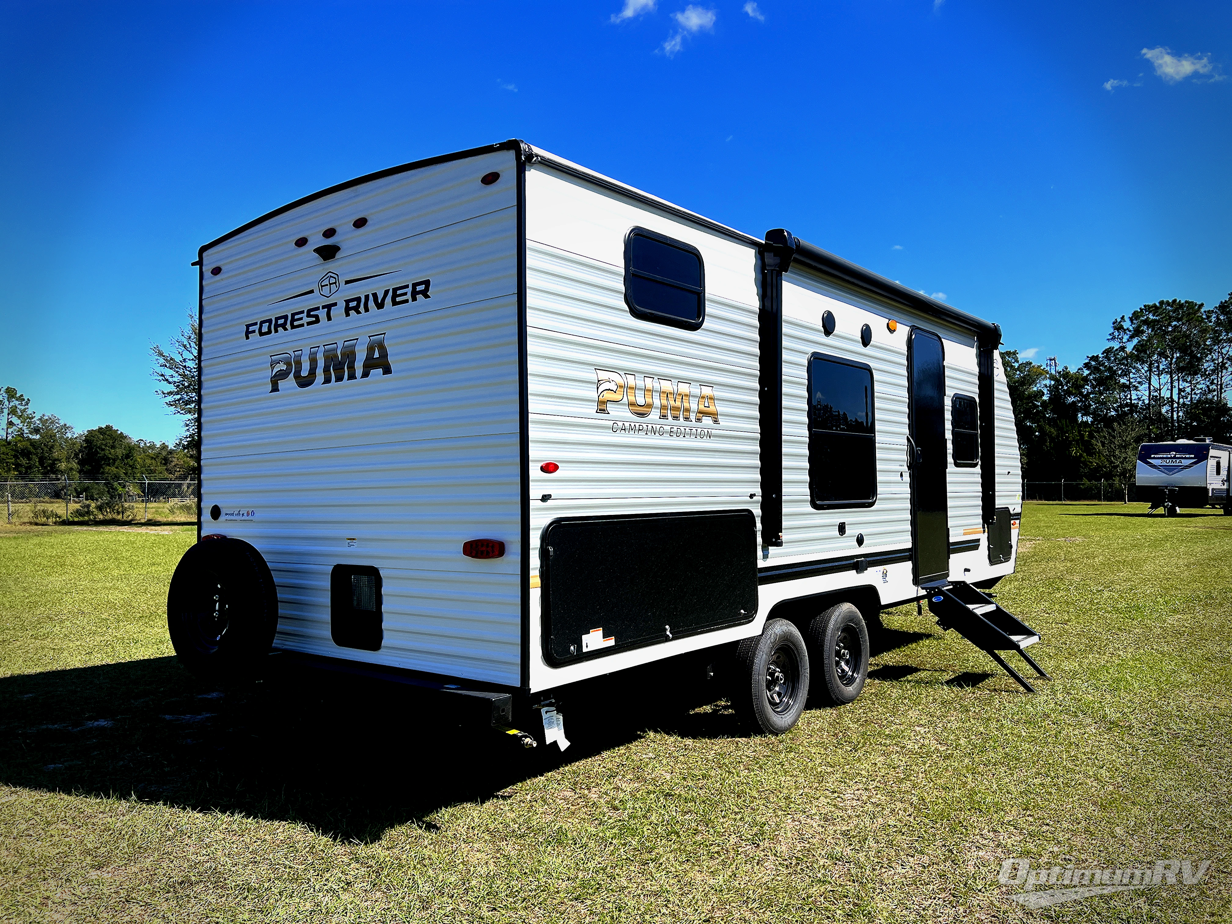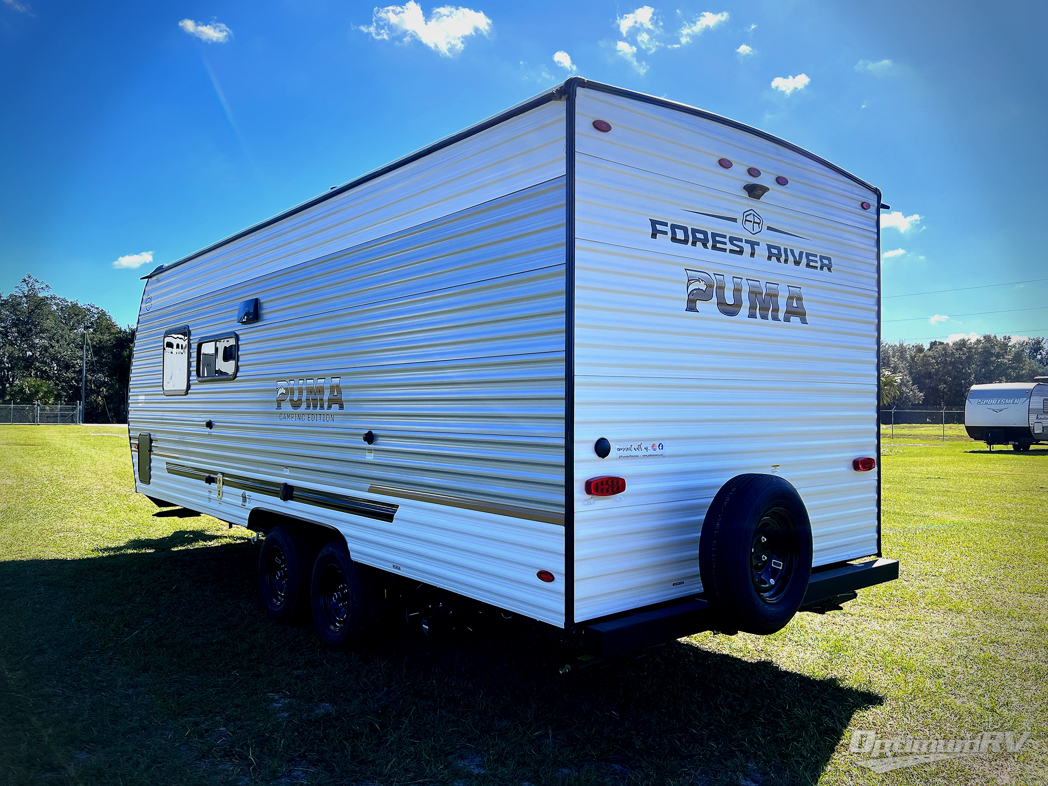 The Puma Camping Edition by Palomino offer an affordable travel trailer for rookie campers or seasoned RVers! They are built with 5/8" tongue and groove plywood flooring and a front diamond plate for added protection. There are also exterior clamp style door latches, back up camera prep, and 20 lb. LP bottles. Head inside to find Thermofoil countertops with a smooth drop edge, bedroom USB ports and outlets, and a GE appliance and kitchen package.