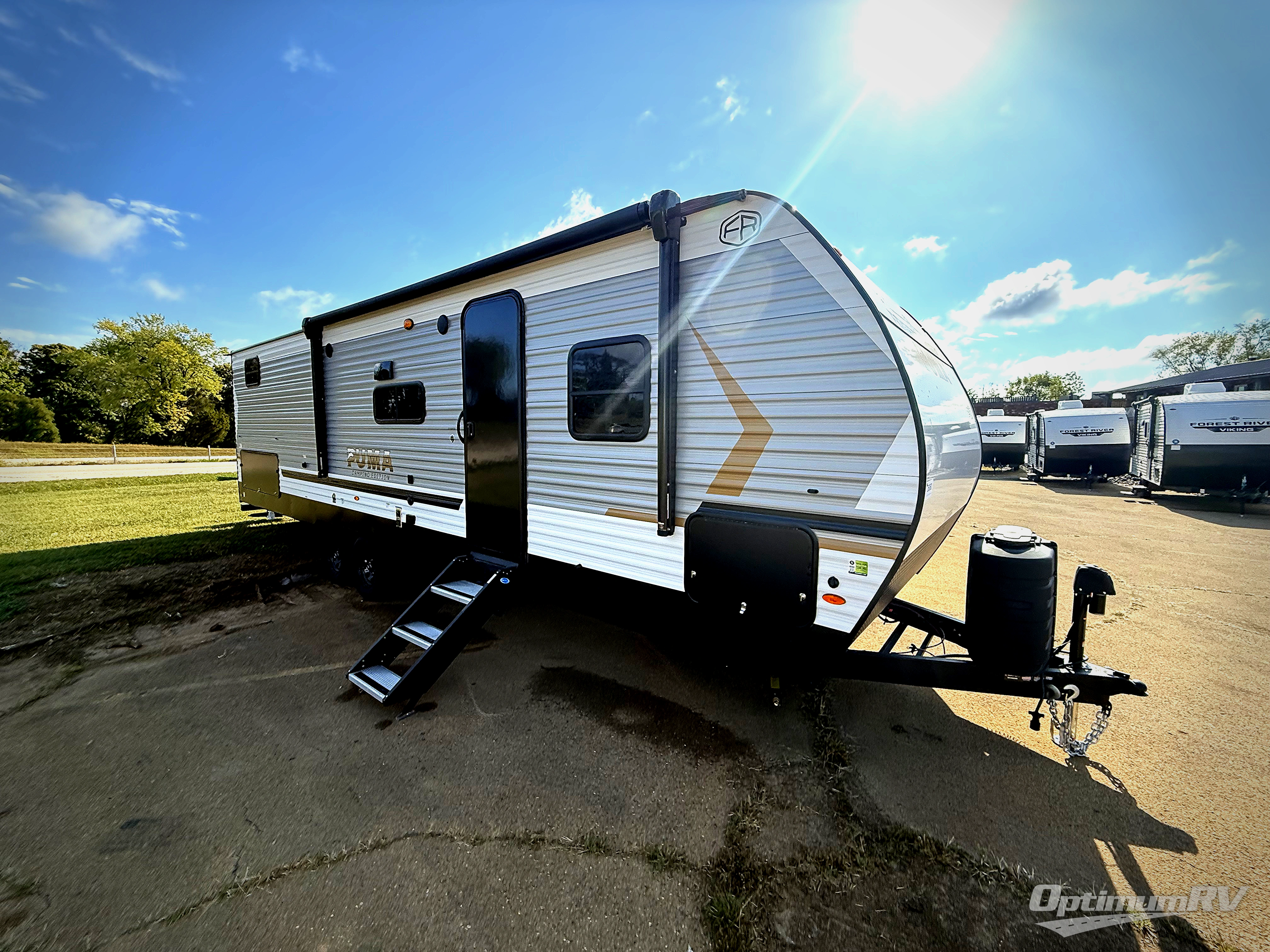The Puma Camping Edition by Palomino offer an affordable travel trailer for rookie campers or seasoned RVers! They are built with 5/8" tongue and groove plywood flooring and a front diamond plate for added protection. There are also exterior clamp style door latches, back up camera prep, and 20 lb. LP bottles. Head inside to find Thermofoil countertops with a smooth drop edge, bedroom USB ports and outlets, and a GE appliance and kitchen package.