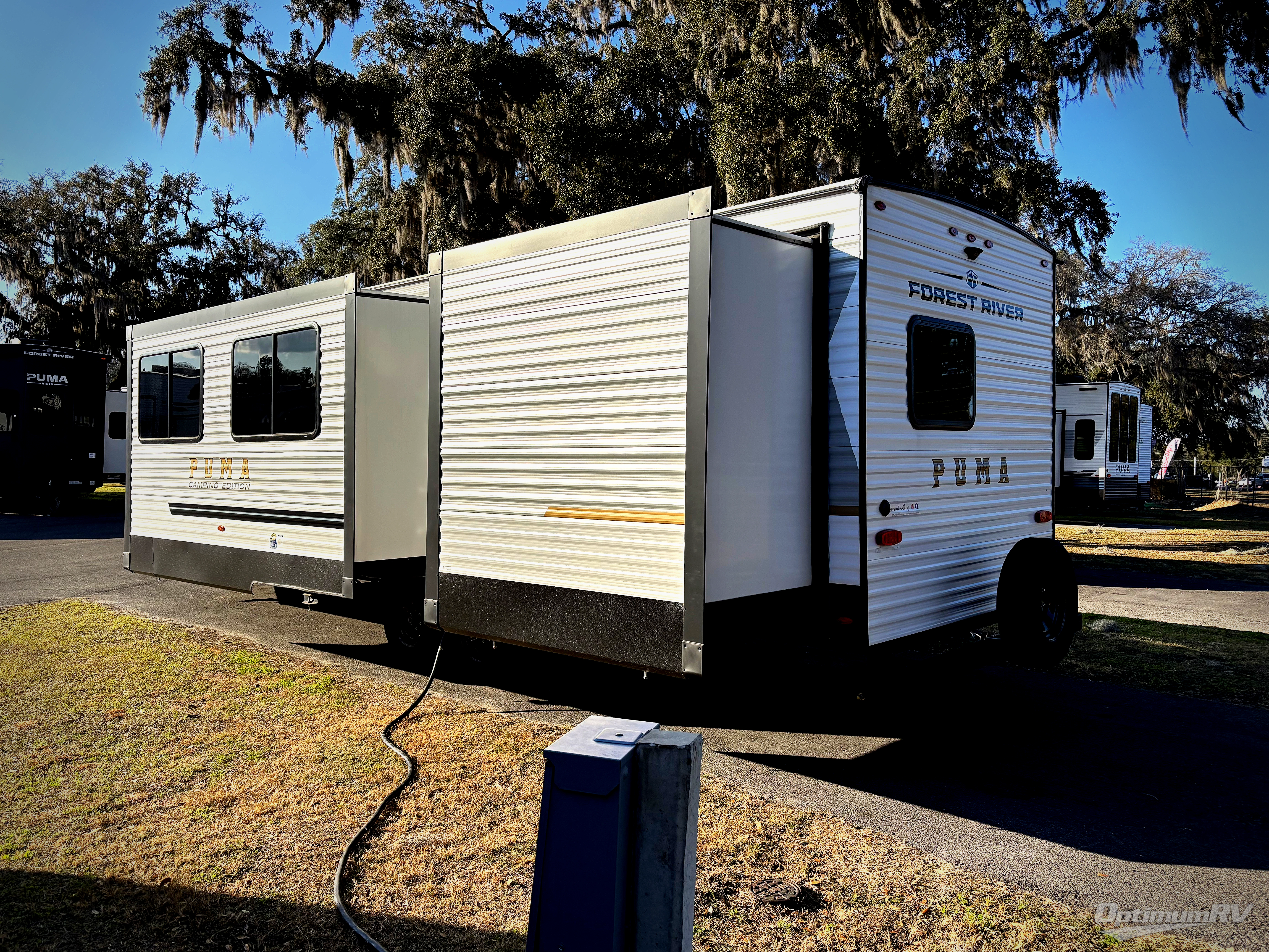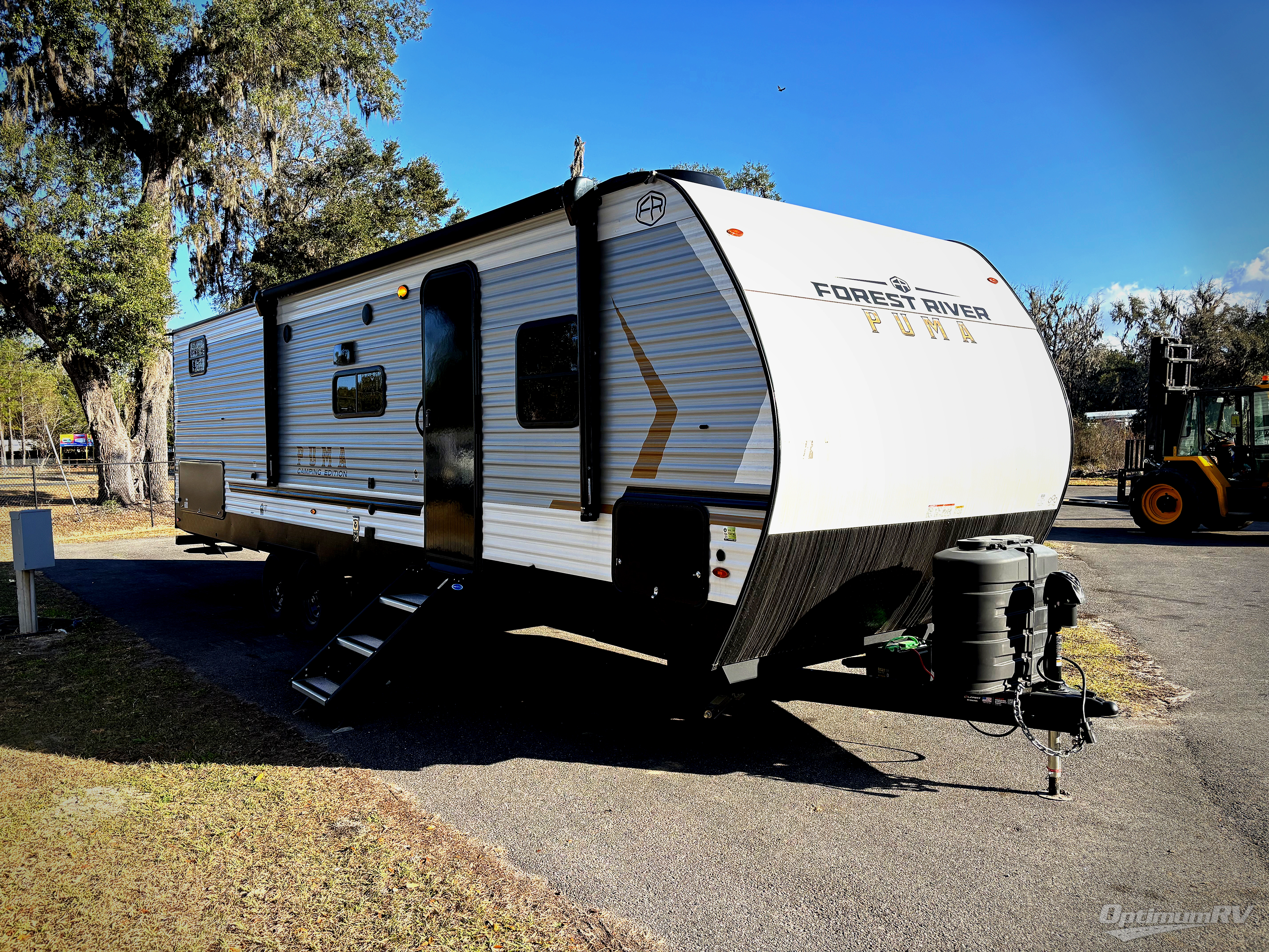 The Puma Camping Edition by Palomino offer an affordable travel trailer for rookie campers or seasoned RVers! They are built with 5/8" tongue and groove plywood flooring and a front diamond plate for added protection. There are also exterior clamp style door latches, back up camera prep, and 20 lb. LP bottles. Head inside to find Thermofoil countertops with a smooth drop edge, bedroom USB ports and outlets, and a GE appliance and kitchen package.