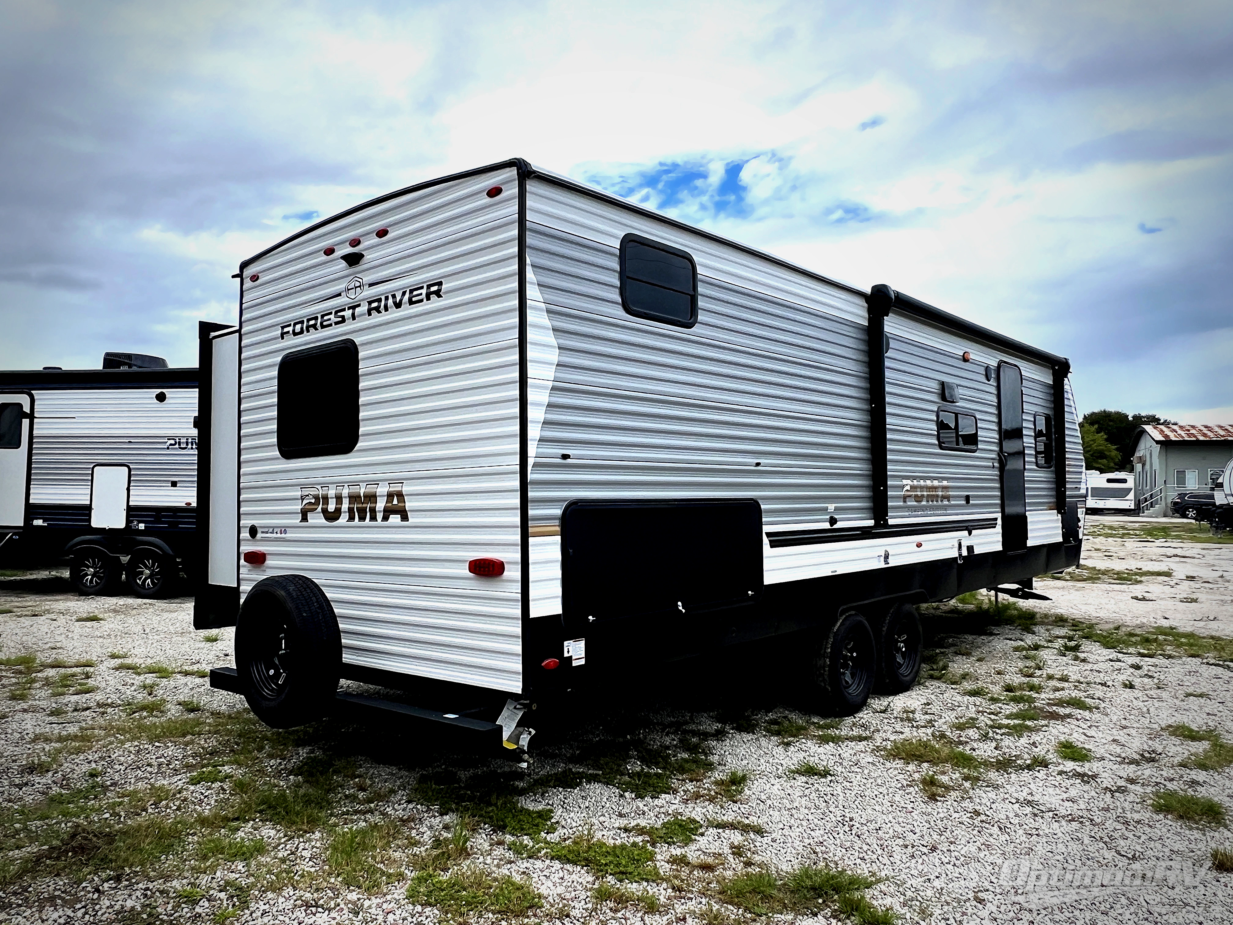 The Puma Camping Edition by Palomino offer an affordable travel trailer for rookie campers or seasoned RVers! They are built with 5/8" tongue and groove plywood flooring and a front diamond plate for added protection. There are also exterior clamp style door latches, back up camera prep, and 20 lb. LP bottles. Head inside to find Thermofoil countertops with a smooth drop edge, bedroom USB ports and outlets, and a GE appliance and kitchen package.