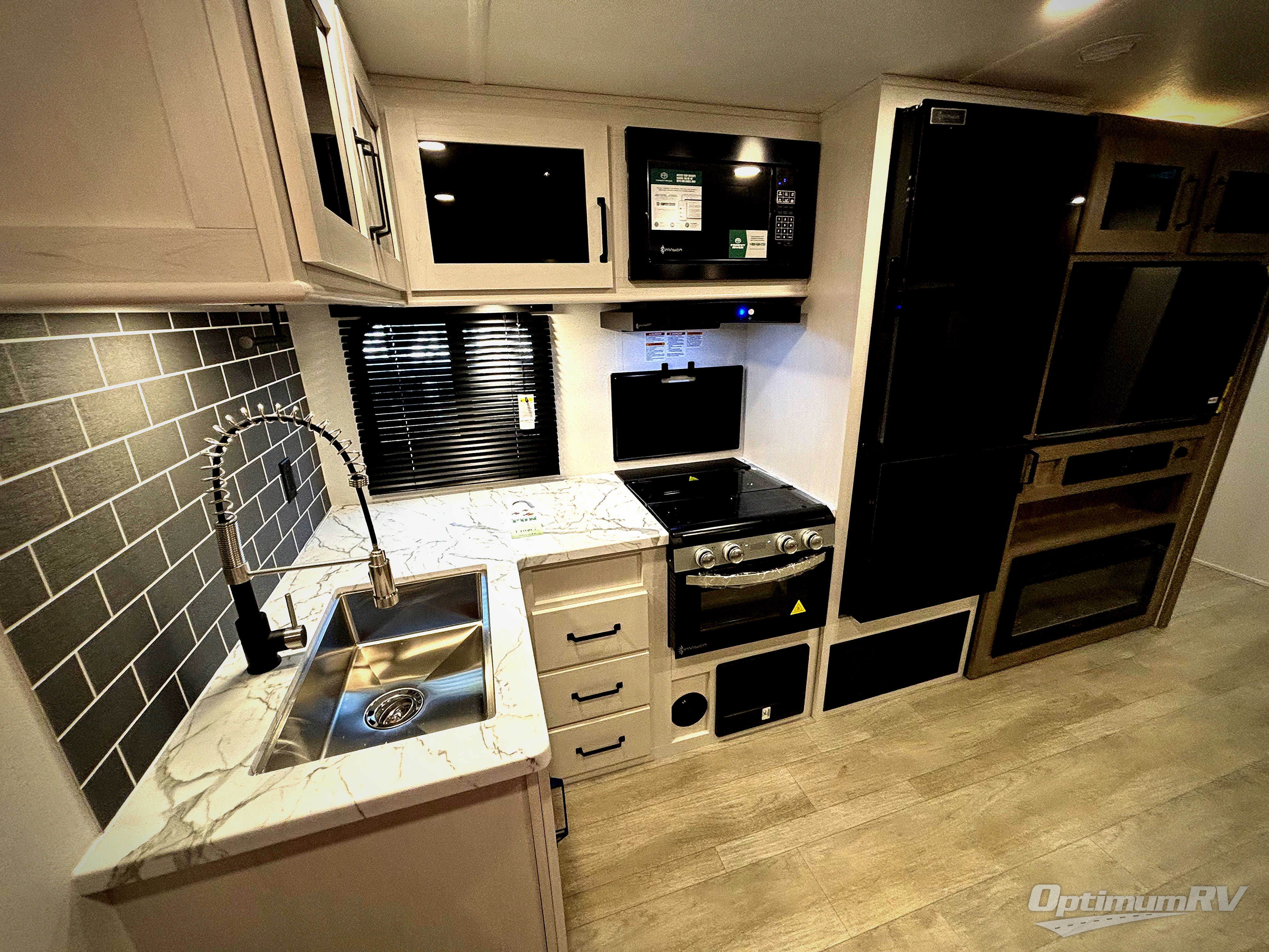 Each Puma Tracks travel trailer by Forest River is constructed with a fully enclosed/heated underbelly for added protection against the elements, plus a fully laminated roof and rear wall for durability. The slam latch baggage doors with magnets will make it easier than ever to pack up your camp gear, and the power awning with LED lights will provide shade during the day and inviting ambiance at night. Head inside to enjoy the roller shades, smoked glass kitchen cabinet doors, stainless-steel sink, and LED lights to keep your space well lit. Some of the available options include a bedroom A/C, a Wi-Fi booster, heated holding tanks, and more!