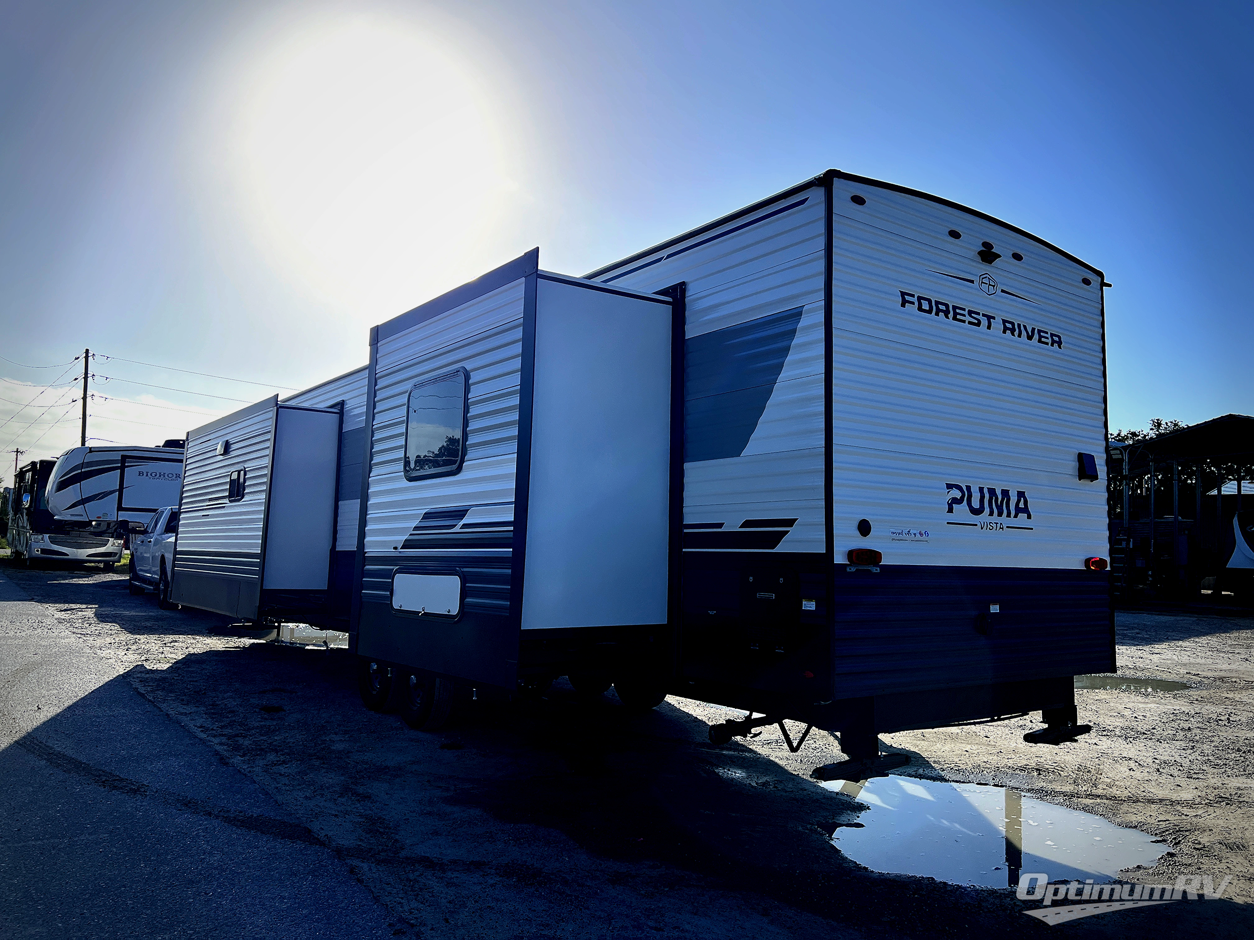 Each Puma Destination trailer by Palomino is designed to give you unforgettable getaways to the destination of your choice! The Value Shopper Package features Congoleum linoleum, LED lighting, an AM/FM/Bluetooth stereo, and an upgraded kitchen faucet to name a few comforts. Two exterior speakers are included with the required Marquis Edition, along with solid surface countertops, night roller shades, an outside shower, and four stabilizer jacks to help keep your unit secure. You will also appreciate the roof and side mount solar prep for off-grid capabilities, as well as WiFi prep if you need the option to work while you're away from home!
