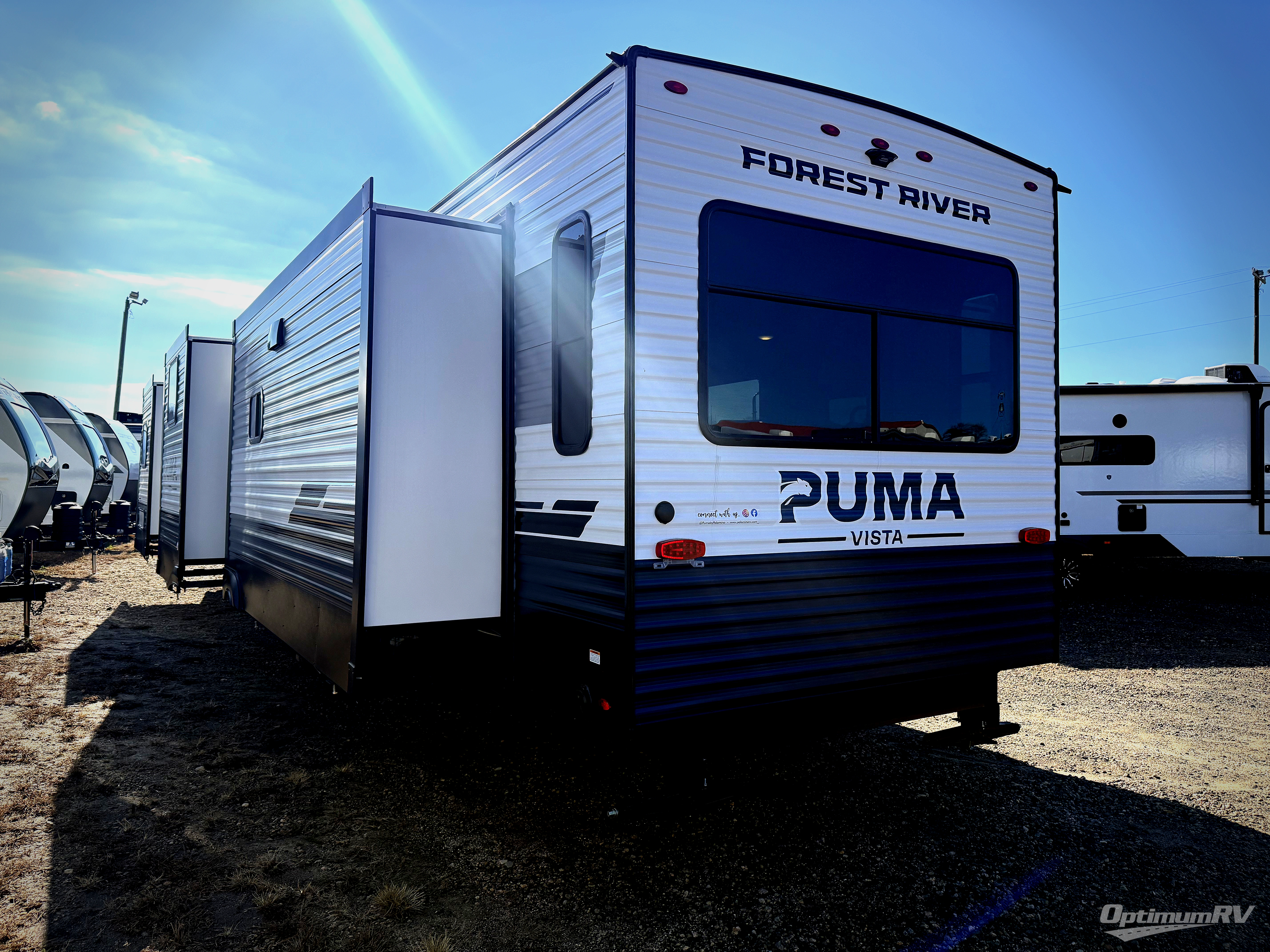 Each Puma Vista destination trailer by Forest River is designed to give you unforgettable getaways to the destination of your choice! The Value Shopper Package features Congoleum linoleum, LED lighting, an AM/FM/Bluetooth stereo, and a tankless water heater to name a few comforts. There are also solid surface countertops, a 12V ceiling fan in the living room, an outside shower, two exterior speakers, and more amenities found within the Vista Marquis and Vista LFT Loft Packages!