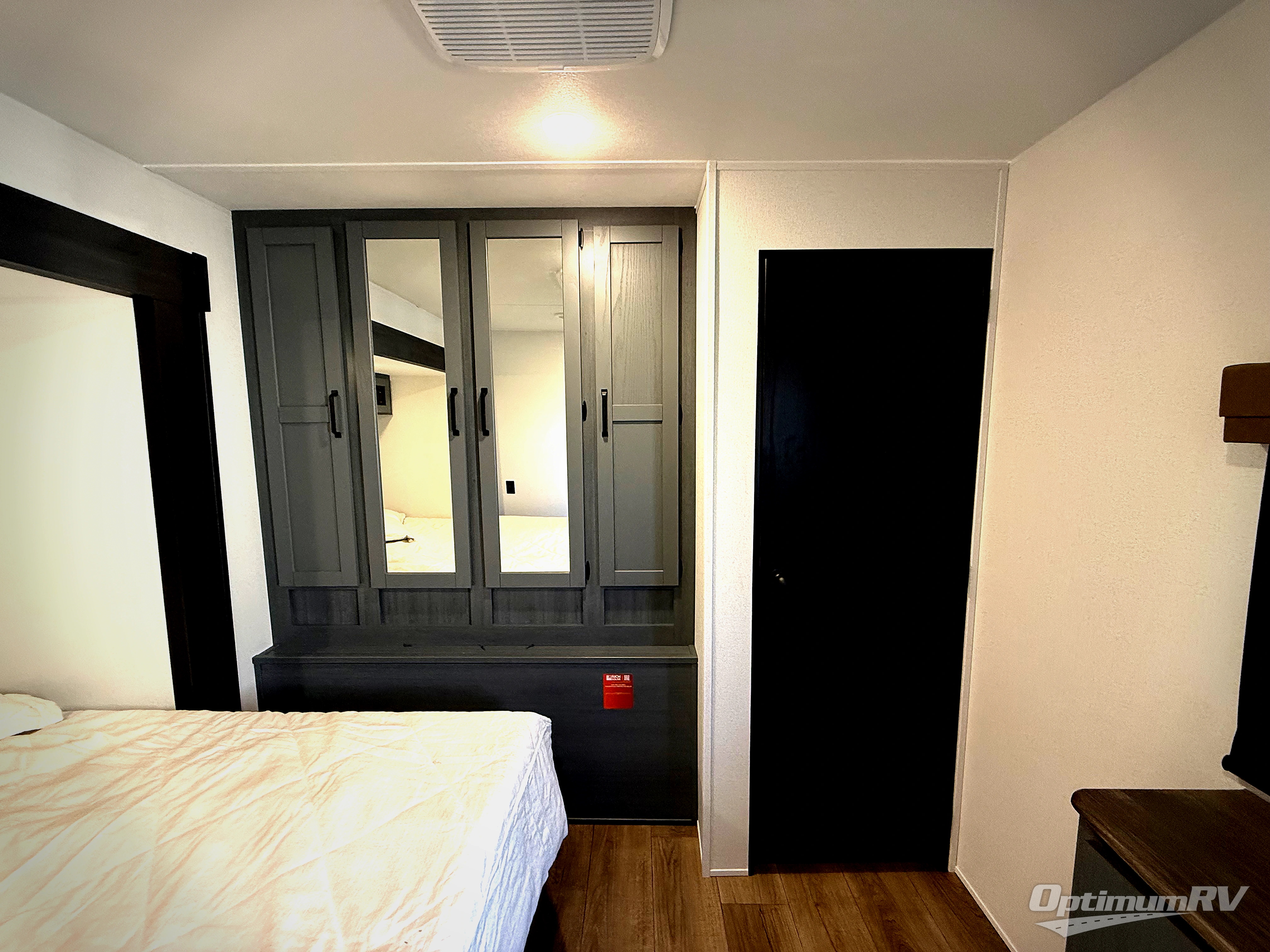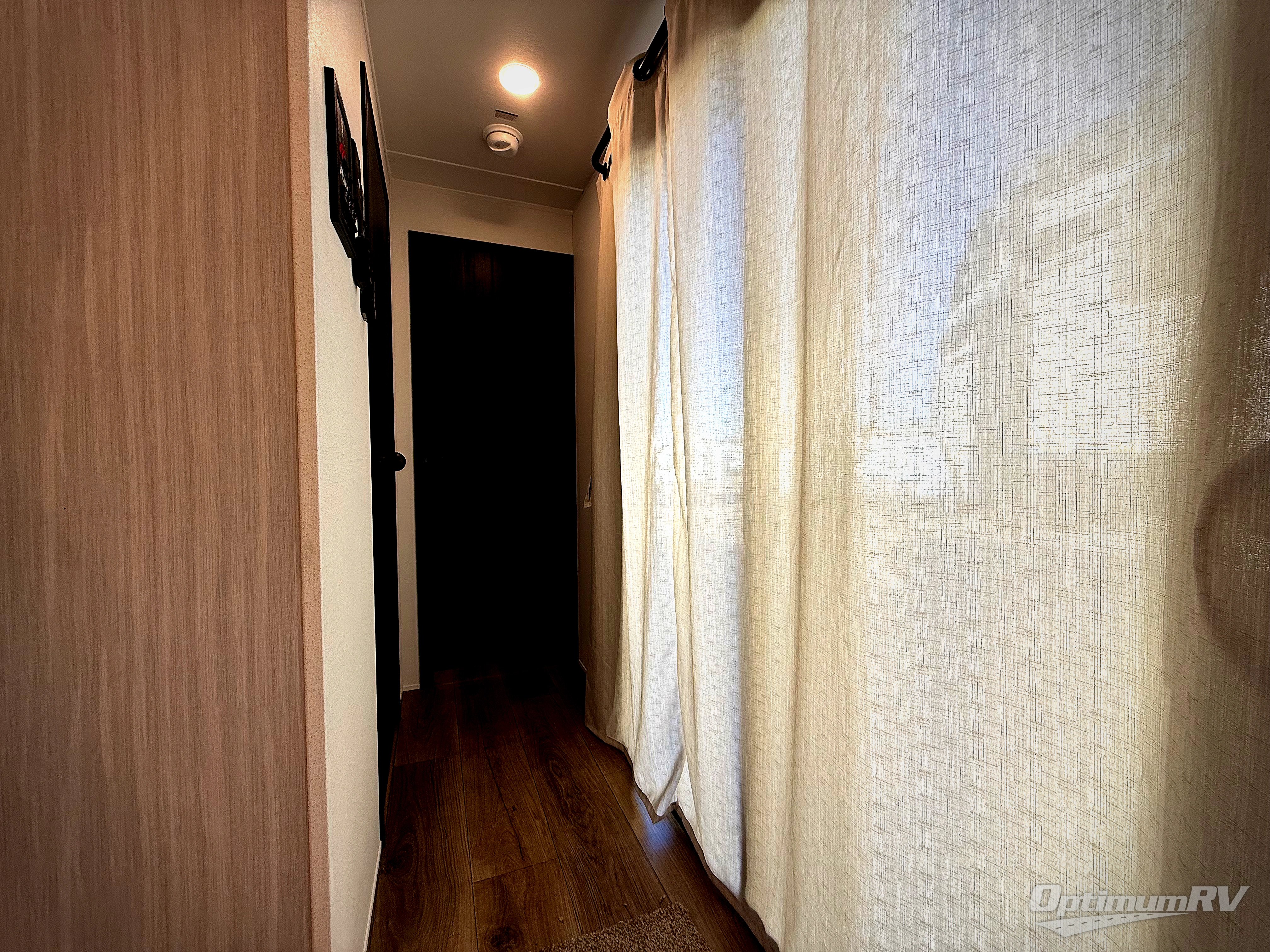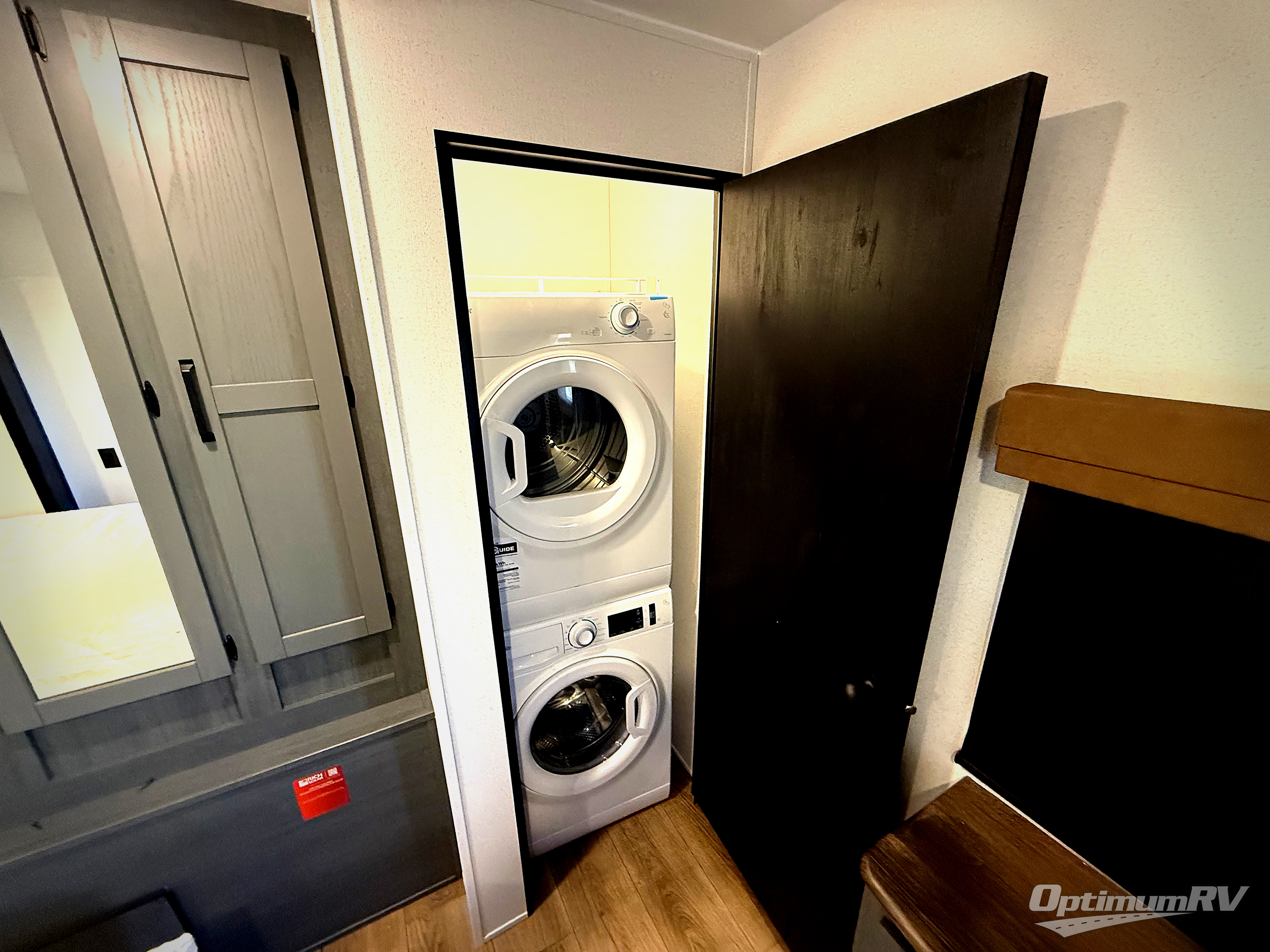 Get out of town and start enjoying the beautiful weather and scenery where you have chosen to place this destination trailer. This spacious trailer has three slide outs for lots of interior floor space, plus two entries for convenience. The front bedroom offers a king bed slide, two closets, and a dresser. The rear bedroom suite includes a full bathroom and a queen bed slide, a vanity and a wardrobe. In between you can relax in the combined living and kitchen area on the sofa or table and chairs while visiting with the cook with full amenities.
