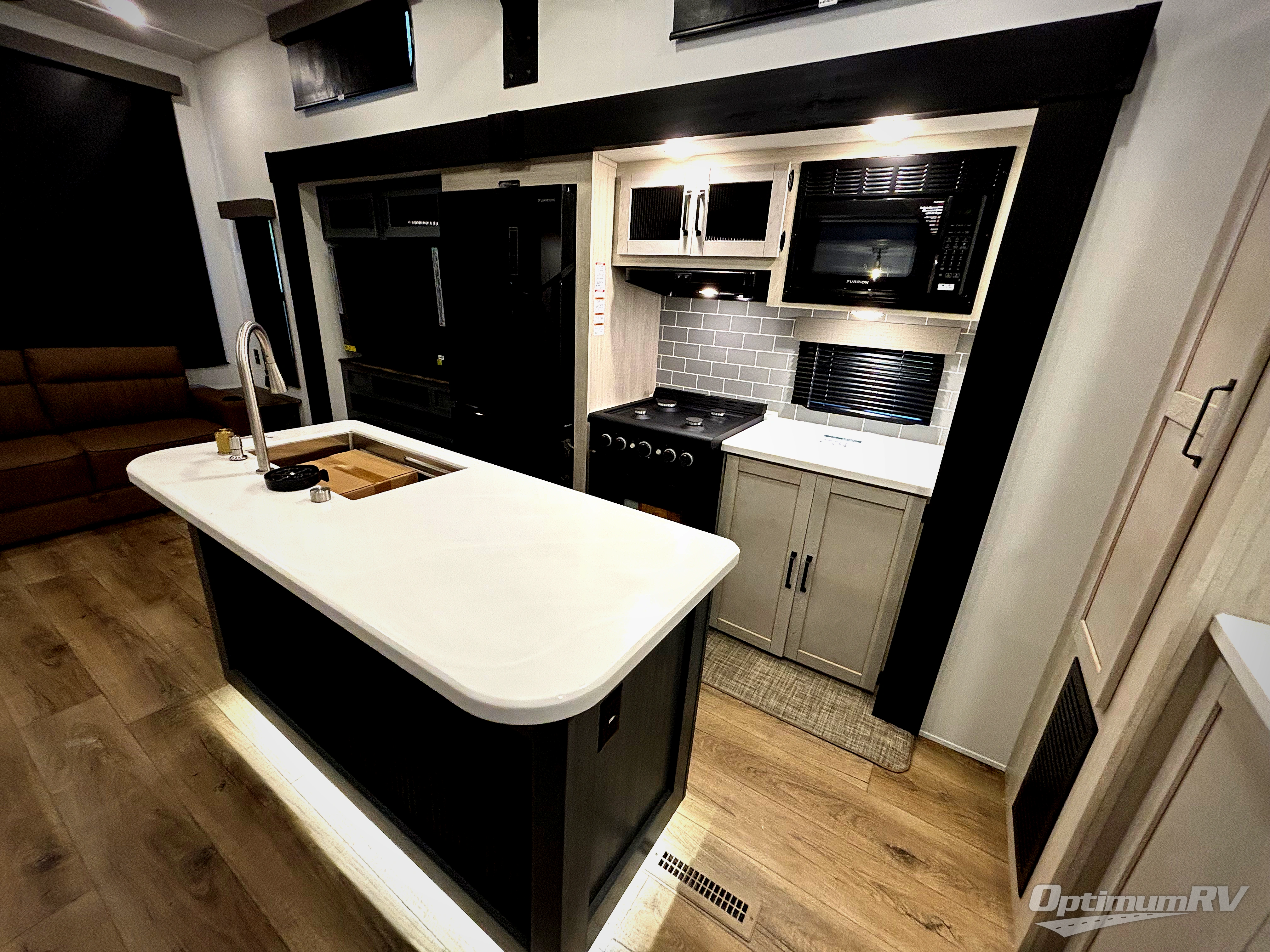 Wherever your destination may be, you can be sure to enjoy it to the fullest with this trailer in tow! With two entry doors, you can enter in through the front private bedroom or the main living area. The bedroom includes a king bed slide out, a desktop if you need to work from home, and a wardrobe/closet to keep your clothes organized. There is also a closet with the washer and dryer prep if you plan to add these appliances. Just outside this room are steps that lead to the large loft area with a 58" x 58" bunk mat and a cabinet on one side, plus two 32" x 80" bunk mats on the other. There is also a front cabinet and a wardrobe/closet for plenty of storage space. Once you've headed back downstairs, you can relax on the theater seating, rear sofa, or table and chairs with bench seating. And the chef of your group will love the kitchen with its residential style refrigerator and pantry, kitchen island, and four burner cooktop!