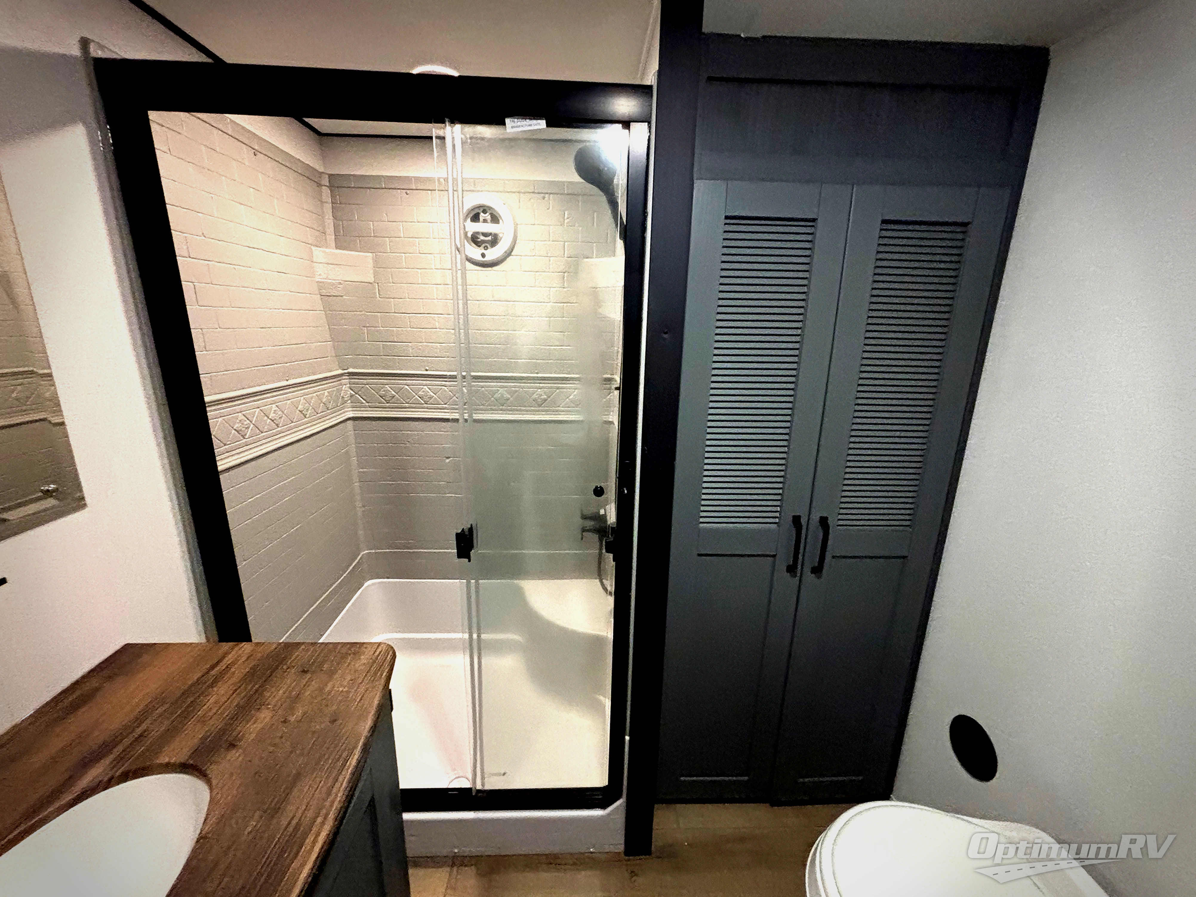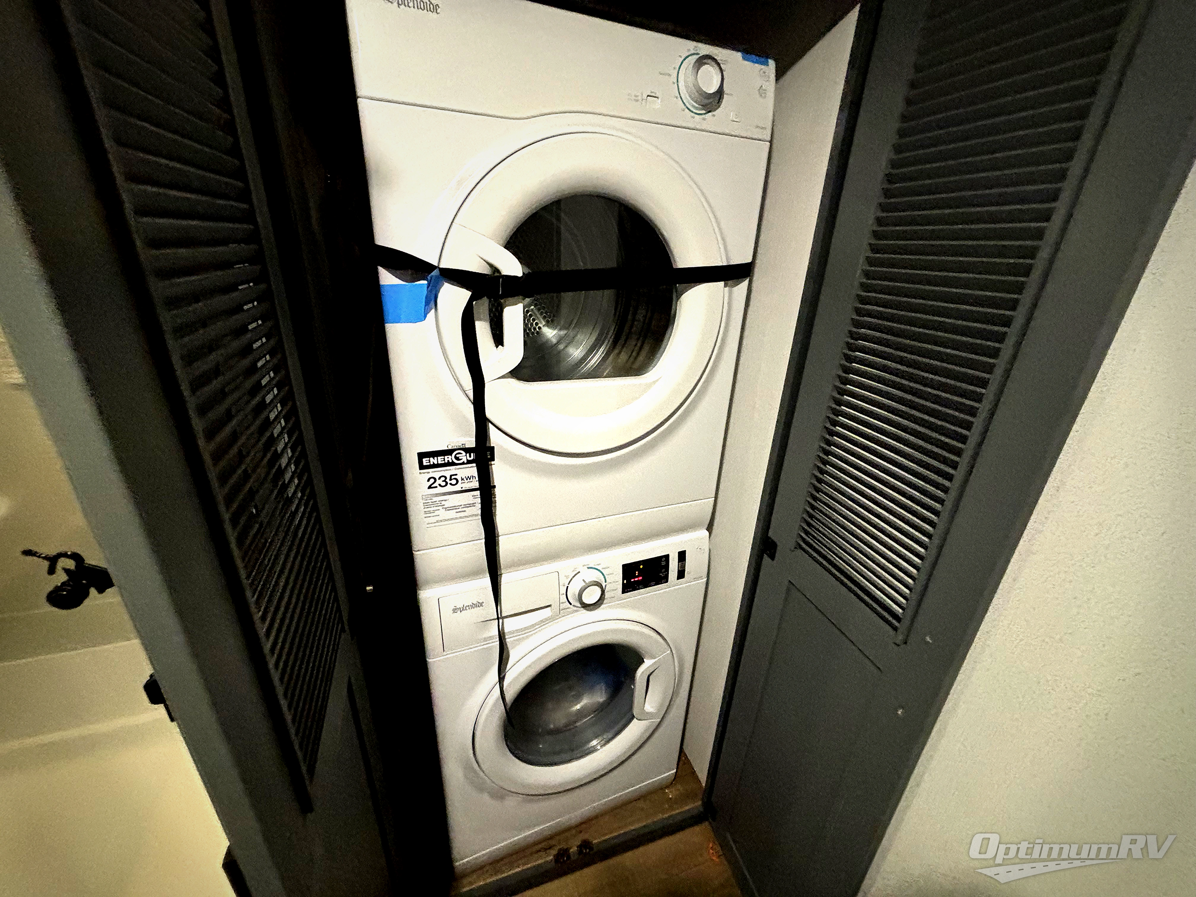 Head to your favorite spots with this destination trailer! With two entry doors, you can easily enter or exit the unit. The front private bedroom includes a king bed slide out, a wardrobe and dresser to keep your clothes organized, plus a countertop for your books or jewelry. Just outside this room is the ladder that leads to the large loft area with two 32" x 80" bunk mats, a cubby, a counter, a nightstand, and cabinets. Once you've headed back downstairs, you can relax on the L-shaped sofa across from the entertainment center with a fireplace and slide-out cabinet or the table and chairs with bench seating. And the chef of your group will love the kitchen with its residential style refrigerator and pantry, kitchen island, and four burner cooktop. The full rear bathroom not only has a 32" x 40" shower with a seat to freshen up in, and a closet with washer/dryer prep, but is also below the second loft with a 32" x 80" bunk mat and closet for storage!