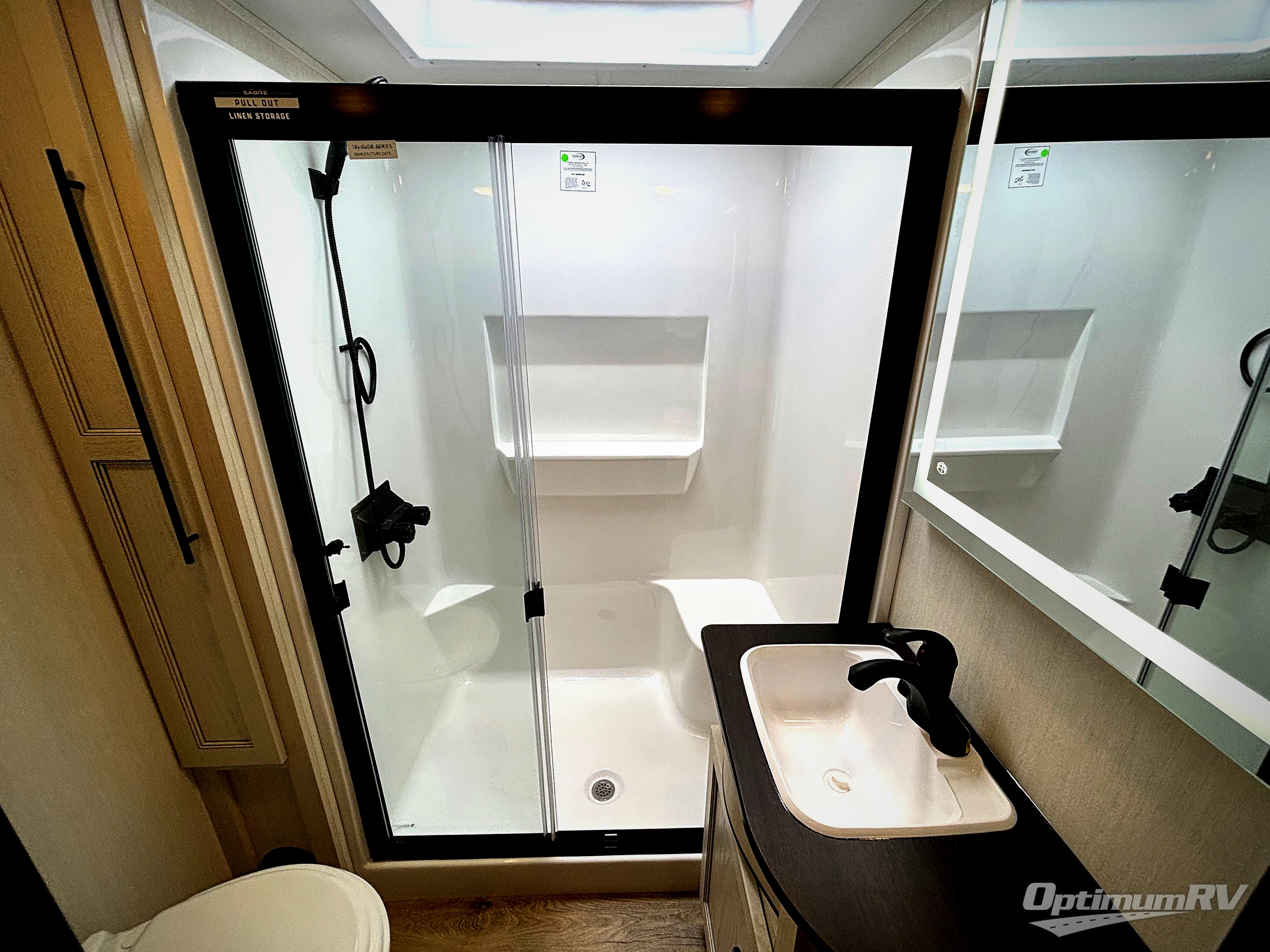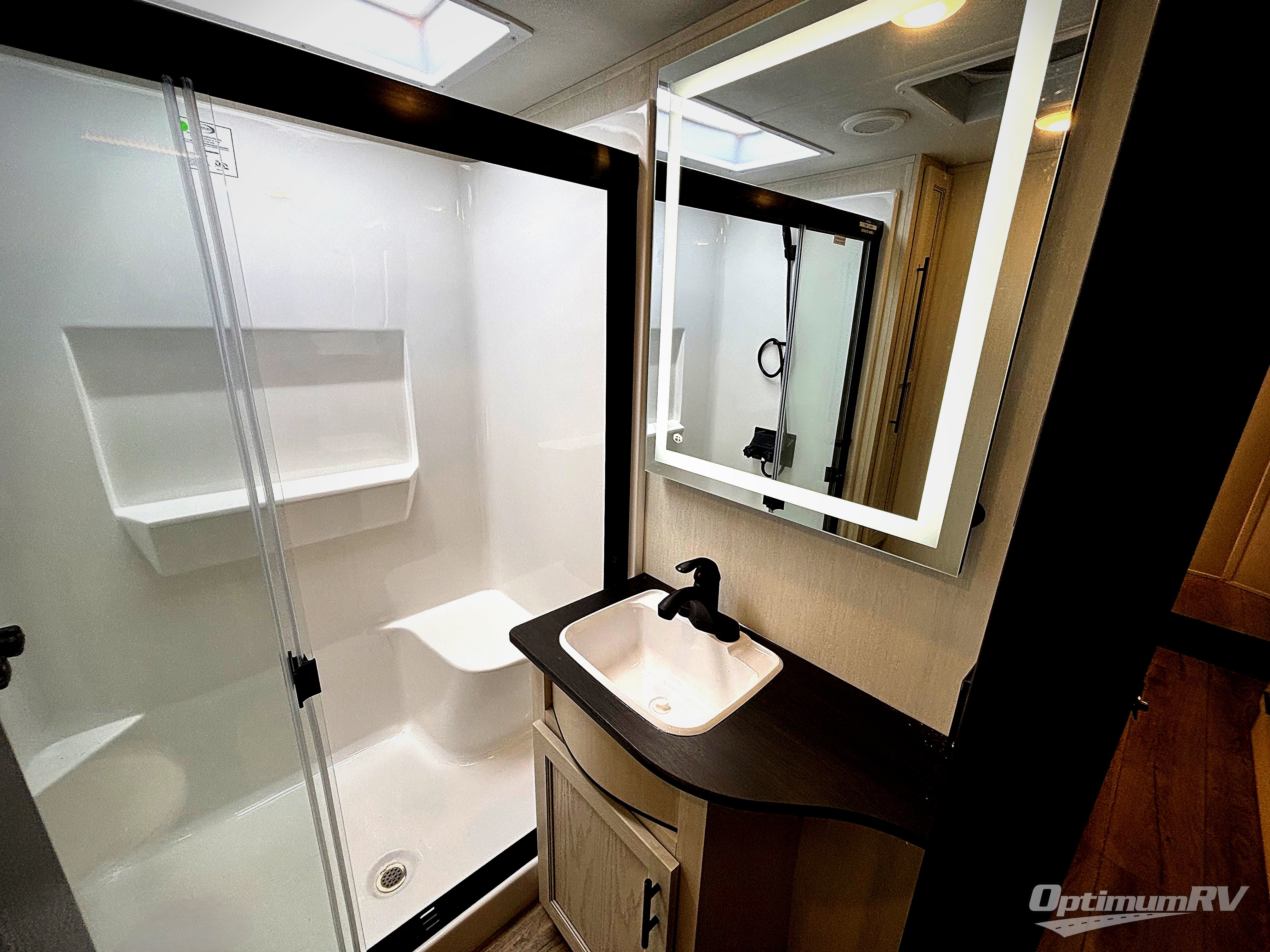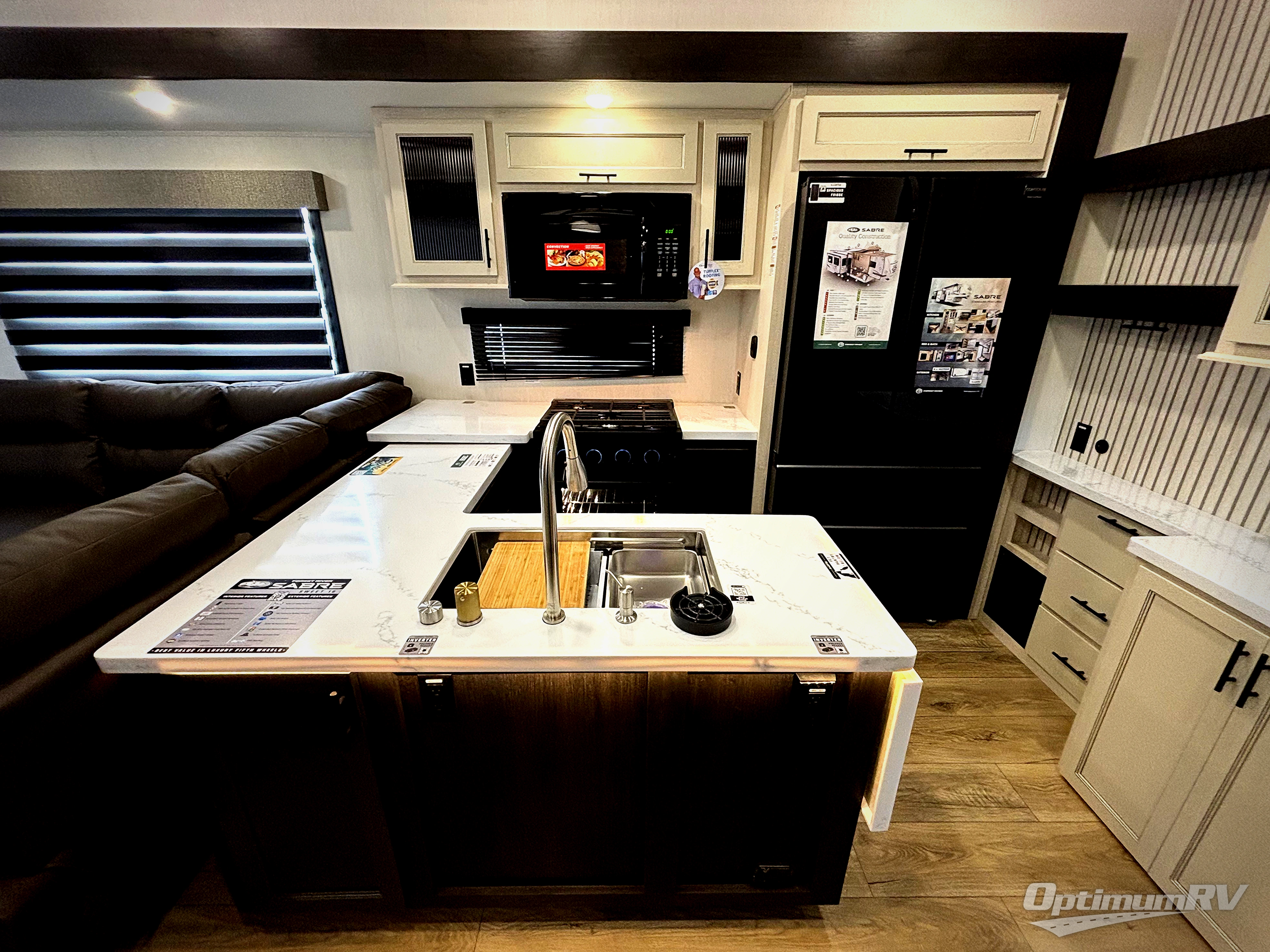 You will experience luxurious camping trips at an affordable price with any one of these Forest River Sabre fifth wheels! These models are durable and ready to travel anytime of the year thanks to features like the high-gloss gel-coat front cap with LED lighting, the PVC roof membrane, and the forced air underbelly with enclosed gate valves. The electric auto-leveling system makes setting up easy and safe, and the adjustable power awning with LED lighting will create an inviting outdoor living space. Each model includes a universal docking station which includes a black tank flush and an outside shower, and adjustable stable steps for you to enter and exit the unit safely. Inside, you will love the design of the ambient accent lighting in the living area, the real wood lumbercore cabinetry, and the linoleum flooring!