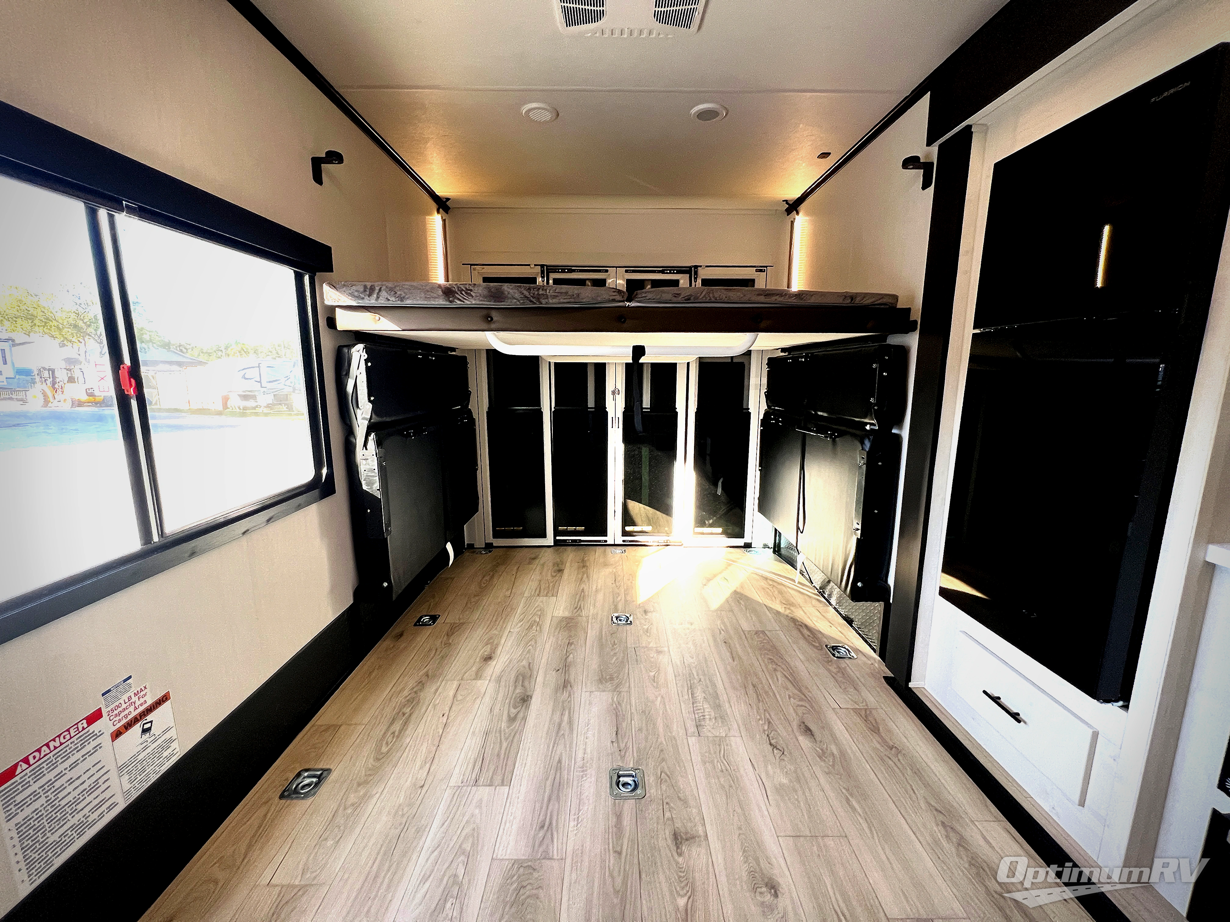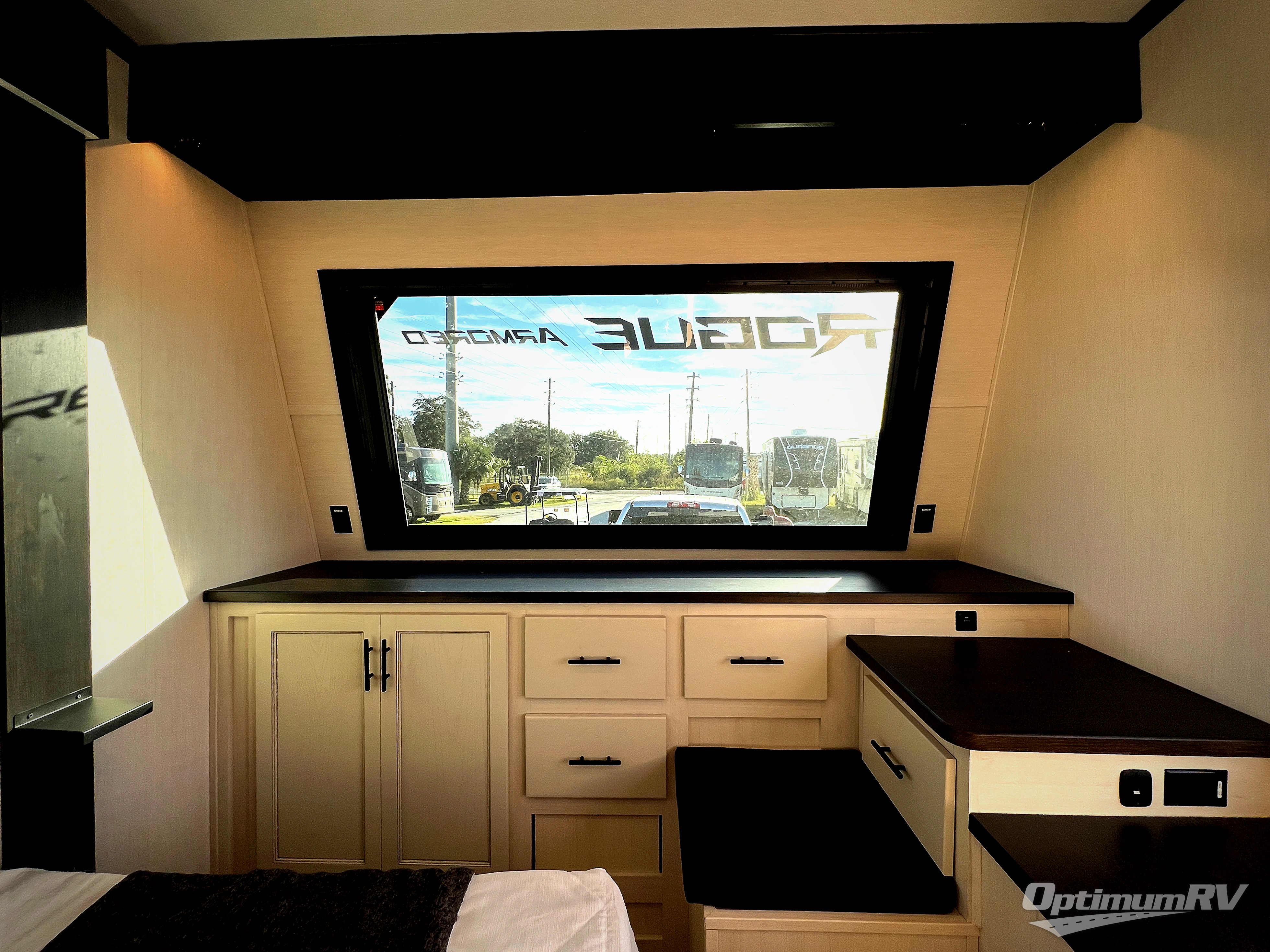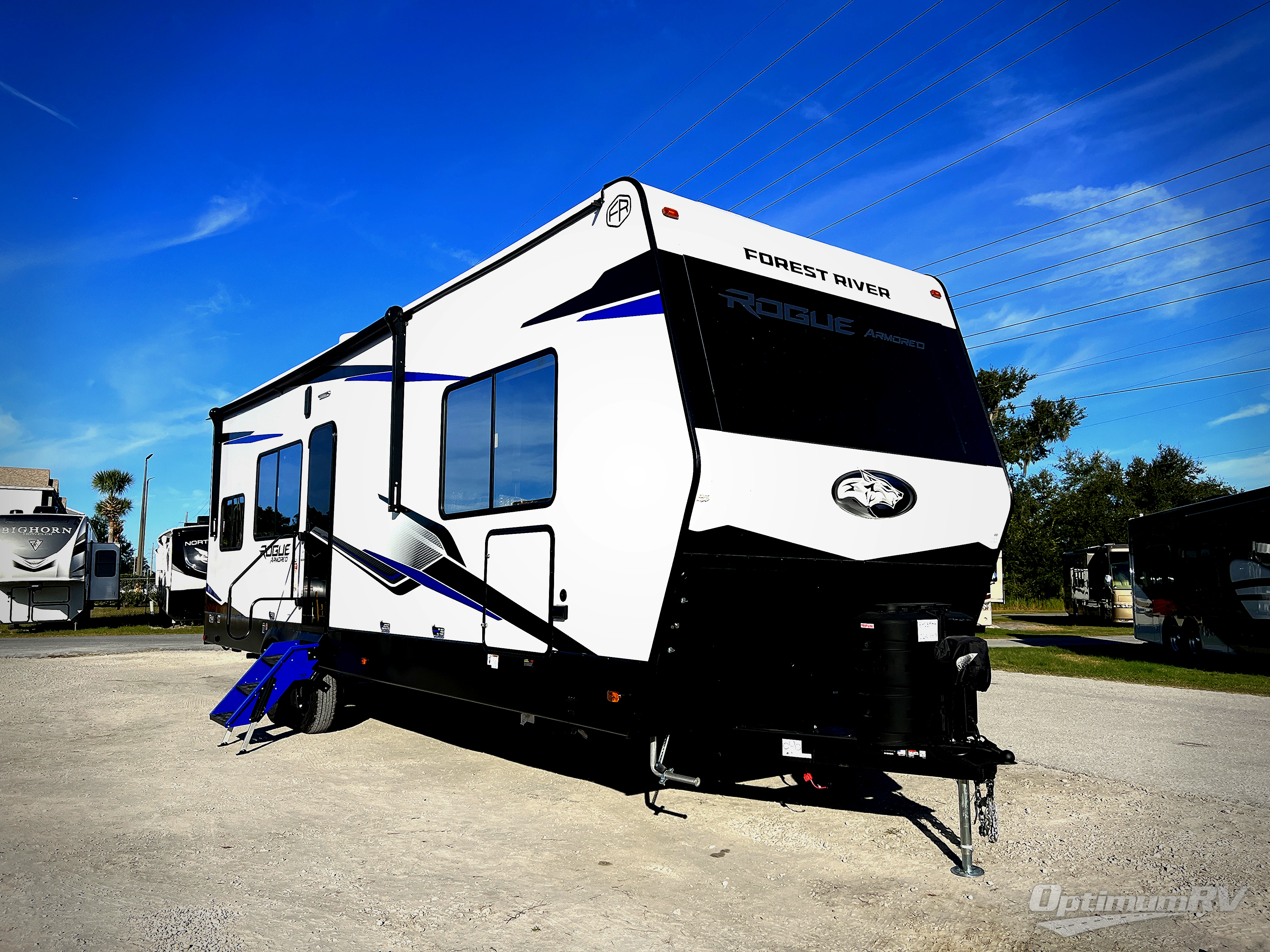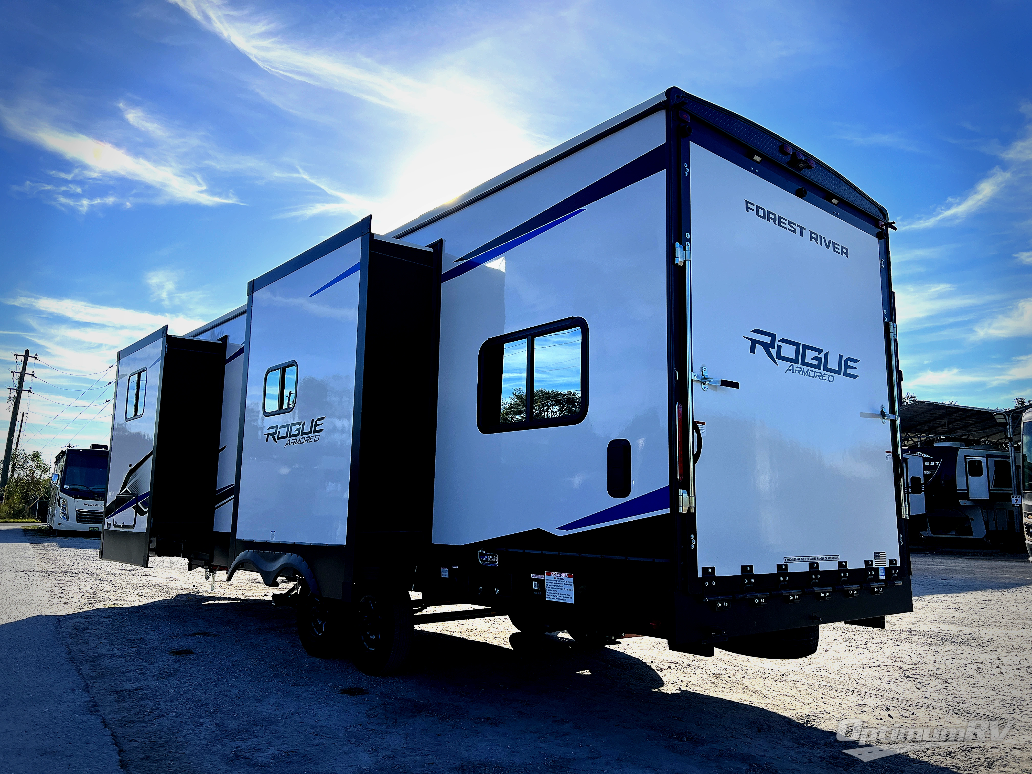 Every one of these Forest River Vengeance Rogue Armored travel trailer toy haulers come with the features you want most at an affordable price tag! The DuraPoxy gas/oil resistant floor has 5,000 lb. tie downs to ensure your toys will arrive safely without damaging the flooring, plus the 3,000 lb. rated ramp door makes it easy to load them. A 15,000 BTU A/C will keep you cool even on the hottest summer days, and there are heated enclosed holding tanks with 12V heat pads on every tank for added protection. Each model includes a fuel station with a digital readout, a ramp door patio system, a tire pressure monitoring system, and many more stand-out features. Inside, you'll find zebra shades in the living room, multiple USB charging stations, a multi-functional kitchen sink, glass shower doors, and many more comforts!