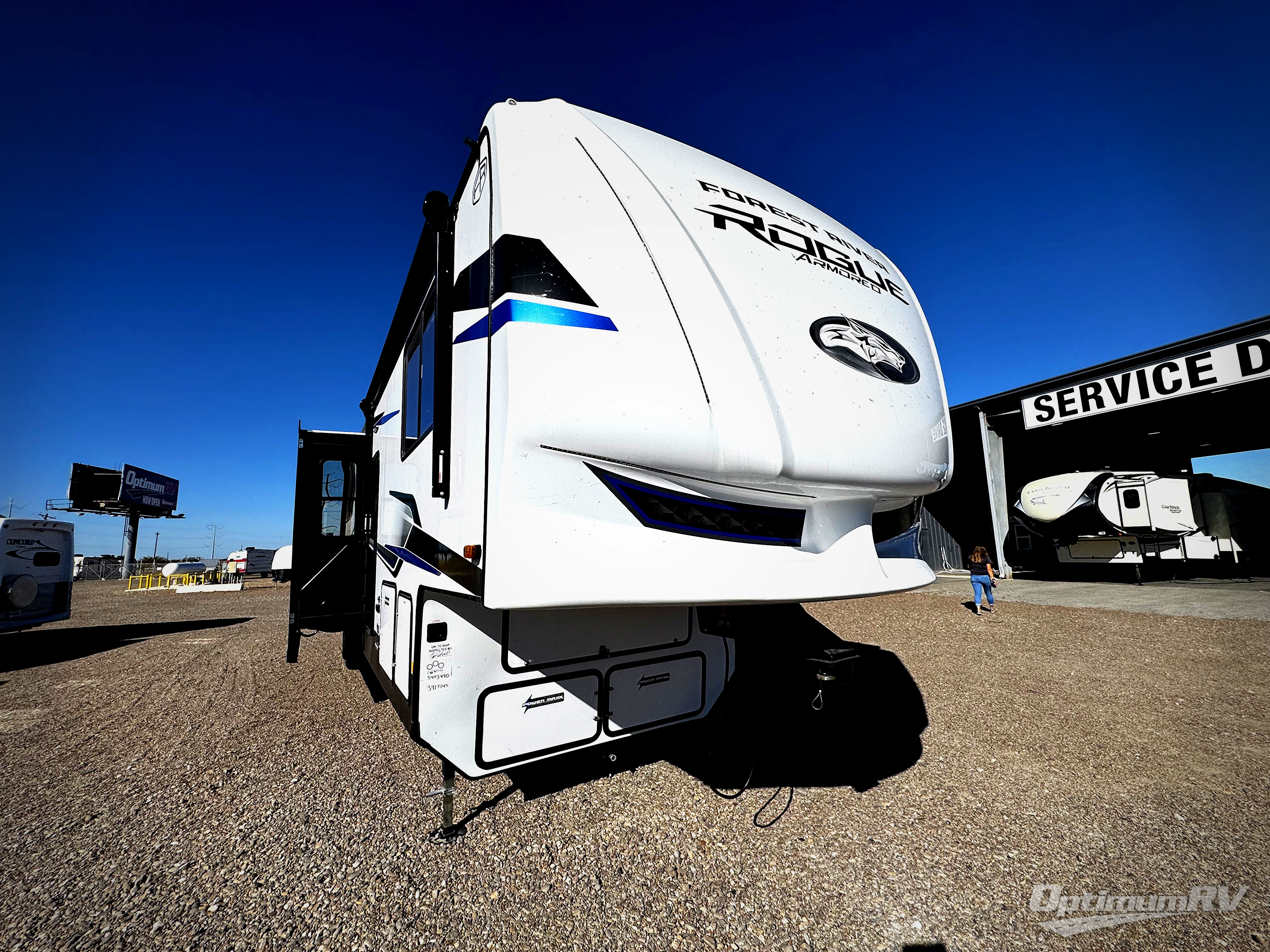 Every one of these Forest River Vengeance Rogue Armored fifth wheel toy haulers come with the features you want most at an affordable price tag! The DuraPoxy gas/oil resistant floor has 5,000 lb. tie downs to ensure your toys will arrive safely without damaging the flooring, plus the 3,000 lb. rated ramp door makes it easy to load them. Two 15,000 BTU A/Cs are "Super H Ducted" to keep you cool even on the hottest summer days, and the heated enclosed holding tanks help protect against the elements. Each model also includes a 6-point leveling system, dual LED cargo lights, solar reflective windows, and a tire pressure monitoring system. Inside, you'll enjoy the solid surface countertops, glass shower door, zebra shades in the living room, and stainless-steel multi-purpose sink to name a few comforts!