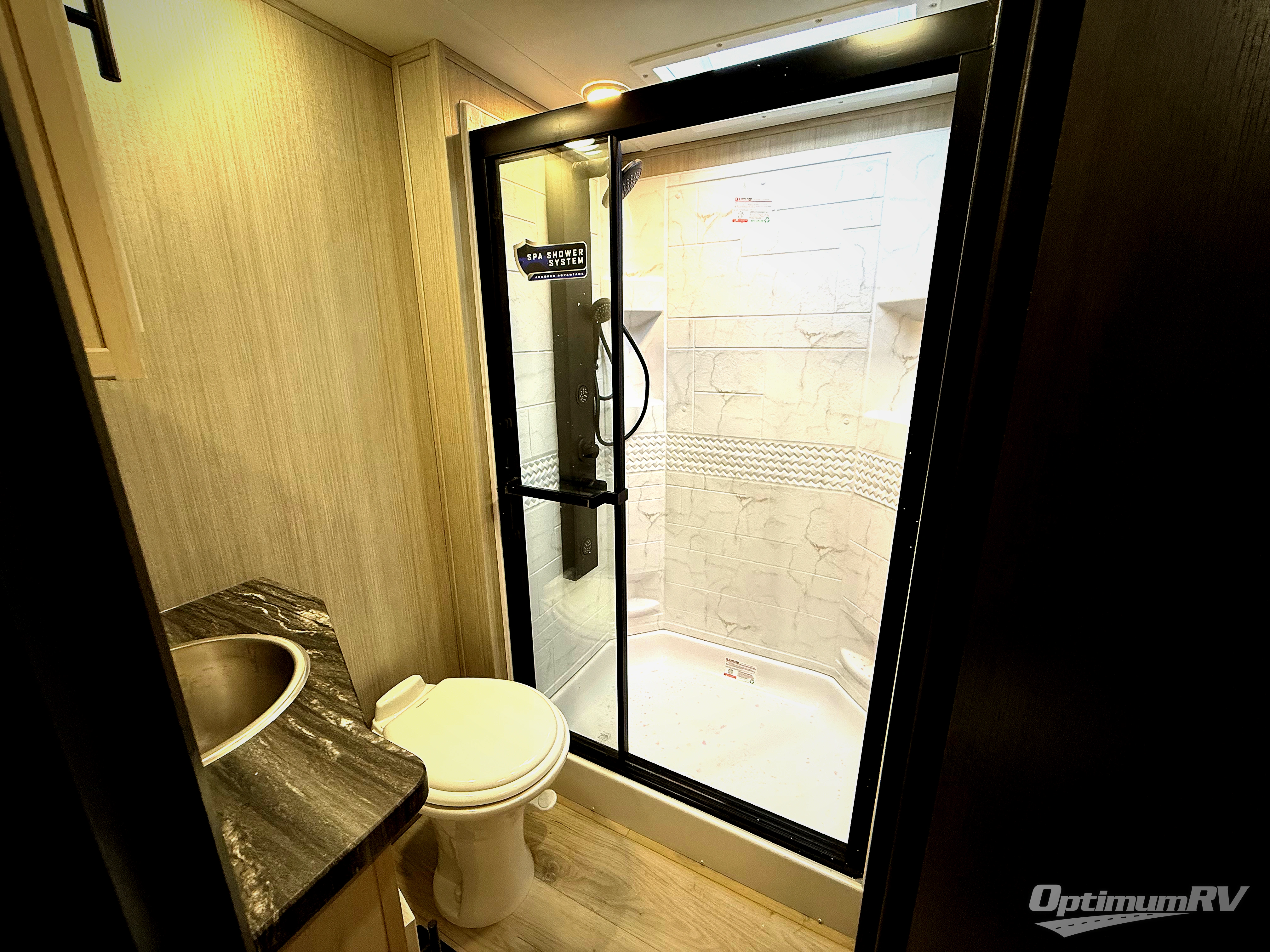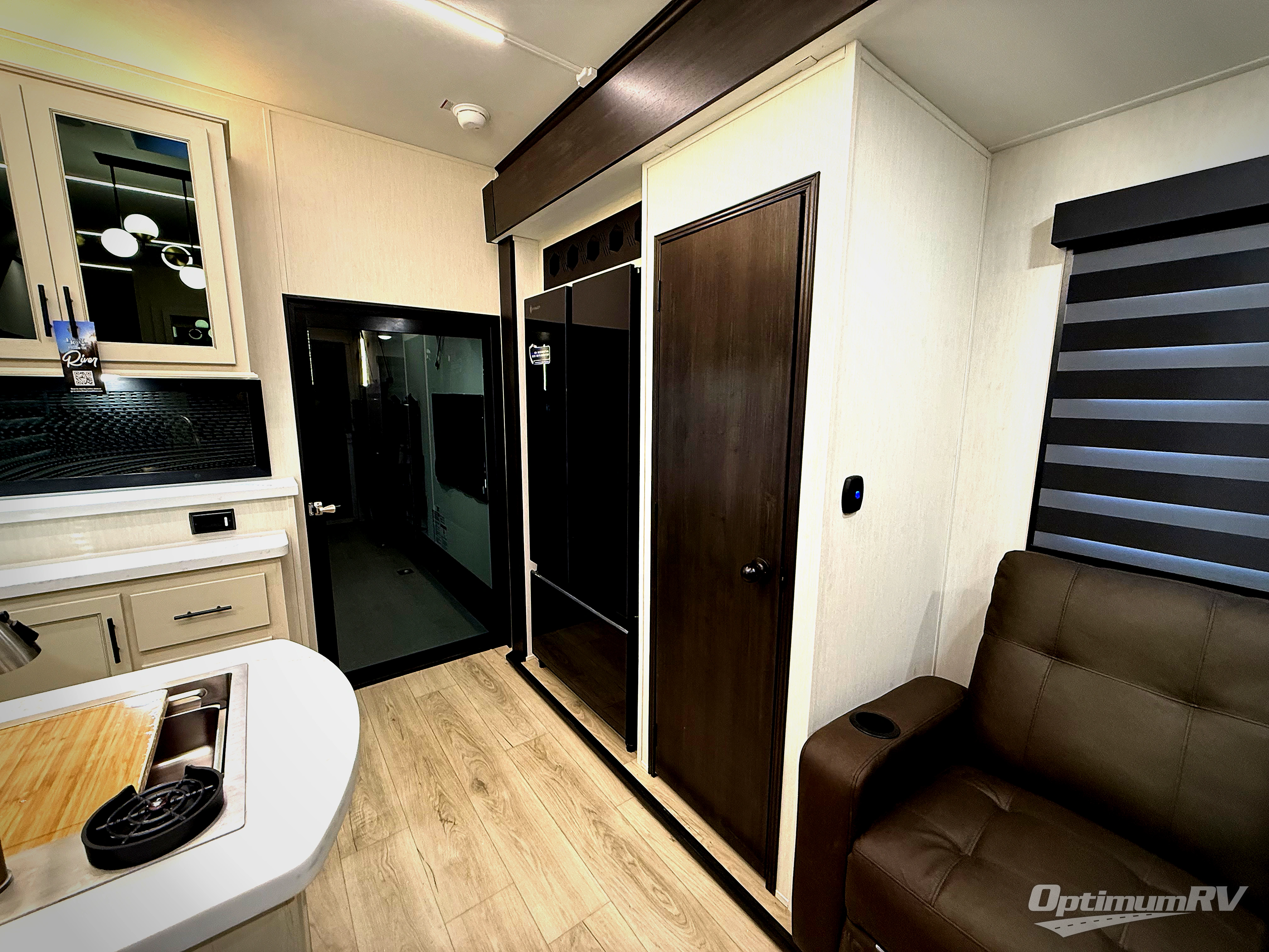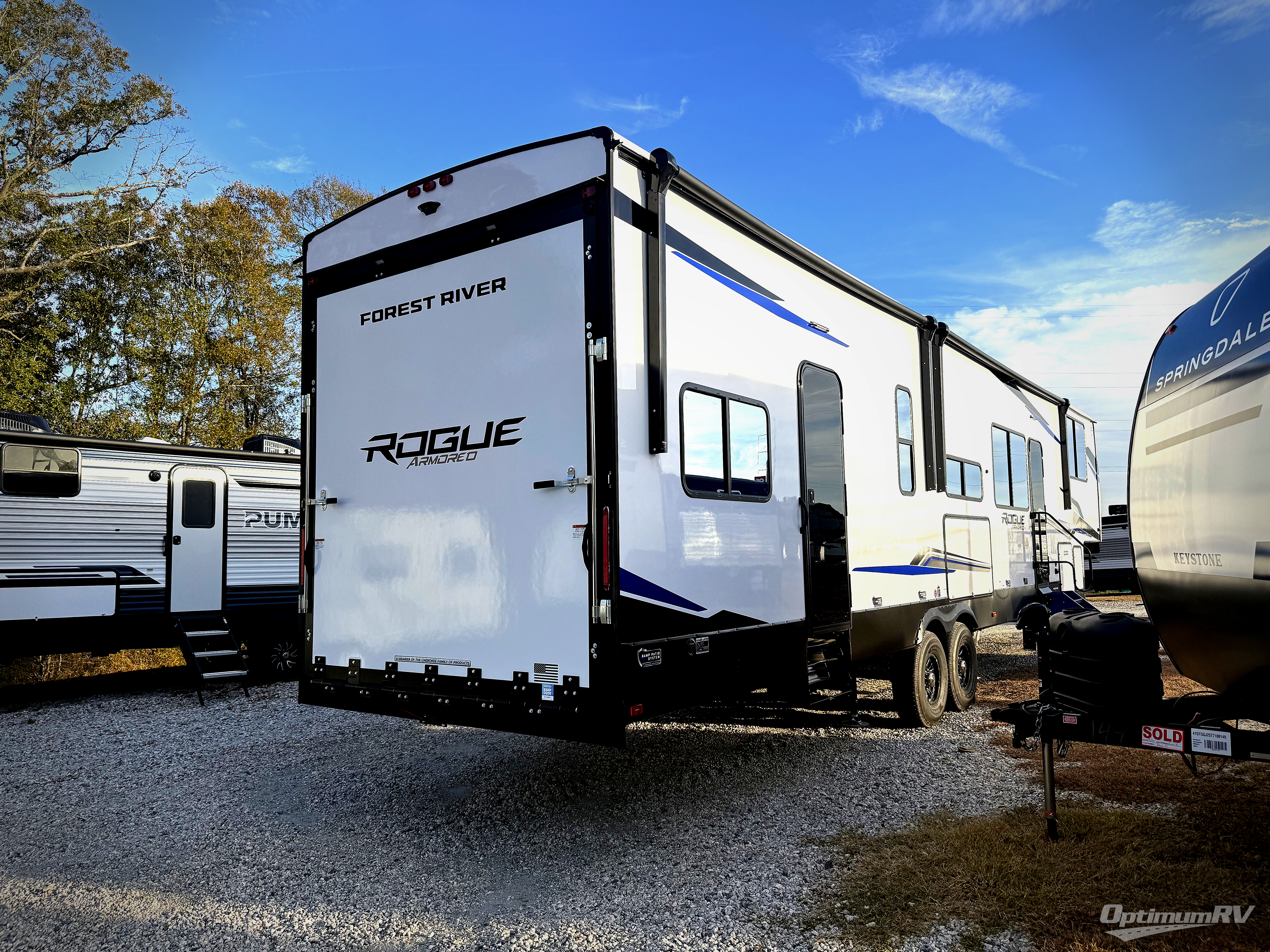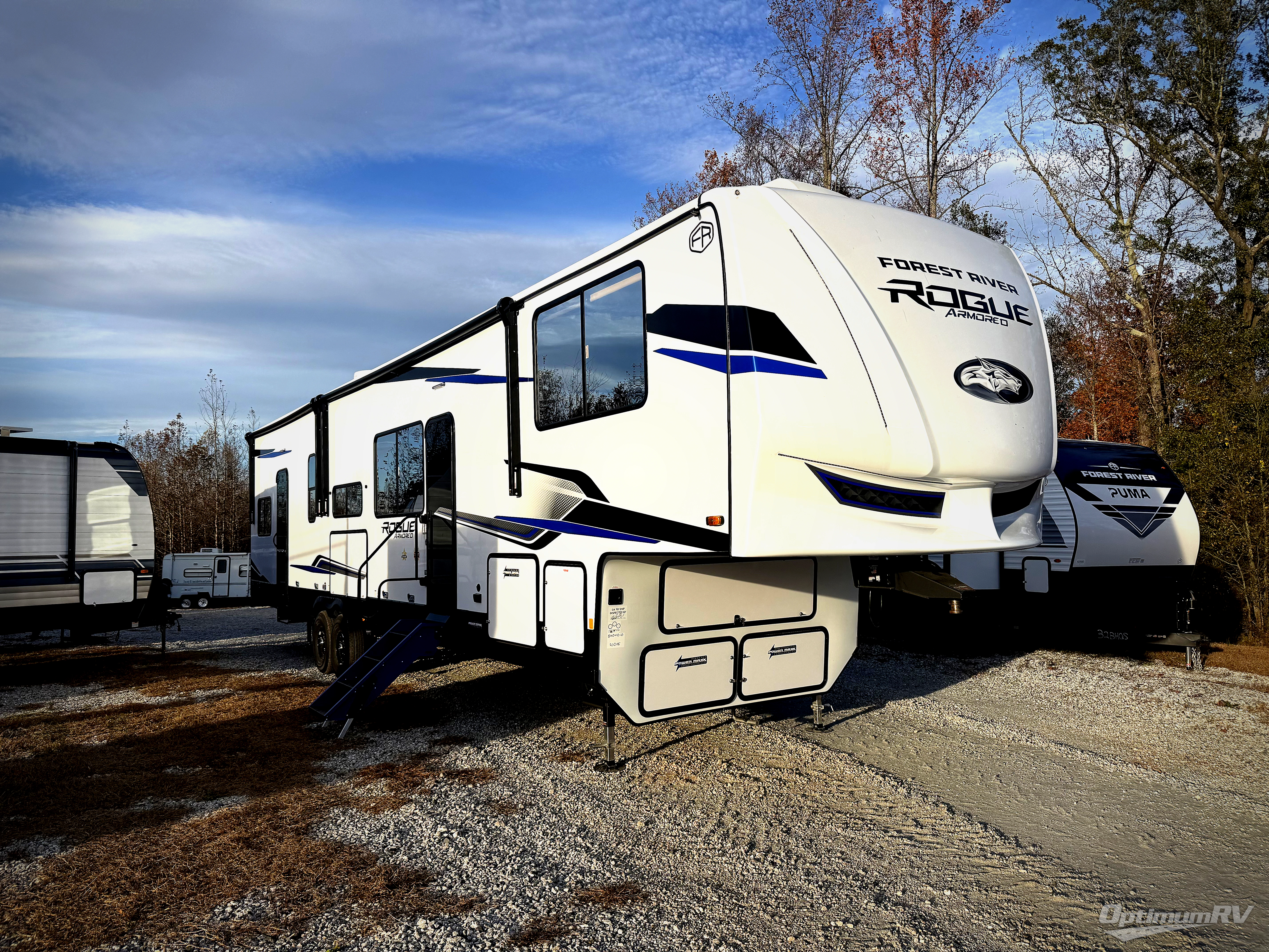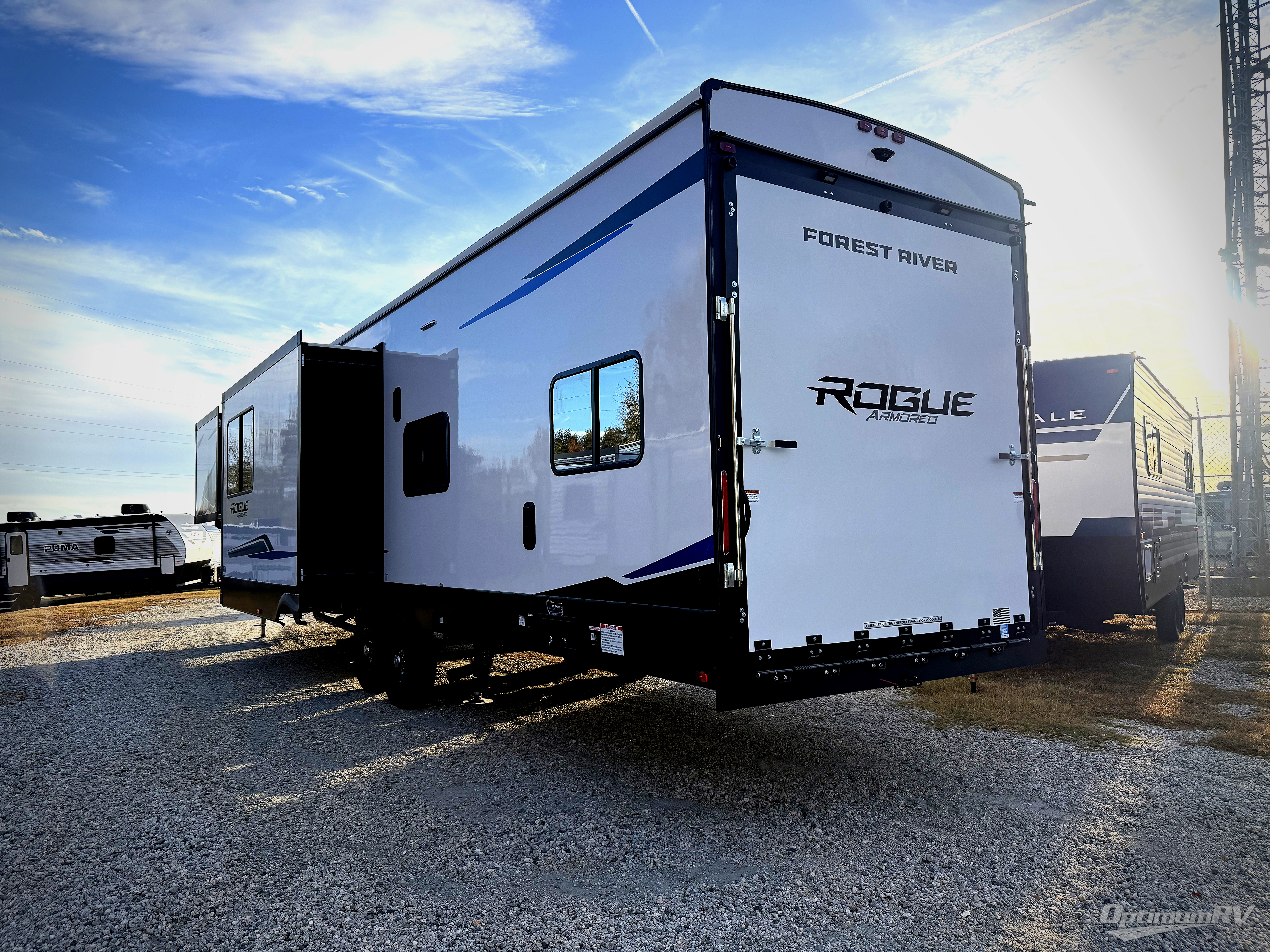 Every one of these Forest River Vengeance Rogue Armored fifth wheel toy haulers come with the features you want most at an affordable price tag! The DuraPoxy gas/oil resistant floor has 5,000 lb. tie downs to ensure your toys will arrive safely without damaging the flooring, plus the 3,000 lb. rated ramp door makes it easy to load them. Two 15,000 BTU A/Cs are "Super H Ducted" to keep you cool even on the hottest summer days, and the heated enclosed holding tanks help protect against the elements. Each model also includes a 6-point leveling system, dual LED cargo lights, solar reflective windows, and a tire pressure monitoring system. Inside, you'll enjoy the solid surface countertops, glass shower door, zebra shades in the living room, and stainless-steel multi-purpose sink to name a few comforts!