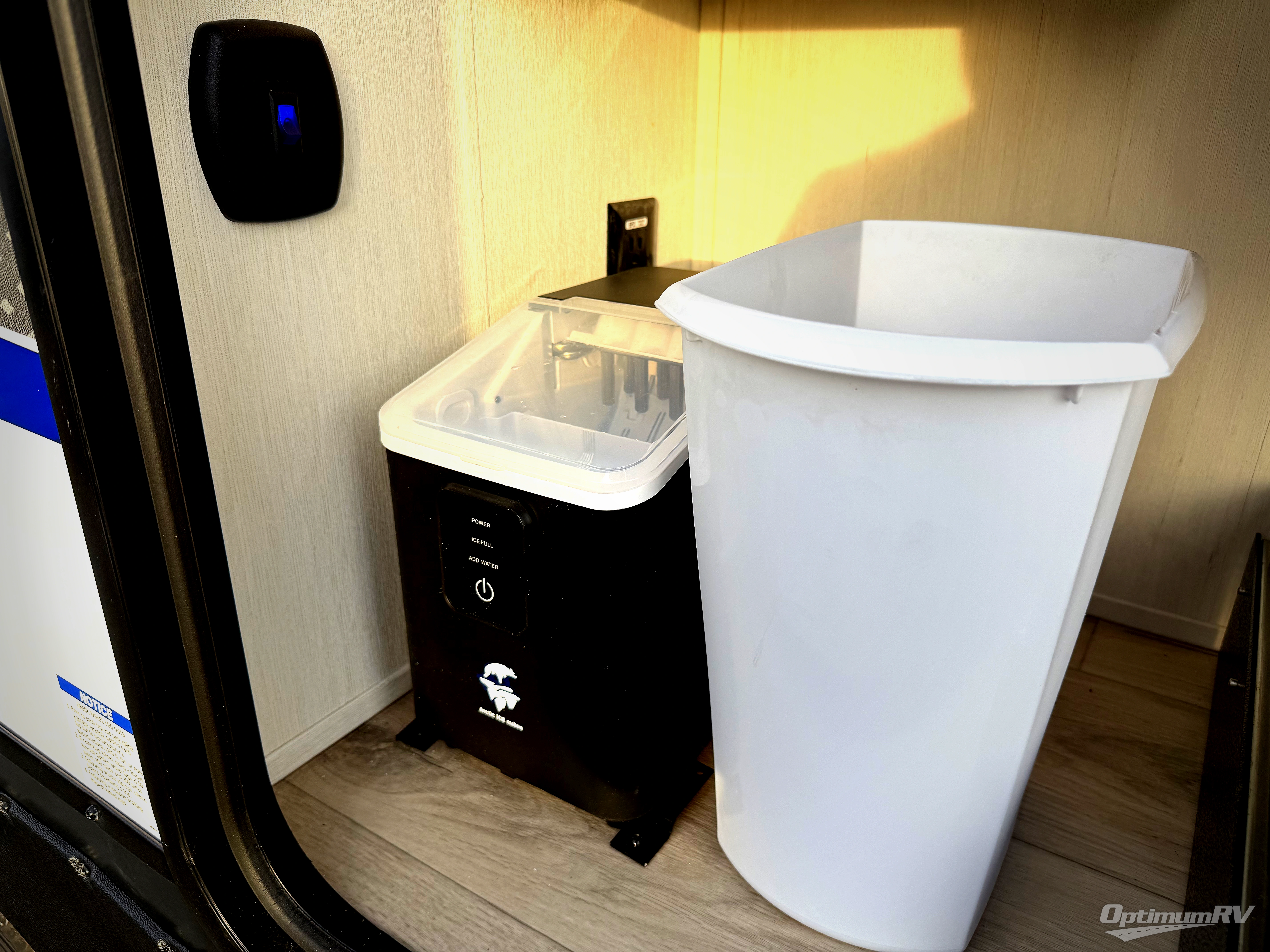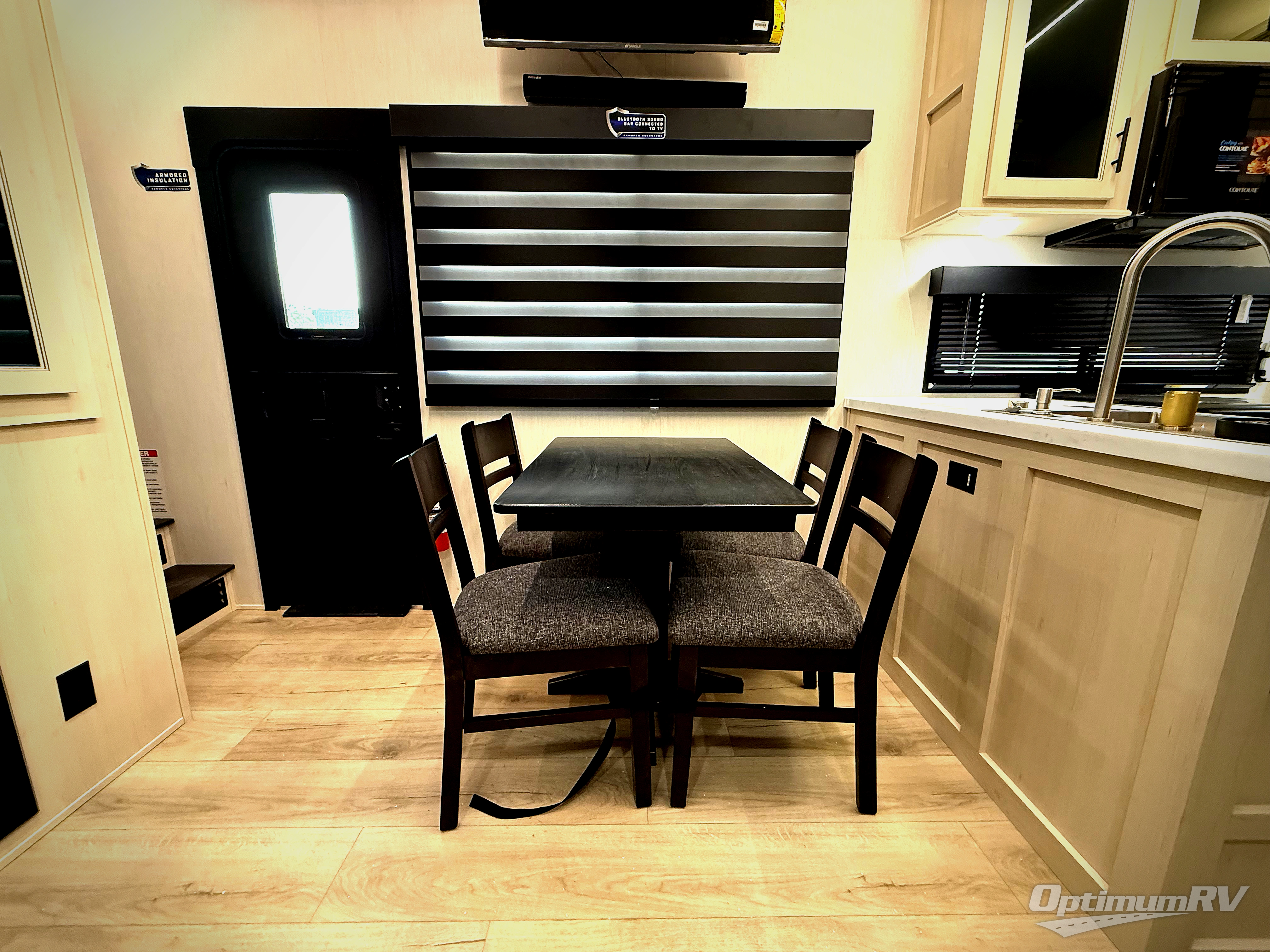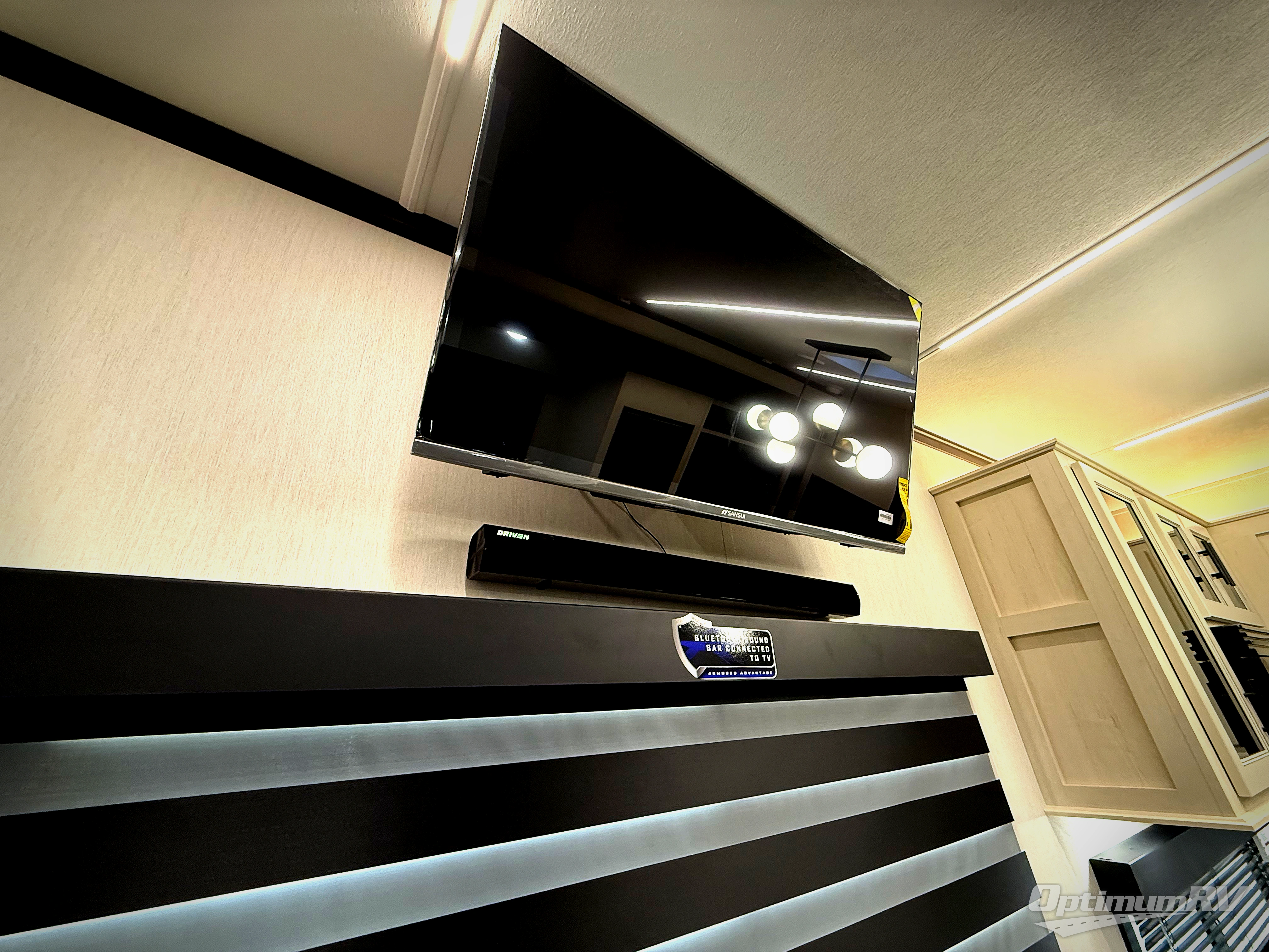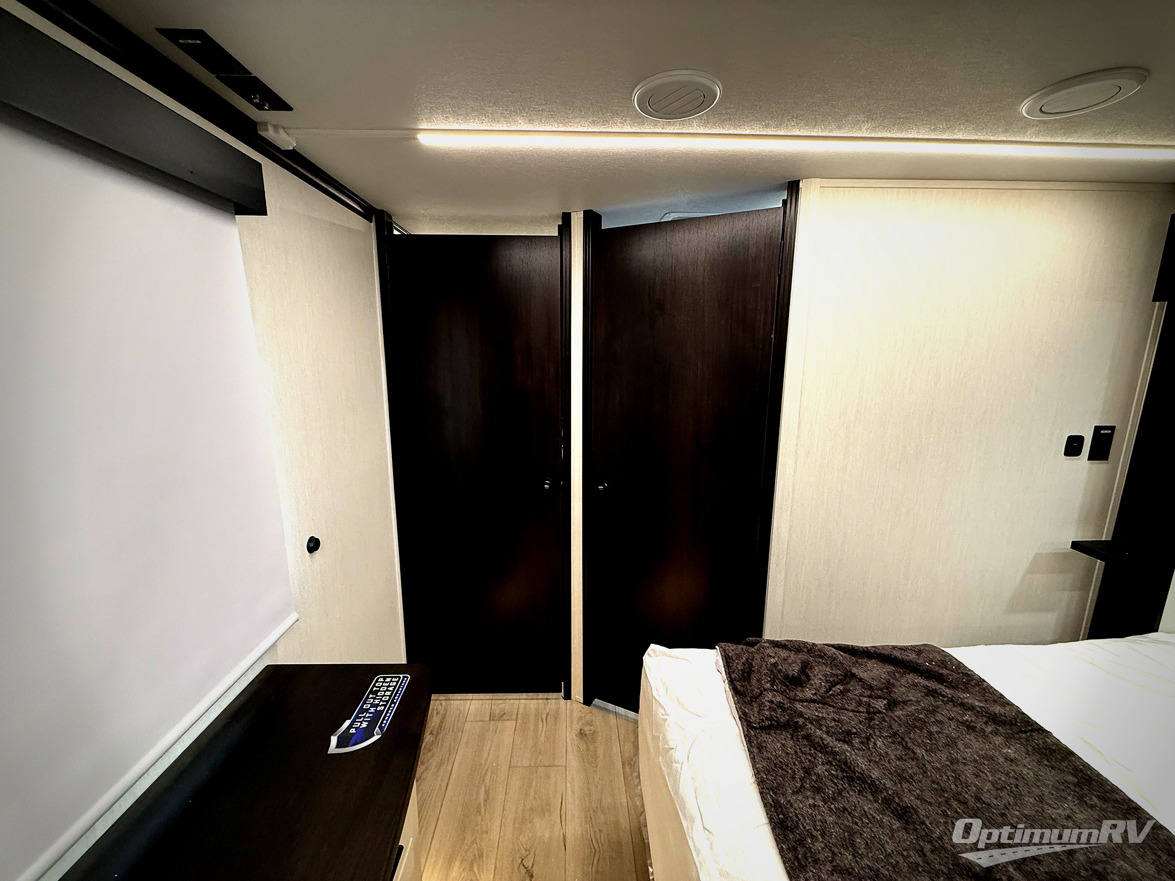 This toy hauler is perfect for a larger group since it can sleep up to eight with the added loft in the garage. There are also dual flip-up sofas here, along with a queen bed above and a half bath for added convenience! The dual entry full bath is up front, creating a master bedroom you are sure to love. There is a king bed slide out, a front wardrobe, and a dresser to keep your things organized. Head to the middle kitchen and living room to relax on the sofa within the large slide out, dine at the table with four chairs, and cook in the full kitchen. This unit also includes a fireplace to make it cozier, a large pantry to keep snacks stocked, and dual power awnings to expand your living space outdoors!