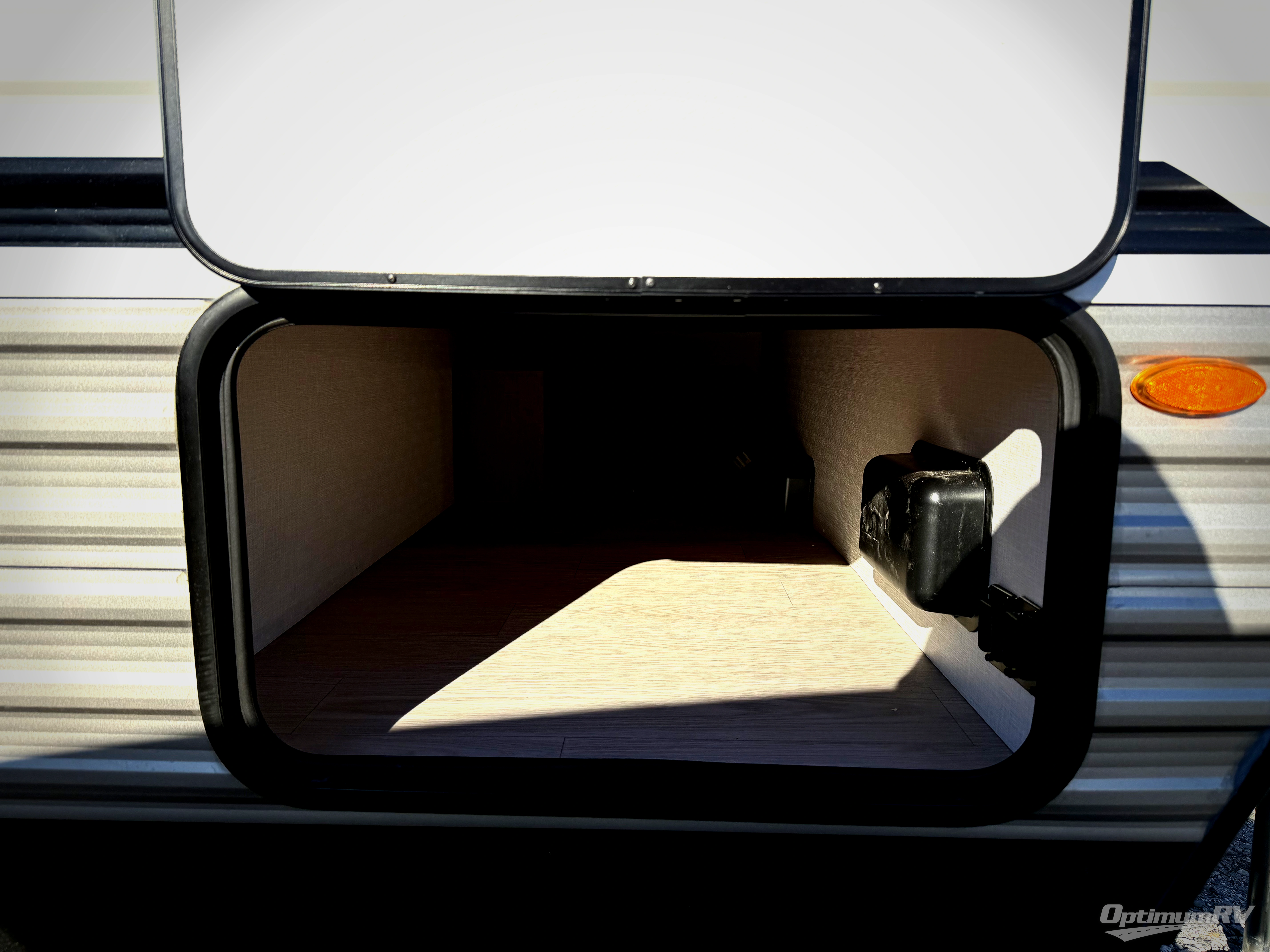 At the front of the trailer, a private bedroom welcomes you with a comfortable 60" x 80" queen bed for a restful night’s sleep, along with wardrobes on each side and an overhead shelf for organized storage. A convenient entry door provides direct access to this cozy space. Moving through the pass-through full bathroom, you’ll find storage beneath the countertop for toiletries and a 32" x 32" shower with a glass door, perfect for unwinding after a full day of adventure. At the center of the trailer, the main living area and kitchen create a spacious and functional hub, featuring a sofa and U-shaped dinette housed in a slide-out for plenty of seating space, while the fully equipped kitchen includes a sink with drying rack, a three-burner cooktop, and a 10 cu. ft. refrigerator so you can cook like a chef. Next to the second entry door, a walk-in pantry offers abundant space for dry goods and supplies. At the rear, two private bunk rooms each include a 38" x 72" bunk, dedicated storage, and a flip-up desk, ideal for work, study, or quiet time.