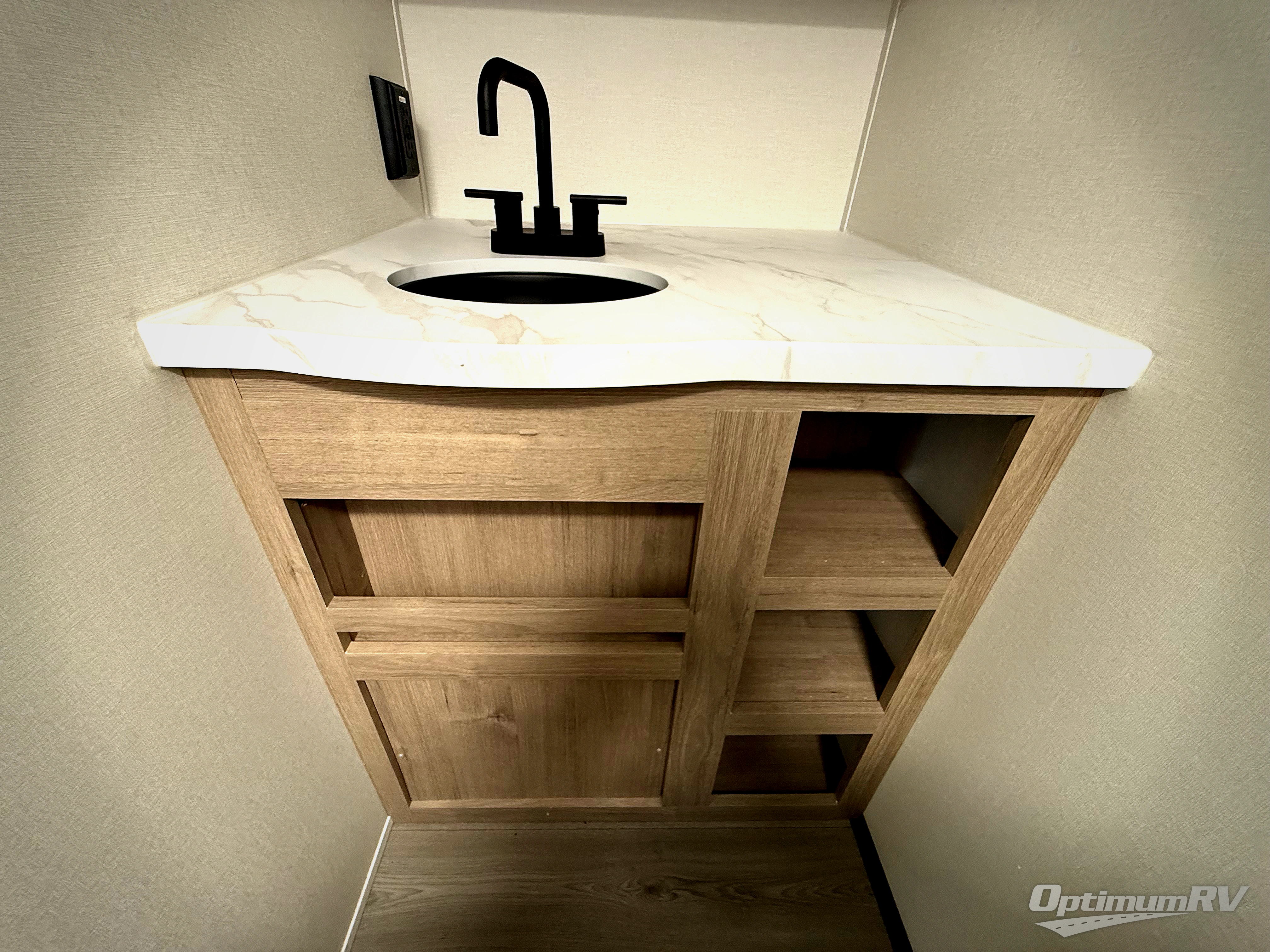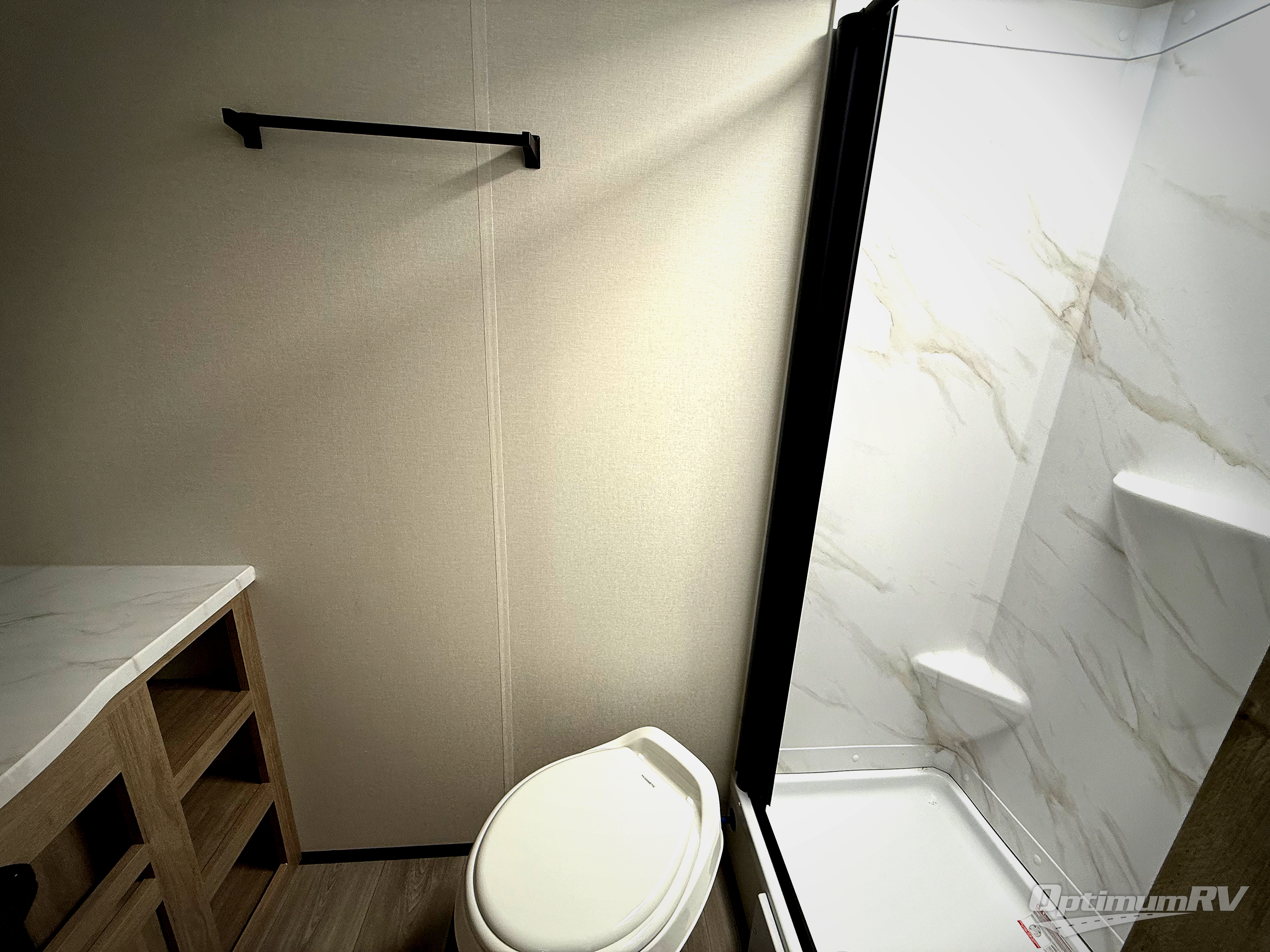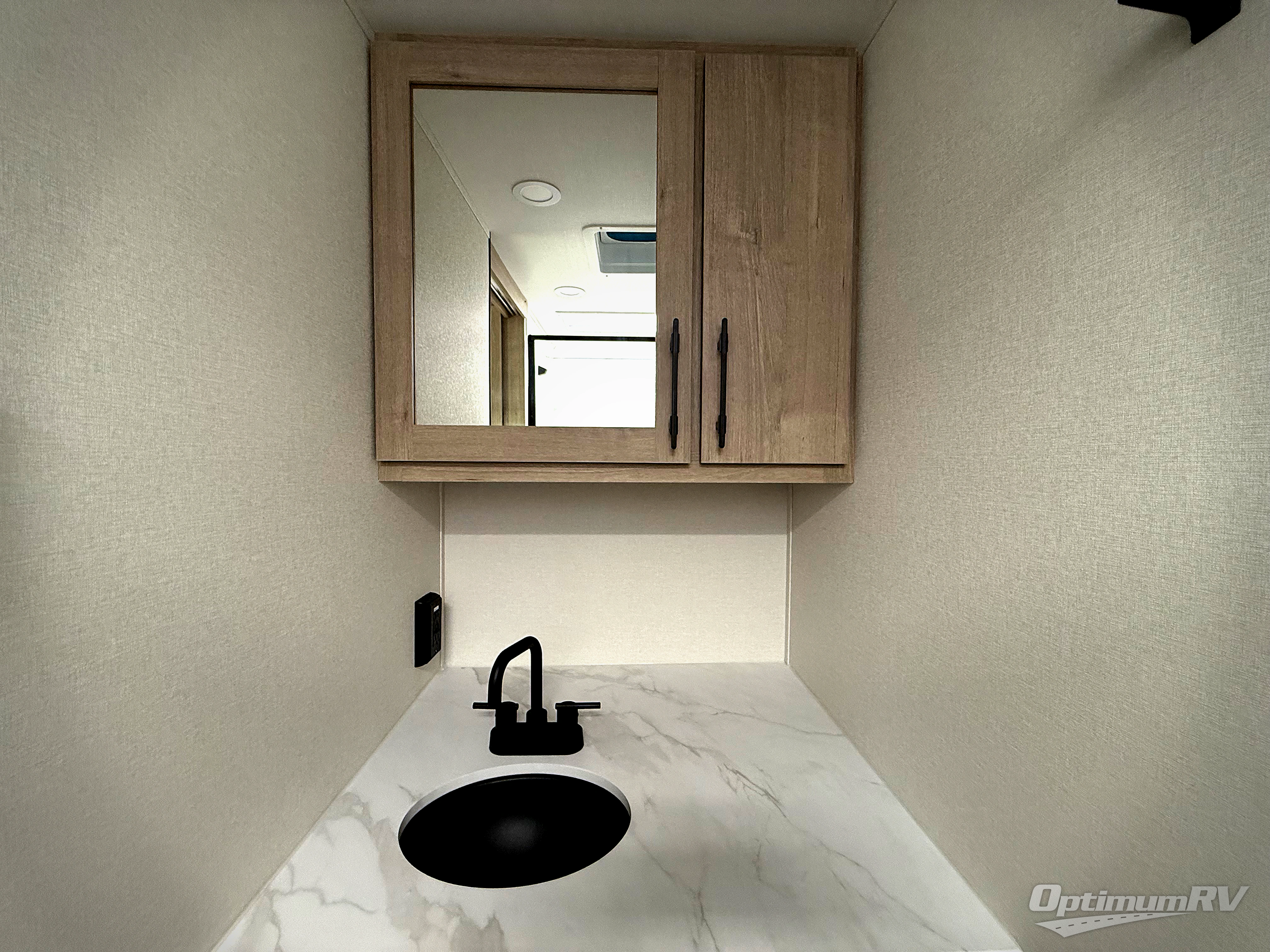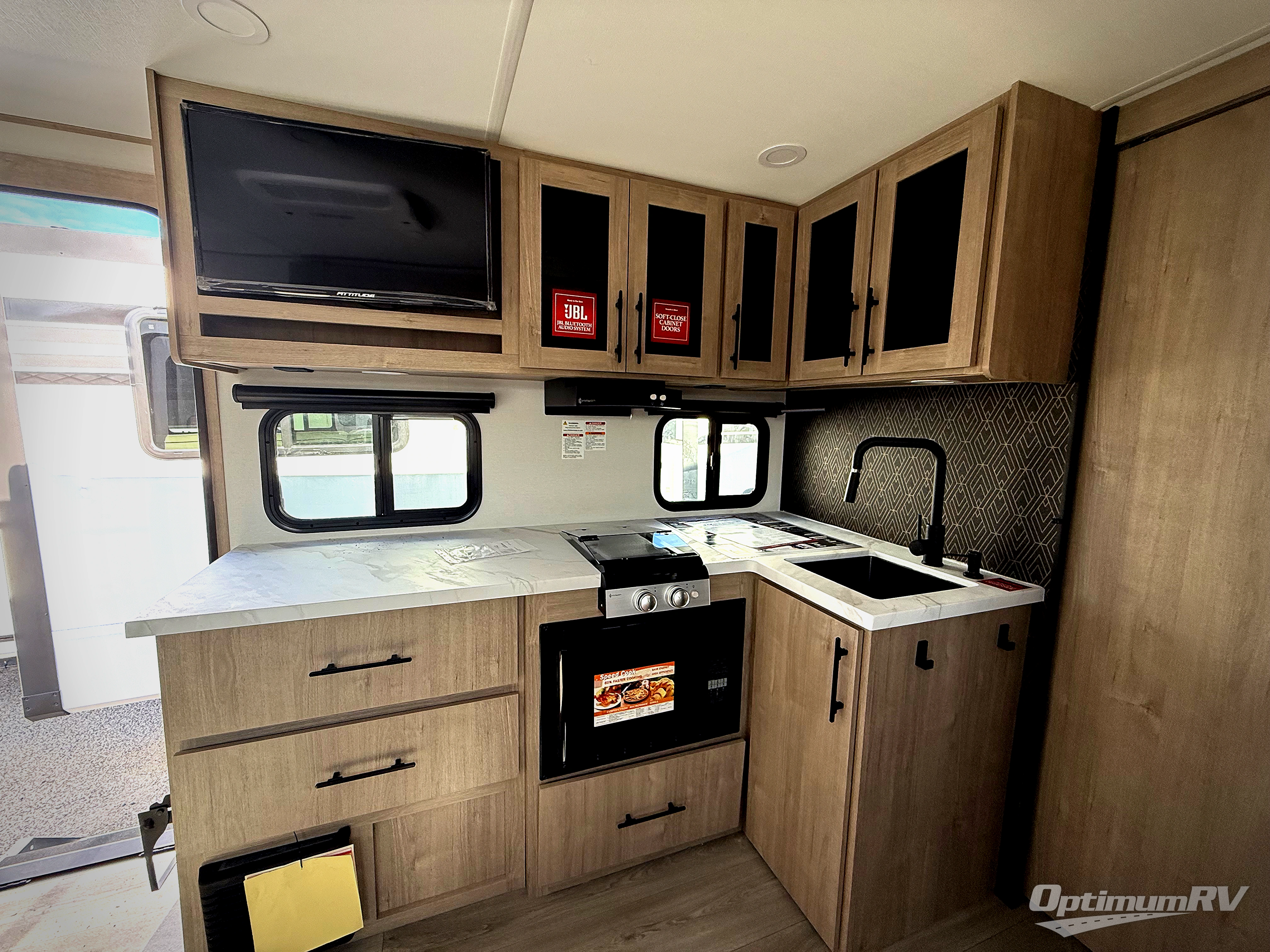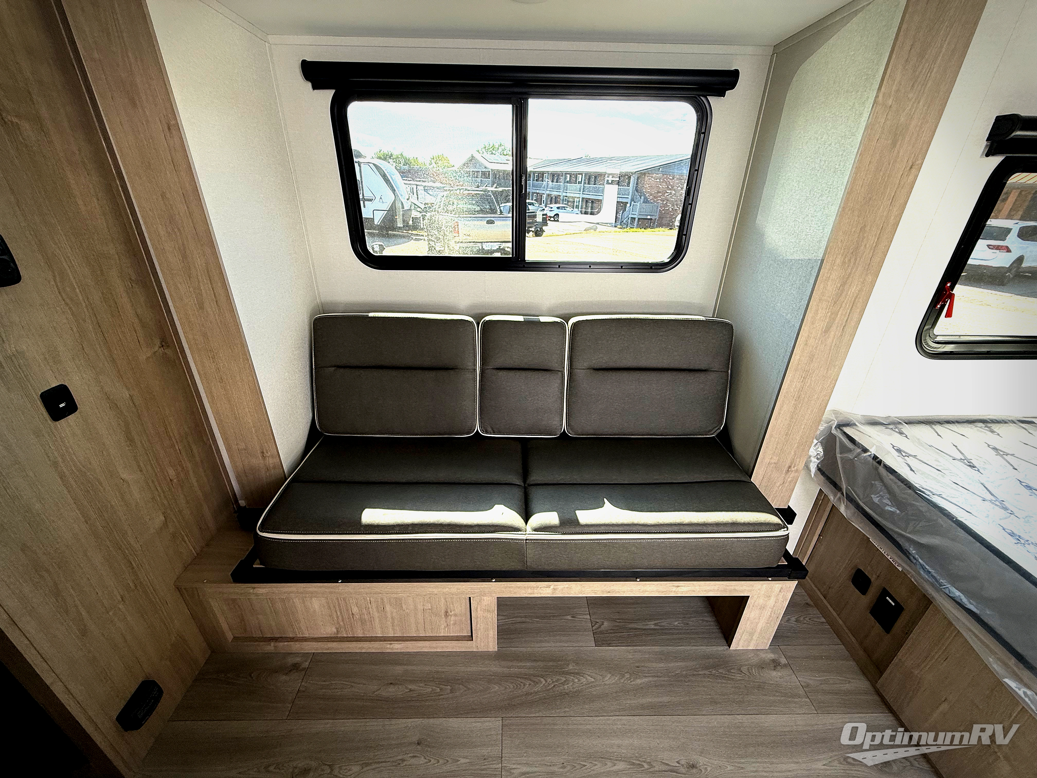 Pack your bags and head out on a fun camping trip in this travel trailer! The front queen bed offers a comfortable place to sleep at night, as well as the roll-over sleeper sofa slide with drawers for storage. You can make meals on the cooktop or in the convection microwave. The full rear bathroom has a walk-in shower with an oversized vanity to easily get ready each day. Outside, you'll find a spray port, an unobstructed pass-thru storage, and an interior/exterior table to use at your convenience.