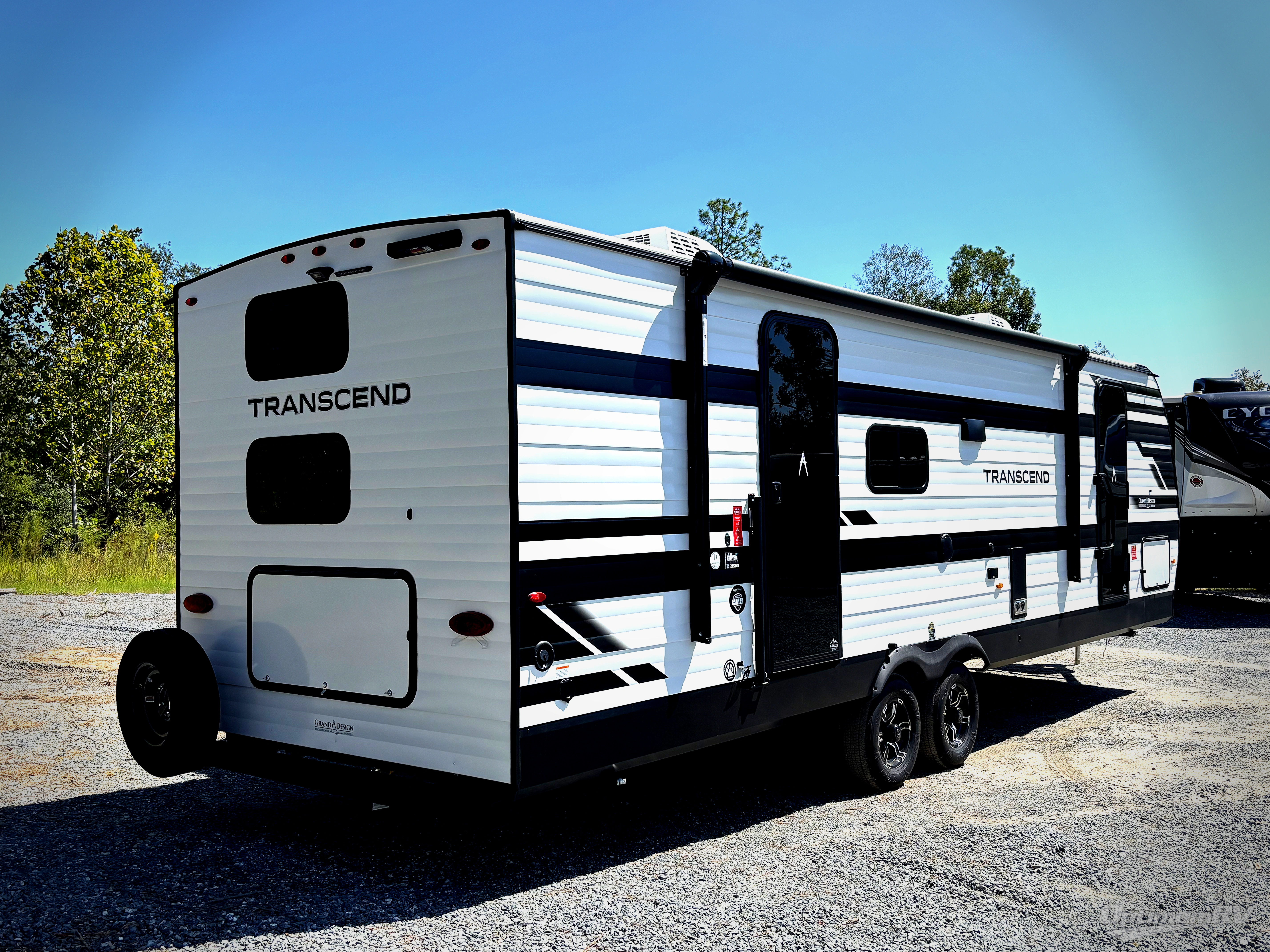 With any Transcend travel trailer by Grand Design, you will enjoy upscale appointments and convenient amenities to make each camping experience one to remember! The Quad Seal technology, residential insulated walls, plus heated and enclosed underbelly with suspended tanks make these units solid and durable. There is a black automotive glass door outside, along with a Safe-T-Rail assist on the main entry door, backup camera prep, and a universal docking station. JBL interior and exterior speakers plus a JBL head unit will let you listen to your favorite tunes as you visit under the power awning with LED strip lights. Inside, you'll enjoy multiple outlets to keep your gadgets charged, thermoformed and seamless countertops, and a 6' 6" interior height so you won't feel closed in. The Solar Prep Package will allow you to enjoy off-grid capabilities with a 200W solar panel, which is wired for up to 600W, a 30 AMP Bluetooth solar controller, a 2000W inverter prep, and more!