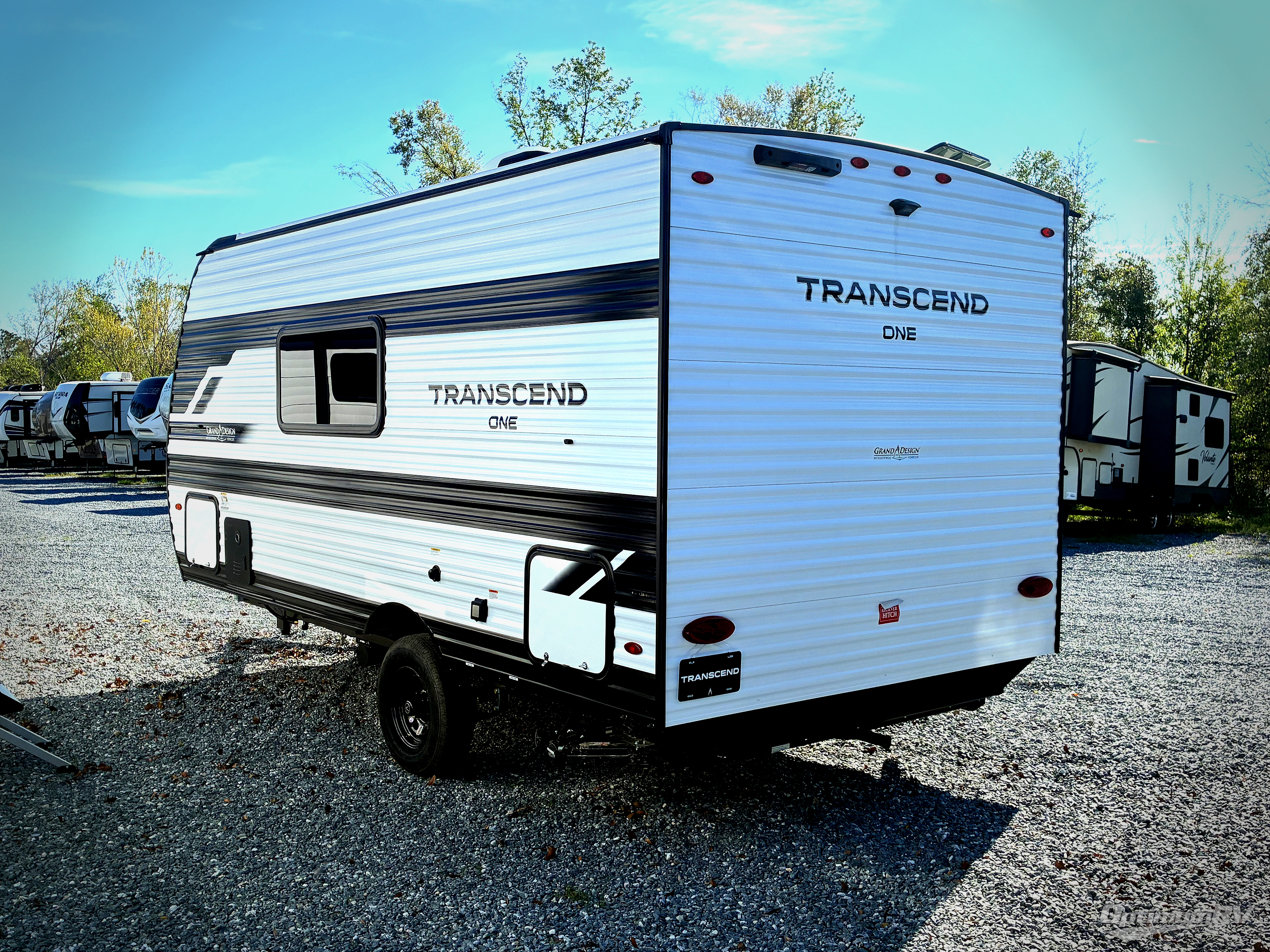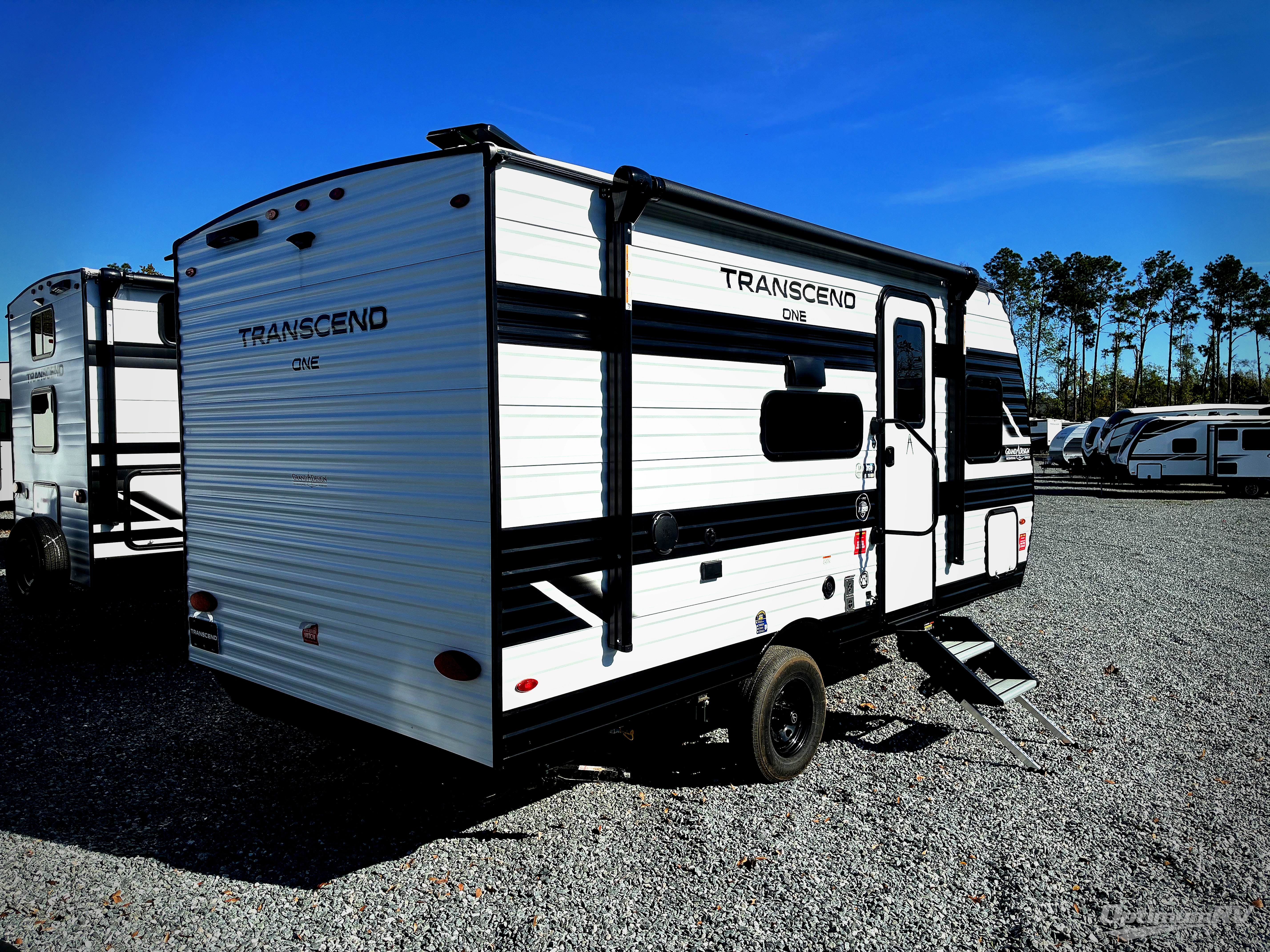 With any Transcend One travel trailer by Grand Design, you will enjoy lightweight towing thanks to their single axle. There are many interior comforts to make camping easier than ever, such as recessed lighting, residential countertops, and a 6' 6" interior height. Each model is constructed with a heated and enclosed underbelly with suspended tanks, a moisture barrier floor enclosure, and Thermofoil over the roof and front cap for added protection. And a JBL sound system will let you listen to tunes as you visit under the power awning with a Fusion light!