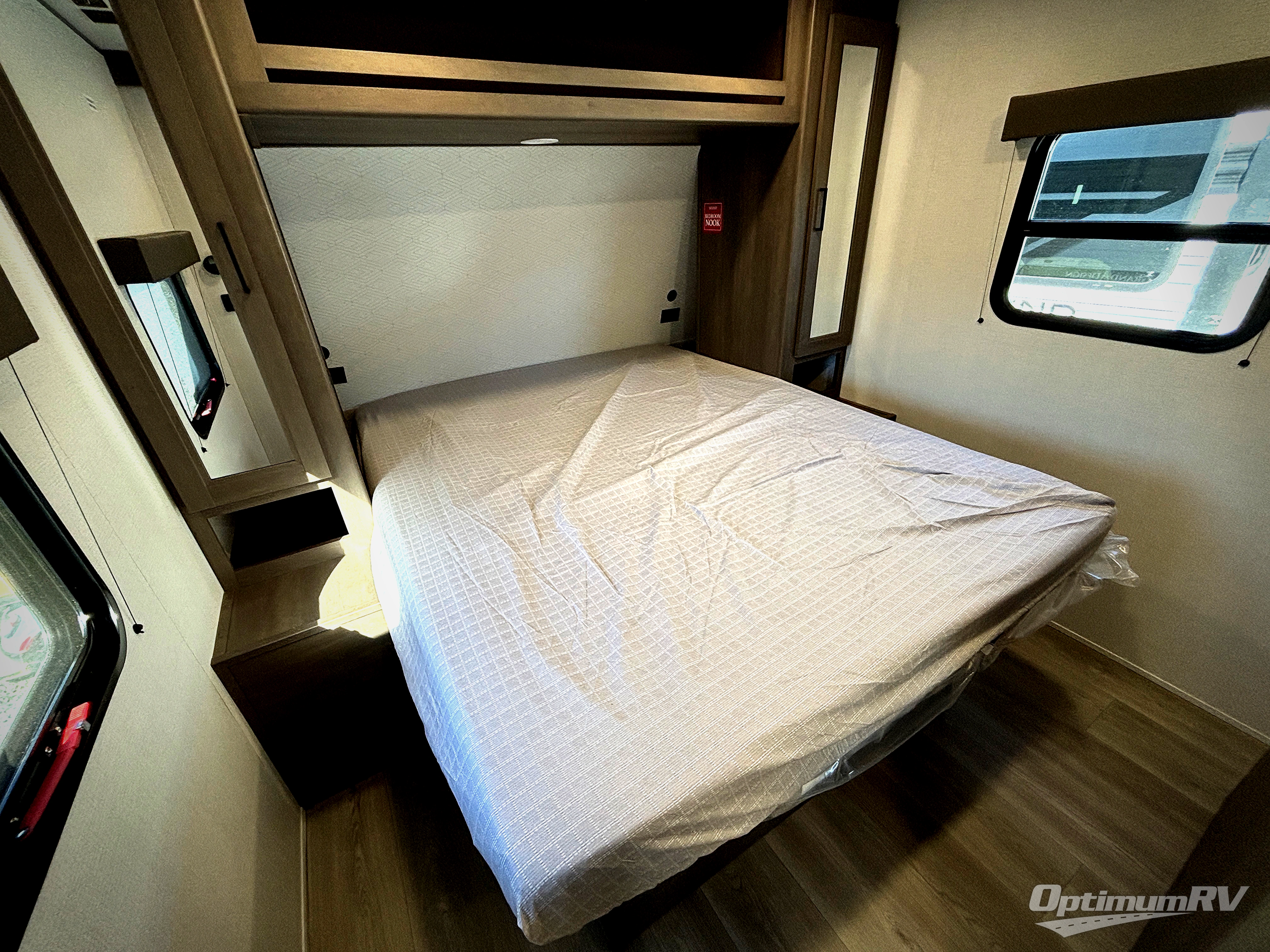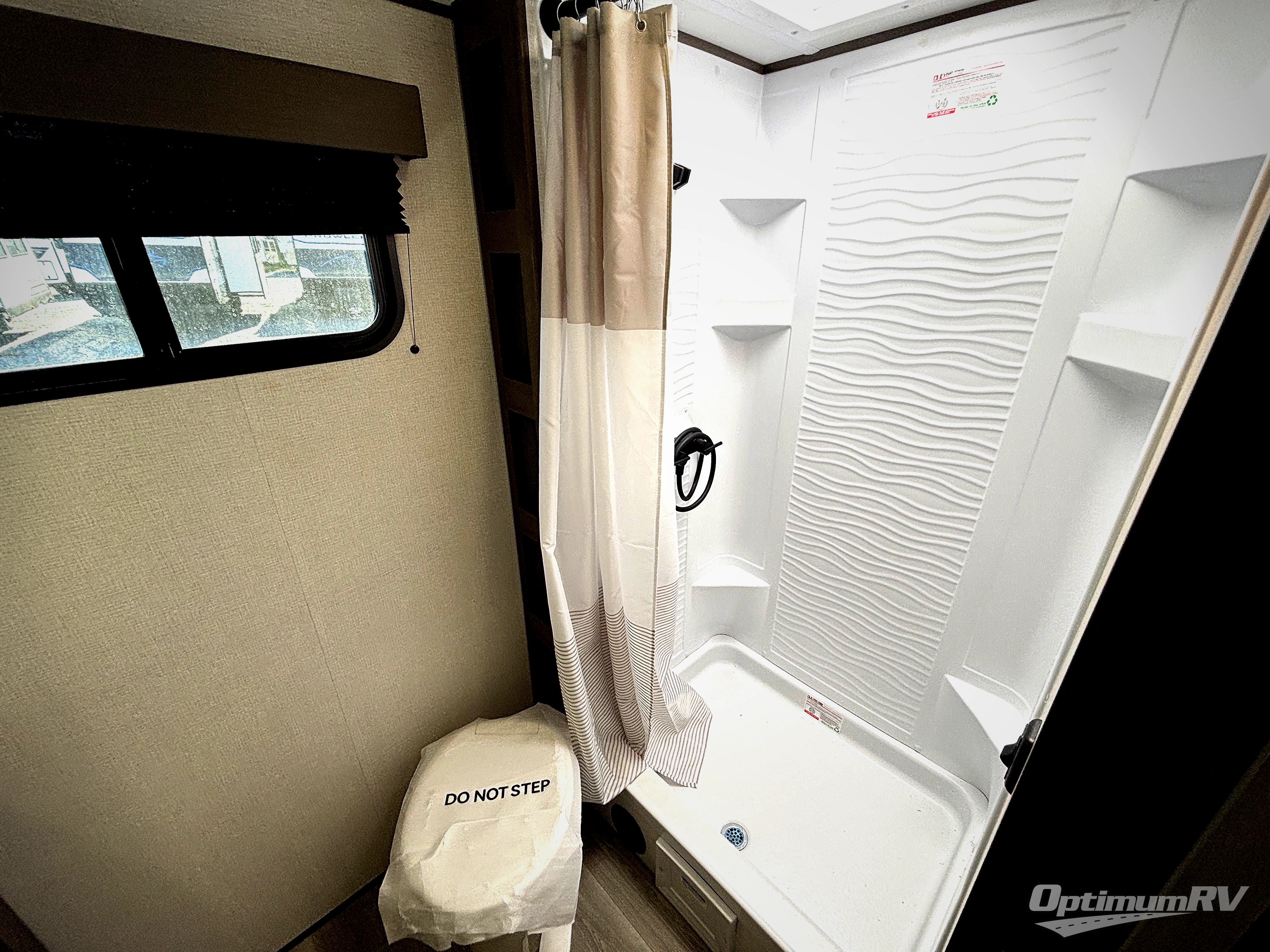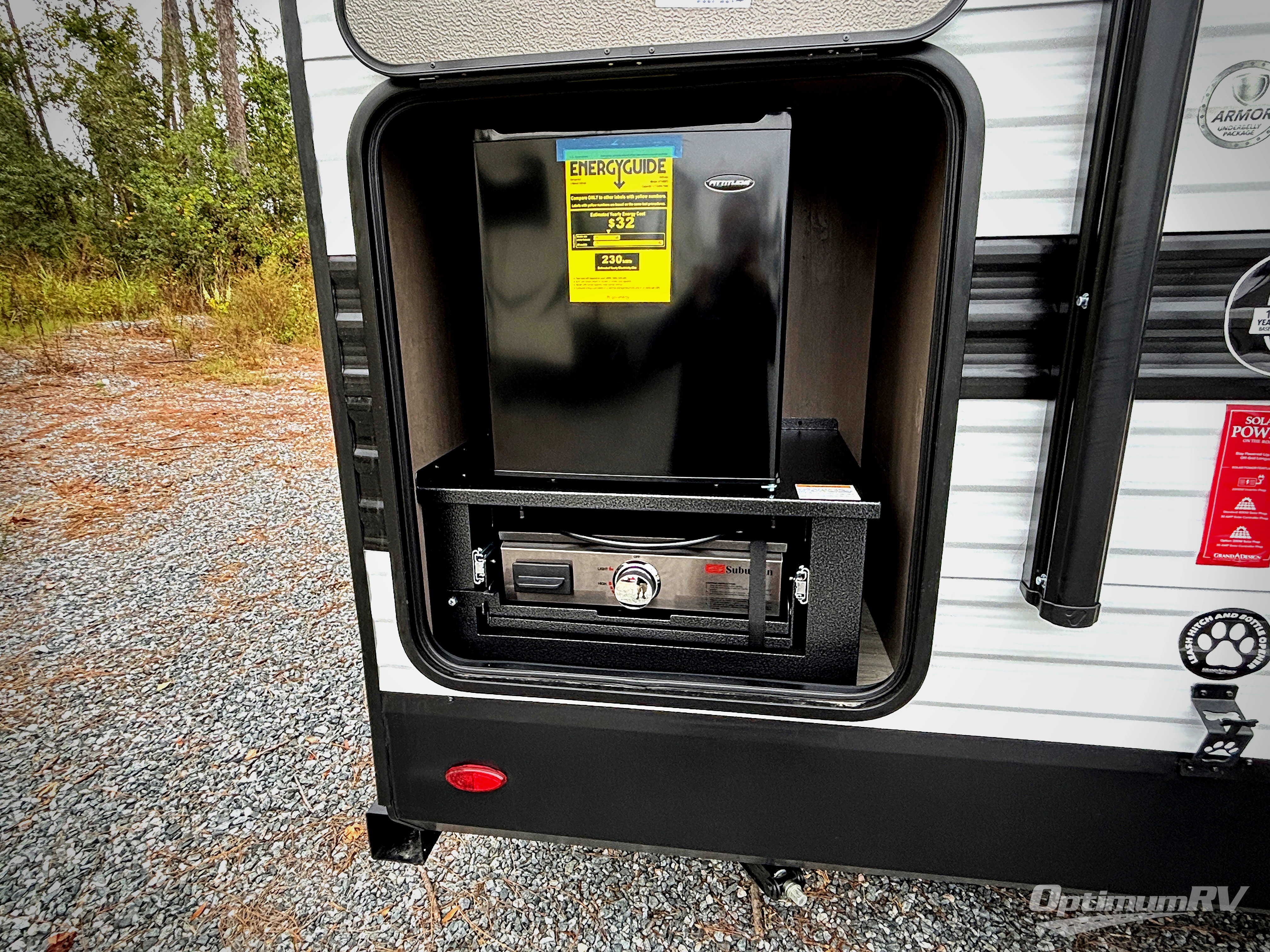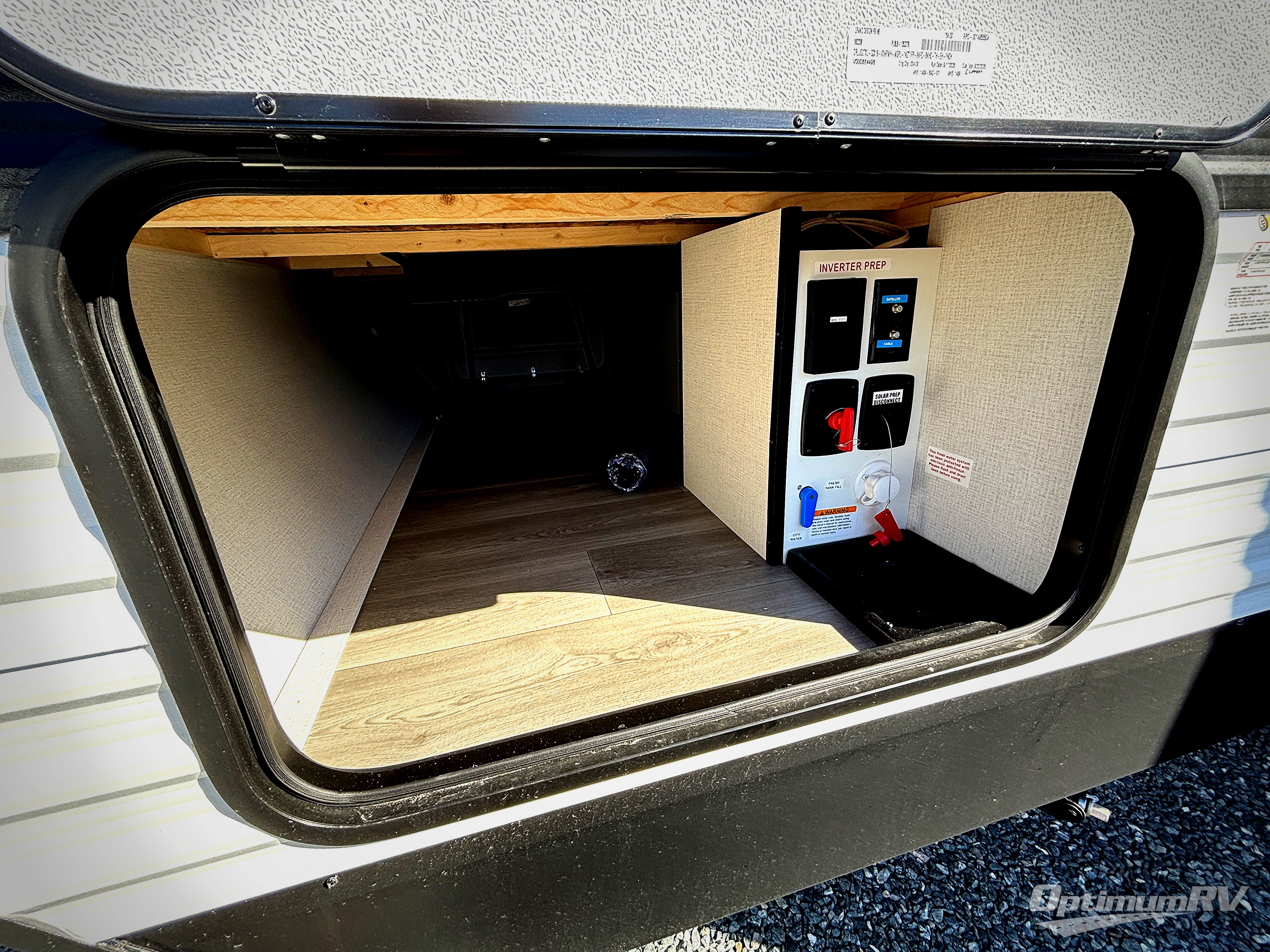 Pack your bags and head for the campground in this spacious travel trailer! Once you arrive, you can unload the pass-thru storage, then make lunch on the exterior griddle with a 1.7 cu. ft. exterior refrigerator. The U-shaped dinette slide will provide a place to dine if you decide not to stay outside under the 16' power awning. Optional theater seats can be chosen in place of the dinette for even more comfort! You'll sleep soundly on the queen bed in the front bedroom, and the full rear bath lets you freshen up each day.