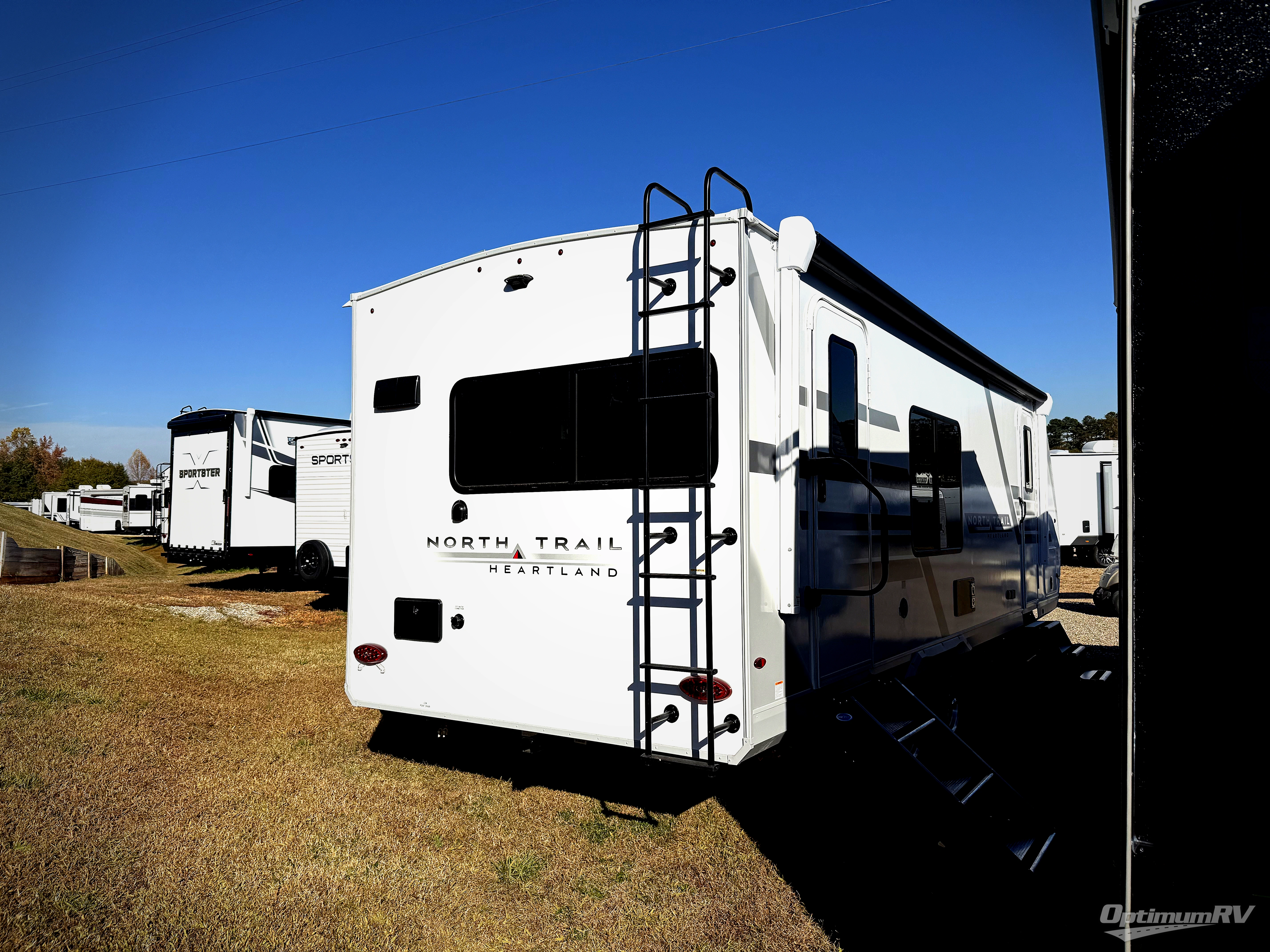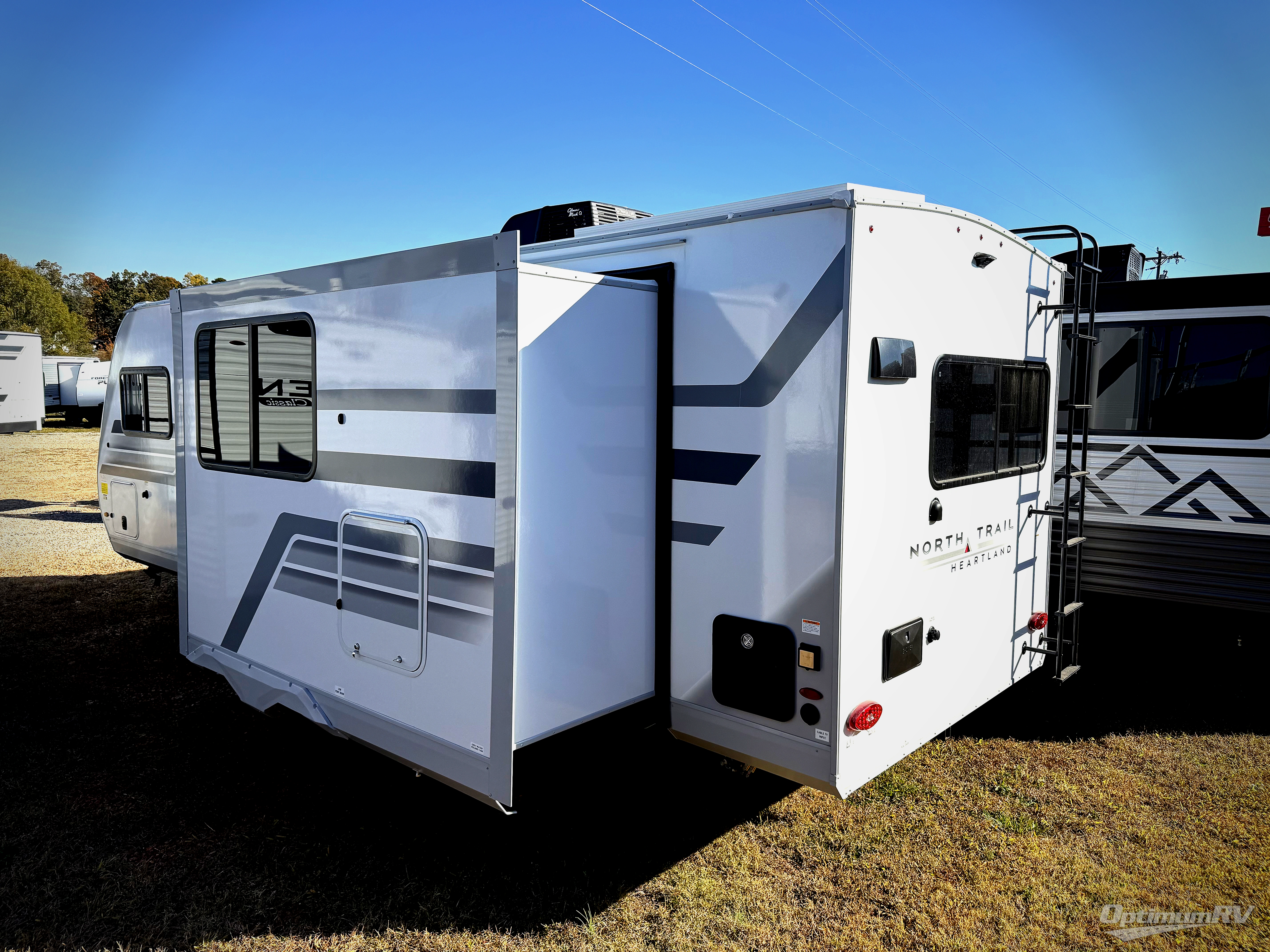 Built for comfort, durability, and modern convenience, these Heartland North Trail travel trailers offer everything you need for a premium camping experience. Each model features a strong American-made Norco Z-frame with an aerodynamic front profile and front diamond plating for added protection. The exclusive TrusstXL Roof System and CoreShield vacuum-bonded walls with Azdel provide superior insulation. Inside, enjoy residential comforts like seamless countertops, solid hardwood maple cabinet doors, LED lighting throughout, and 60 x 80 in. queen beds or 60 x 76 in. Murphy beds. Tech-ready features include an LED smart TV, USB ports, TPMS monitoring, and a 200W solar panel with 30 AMP digital controller. With a Quiet Series A/C, on-demand 60K BTU water heater, with these trailers you are equipped to make every trip comfortable and adventure-ready.
