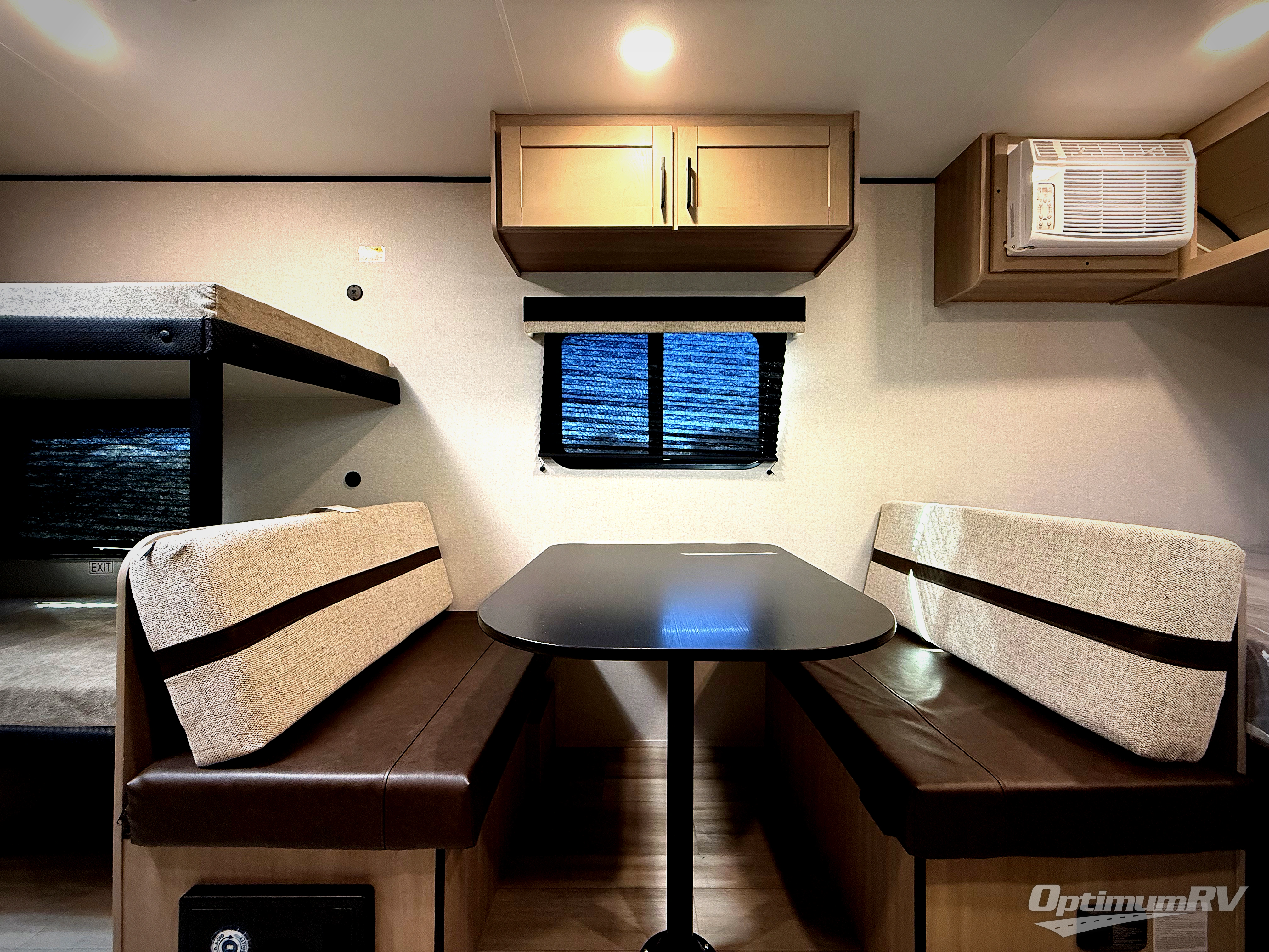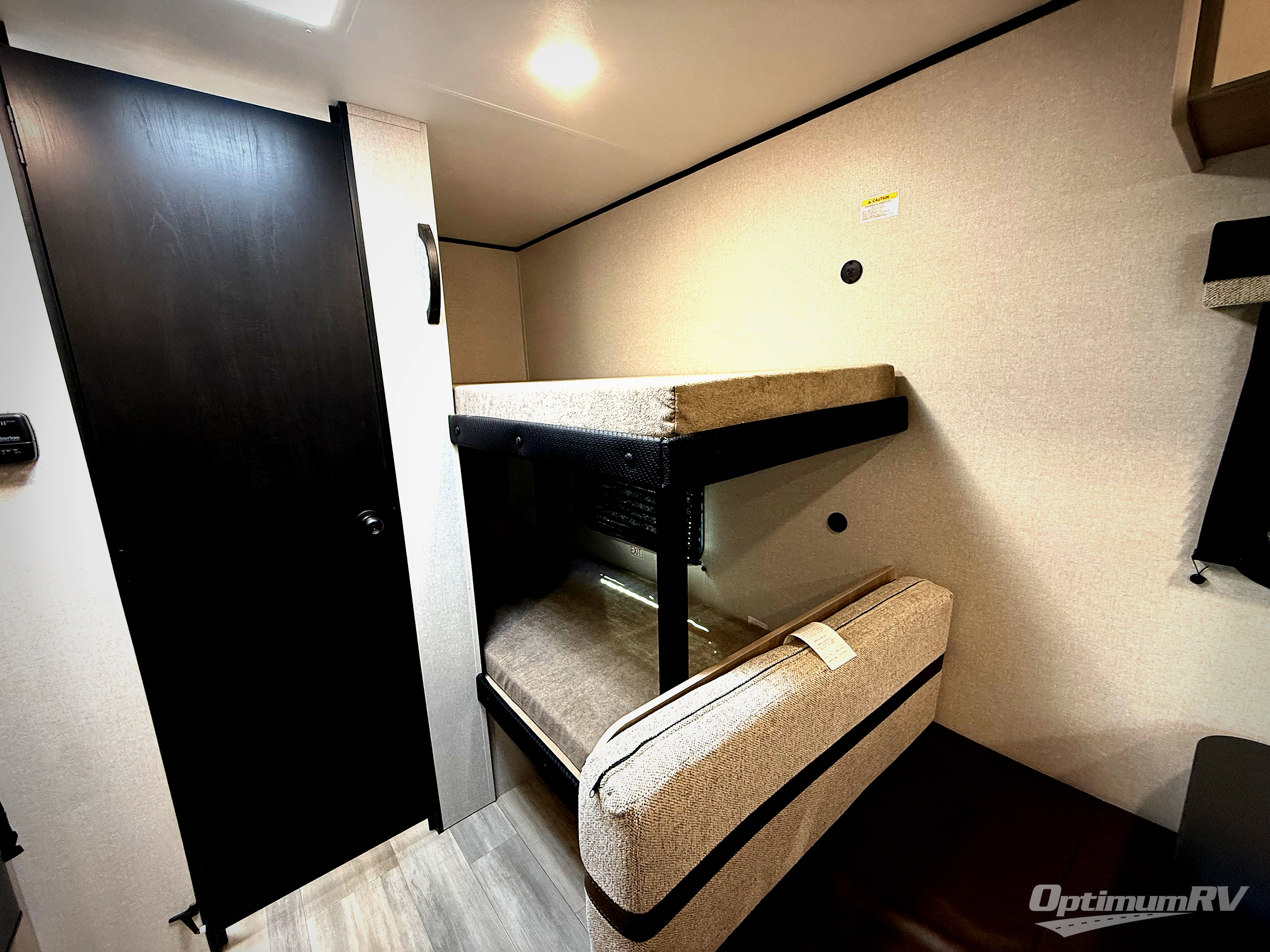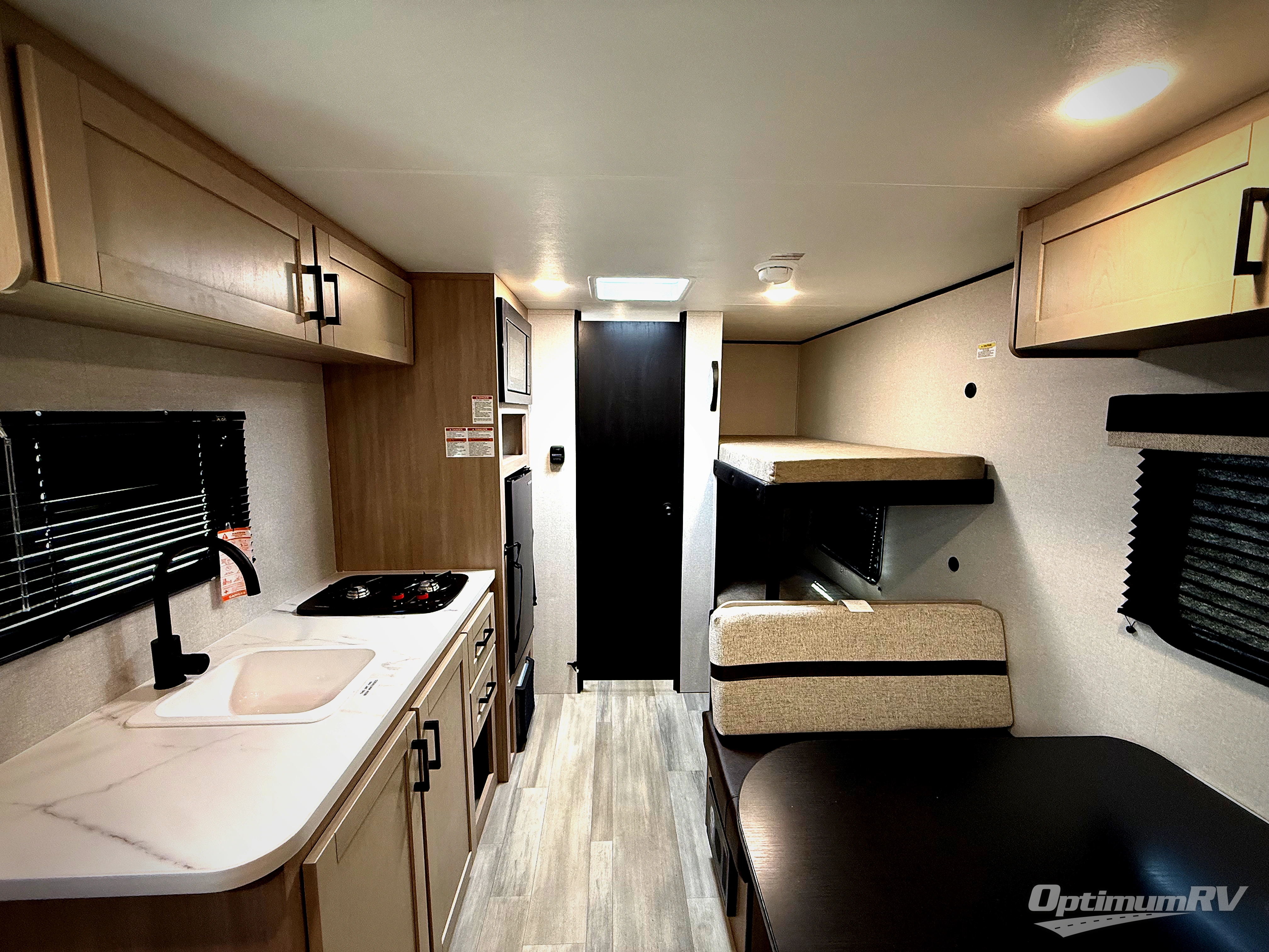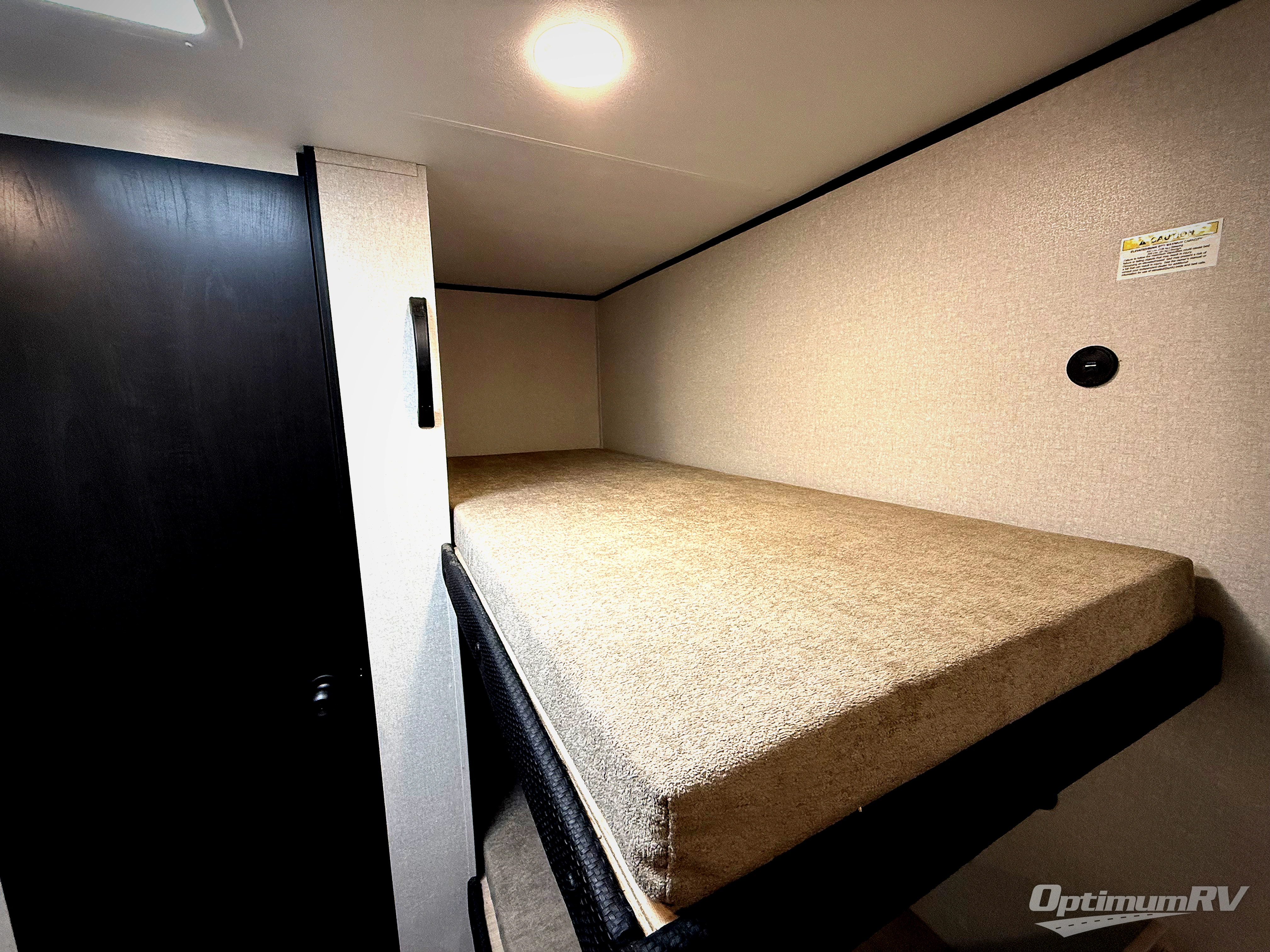 Camping trips are made easy in this Lynx Edition travel trailer with bunk beds for guests or little ones. You'll find the front queen bed for a great night's rest, along with a nightstand and wardrobe to keep your things tidy. The rear corner private bath includes a foot-flush toilet and a 24" x 36" shower, so you won't have to leave the camper in the middle of the night. A two-burner cooktop and microwave oven will let you make meals each day, and a 12V refrigerator will keep your food fresh!