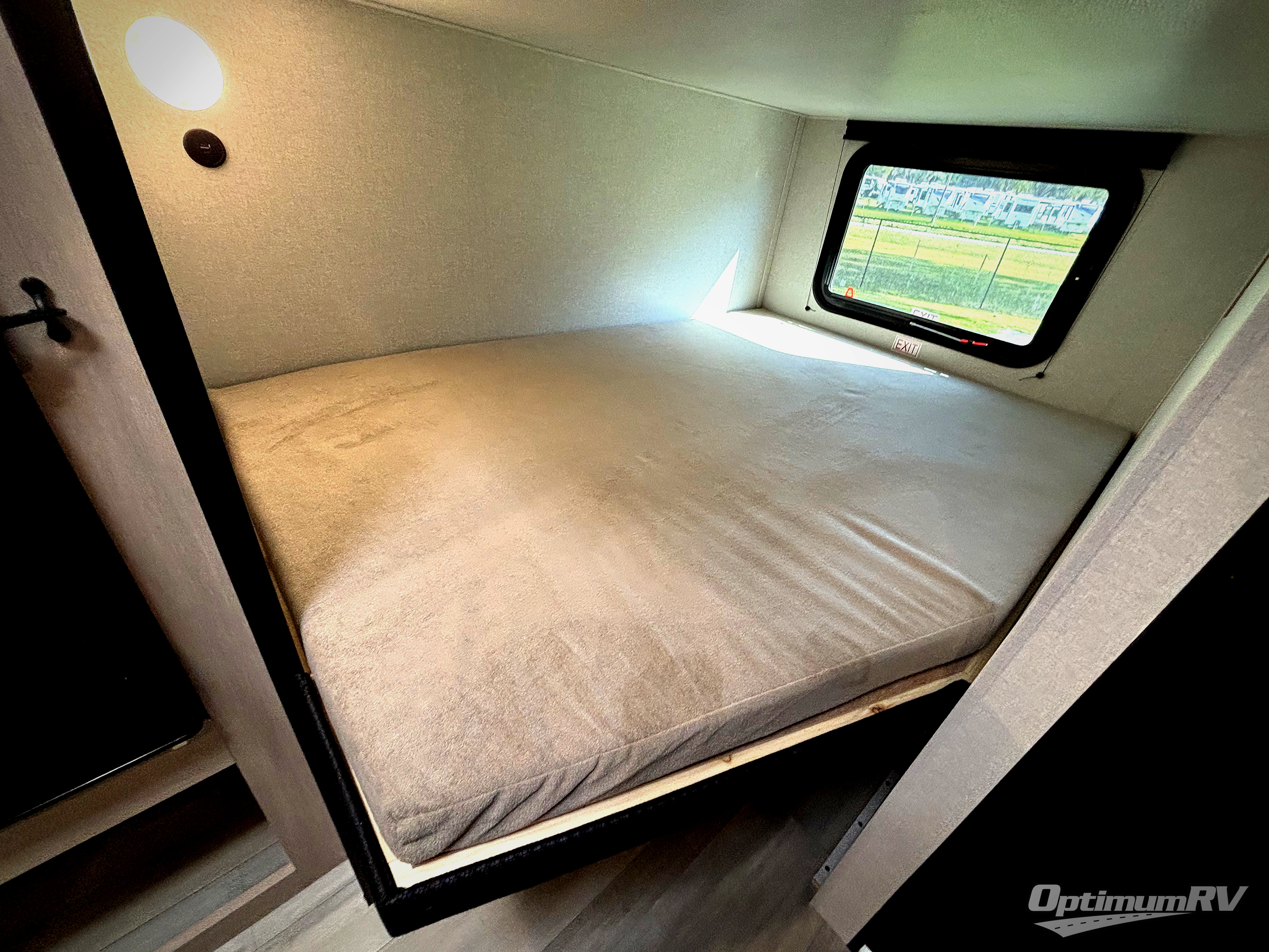 Camping trips are made easy in this Lynx Edition travel trailer with double-size bunk beds for guests or little ones. You'll find the front queen bed for a great night's rest, along with an overhead shelf and a wardrobe to keep your things tidy. The rear corner private bath includes a foot-flush toilet and a 24" x 40" shower, so you won't have to leave the camper in the middle of the night. A two-burner cooktop and microwave oven will let you make meals each day, and you can dine around the U-shaped dinette, which is also within a slide out for more space!