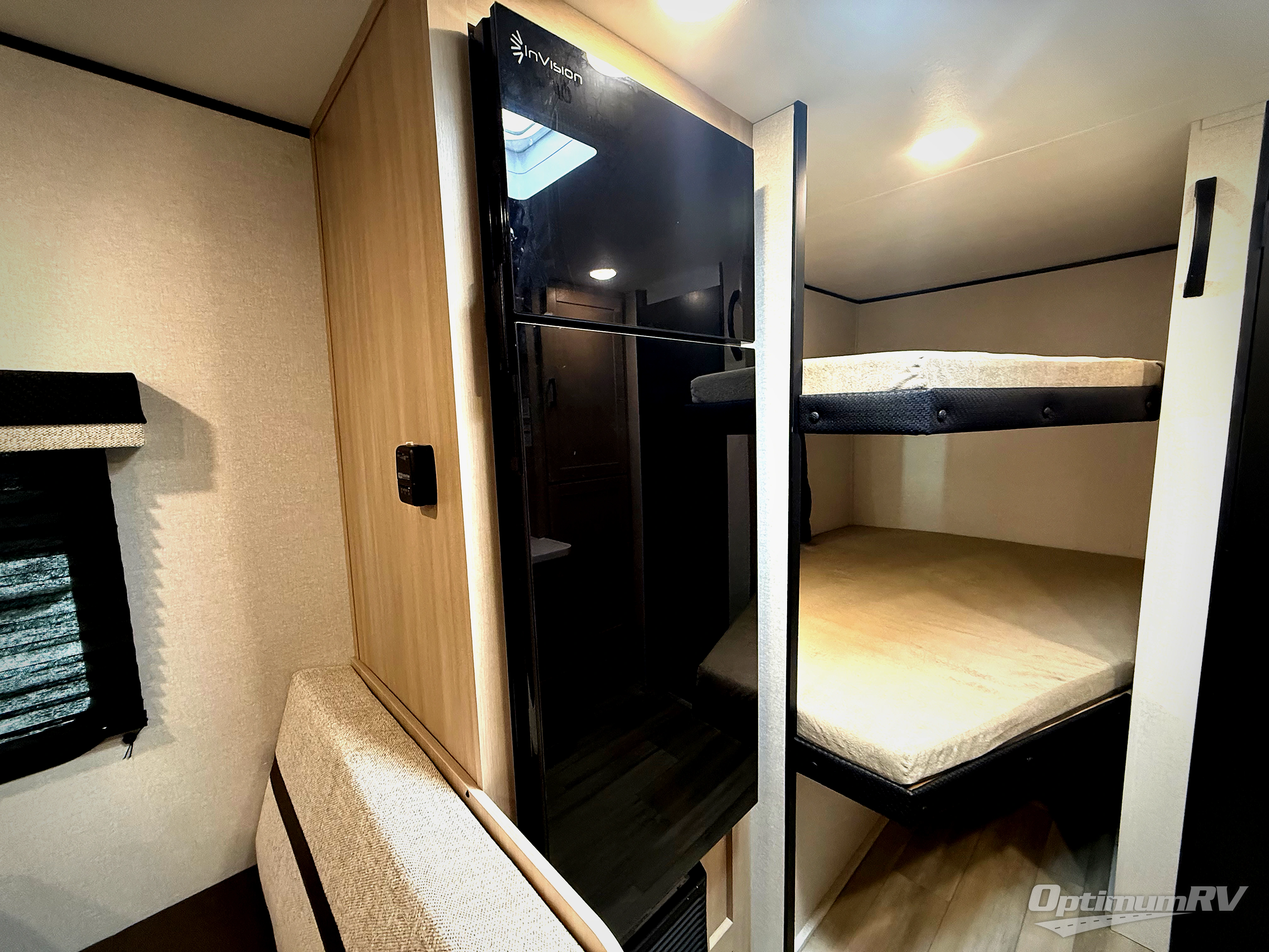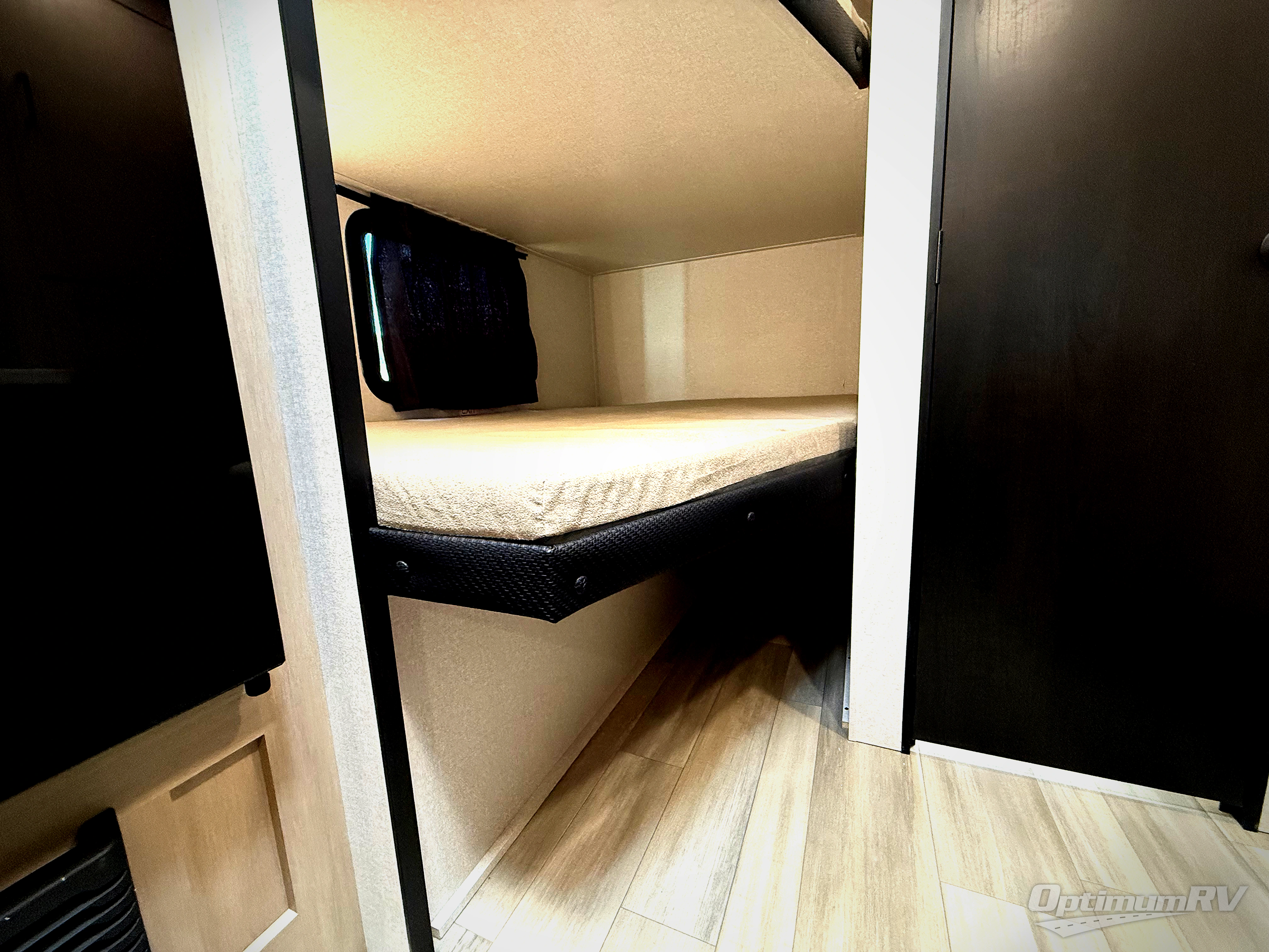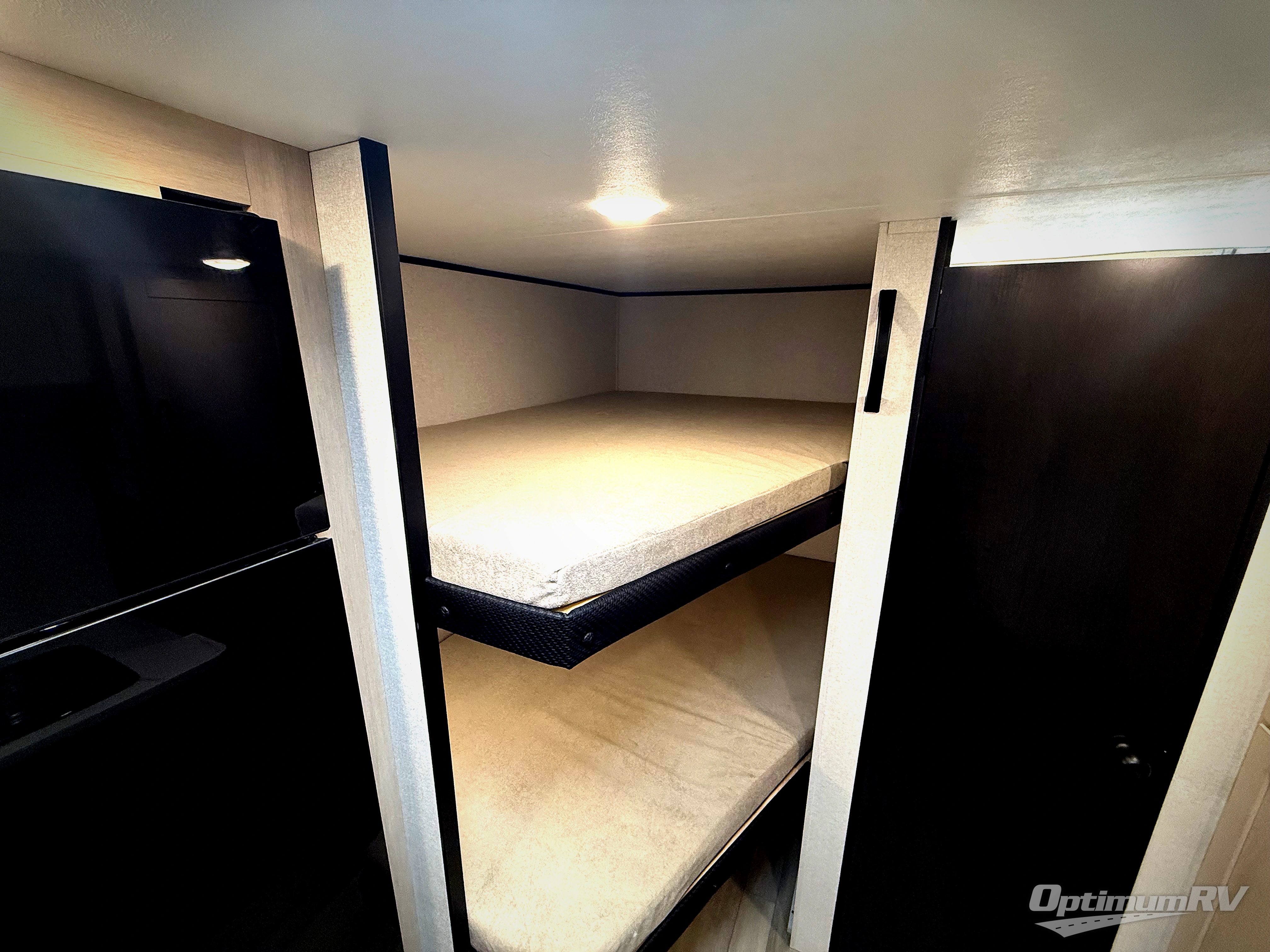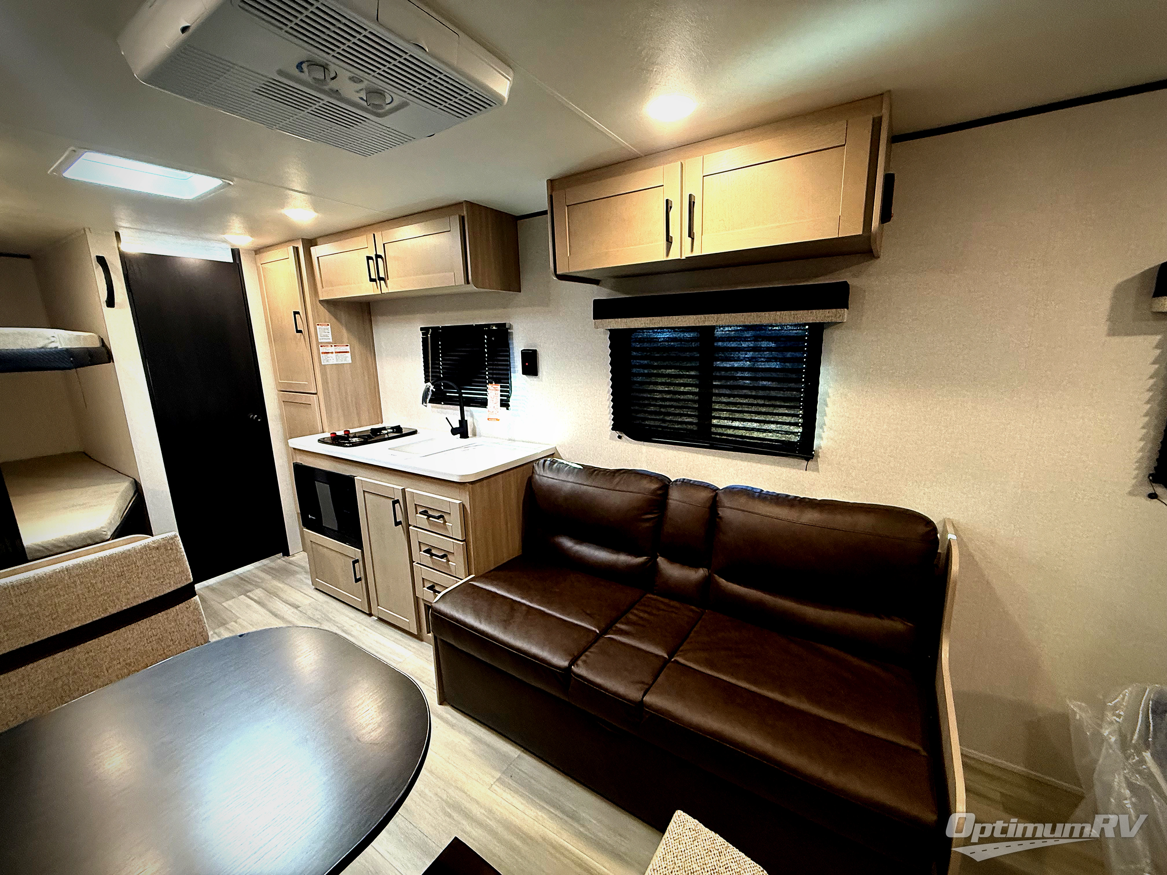 Camping trips are made easy in this Lynx Edition travel trailer with double-size bunk beds for guests or little ones. You'll find a front walk-around queen bed for a great night's rest, along with dual bedside wardrobes to keep your things tidy. The rear corner private bath includes a foot-flush toilet and a 40" shower, so you won't have to leave the camper in the middle of the night. A two-burner cooktop and microwave oven will let you make meals each day, and you'll find seating spaces at the booth dinette or on the sofa!