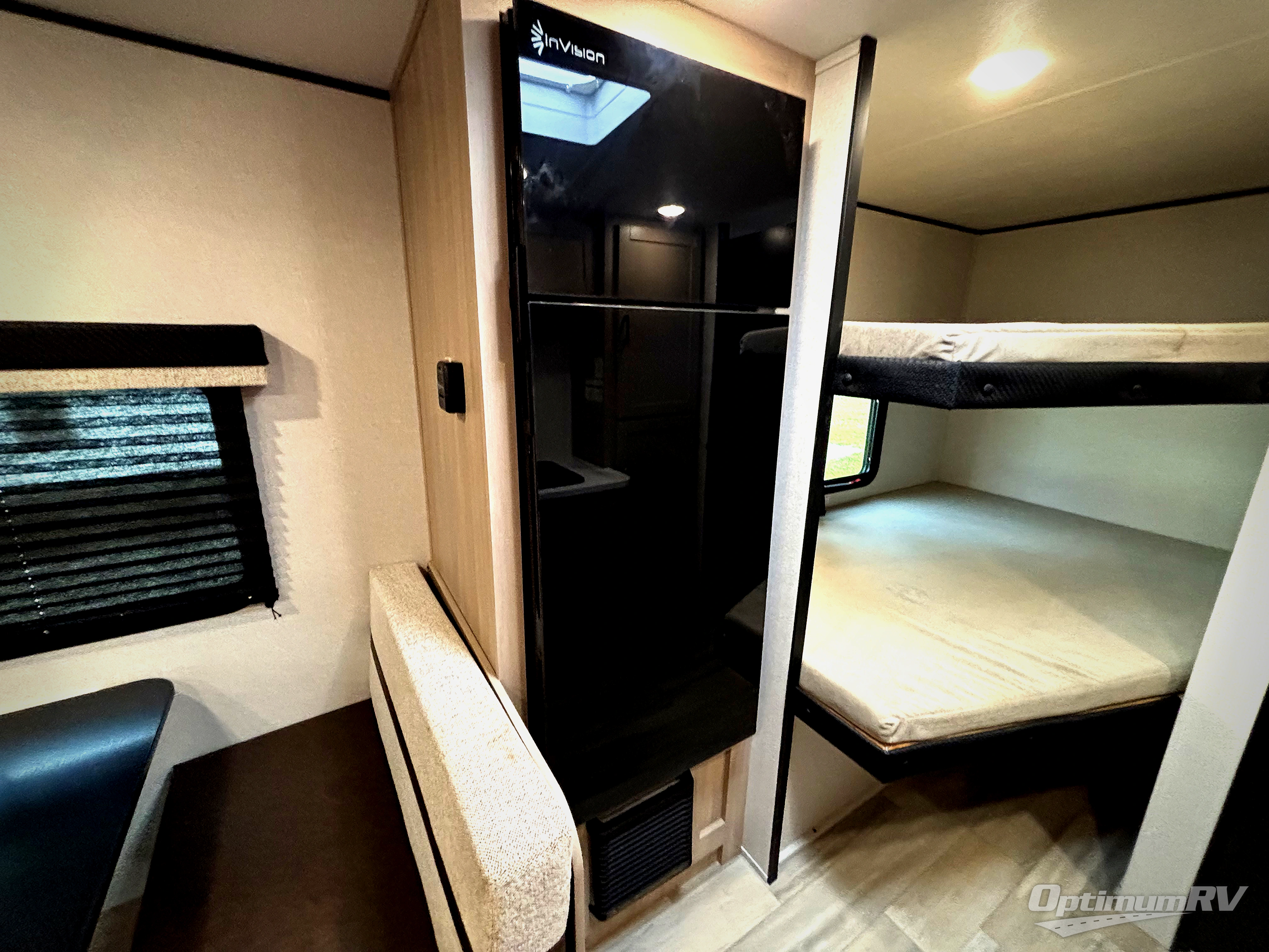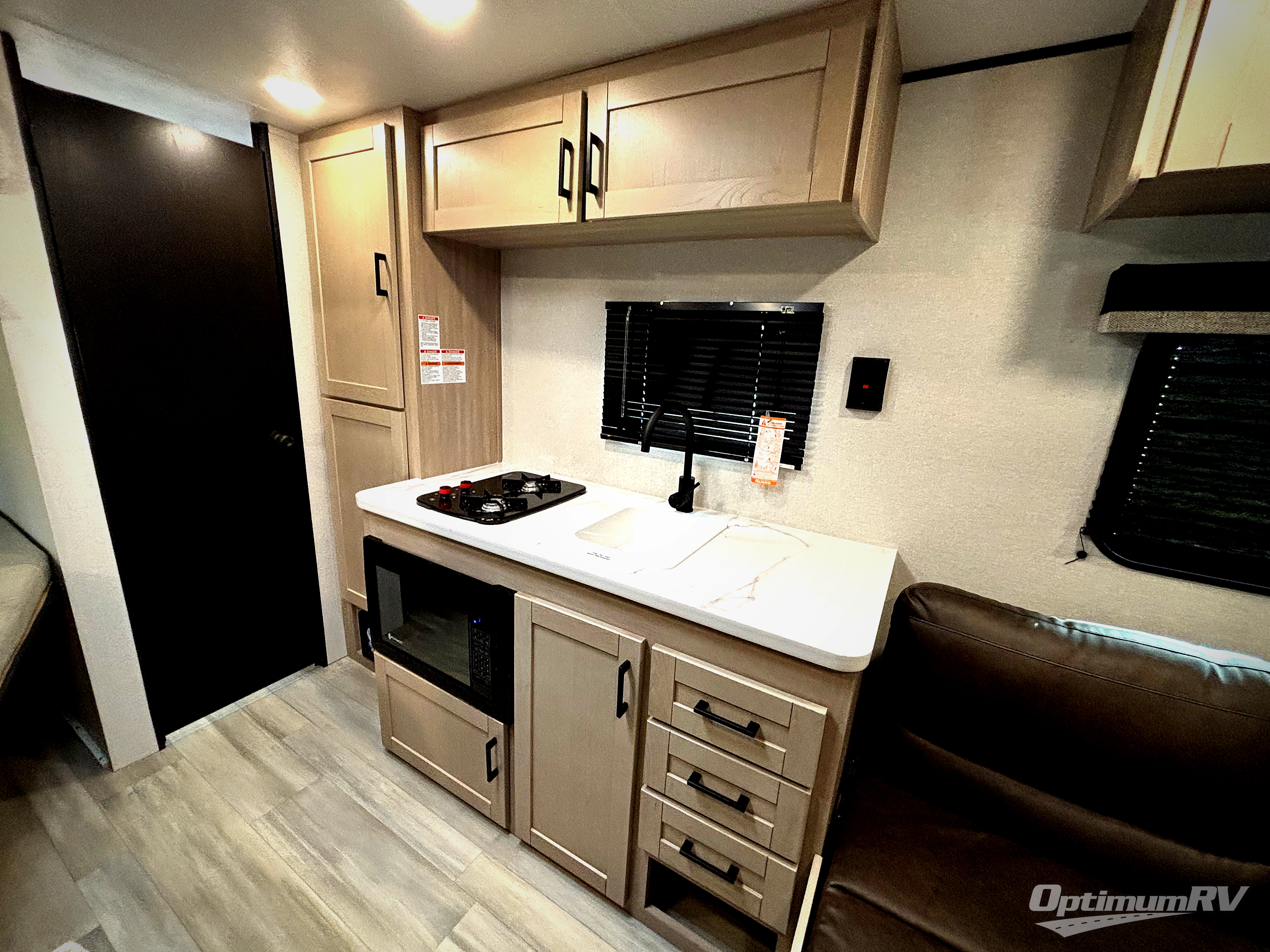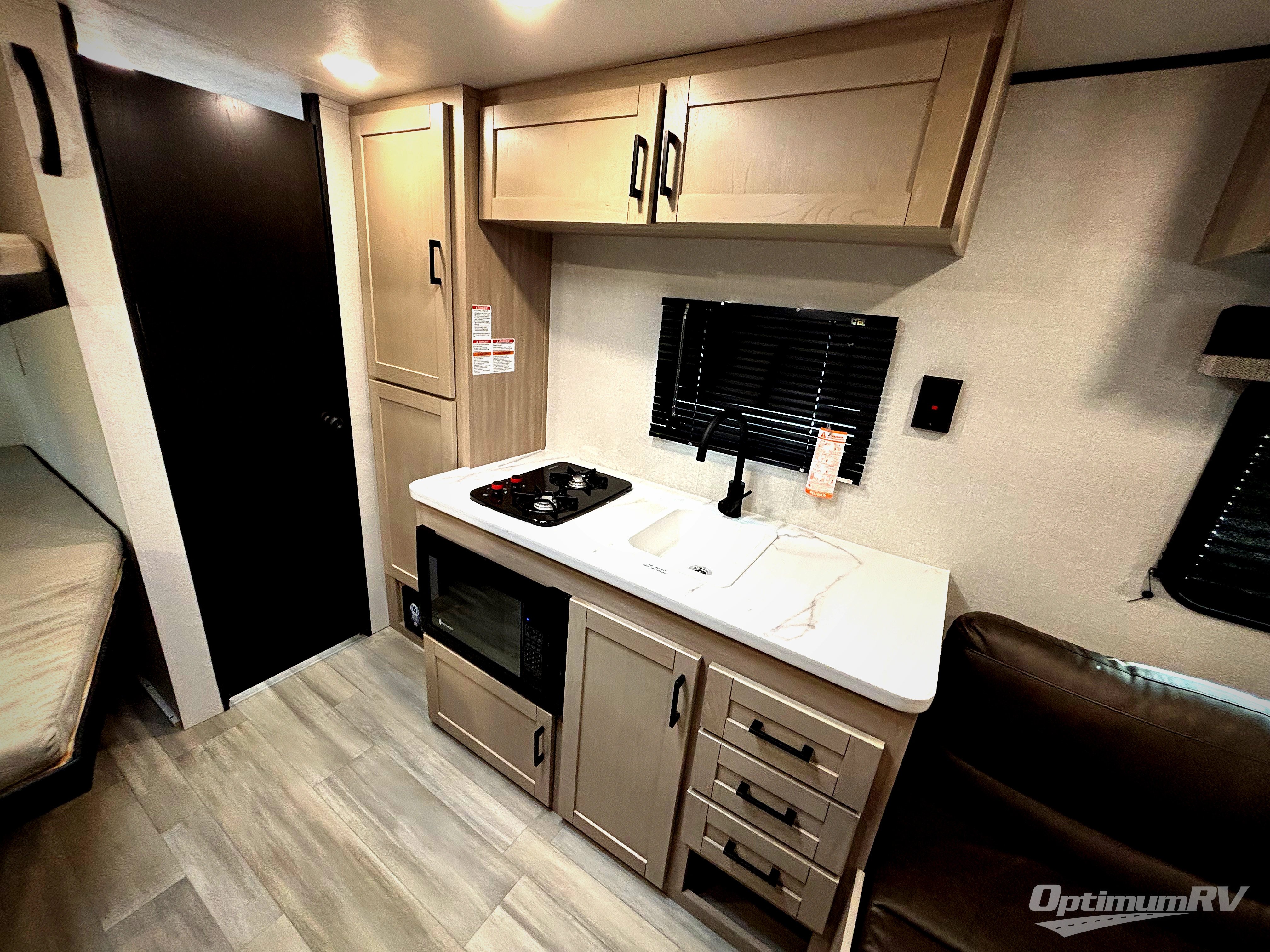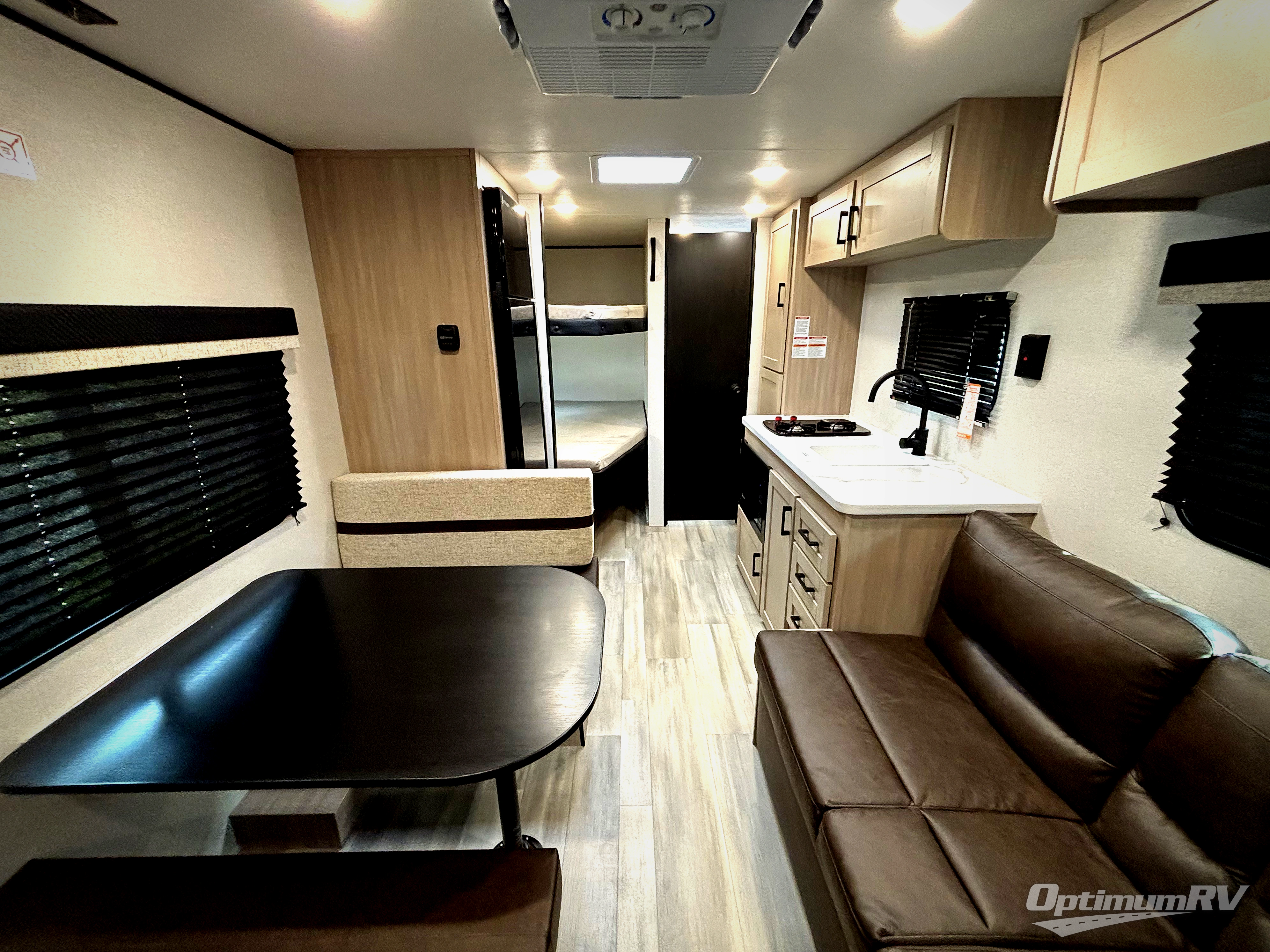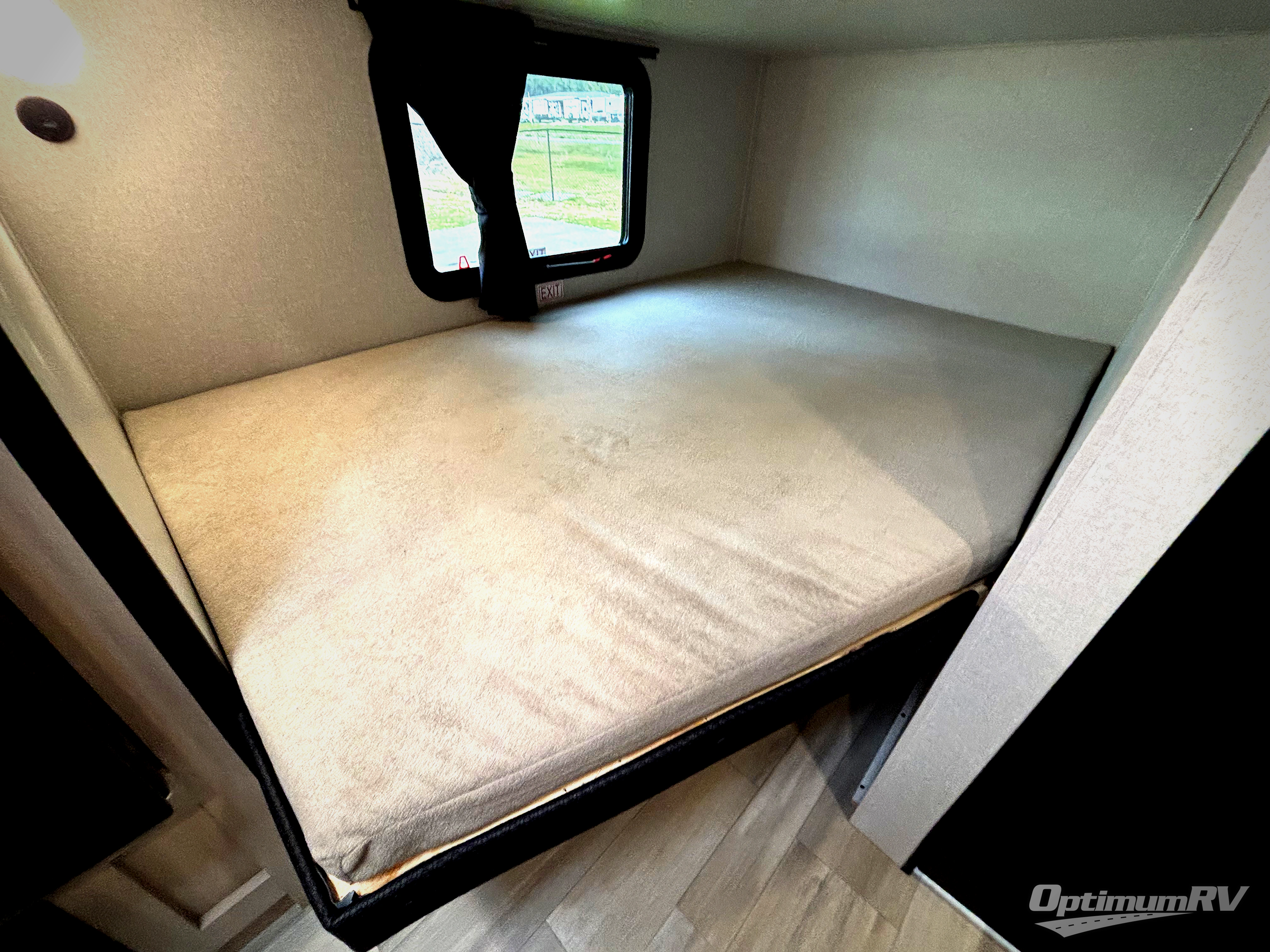 Camping trips are made easy in this Lynx Edition travel trailer with double-size bunk beds for guests or little ones. You'll find a front walk-around queen bed for a great night's rest, along with dual bedside wardrobes to keep your things tidy. The rear corner private bath includes a foot-flush toilet and a 40" shower, so you won't have to leave the camper in the middle of the night. A two-burner cooktop and microwave oven will let you make meals each day, and you'll find seating spaces at the booth dinette or on the sofa!