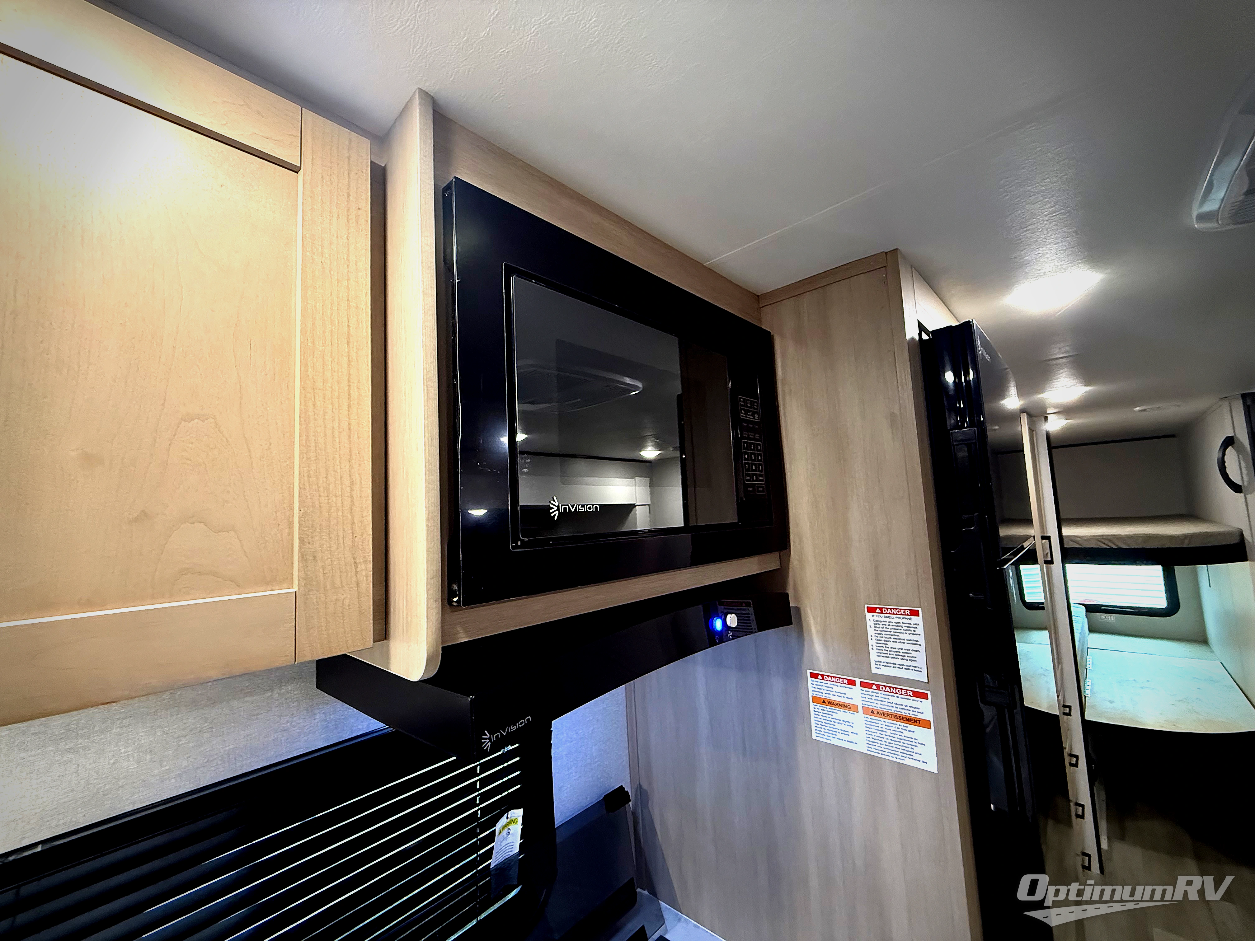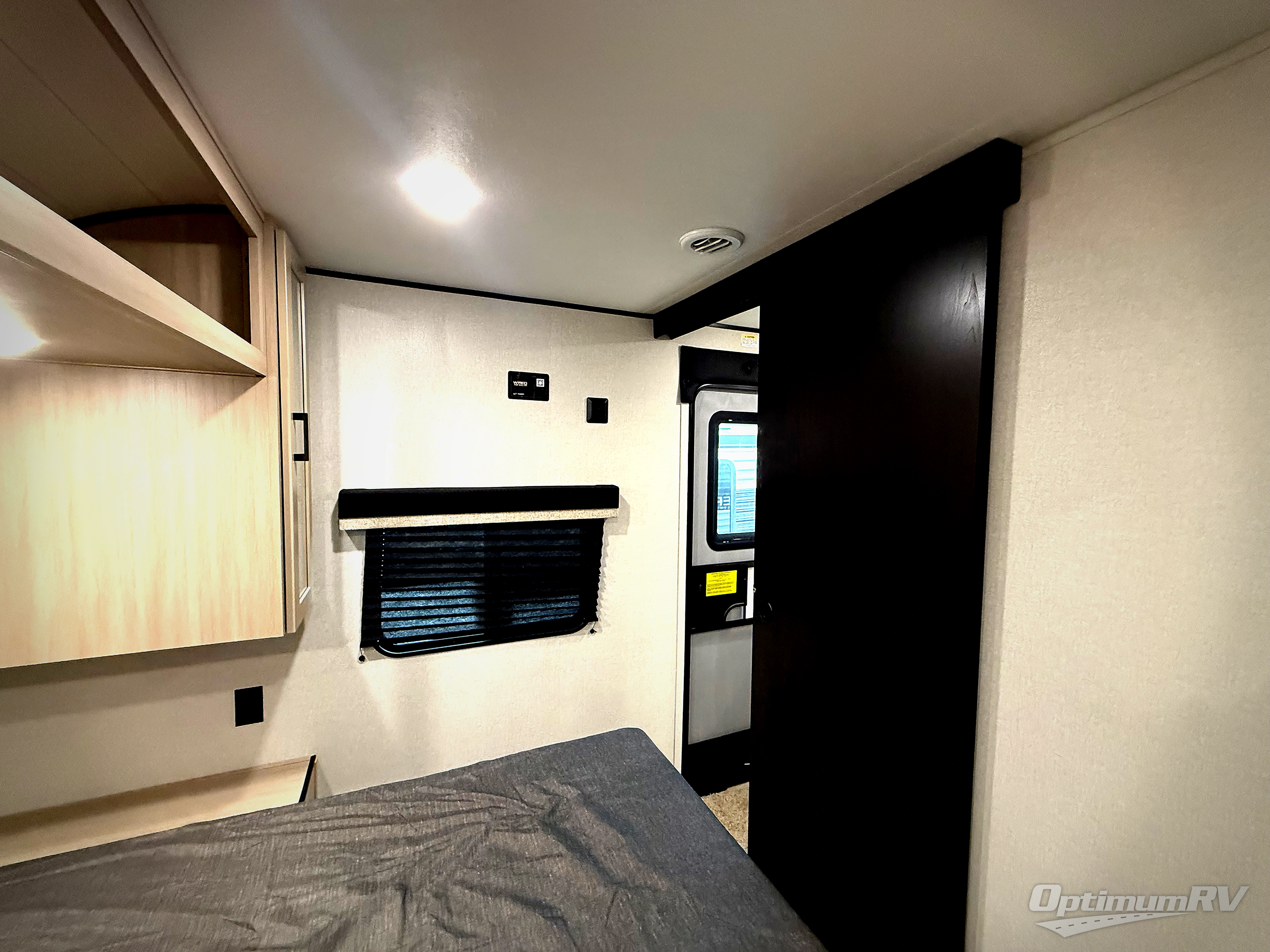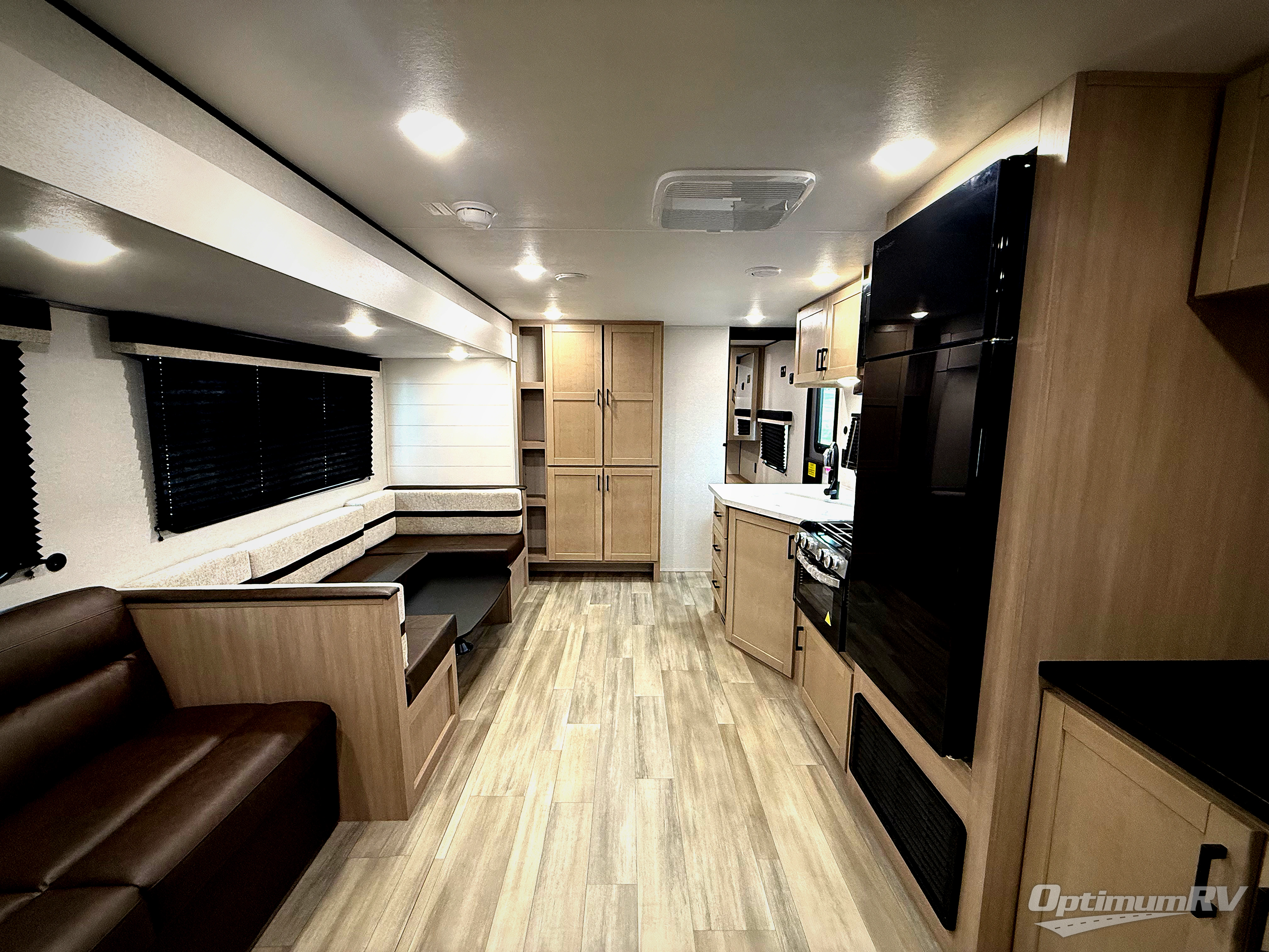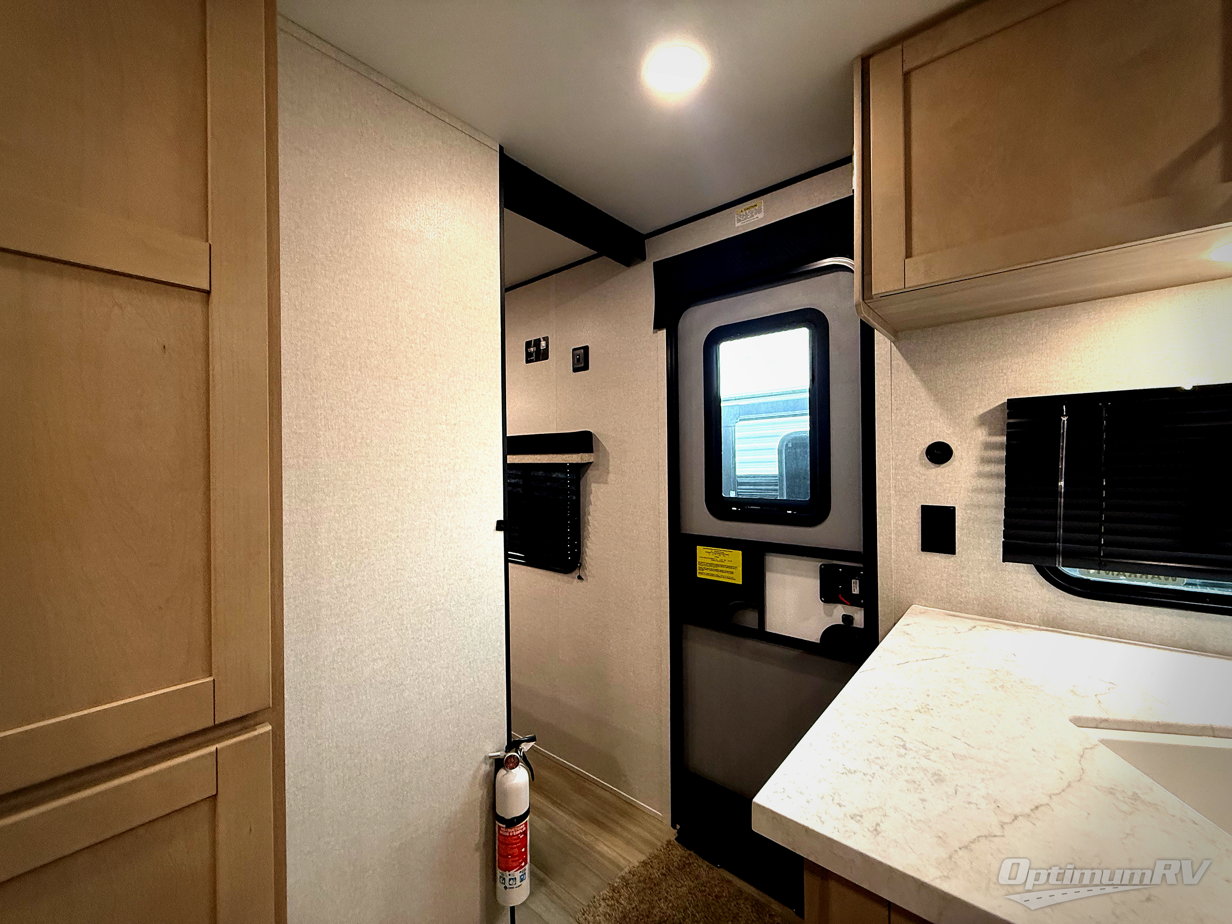 The whole gang will love weekends in the woods with this travel trailer in tow! There is a large slide out for added space, and here you'll find the jack-knife sofa and U-shaped dinette. There is also an entertainment center with a fireplace for cozy evenings indoors, and you'll appreciate the storage cabinet and shelves for board games, movies and more! You can claim the front private bedroom to yourselves, while your guests or little ones take the double-size bunks. A full kitchen is complete with a three-burner cooktop and microwave oven to make meals each day, plus a 12V refrigerator for food storage. This unit also includes an outdoor kitchen with a refrigerator to keep cold drinks ready to enjoy!