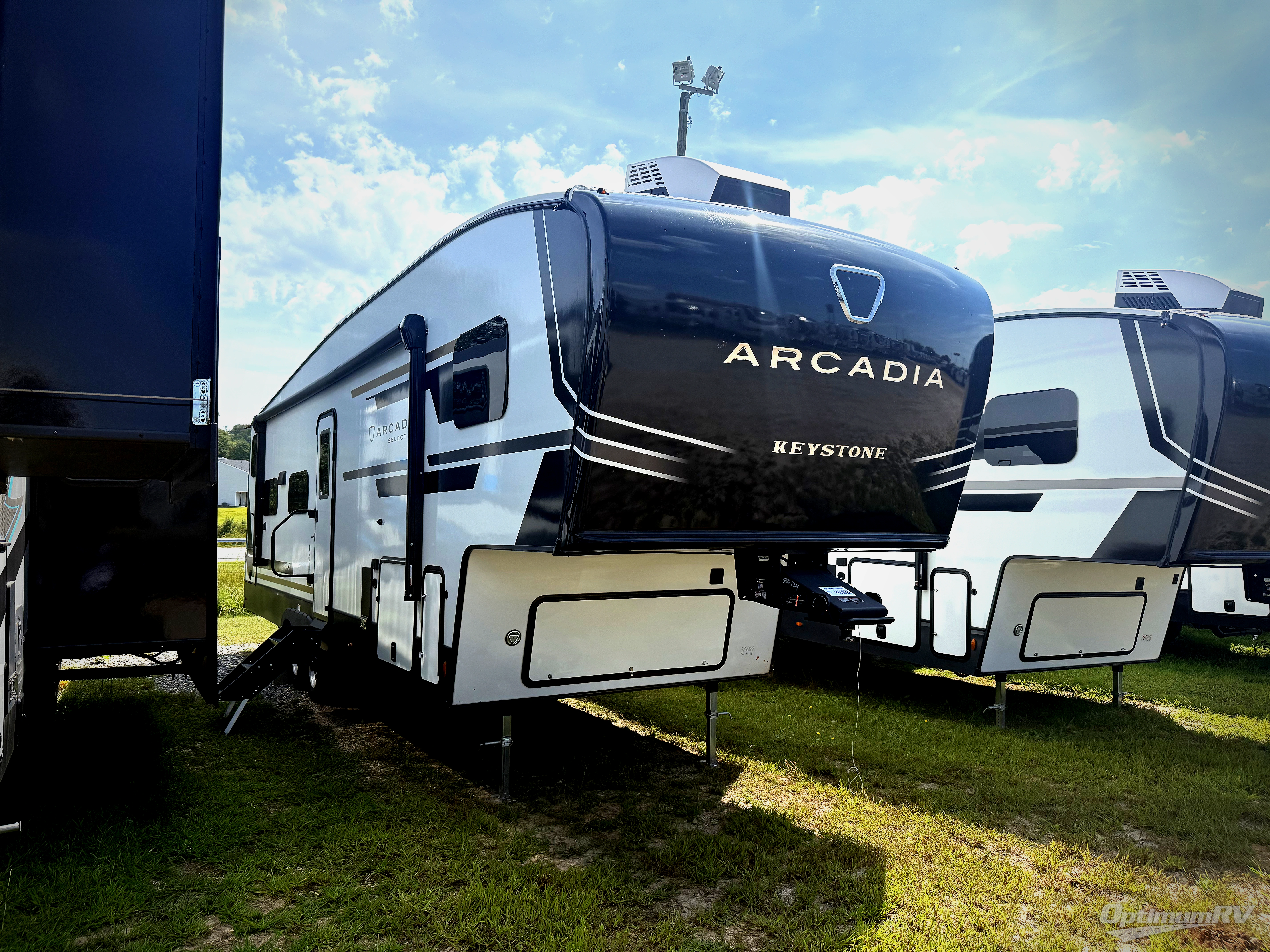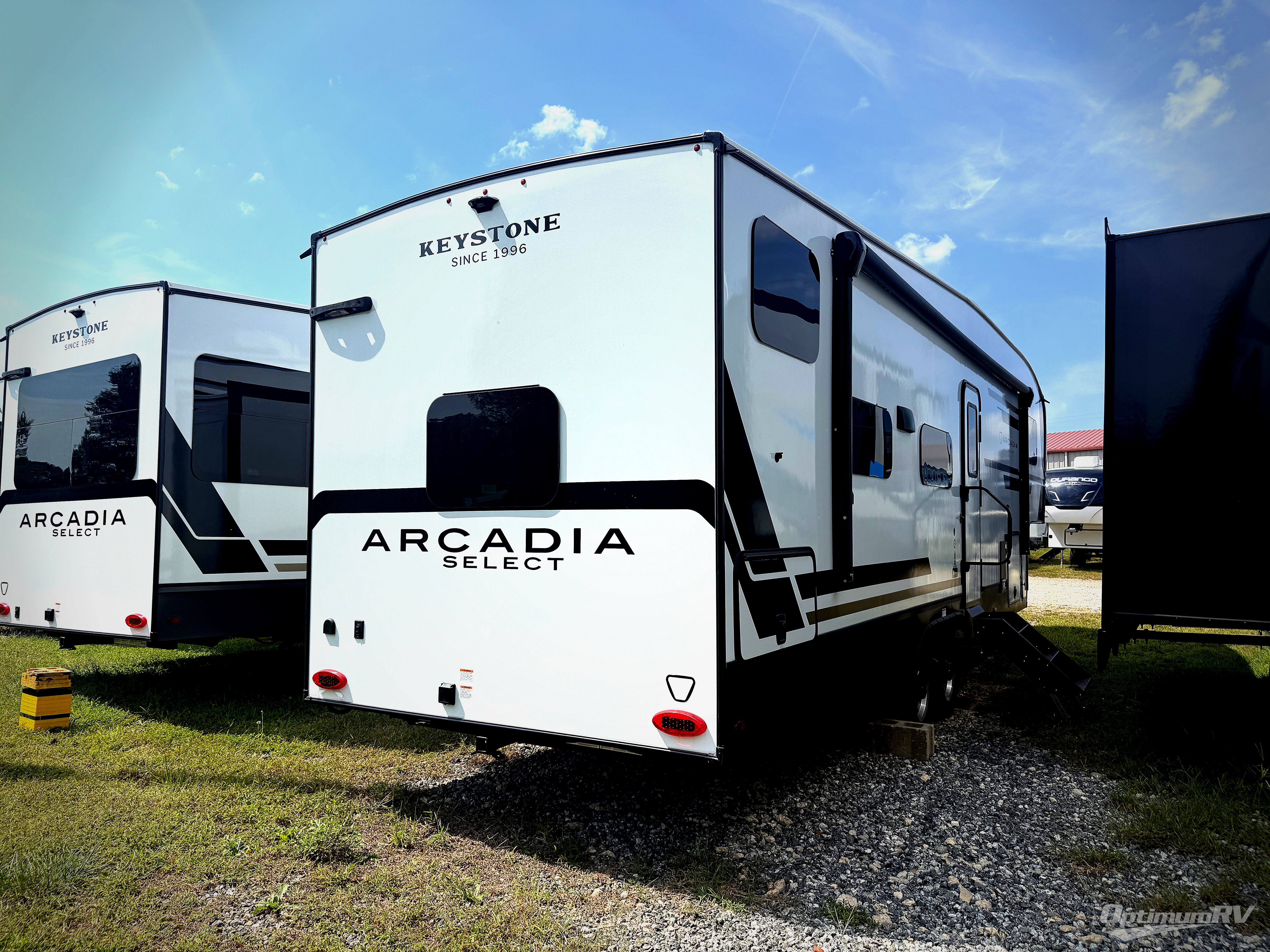 With any Arcadia Select fifth wheel by Keystone you will enjoy easy towability and at-home comforts at an affordable price! The laminated sidewalls with five sided aluminum superstructure will provide a strong foundation so you can enjoy your RV for years to come, plus a one-piece, heated and enclosed polypropylene underbelly means you can camp year around! And an upgraded Roto-Flex hitch pin will make it easy to tow. Head inside to find tall slides for added space, seamless, pressed countertops, convenient underbed storage, and a large shower with a retractable door and skylight. These fifth wheels also include a Blade Pure A/C system, Girard on-demand tankless water heater, two 30 lb. LP tanks, and more utilities to make your camping experience run smoothly.
