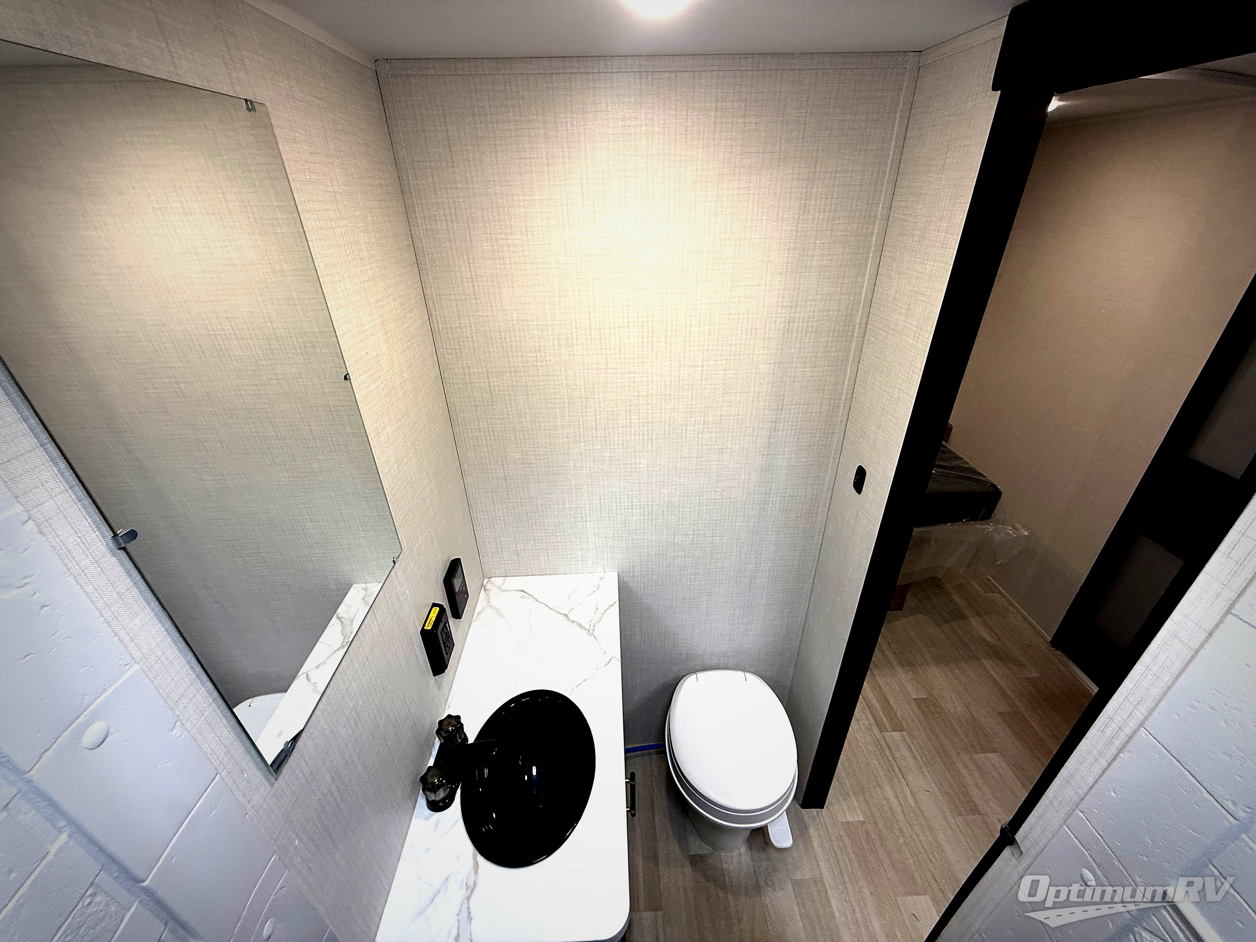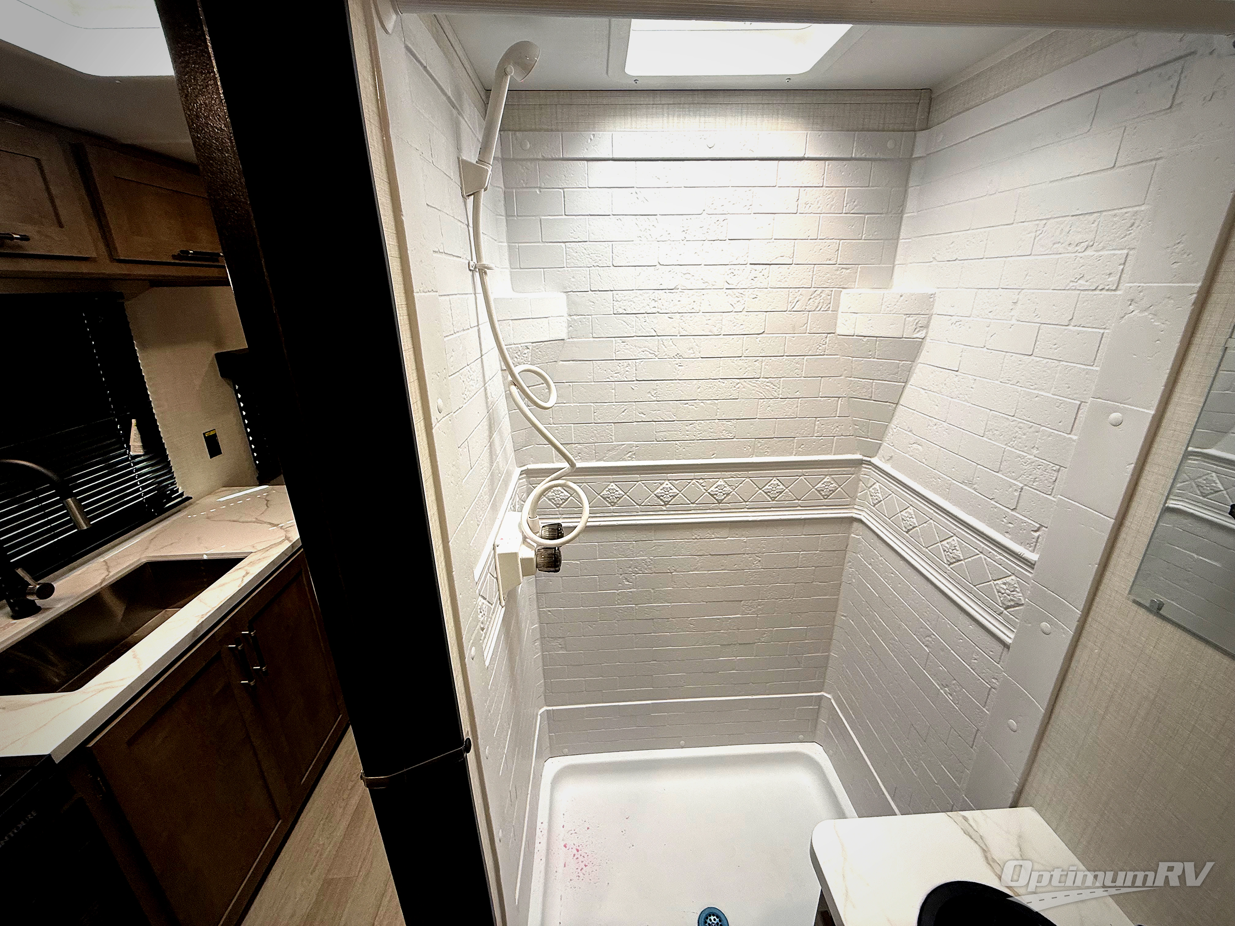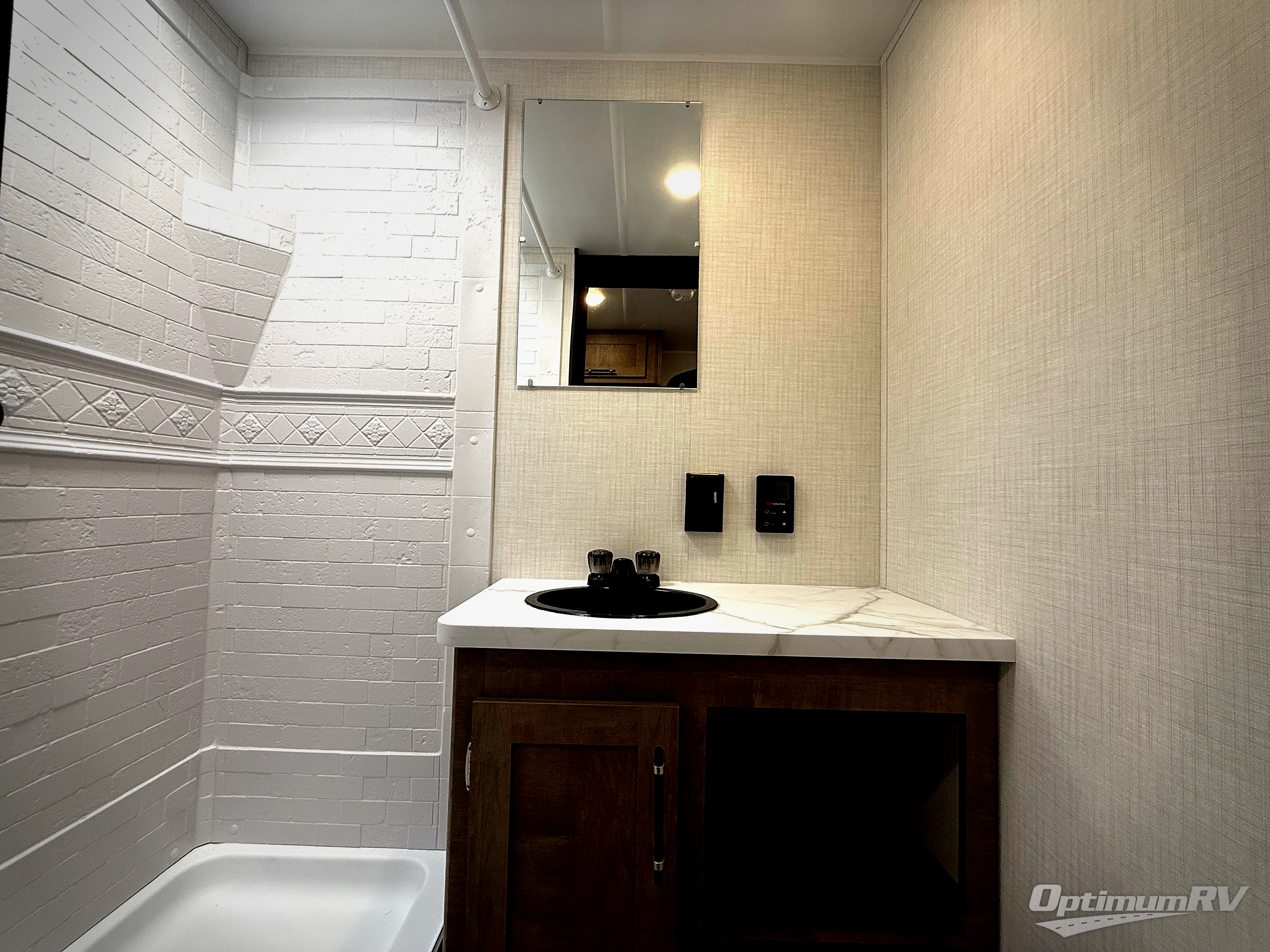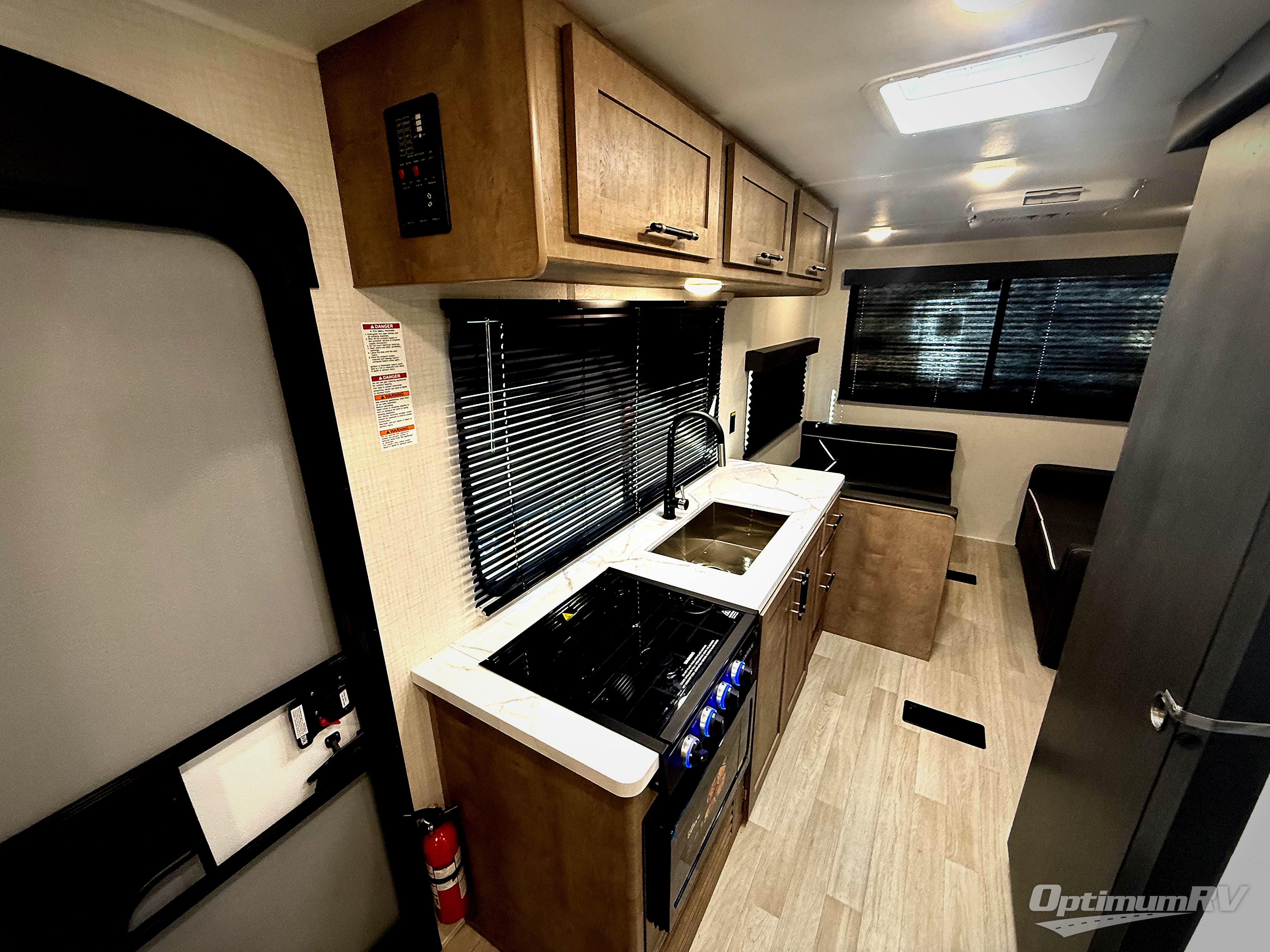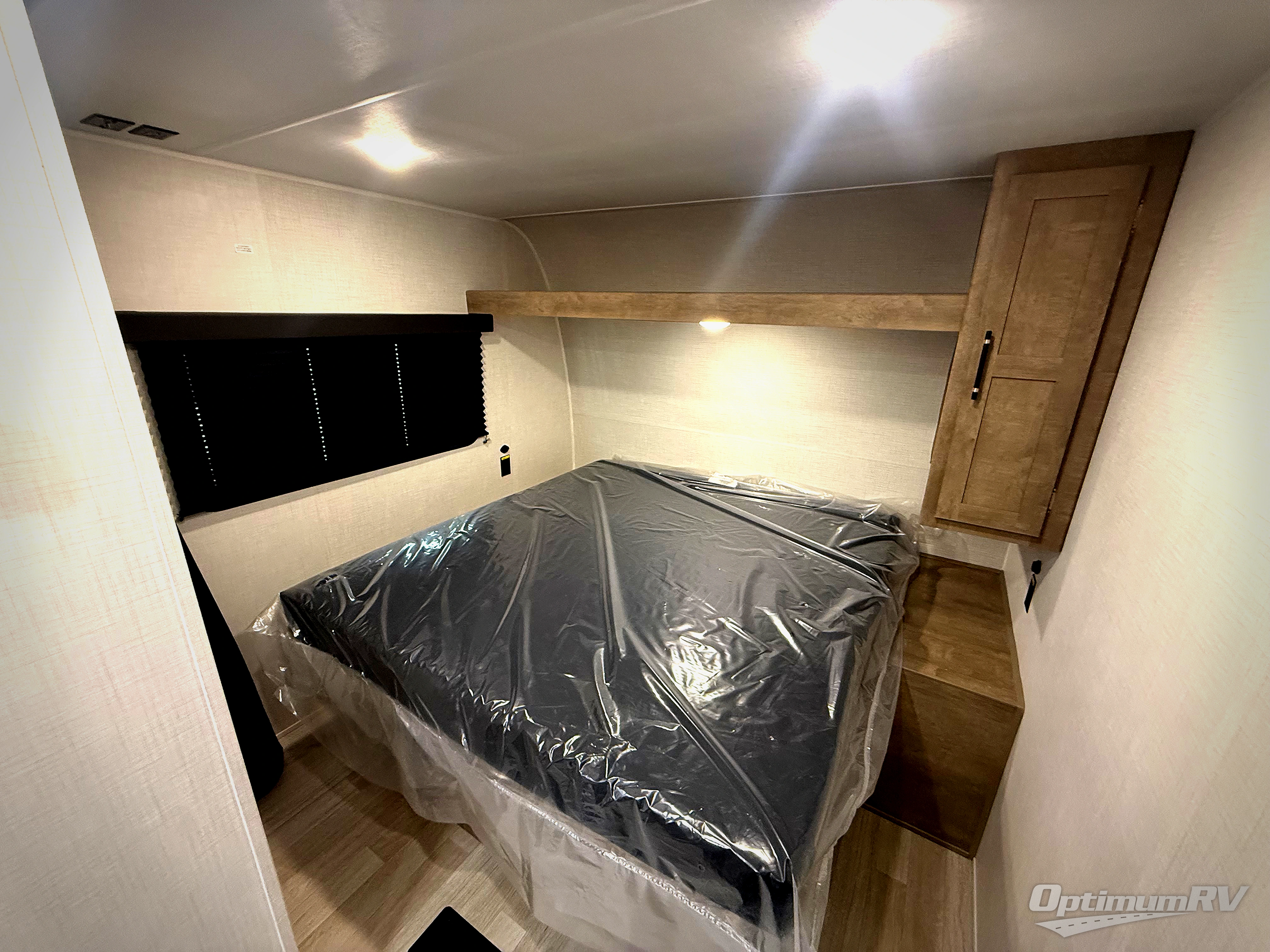 This trailer is perfect for your crew of four to six. There is a queen bed in the front bedroom, along with dual closets and nightstands to keep your things tidy. You can dine each day on the booth dinette, relax on the sofa, and house additional guests here at night. The kitchen includes everything you need to prepare meals each day, including a gas range, microwave, and a 10-cu. ft. 12V refrigerator for cold items. And the full bath on board lets you stay clean throughout each camping trip!