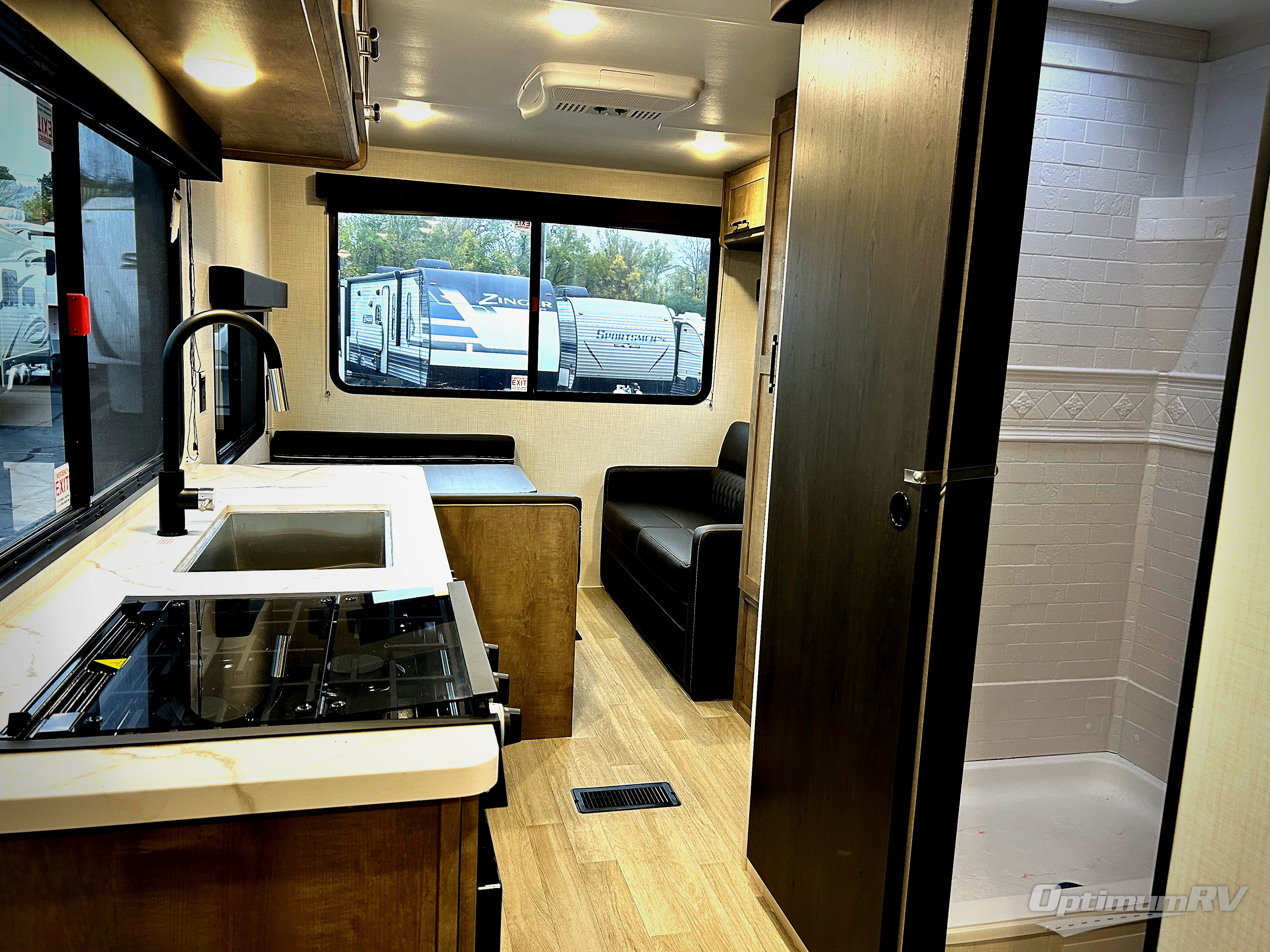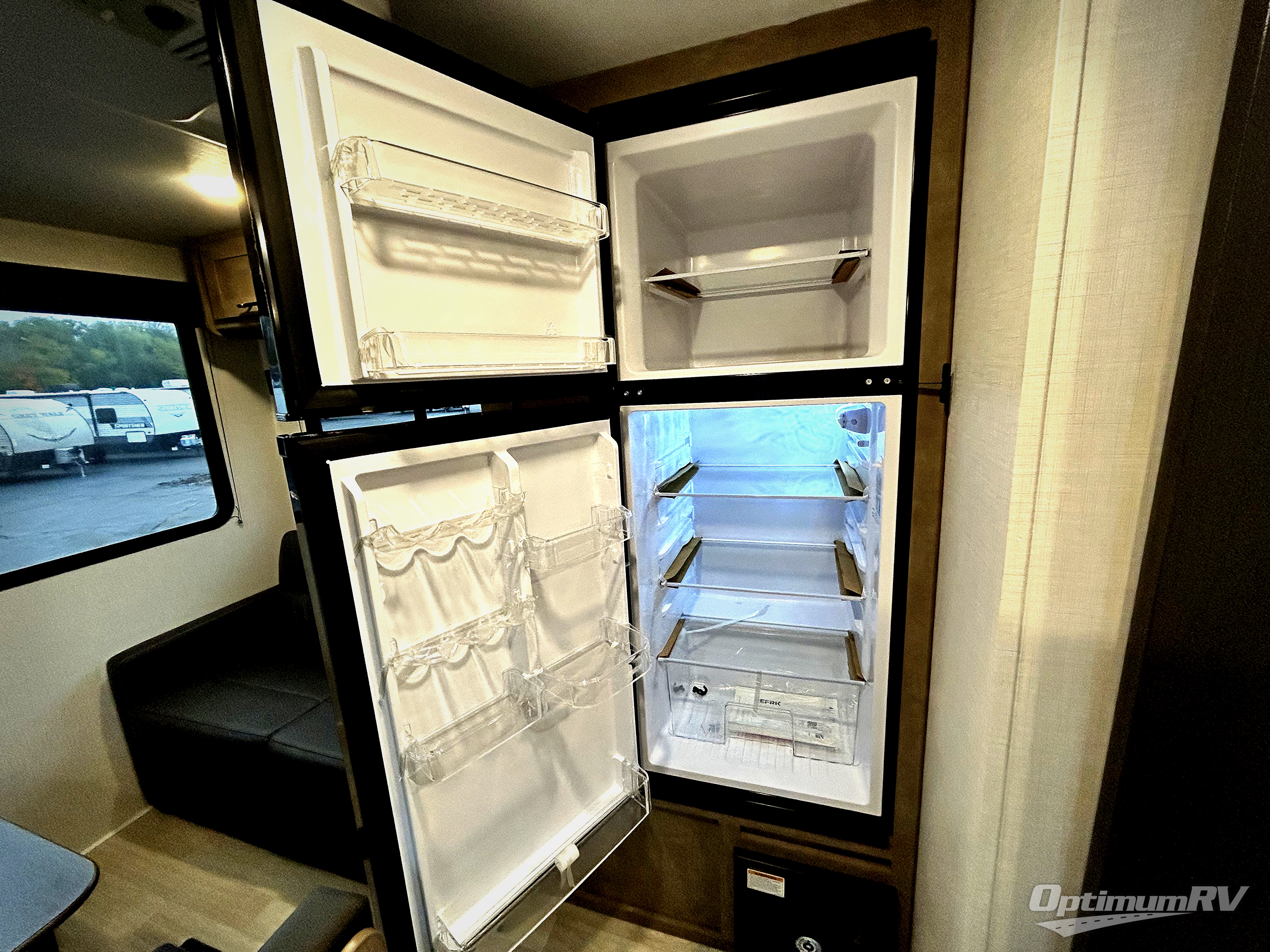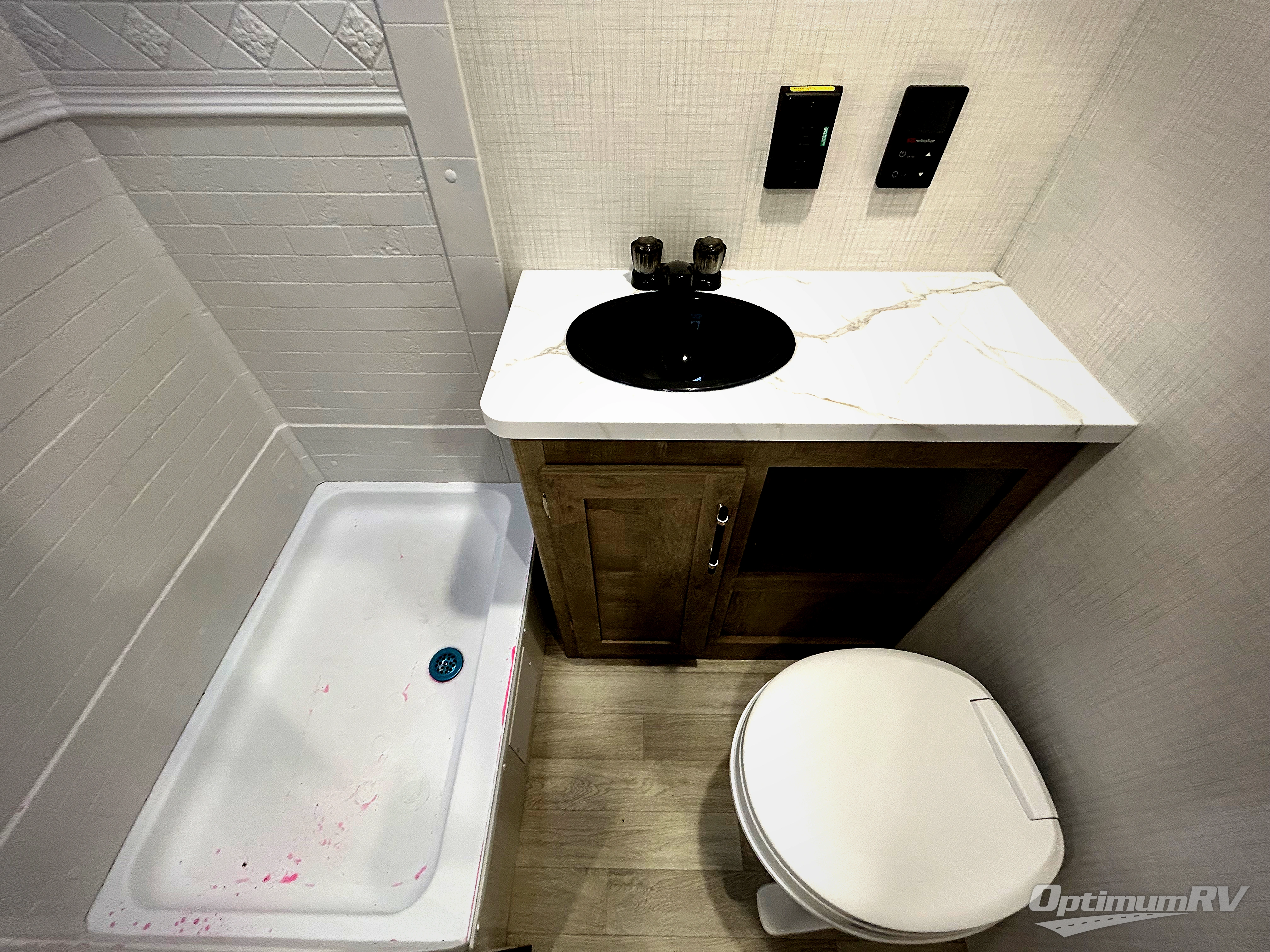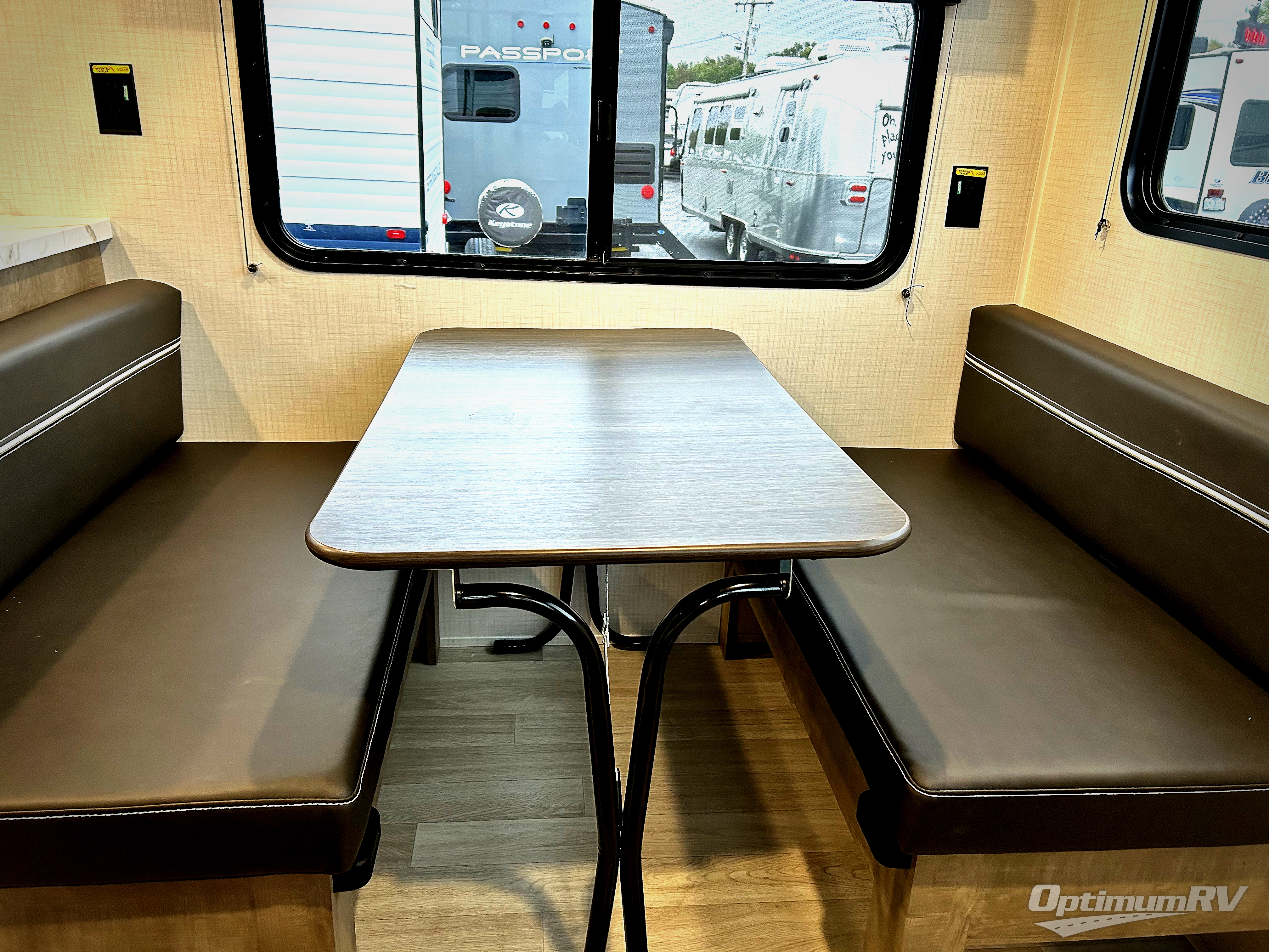 This trailer is perfect for your crew of four to six. There is a queen bed in the front bedroom, along with dual closets and nightstands to keep your things tidy. You can dine each day on the booth dinette, relax on the sofa, and house additional guests here at night. The kitchen includes everything you need to prepare meals each day, including a gas range, microwave, and a 10-cu. ft. 12V refrigerator for cold items. And the full bath on board lets you stay clean throughout each camping trip!