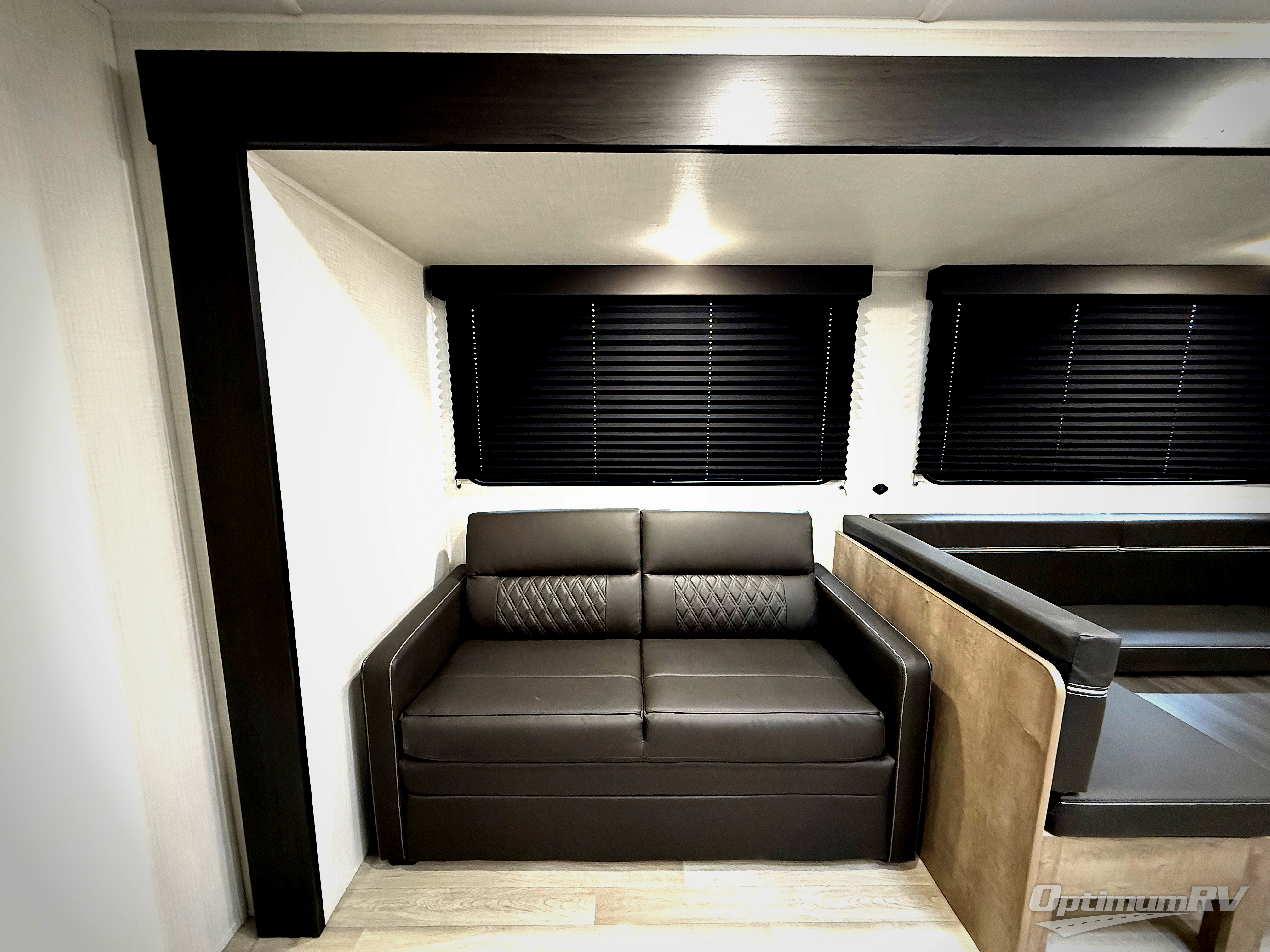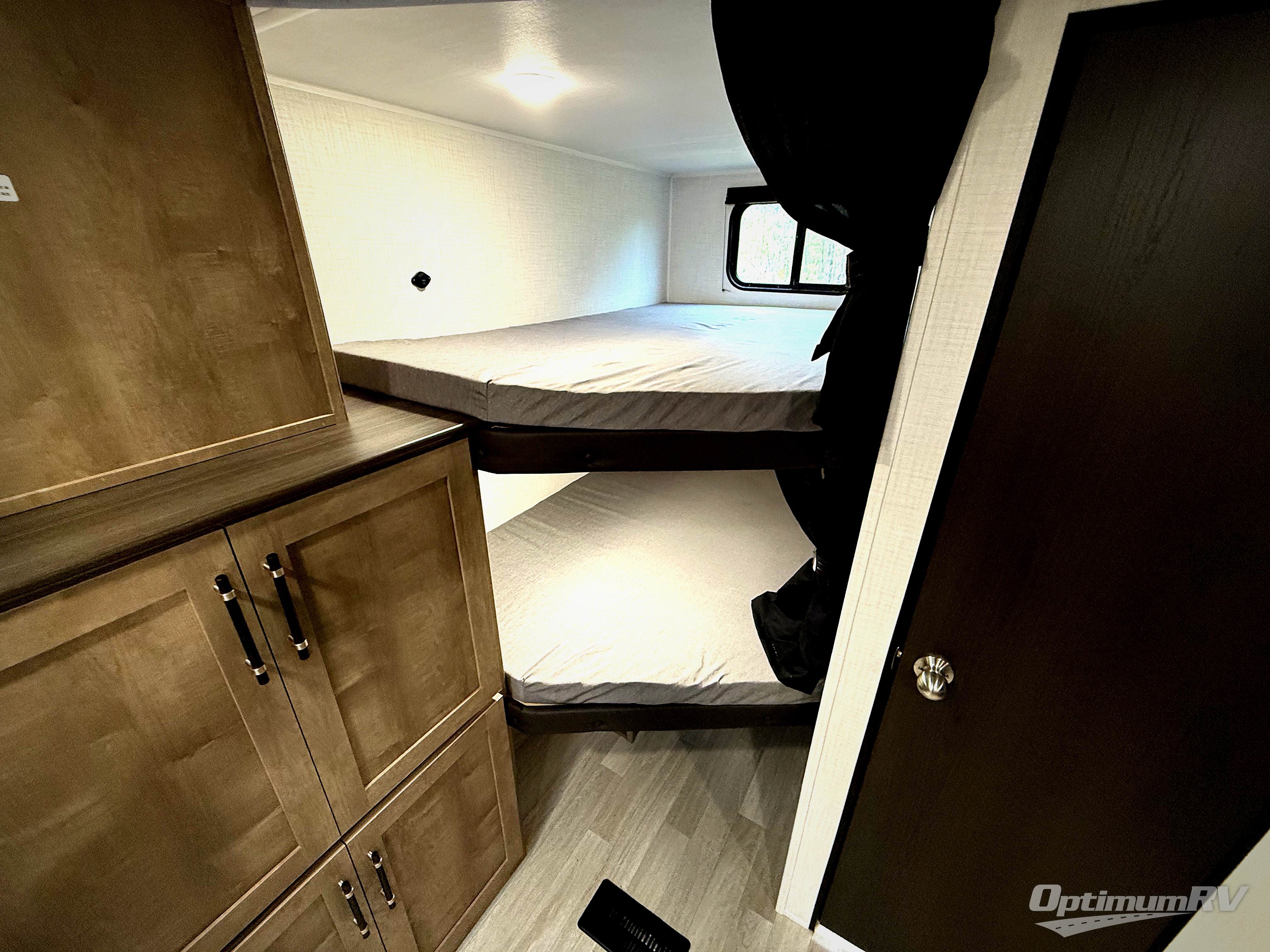 What could be better than camping with double-size bunks for guests? How about a front private bedroom for you, a full bath to clean up in, and a large slide out for maximum space! The chef of your group can prepare breakfast on the three-burner gas range in the morning or use the microwave if you're on the go. There is a U-shaped dinette to dine at, or you can take your plate outdoors to sit under the power awning.