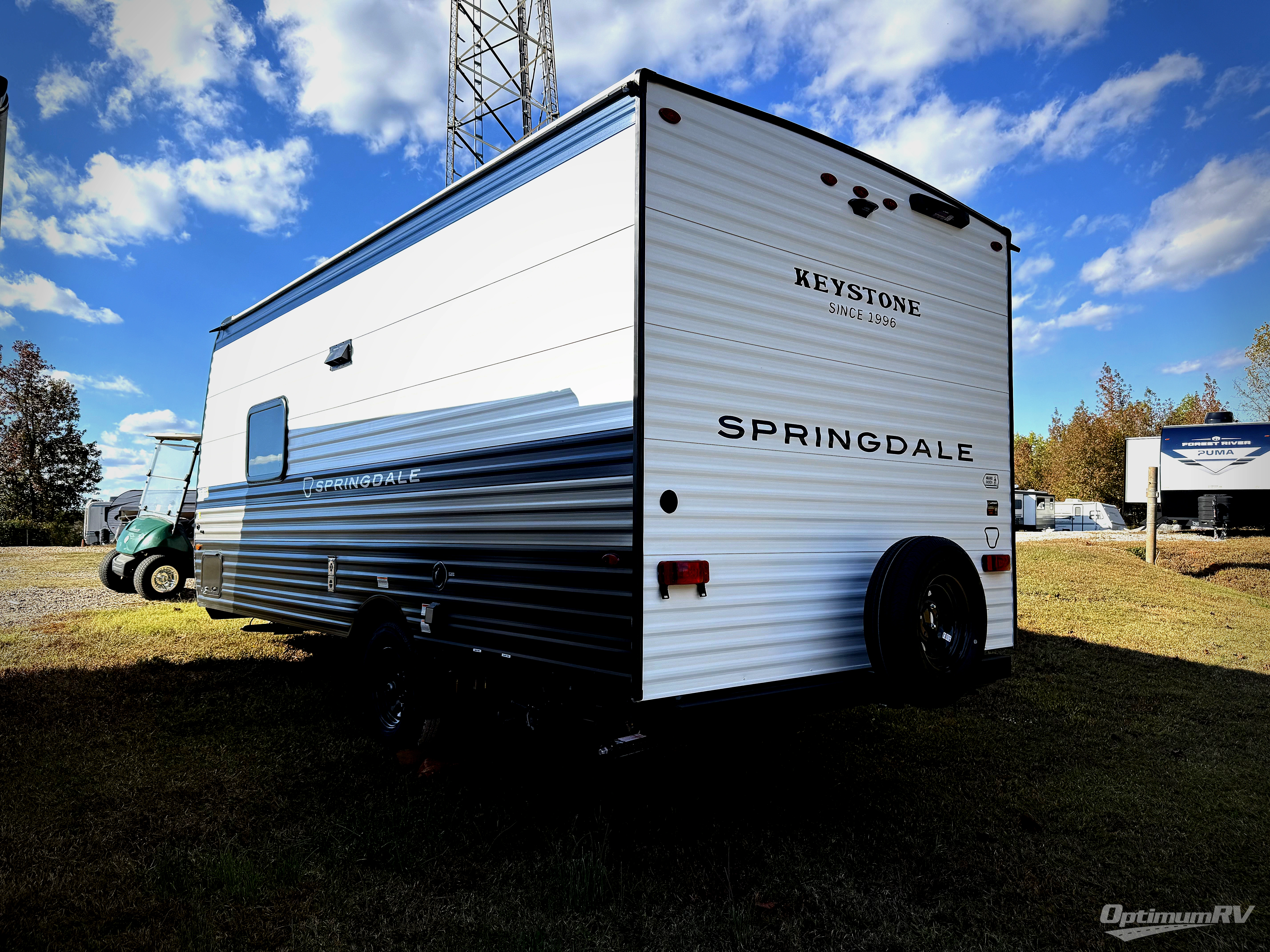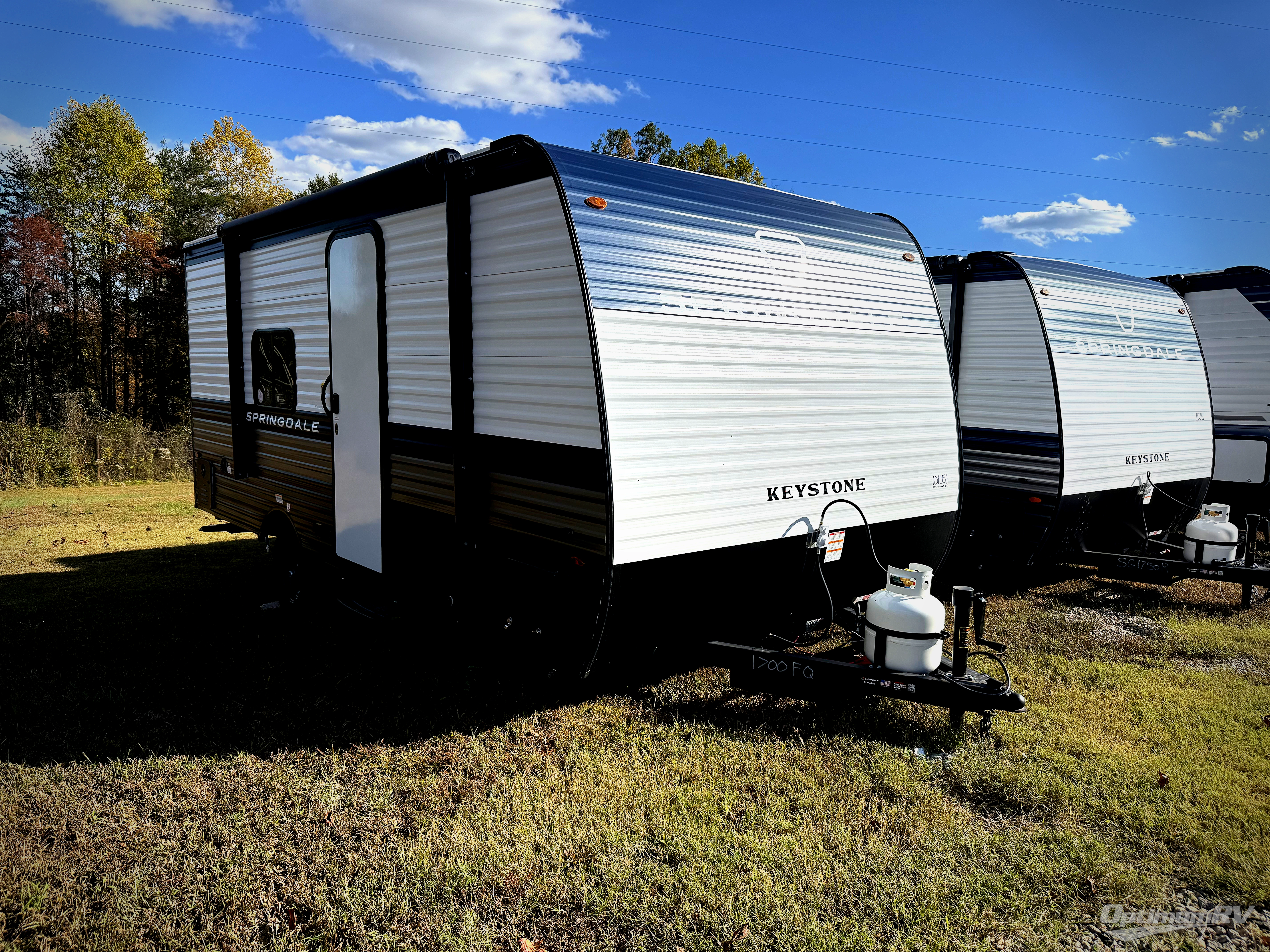 With any Springdale Mini travel trailer by Keystone, you will enjoy lightweight towing thanks to their single-axle! The AlphaPly TPO roof membrane is ultra durable, and the power awning will provide protection from the sun as you relax in your camp chairs outside. Each model includes blackout night shades, LED lighting, plus many more interior comforts. There is also a roof A/C and 20K BTU furnace to keep you comfortable, plus a tankless water heater for endless hot showers!