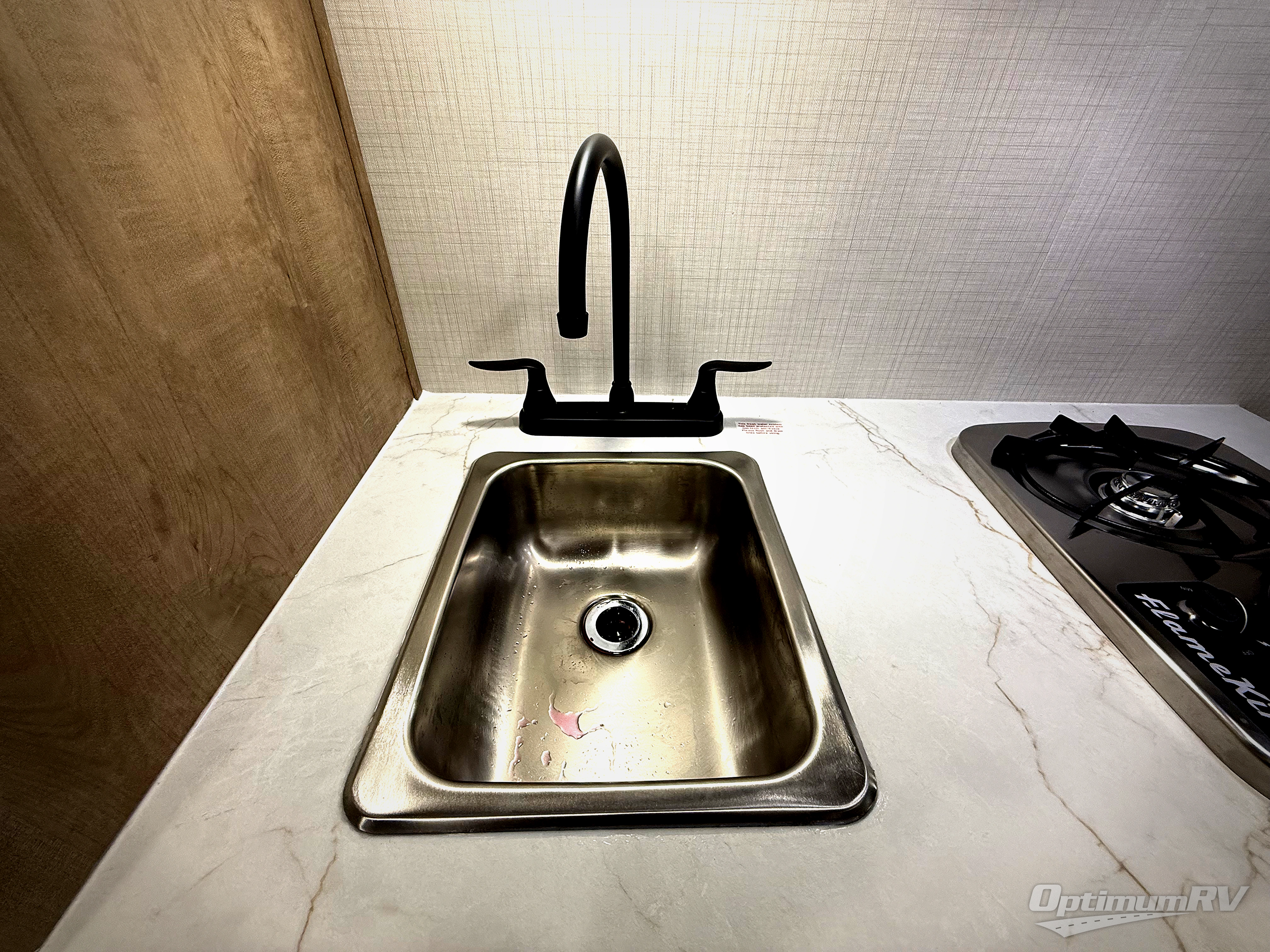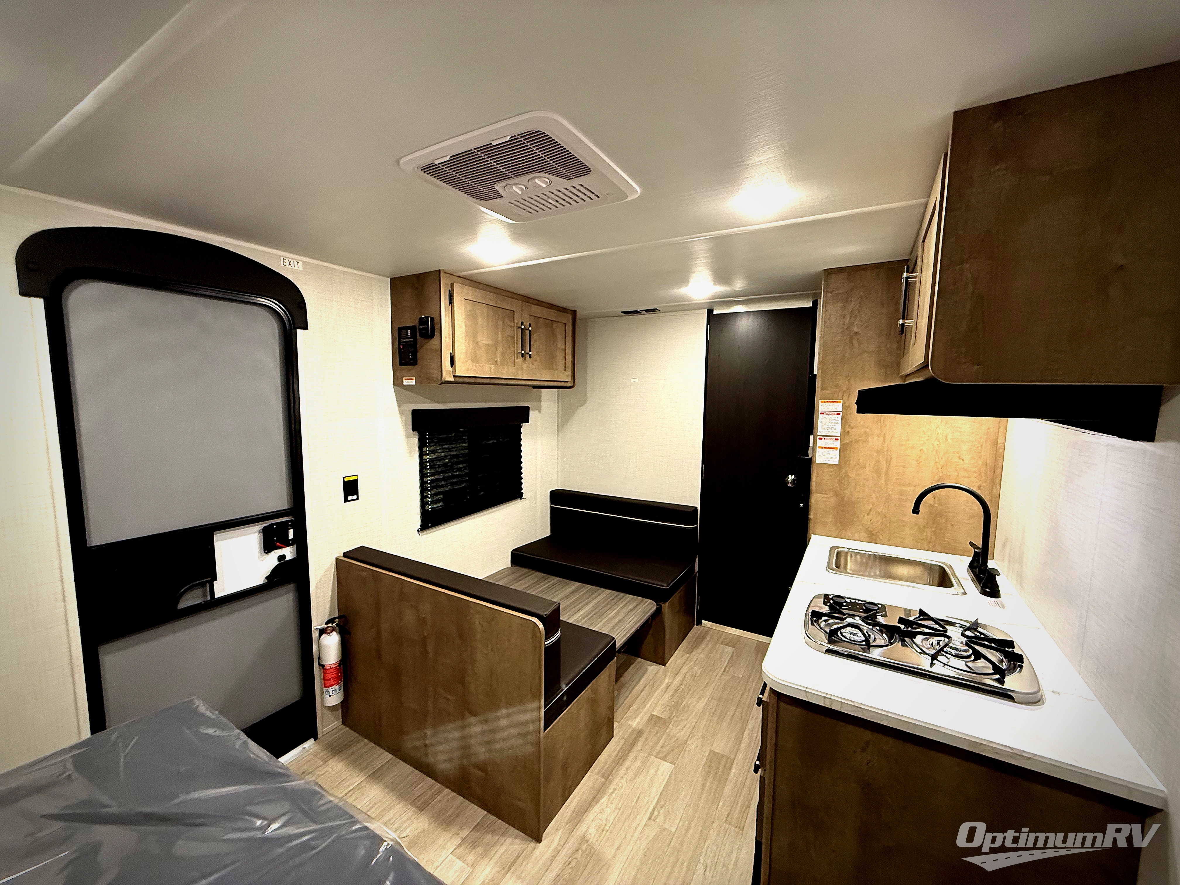 This cozy trailer for two or four will have you out enjoying nature easily. There is a queen bed for you, and the booth dinette can easily transform into a bed for one or two more campers if needed at night. The rear private bath features a shower and vanity with sink, plus toilet so no late night trips to the campground bathroom. There is ample storage in overhead cabinets on both sides of the trailer, as well as dual closets and nightstands on either side of the bed. A 10' awning offers even more living space outside. Grab a couple of camp chairs and enjoy hanging out with your campground neighbors or enjoying a campfire.