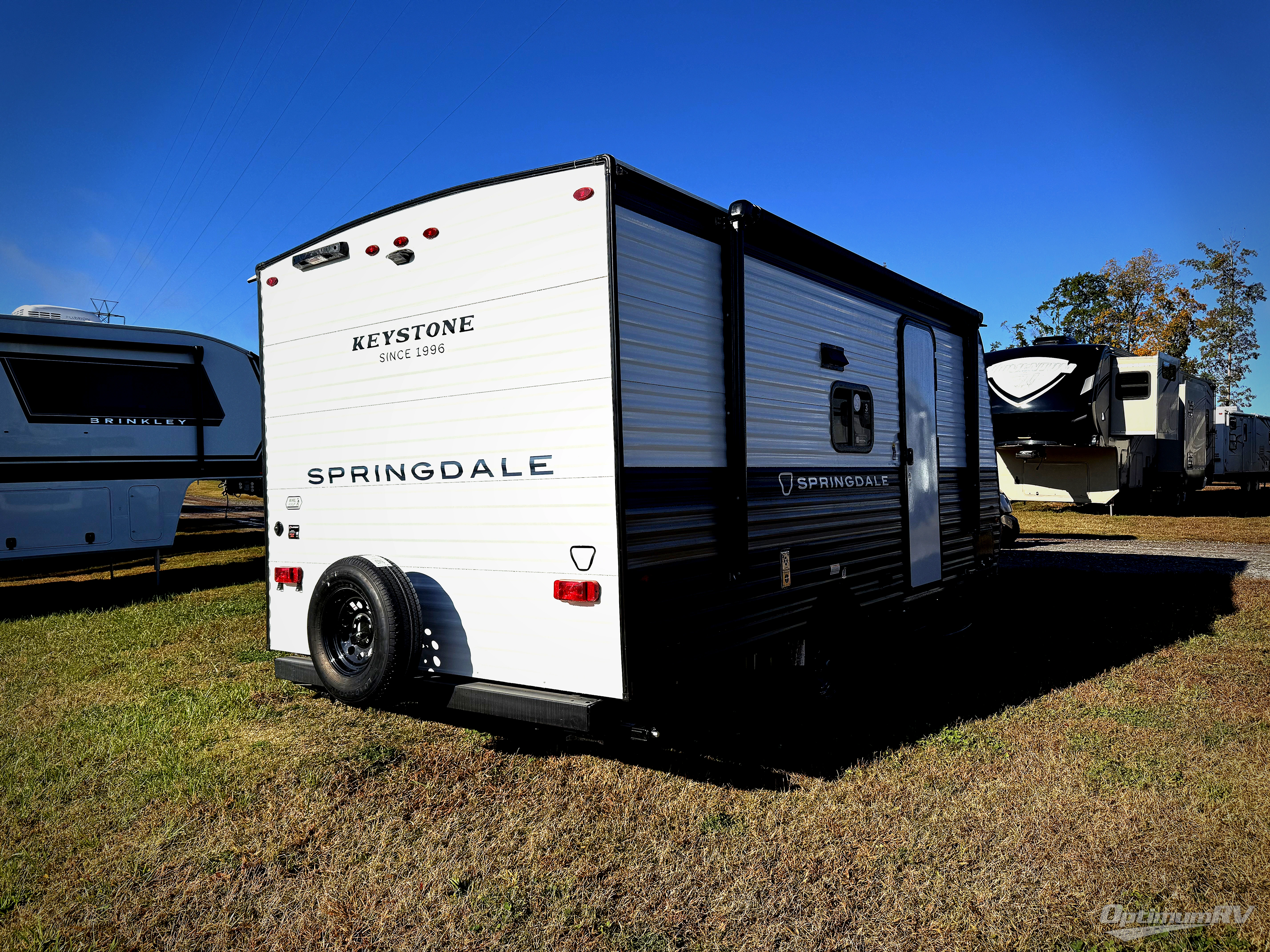 With any Springdale Mini travel trailer by Keystone, you will enjoy lightweight towing thanks to their single-axle! The AlphaPly TPO roof membrane is ultra durable, and the power awning will provide protection from the sun as you relax in your camp chairs outside. Each model includes blackout night shades, LED lighting, plus many more interior comforts. There is also a roof A/C and 20K BTU furnace to keep you comfortable, plus a tankless water heater for endless hot showers!