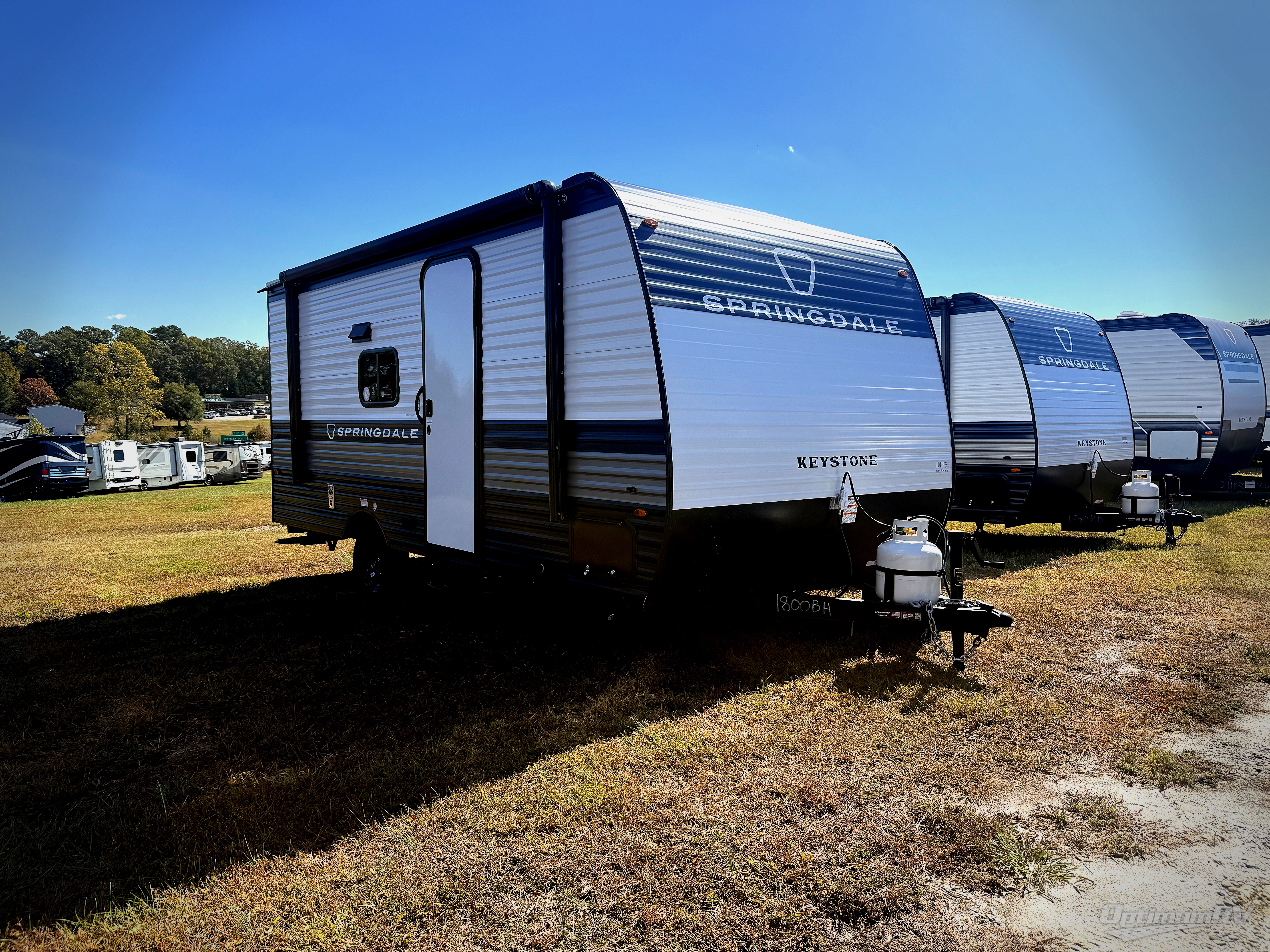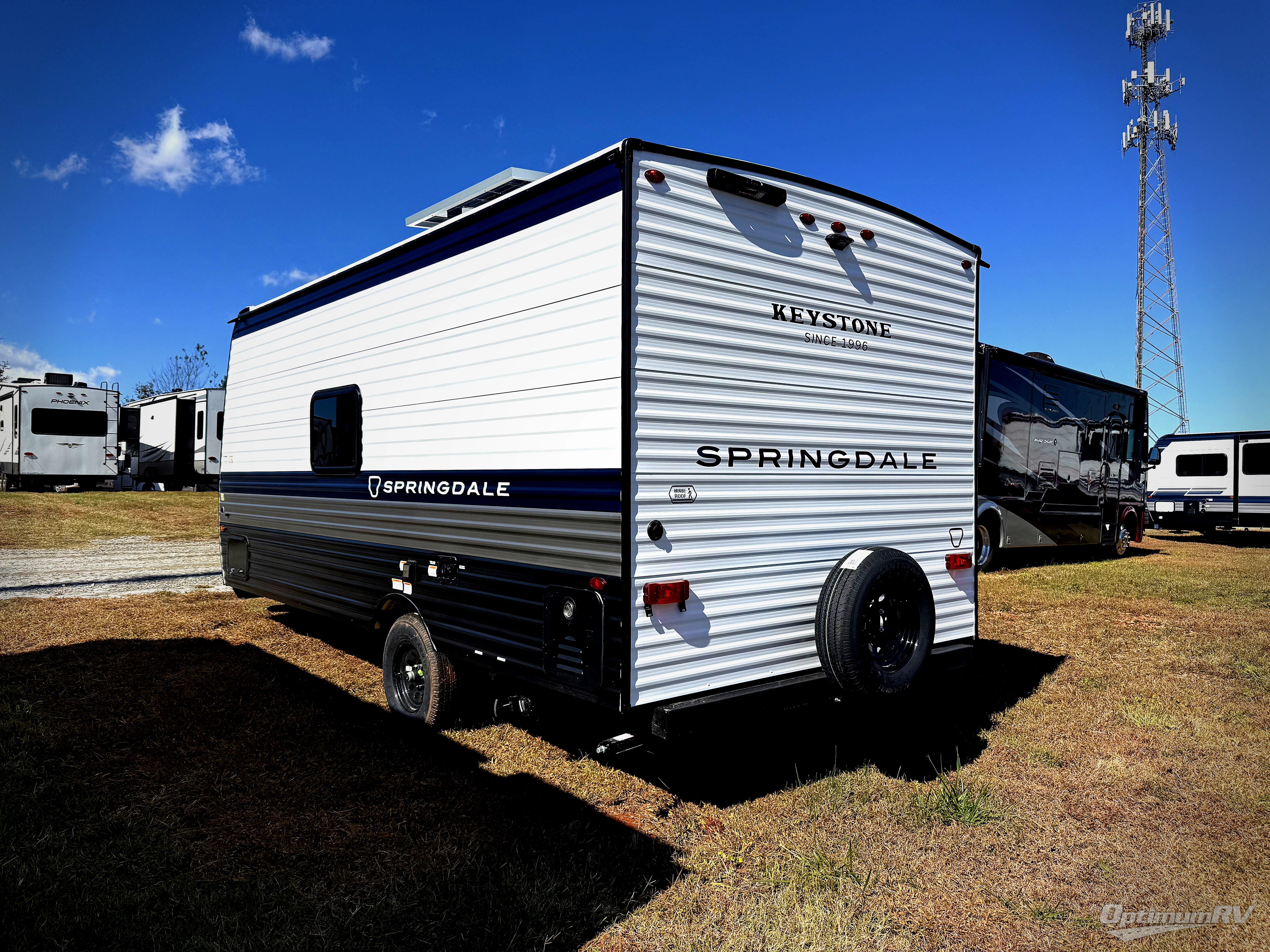 With any Springdale Mini travel trailer by Keystone, you will enjoy lightweight towing thanks to their single-axle! The AlphaPly TPO roof membrane is ultra durable, and the power awning will provide protection from the sun as you relax in your camp chairs outside. Each model includes blackout night shades, LED lighting, plus many more interior comforts. There is also a roof A/C and 20K BTU furnace to keep you comfortable, plus a tankless water heater for endless hot showers!